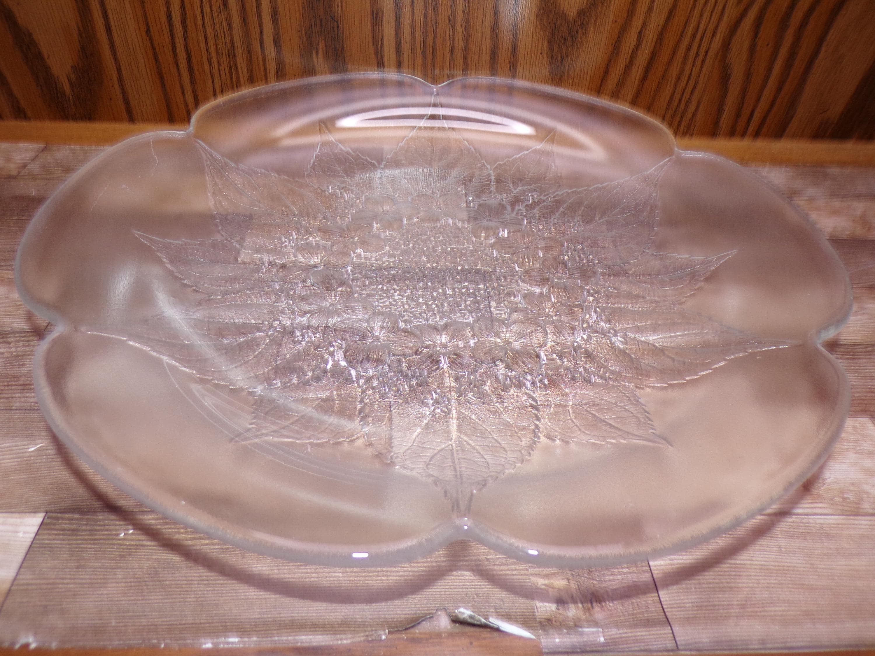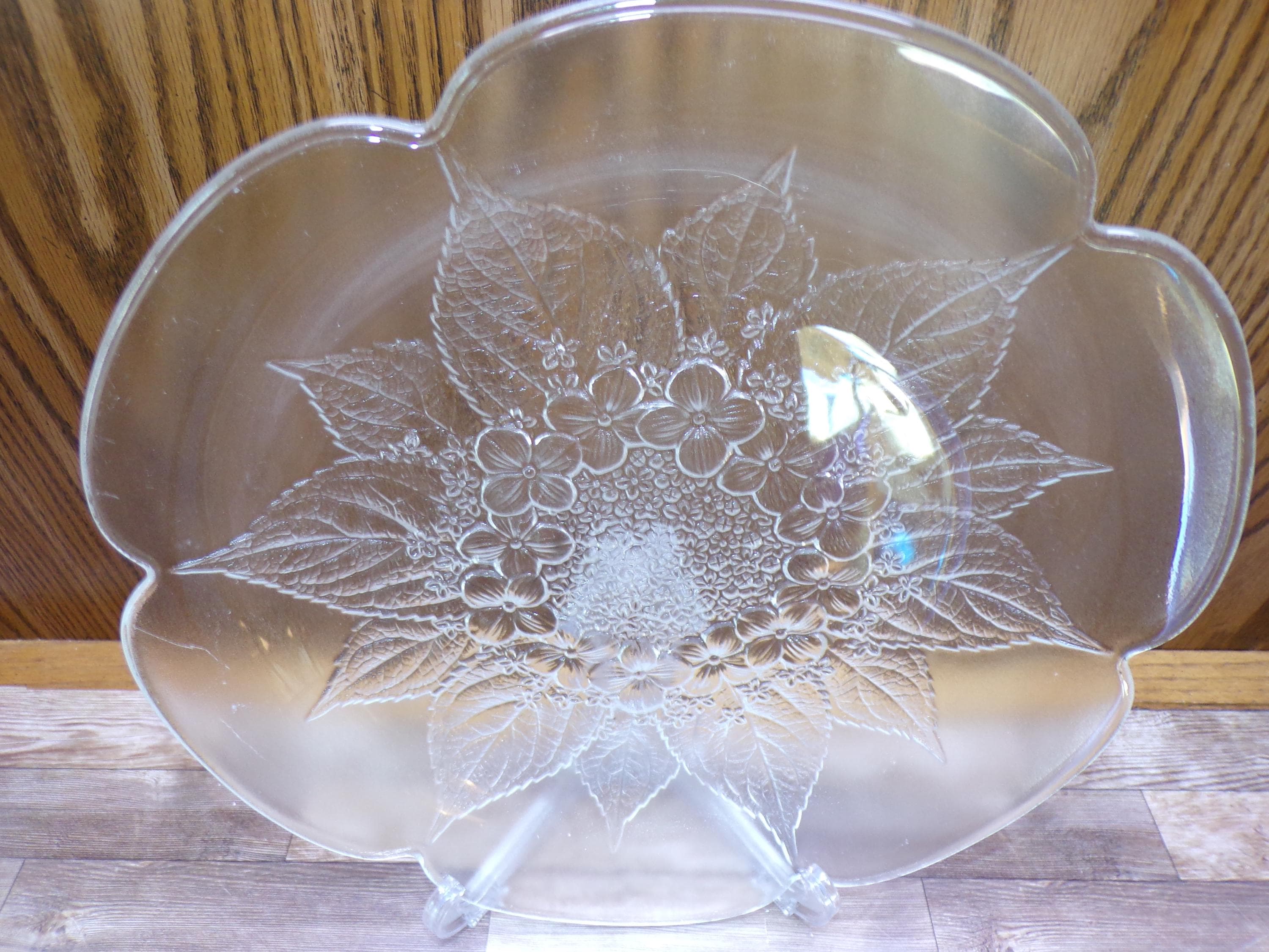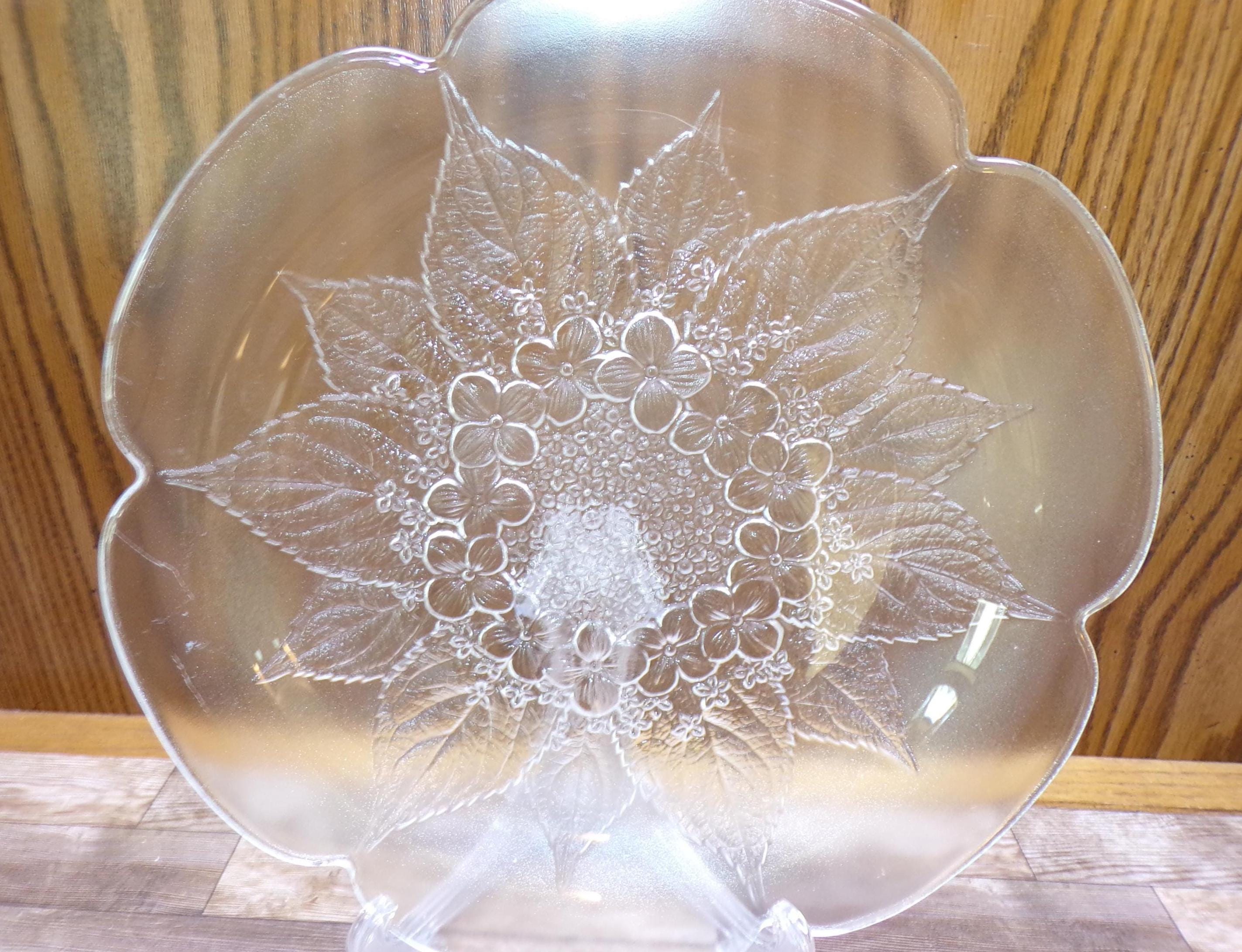 2511 Mikasa Hoya Vintage 12" Crystal Raised Leaf & Dogwood Floral Pattern Textured platter - Great Condition