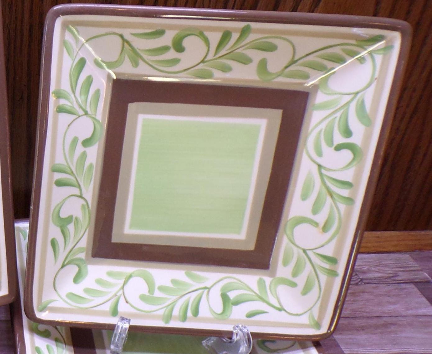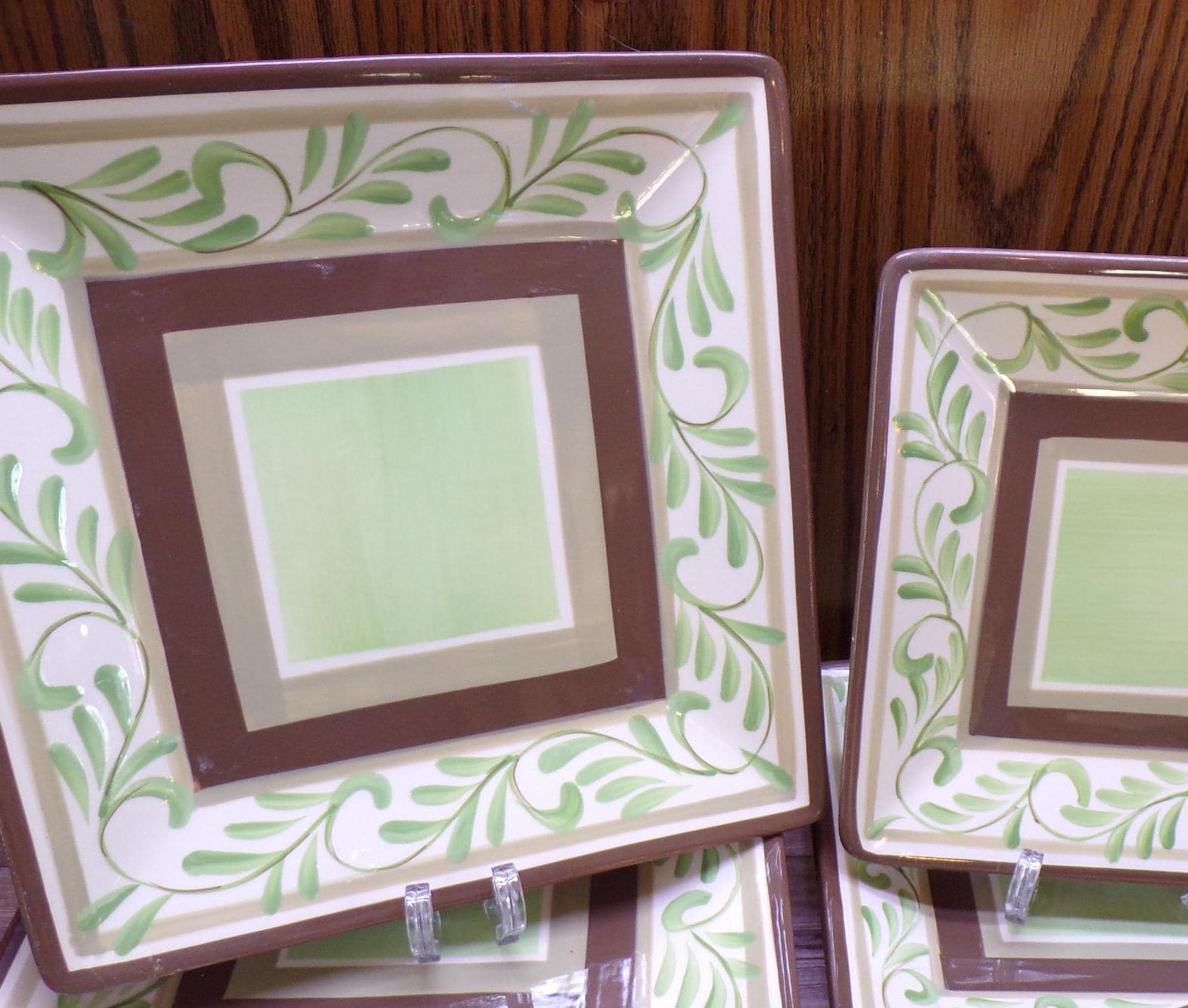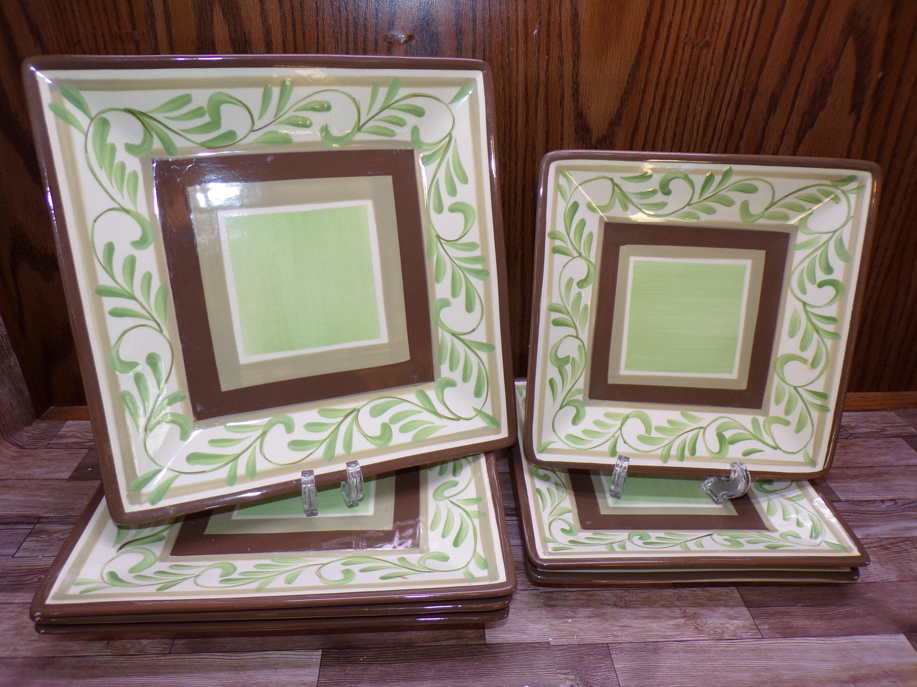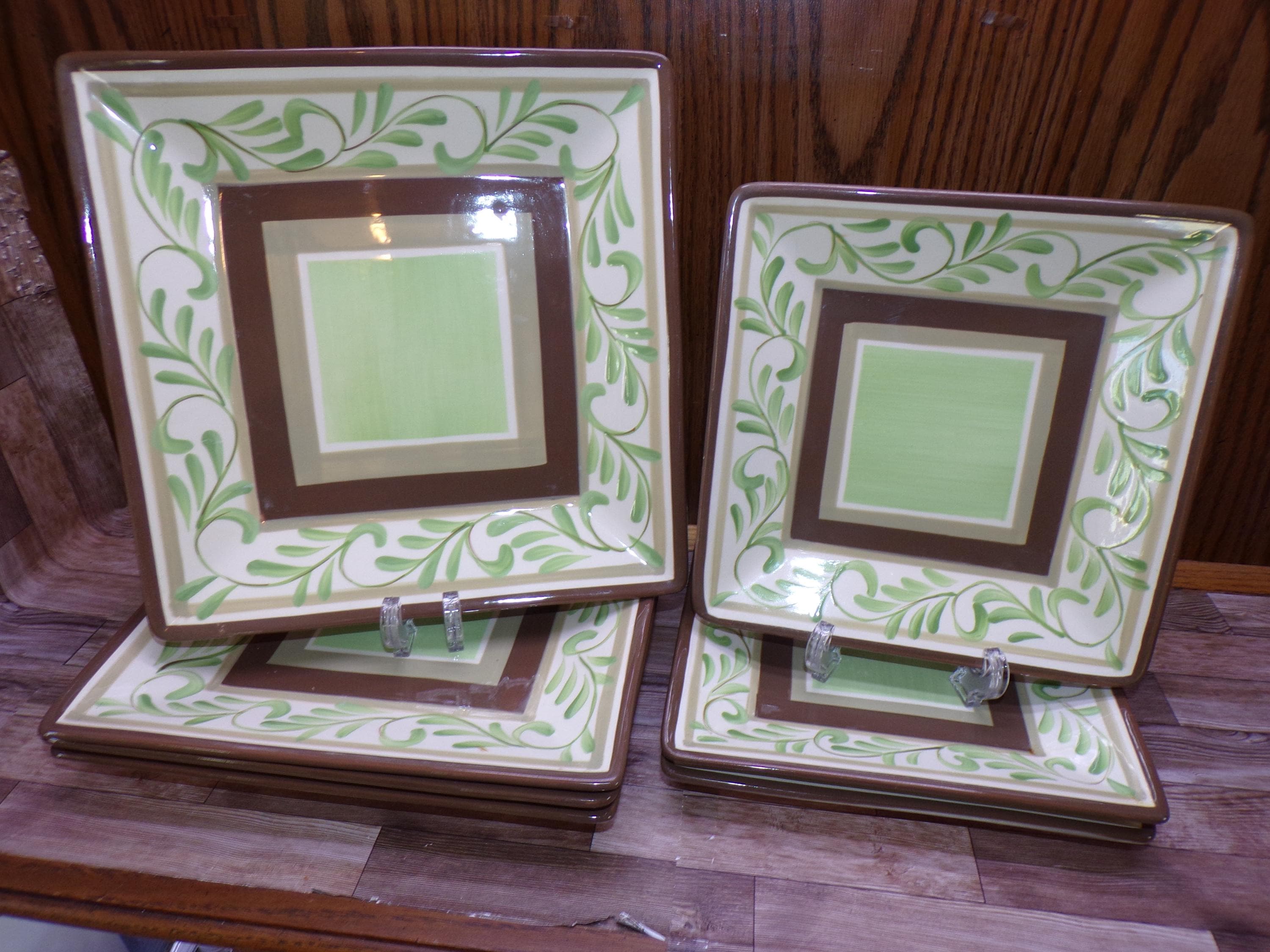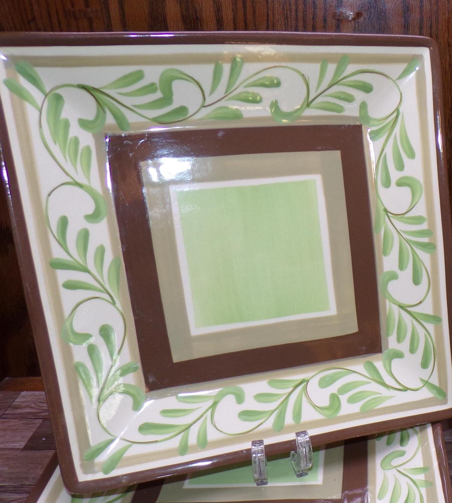 2511 Home Stoneware Palermo 10.5" Square Plates Set of 7 - (4) 10.5" Dinner Plates & (3) 8.5" Salad Plates - Good Condition