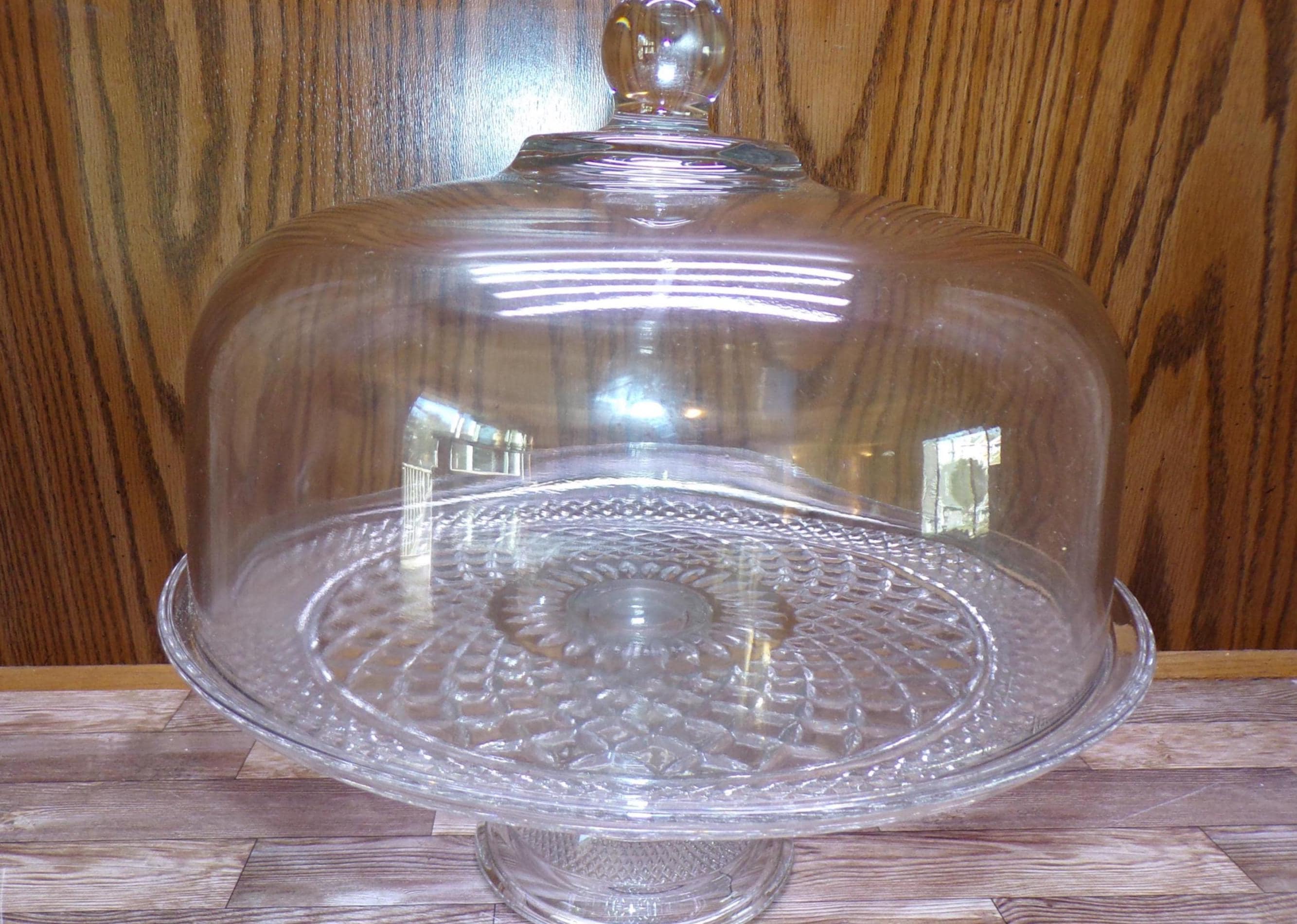 2511 Anchor Hocking Wexford 2 pc Vintage Footed Cake Platter with Dome Cover Doubles as Raised Salad Bowl or Punch Bowl Great Condition Original Box