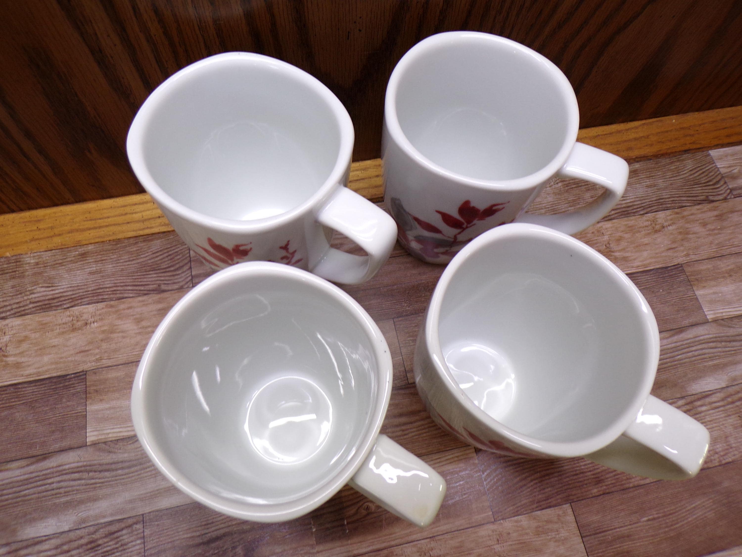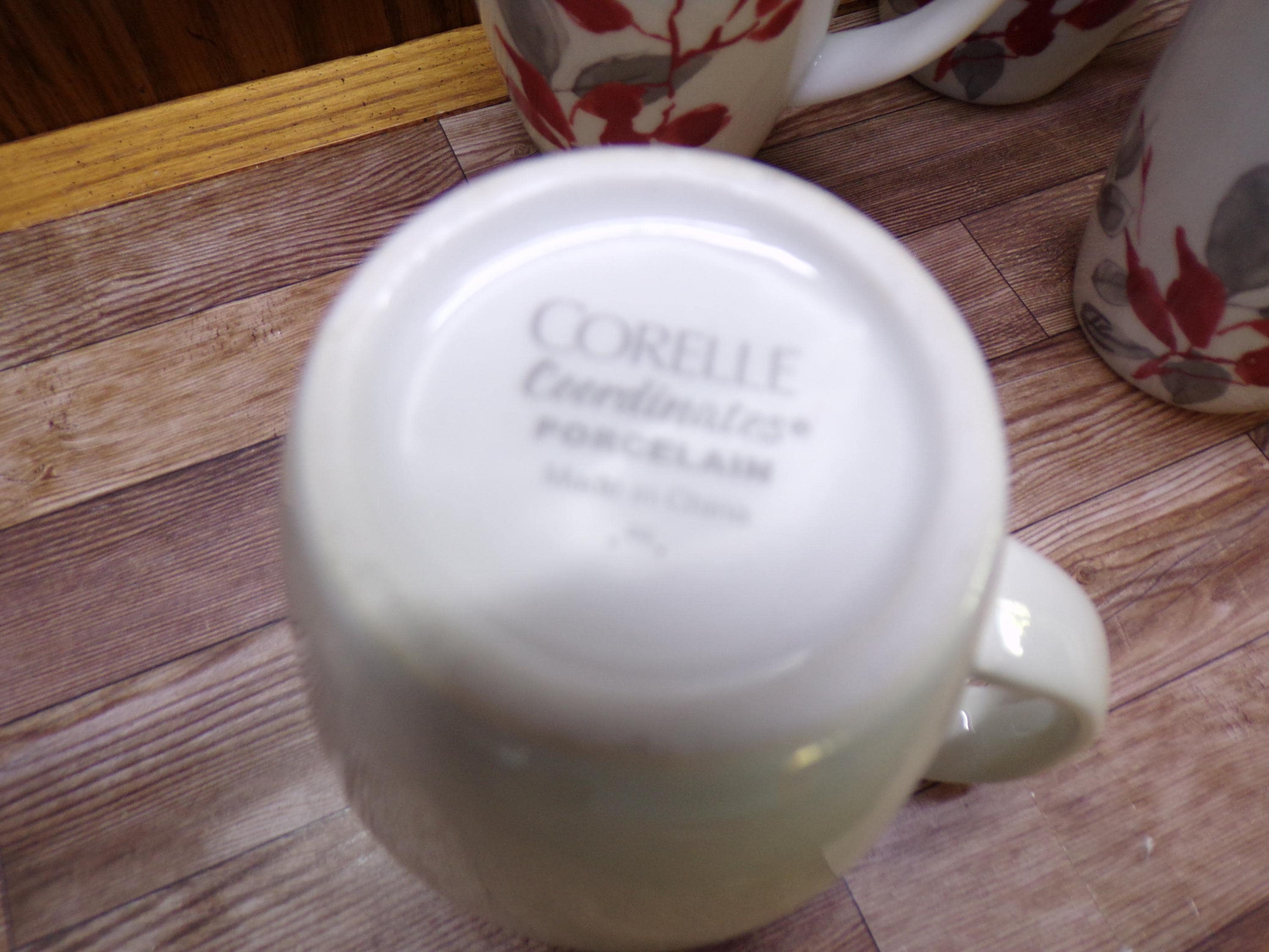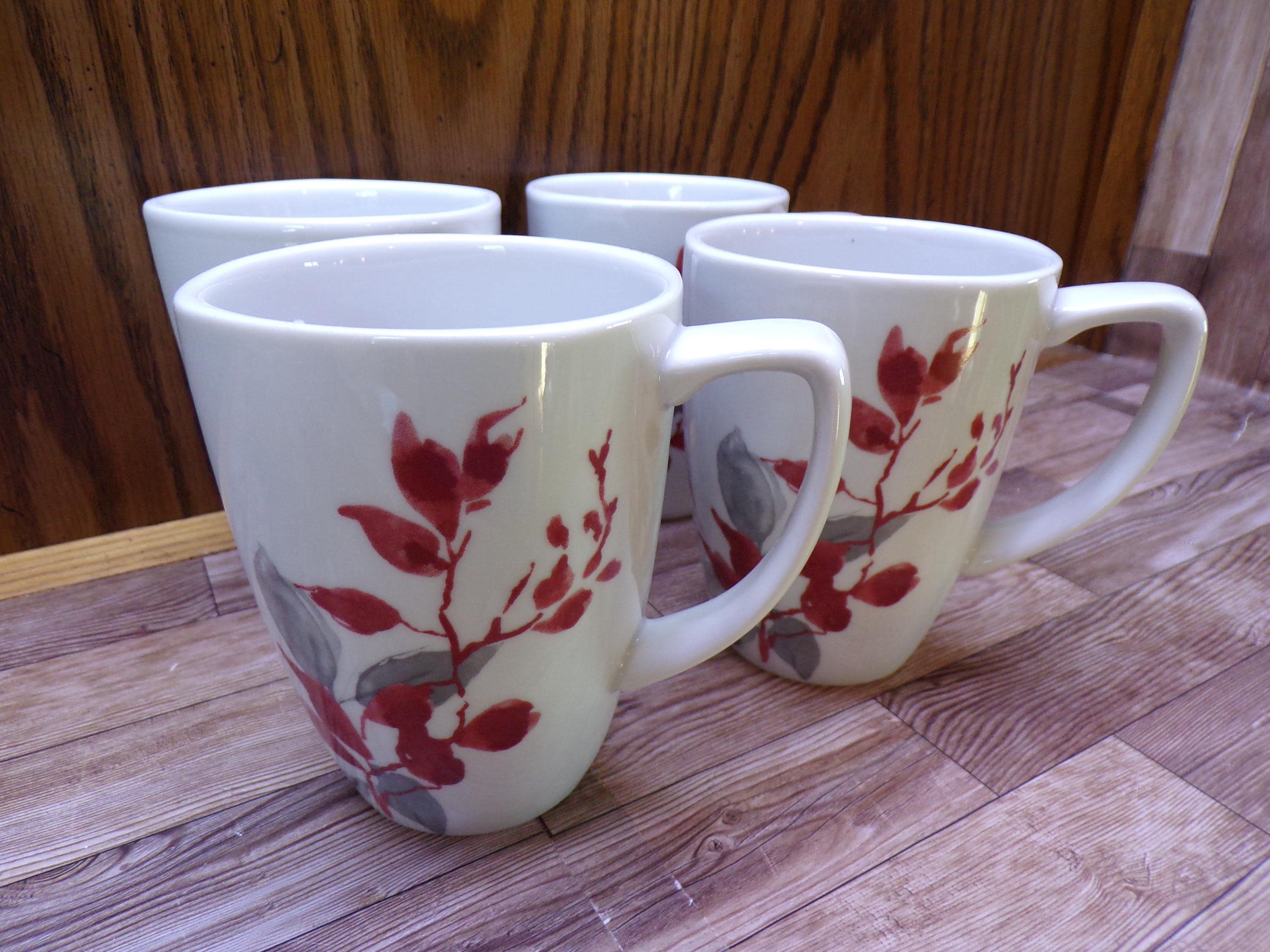 2511 Corelle Coordinates Kyoto Leaves Red & Gray 12 oz Porcelain Square Rim Coffee Mug Cup 4" Set of 4 - Great Condition