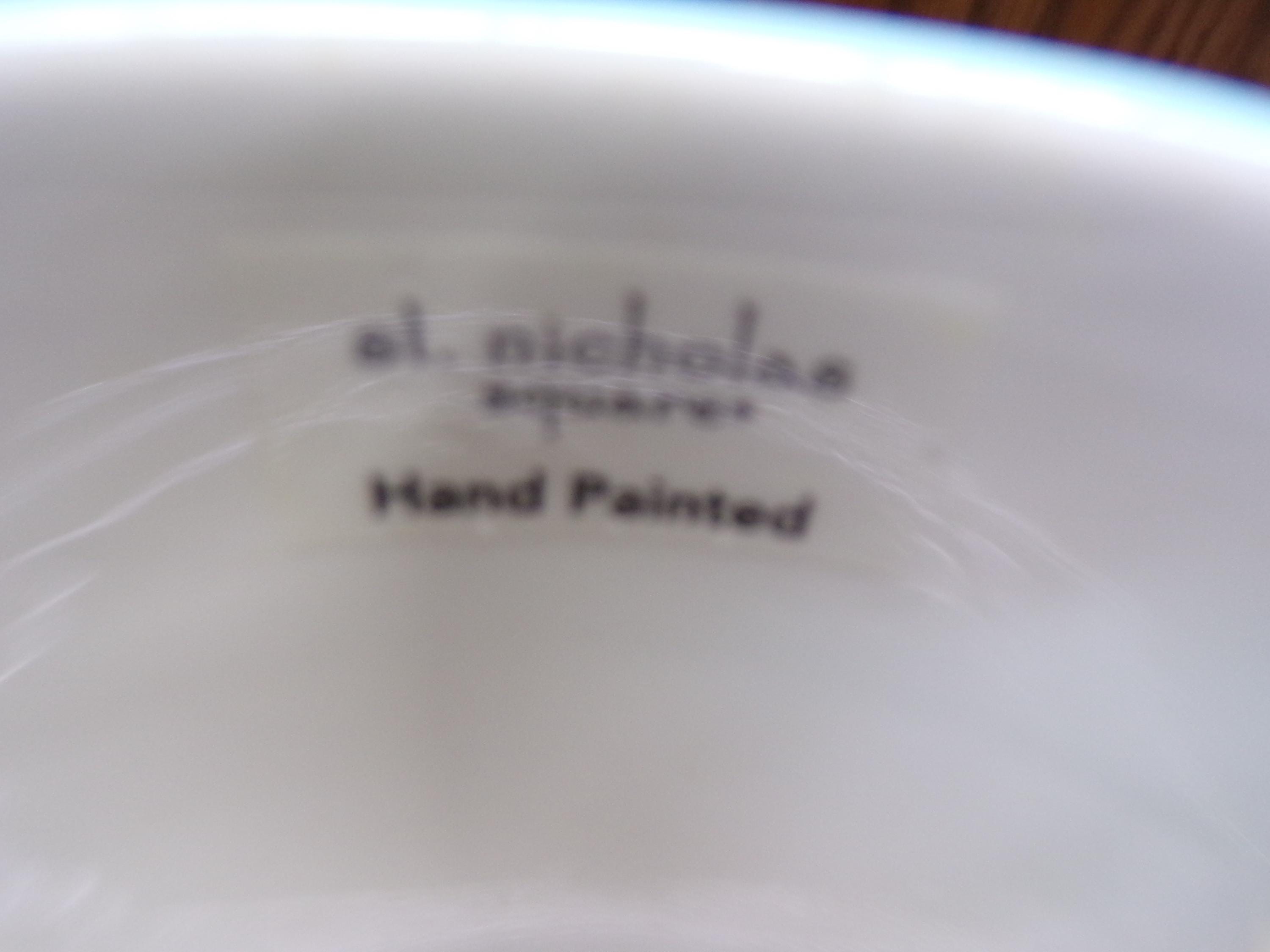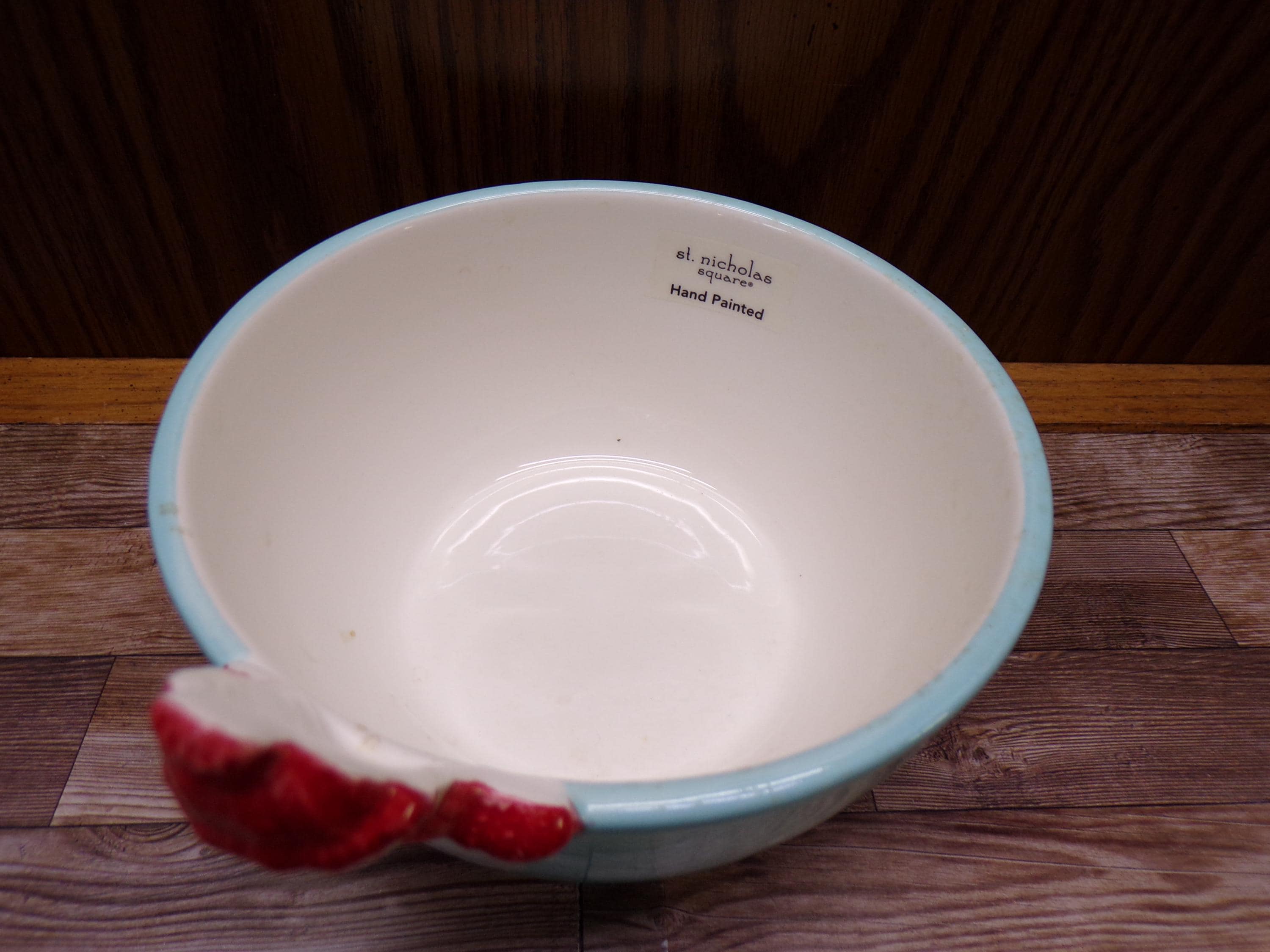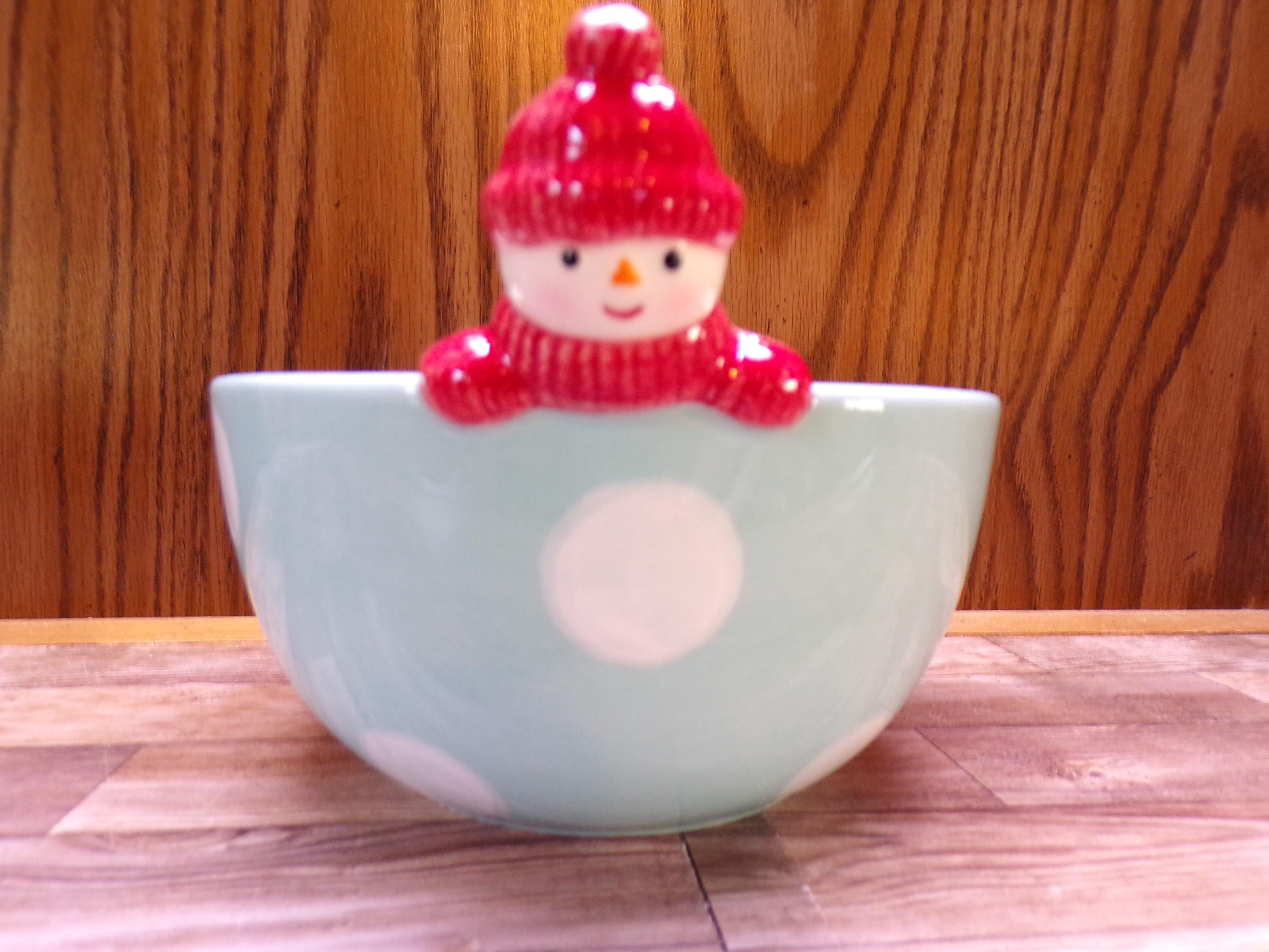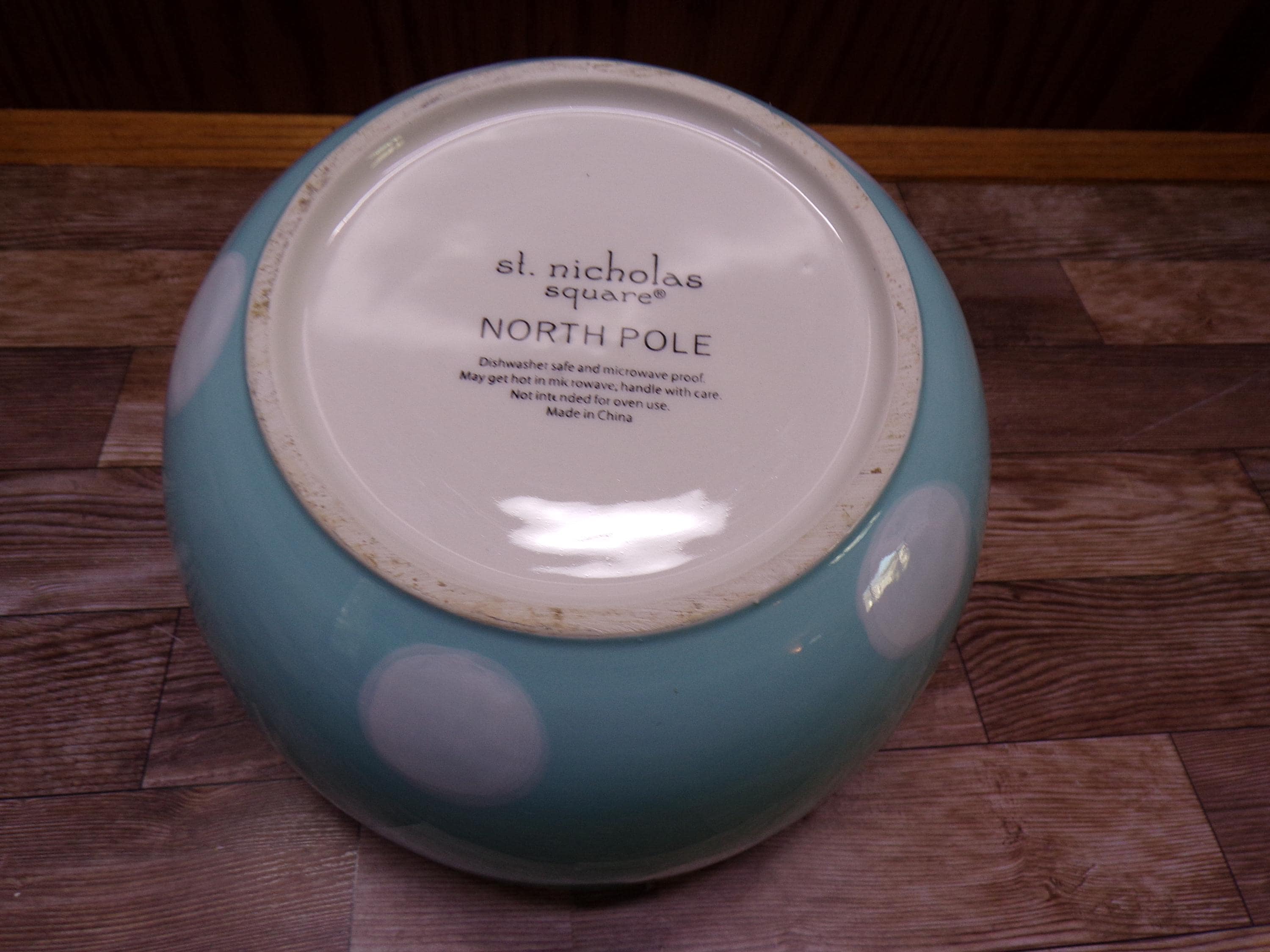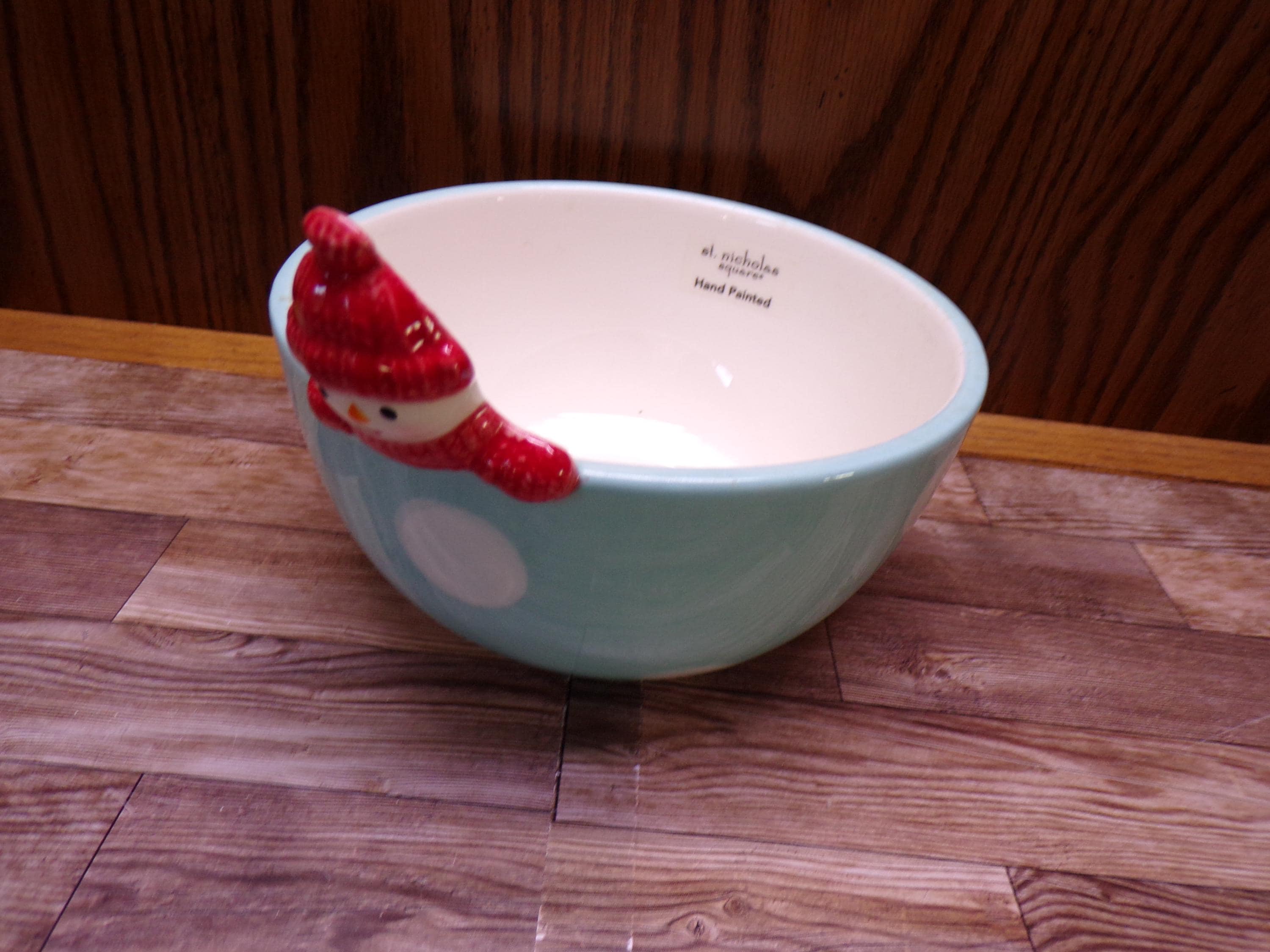 2511 St. Nicholas Square North Pole 6" Bowl Hand Painted Blue & White Ceramic w/ Snowman - Great Condition