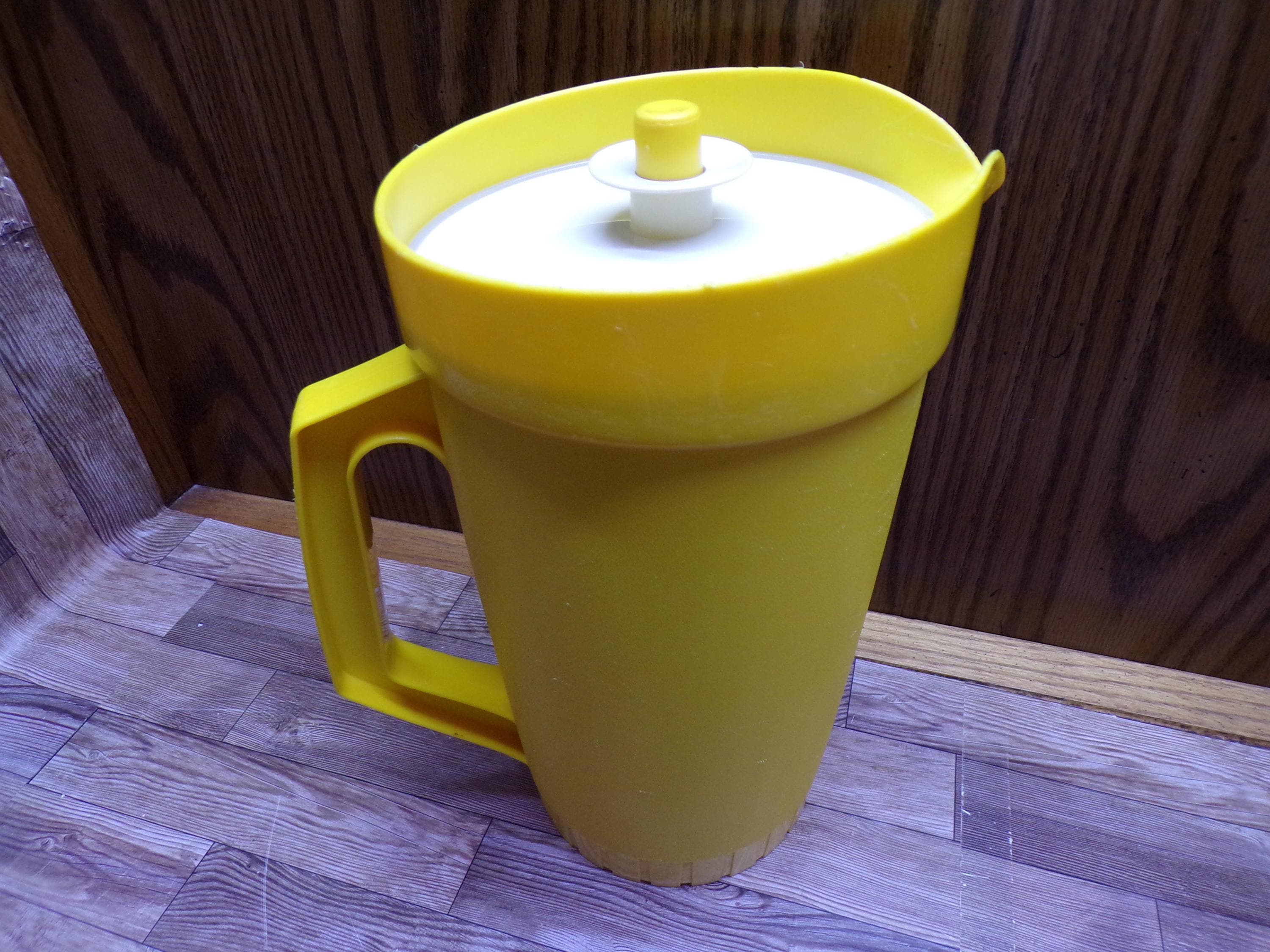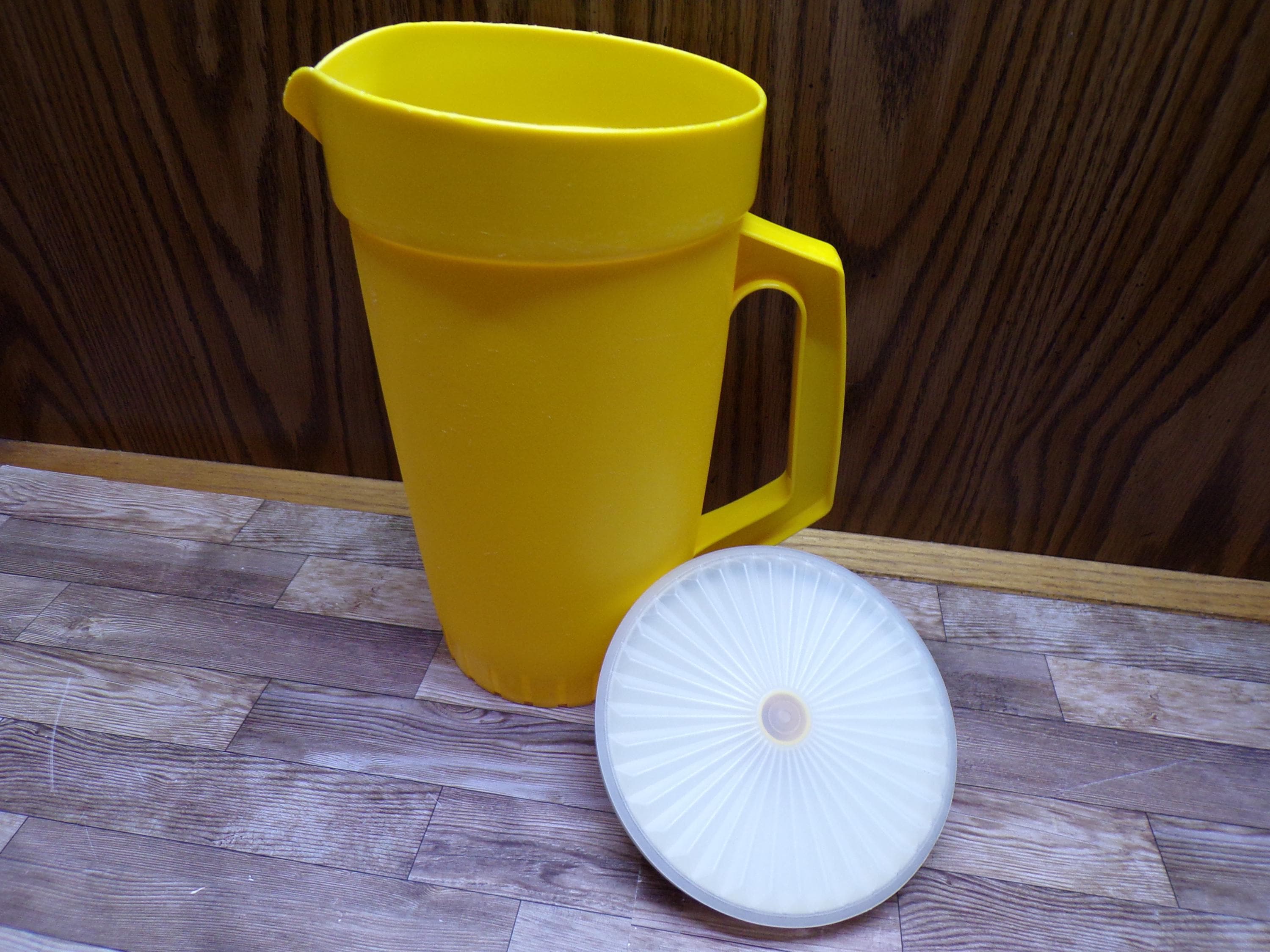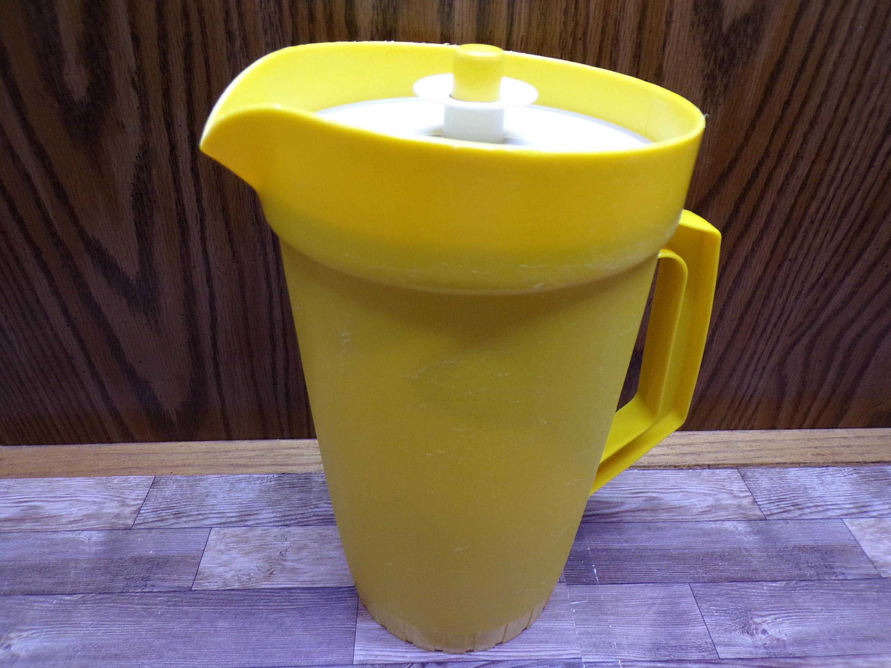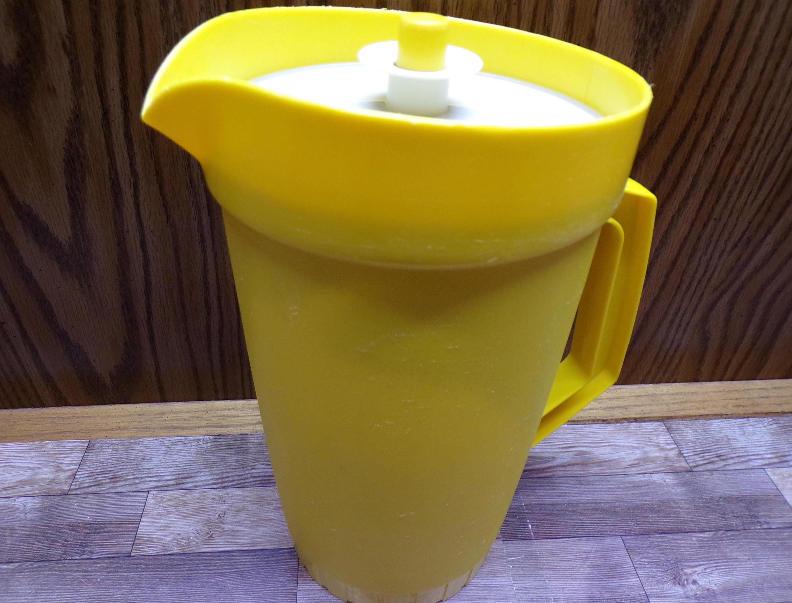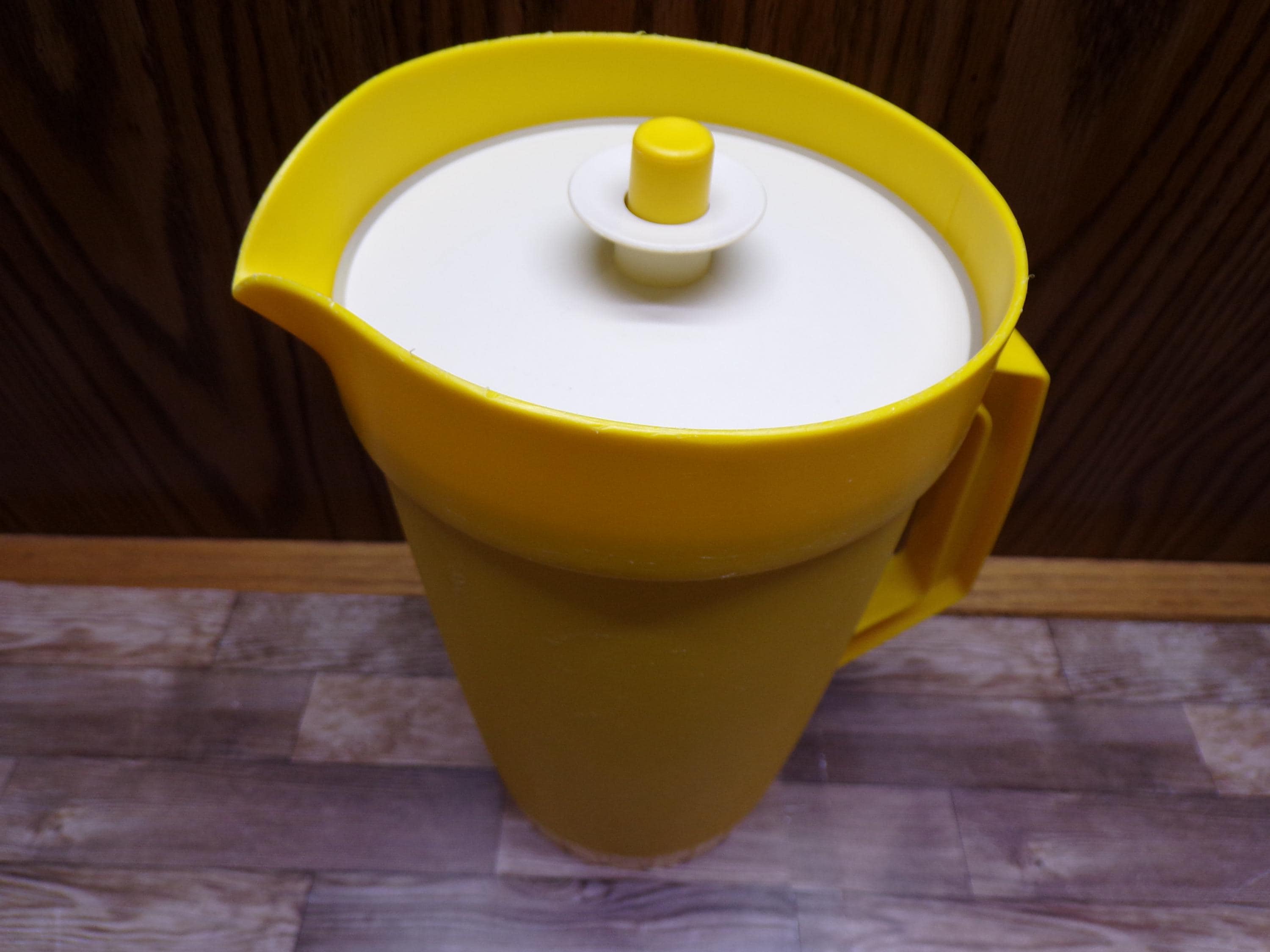 2511 Tupperware Classic Vintage 2 Qt Yellow Pitcher With Tight Seal Push Button Starburst Lid 800-9 - Good Condition