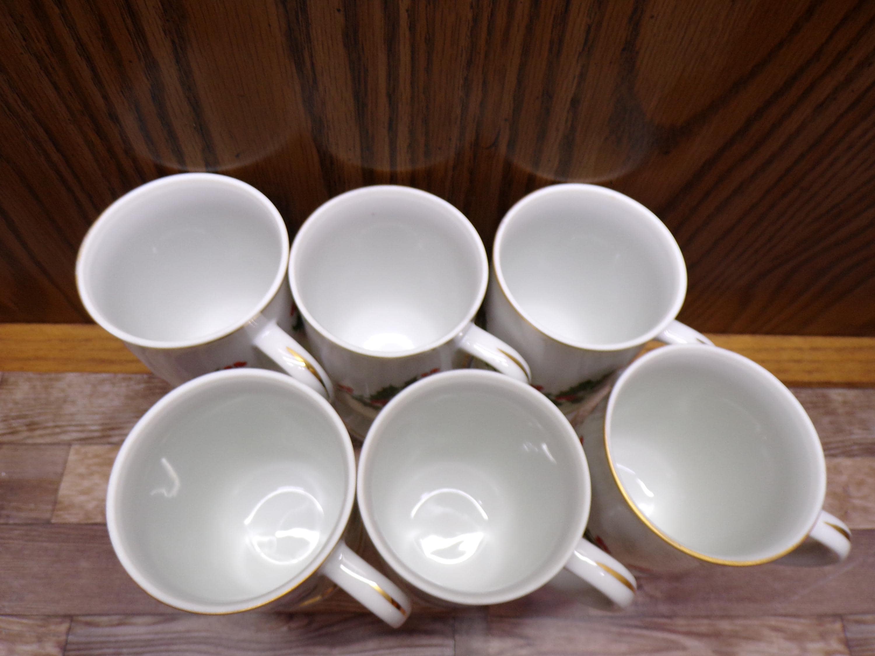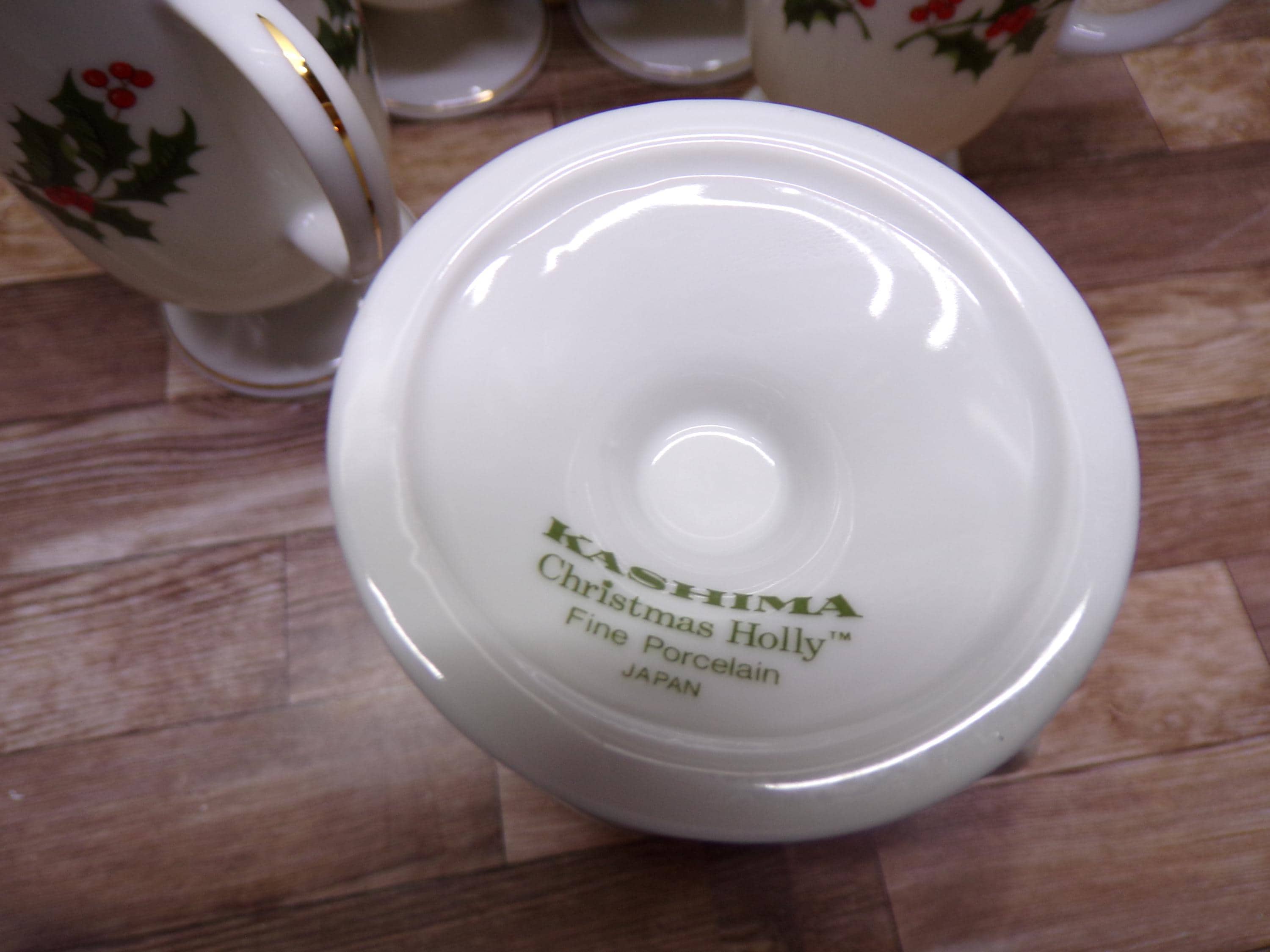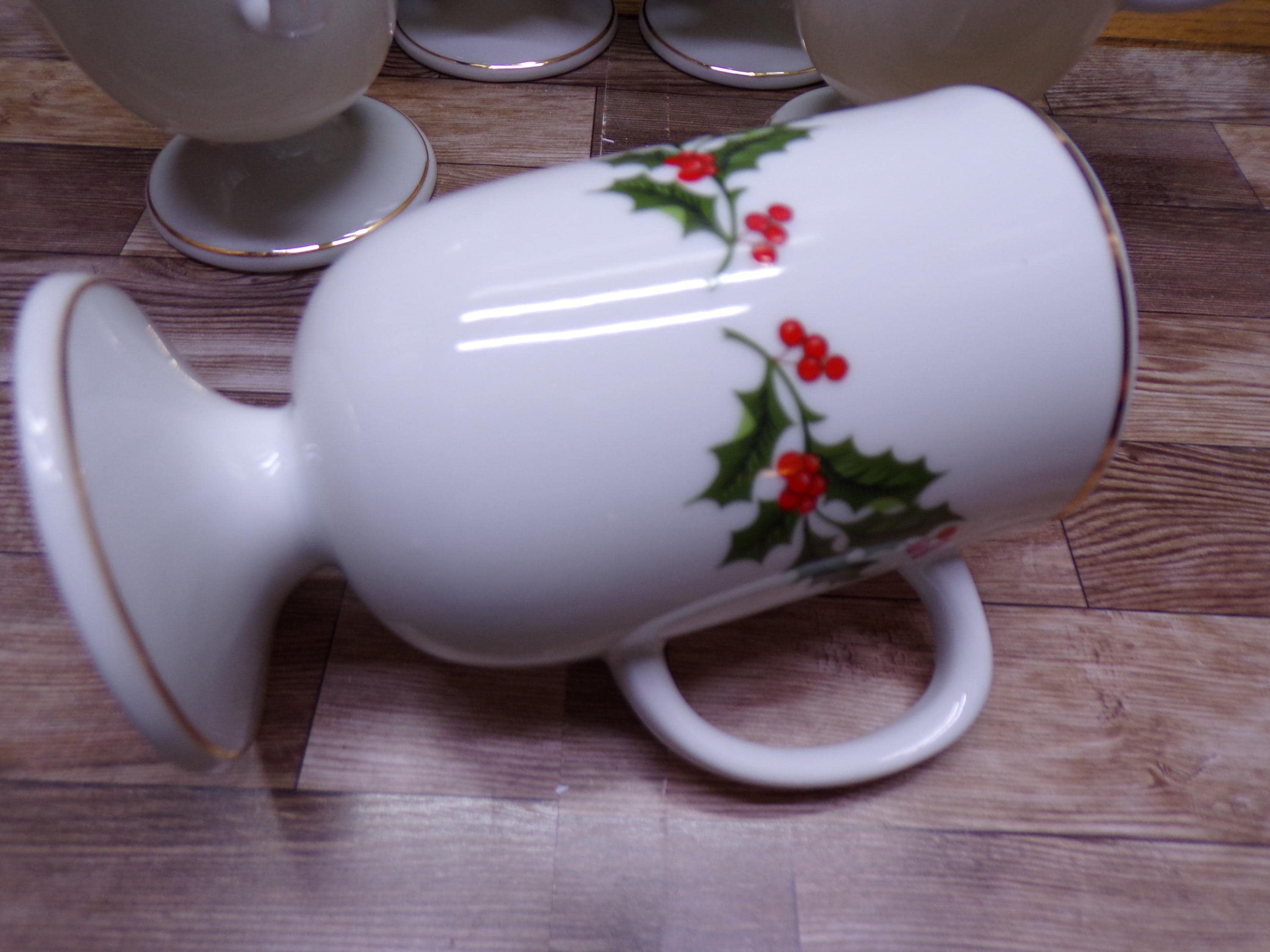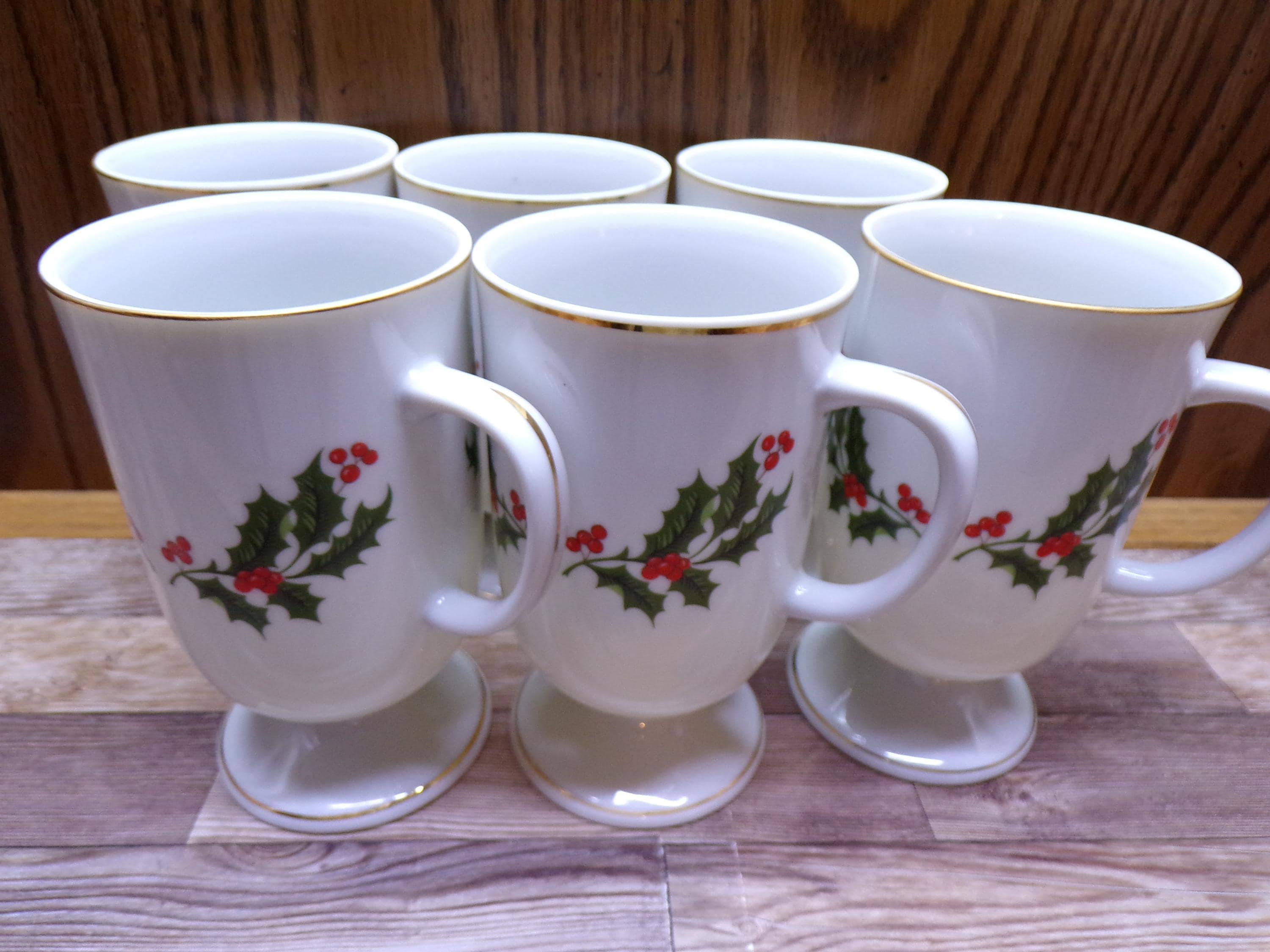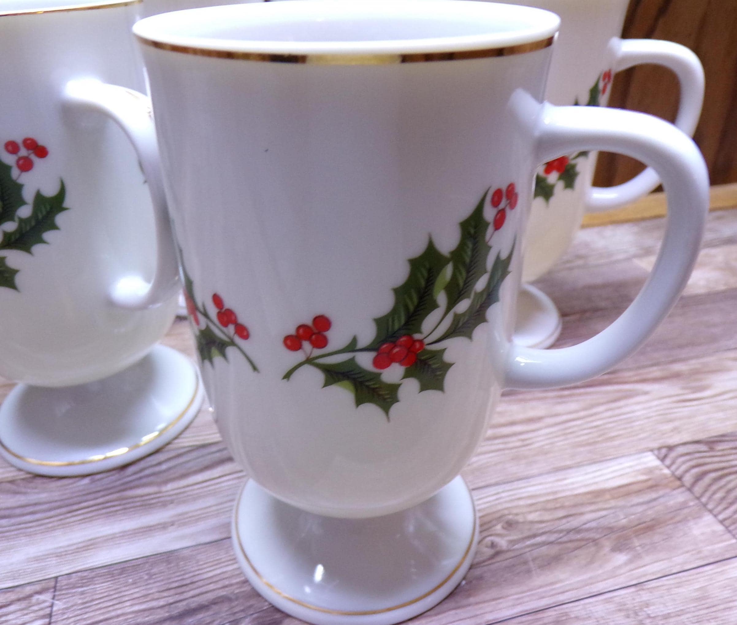 2511 Kashima Christmas Holly Fine Porcelain 5" 9 oz Vintage Footed Irish Coffee Mugs Set of 6 - Great Condition