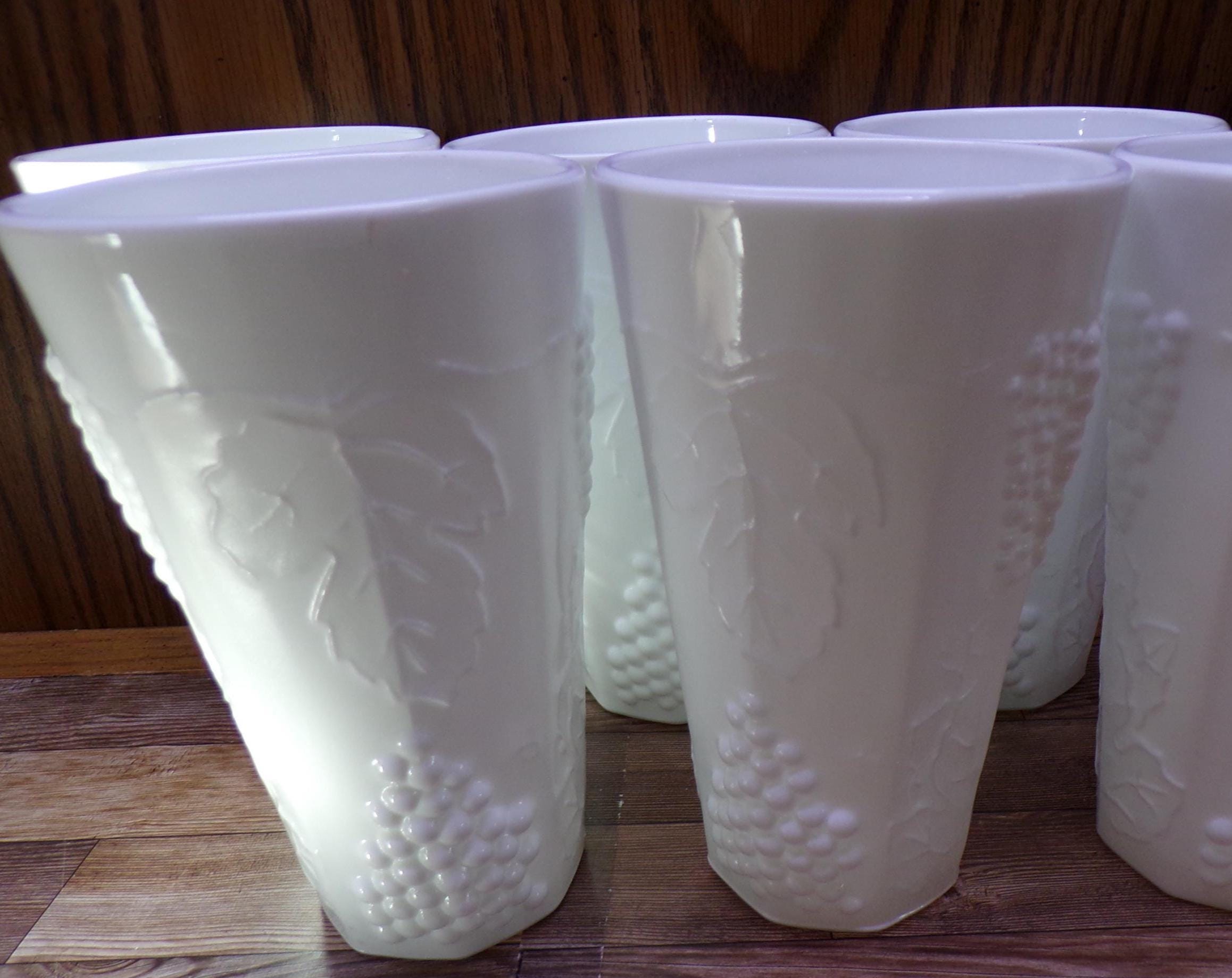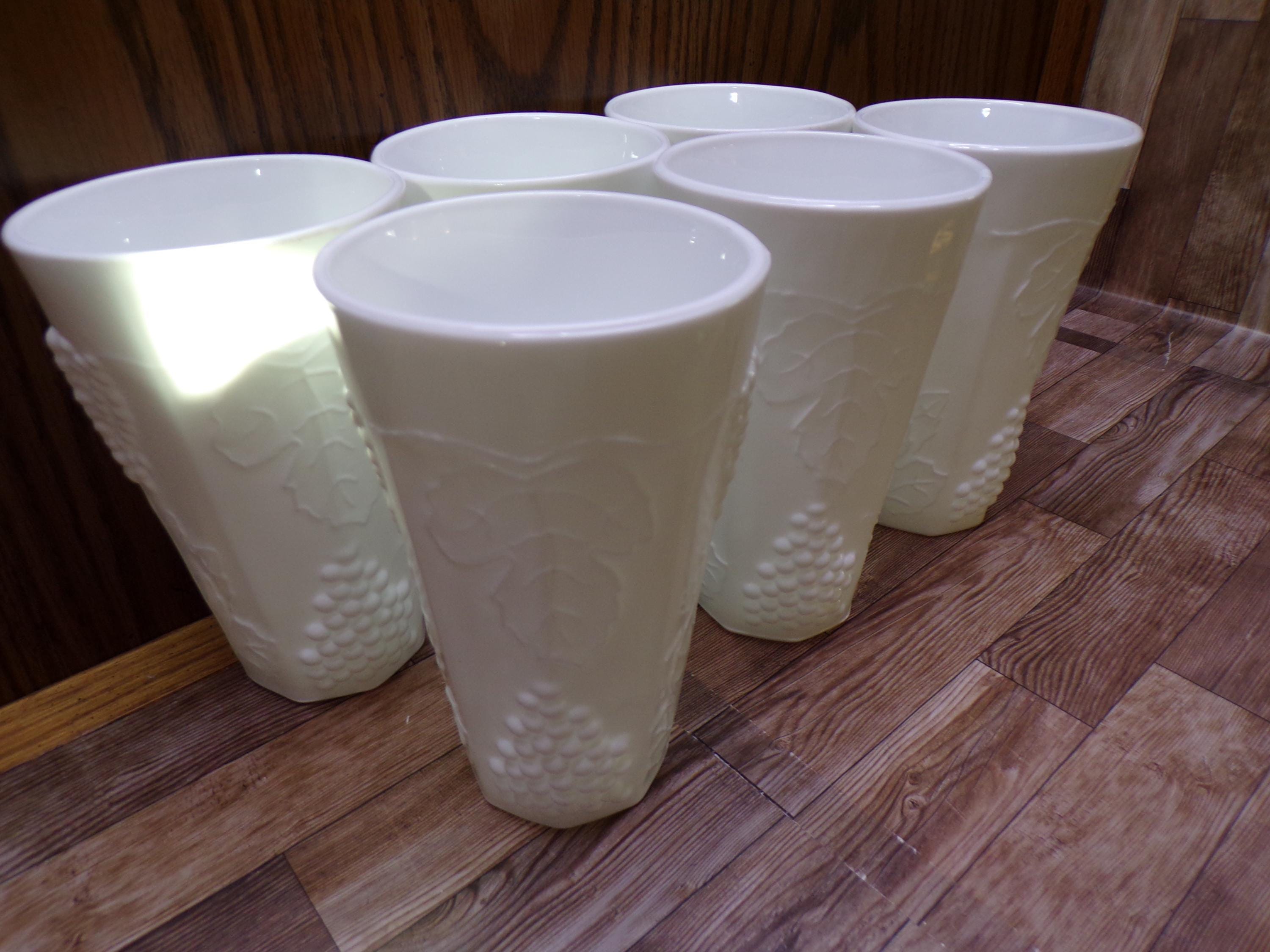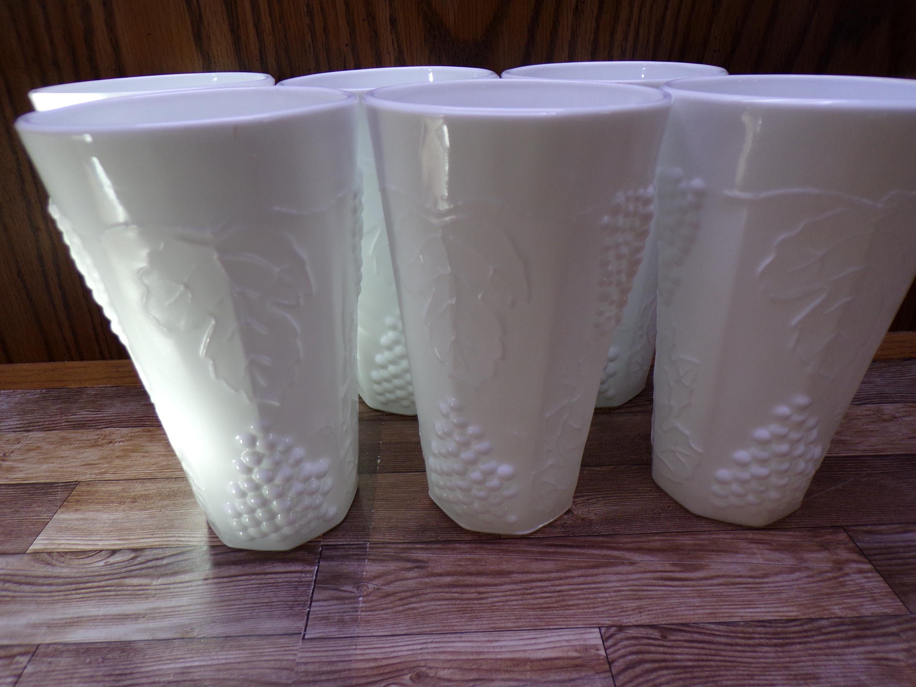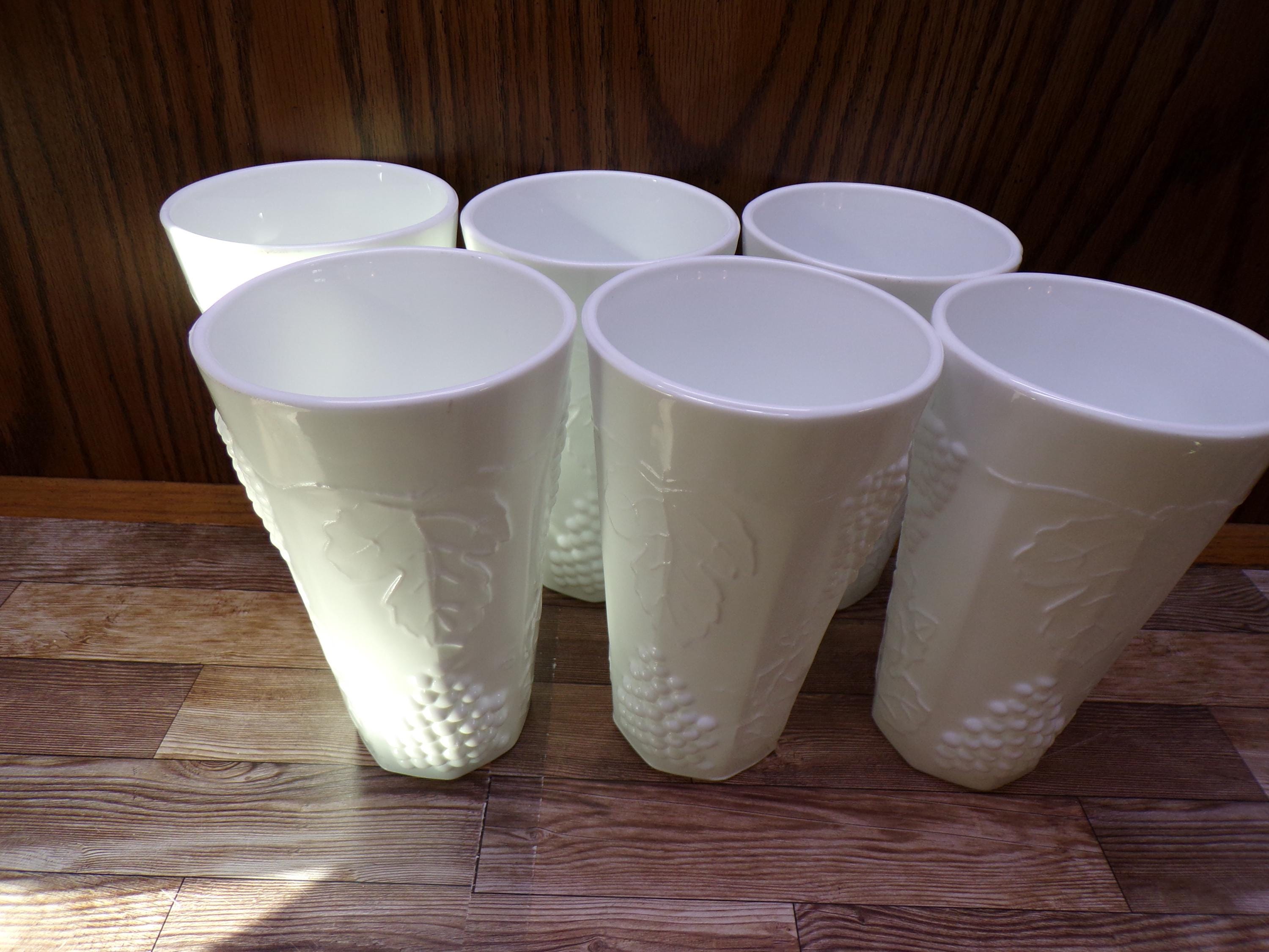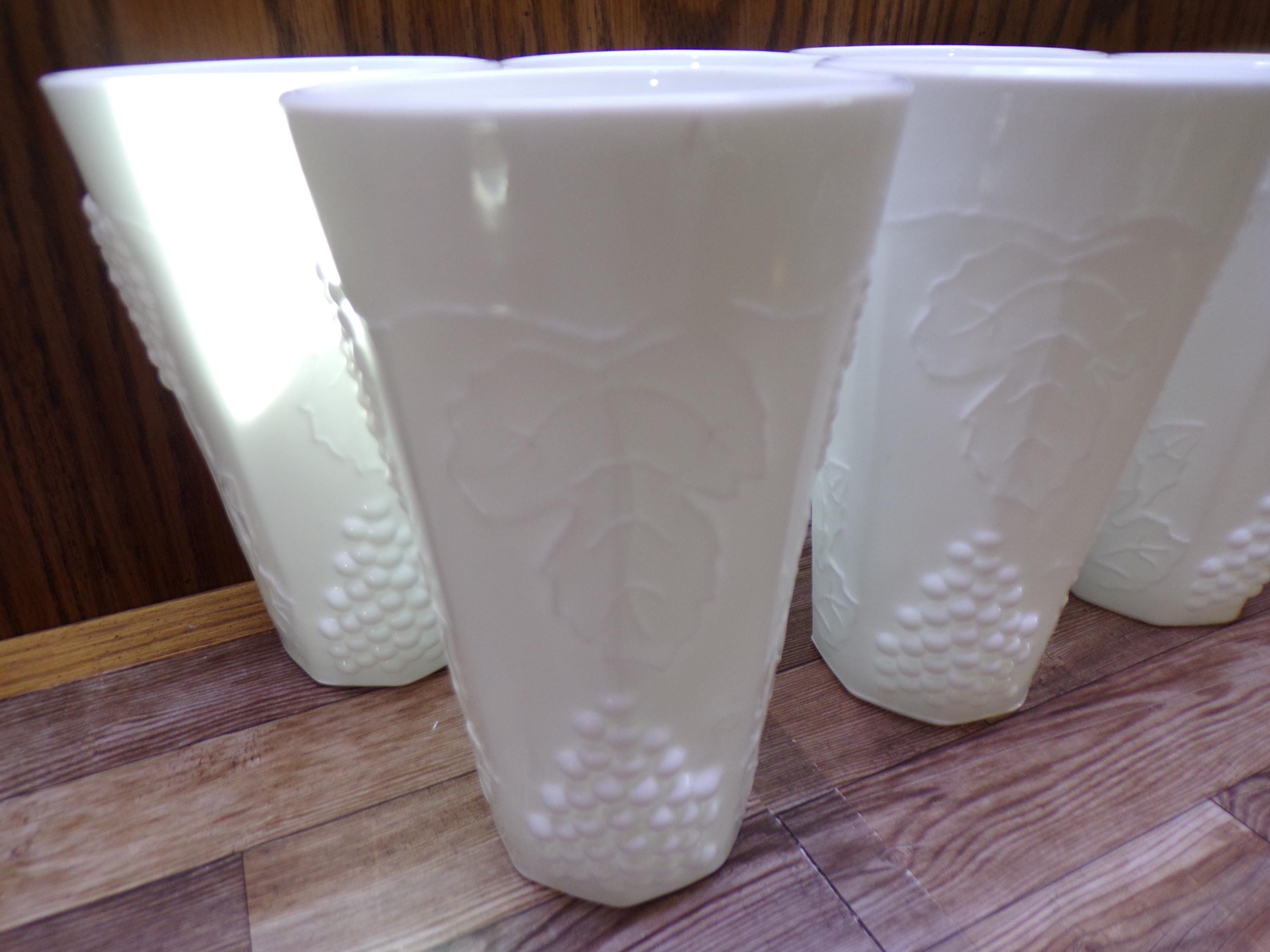 2511 Indiana Glass Colony Milk Glass 6" 12 oz Grape Harvest Vintage Tumbler Set of 6 - Great Condition