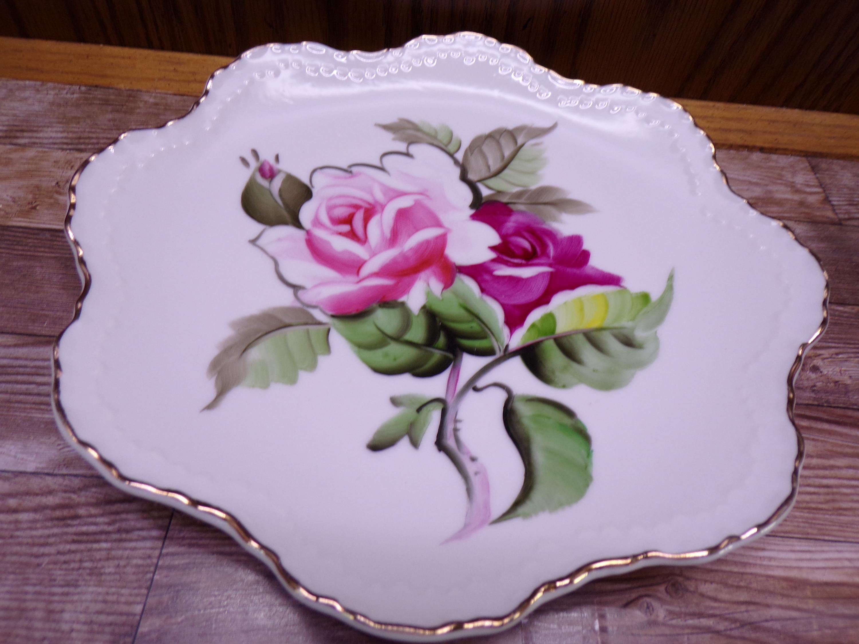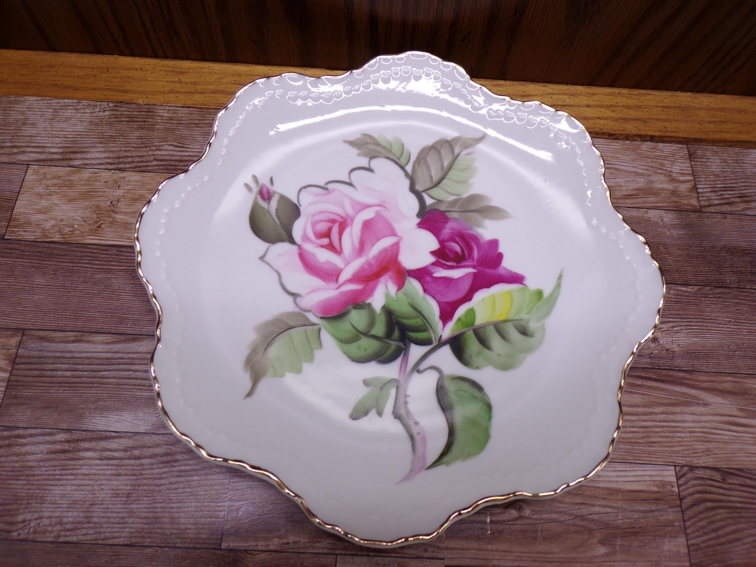 2511 Lefton China Vintage Pink Red Rose 8" Hand Painted Plate Gold Trimmed - Great Condition