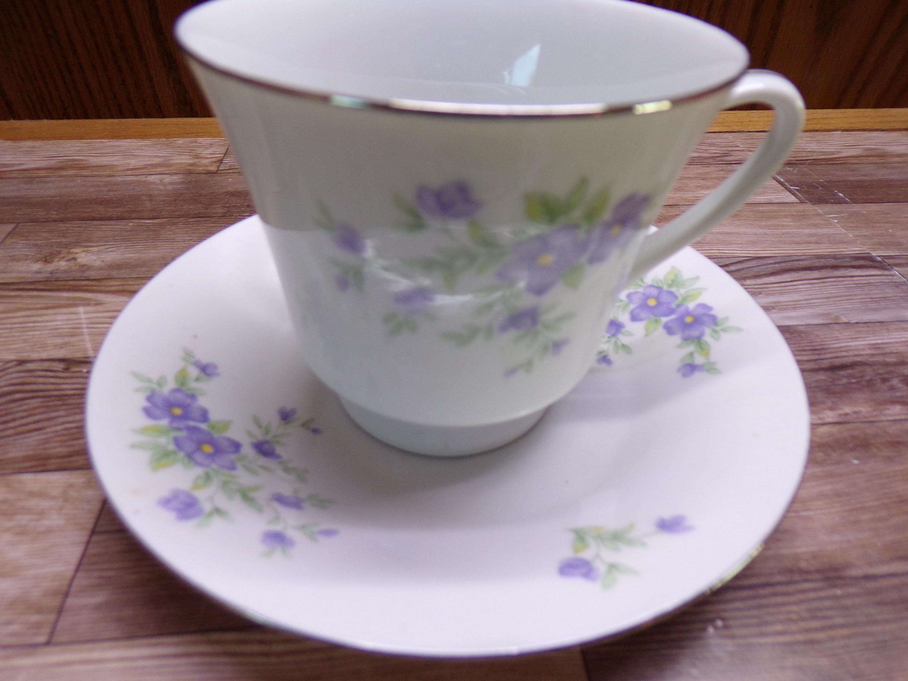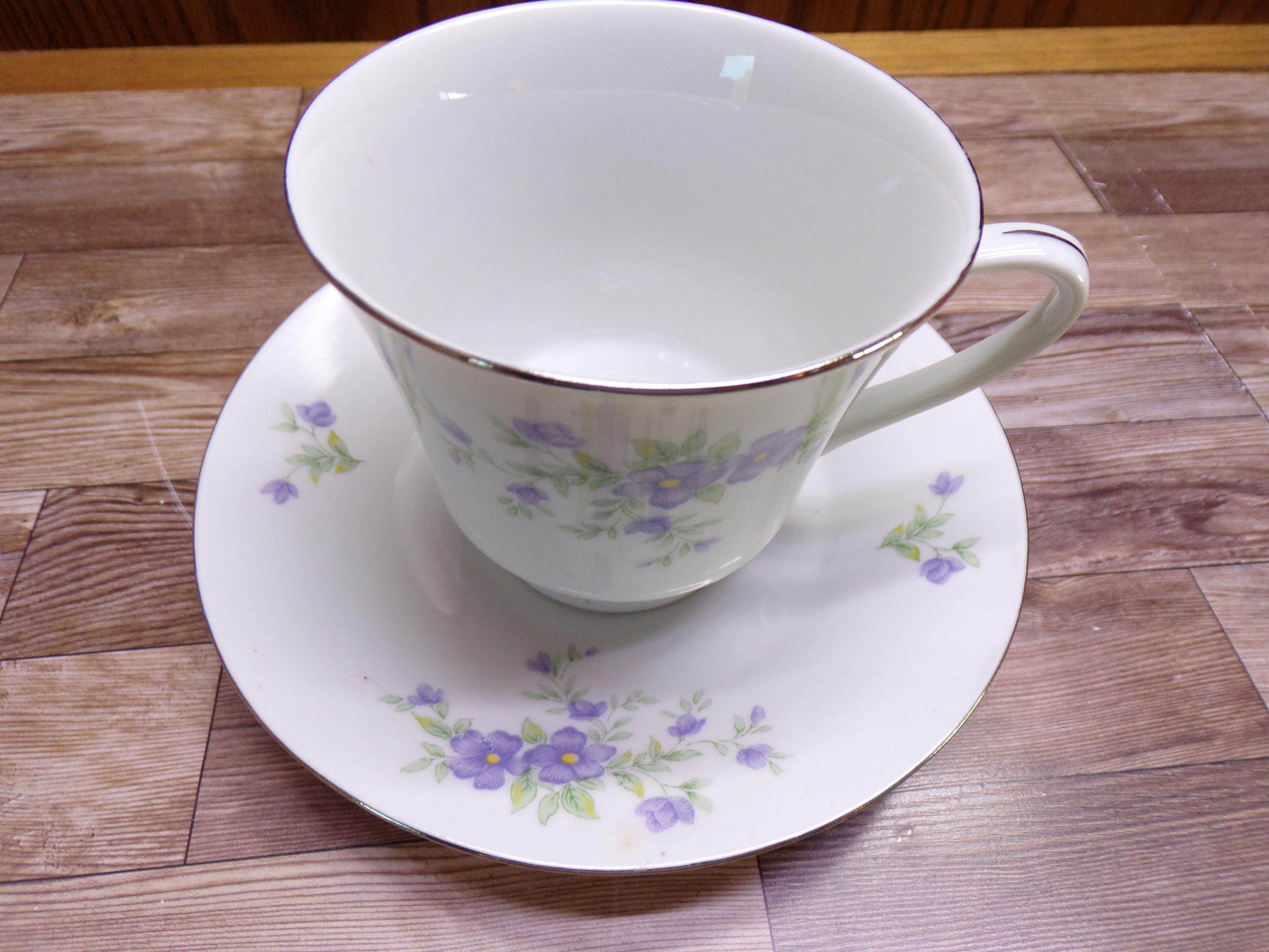 2511 Ling Han Purple Floral Coffee / Teacup & Saucer - Great Condition