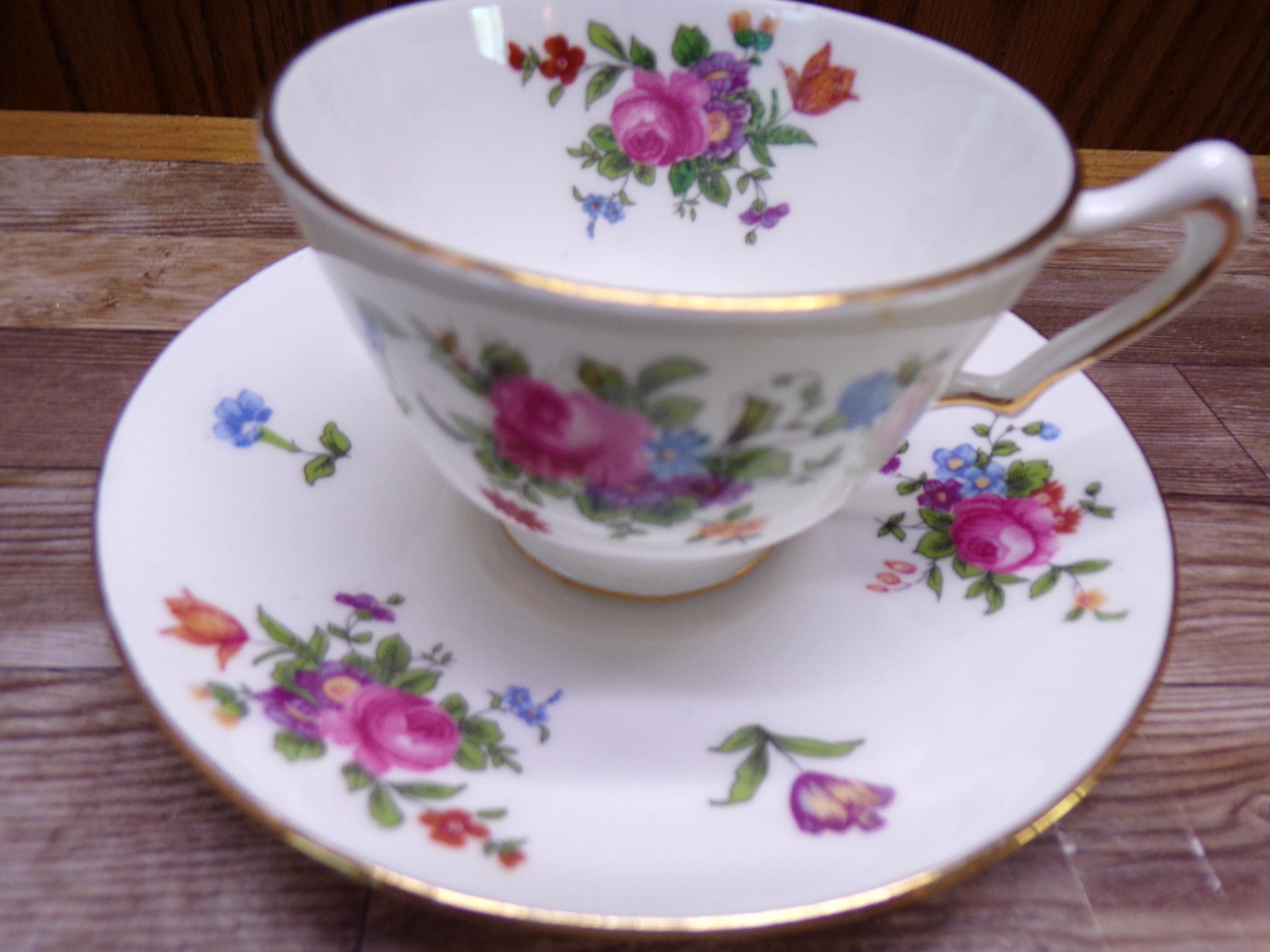 2511 Crown Staffordshire Vintage Teacup & Saucer Beautiful Floral Made in England - Great Condition