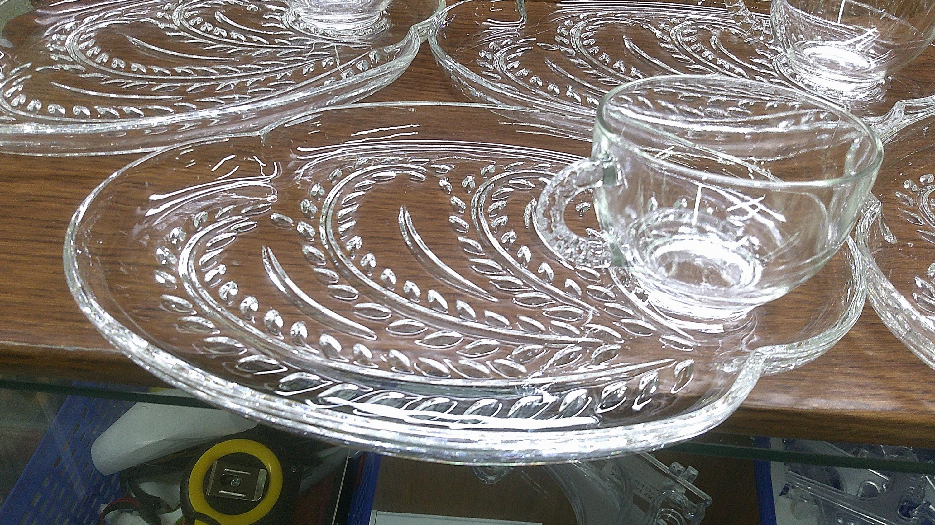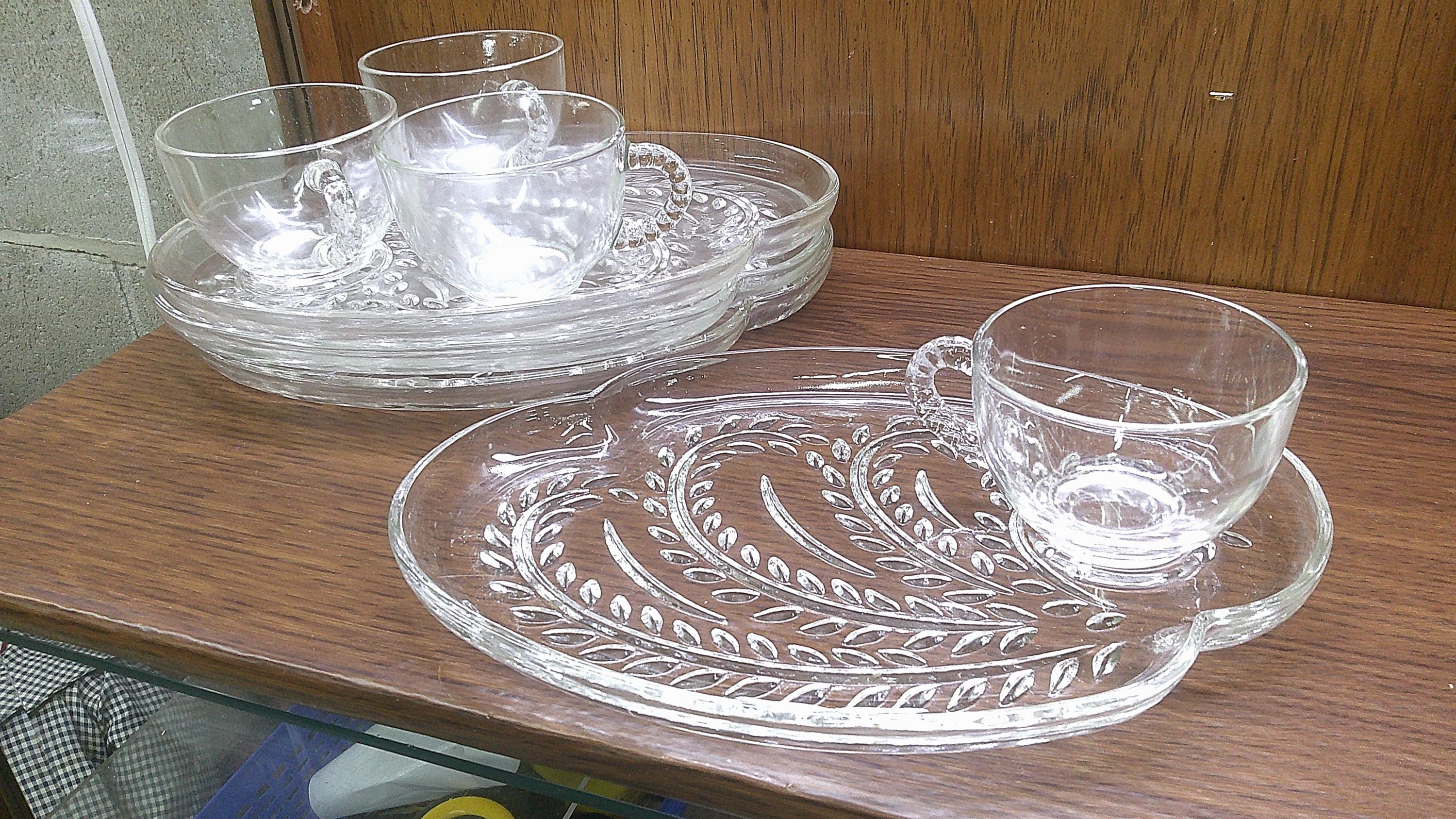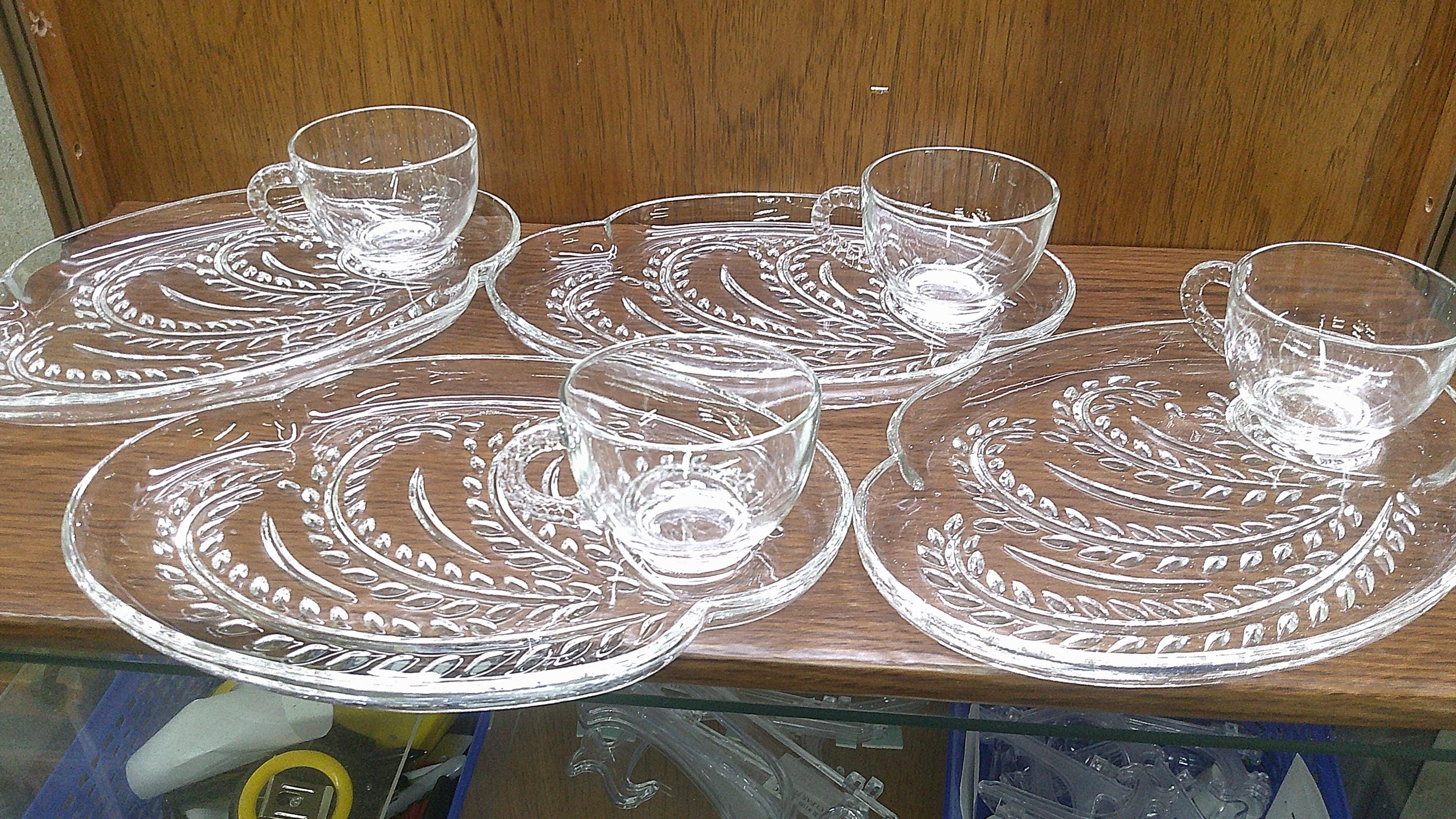 2511 Federal Glass Hospitality 8 pc Glass Snack Tray Set Vintage 1950's Homestead Wheat A-16 (4) Plates & (4) Cups - Great Condition