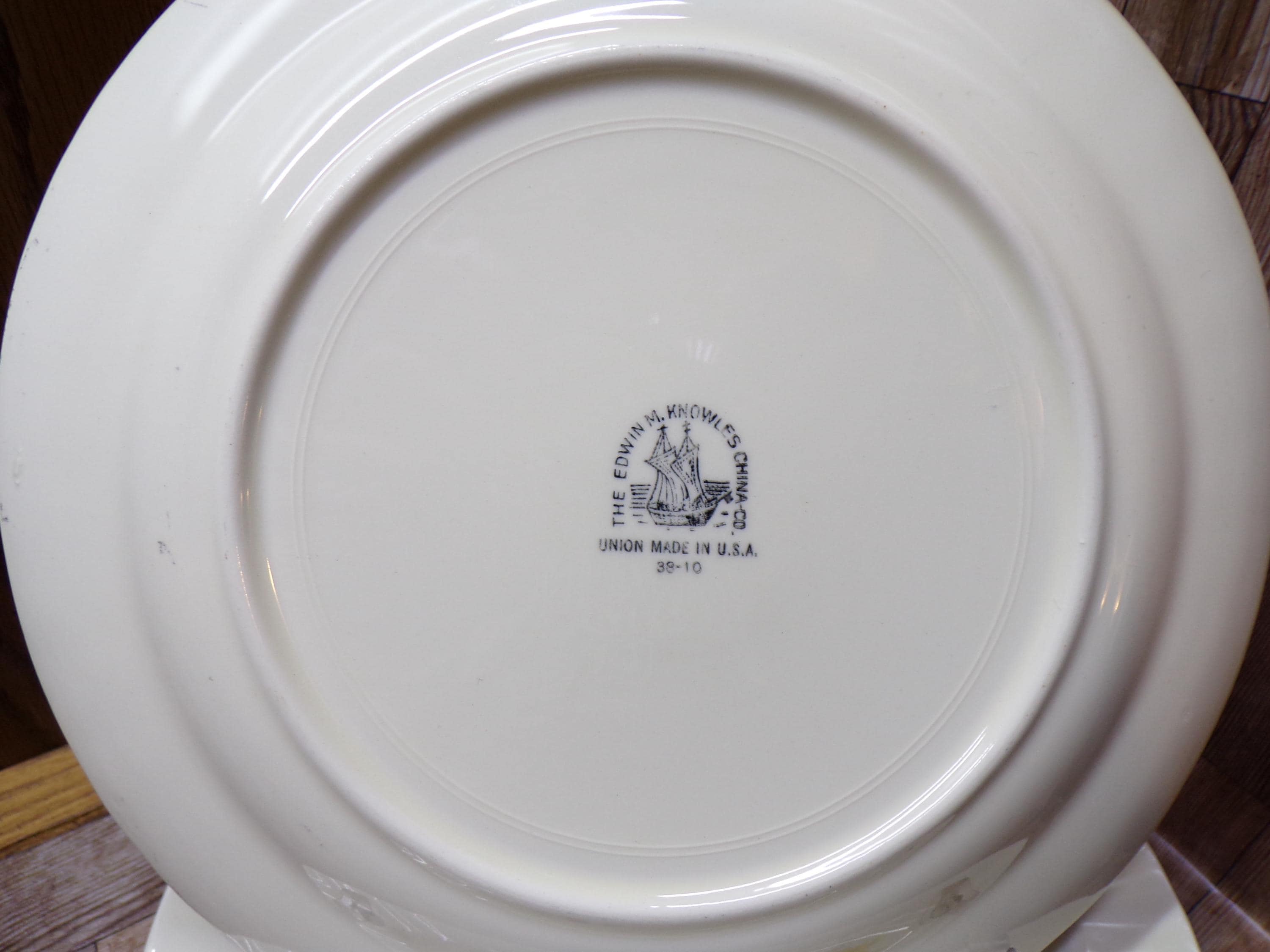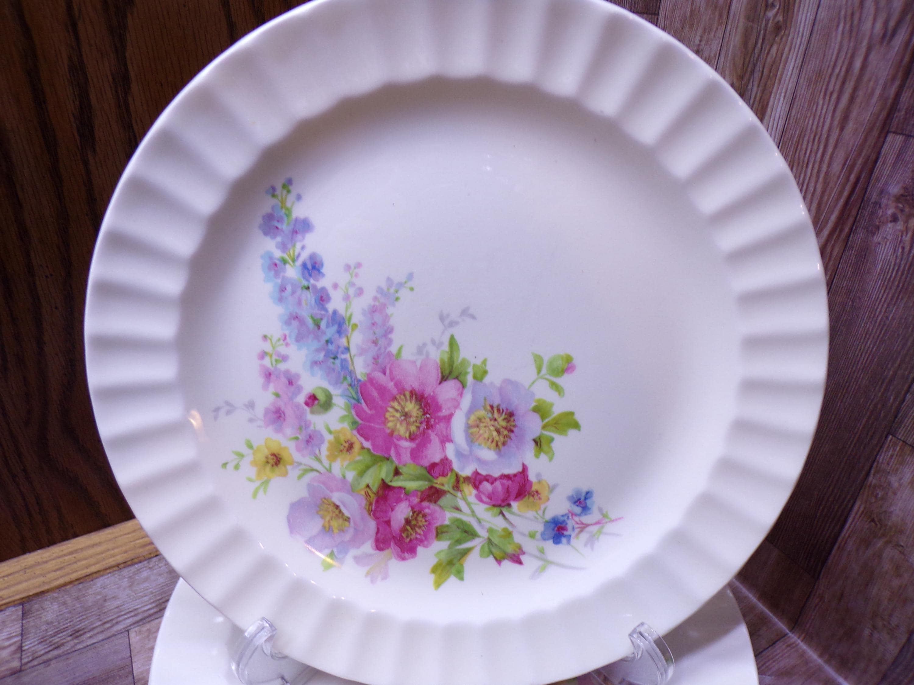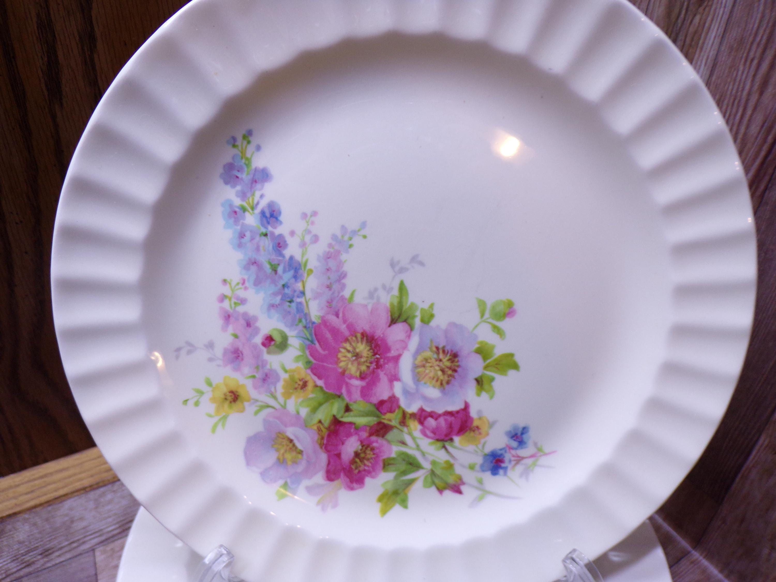 2511 Edwin Knowles China Co. 38-10 Spring Bouquet 9.25" Semi-vitreous Vintage 1940's Fluted Lunch / Snack Plates Set of 6 Dinnerware Made in the USA - Great Condition