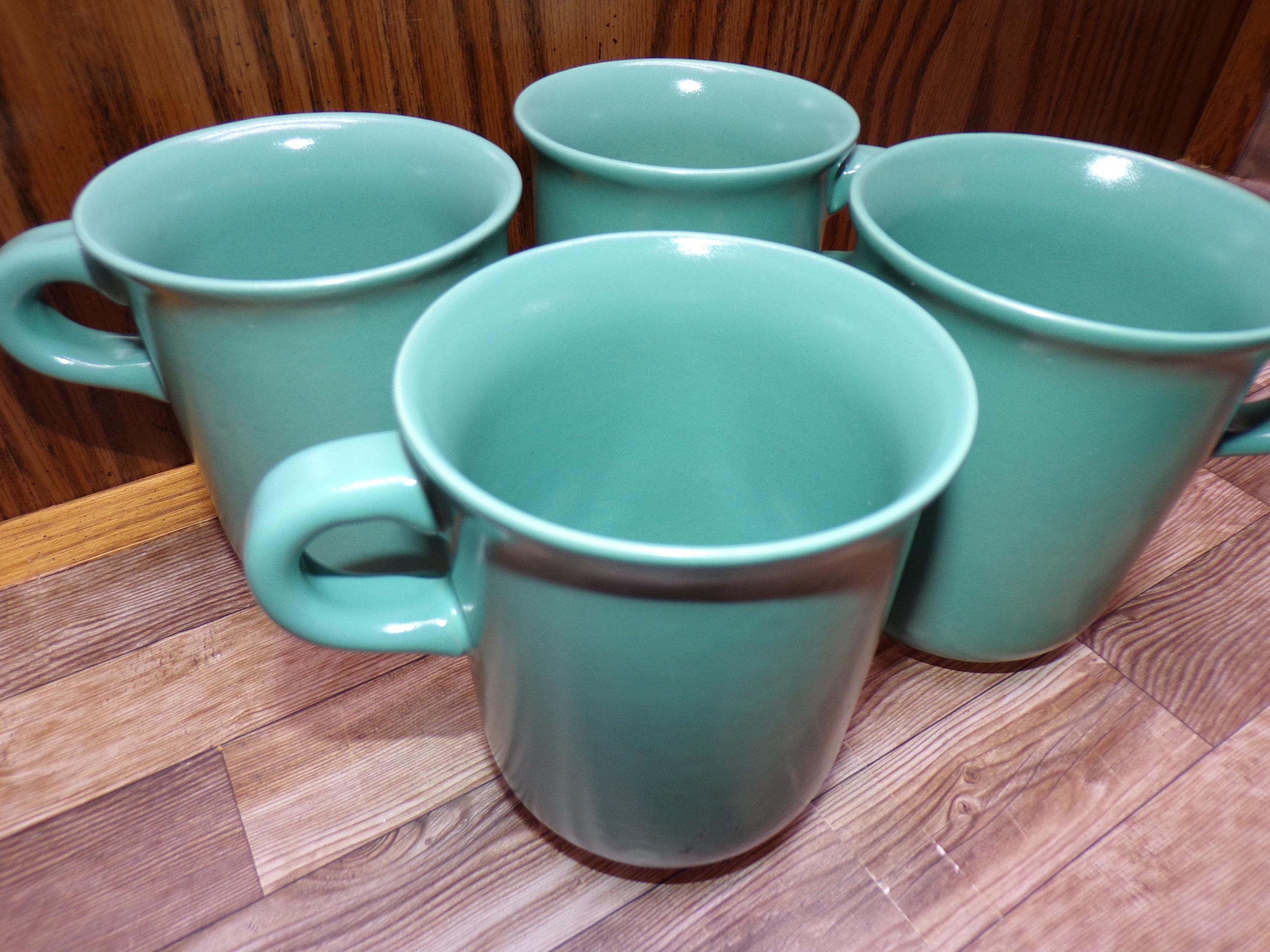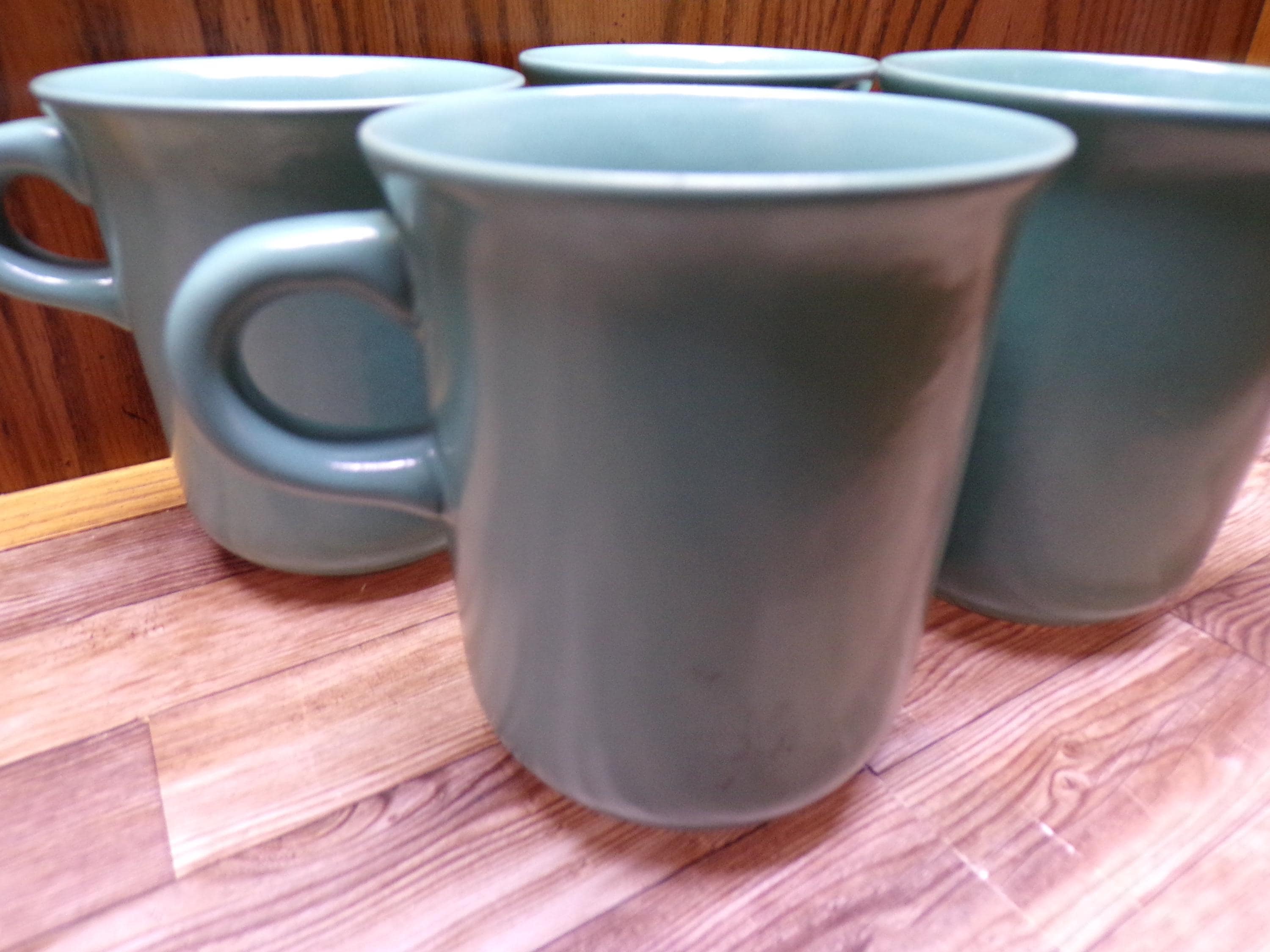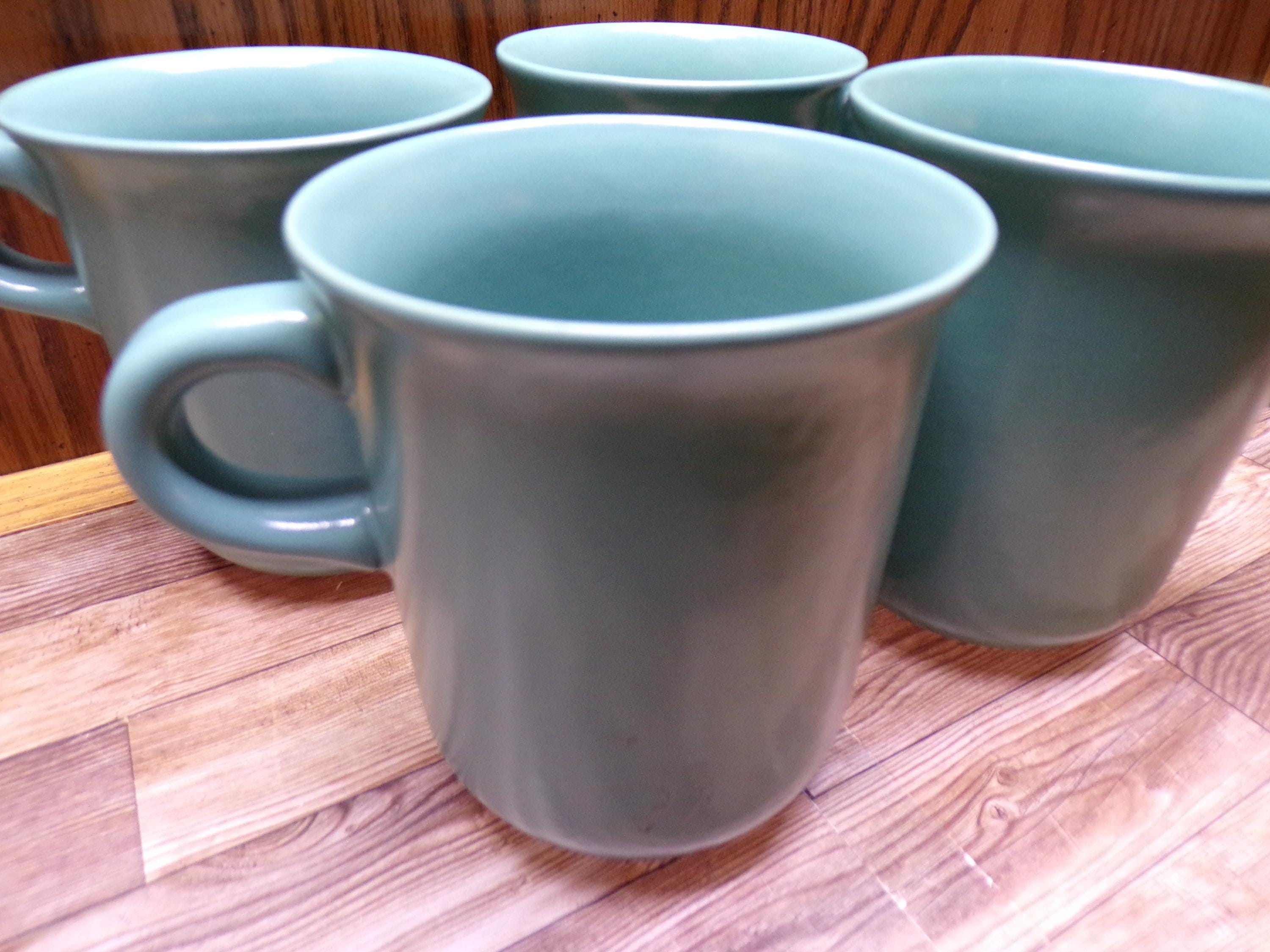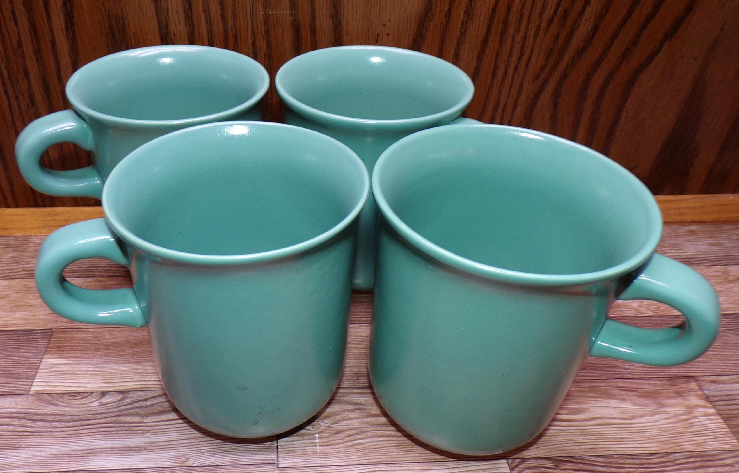 2511 Dansk Mesa Turquoise Small Handle 4" 10 oz Cups Mugs Set of 4 Portugal Stoneware Microwave & Dishwasher Safe - Great Condition