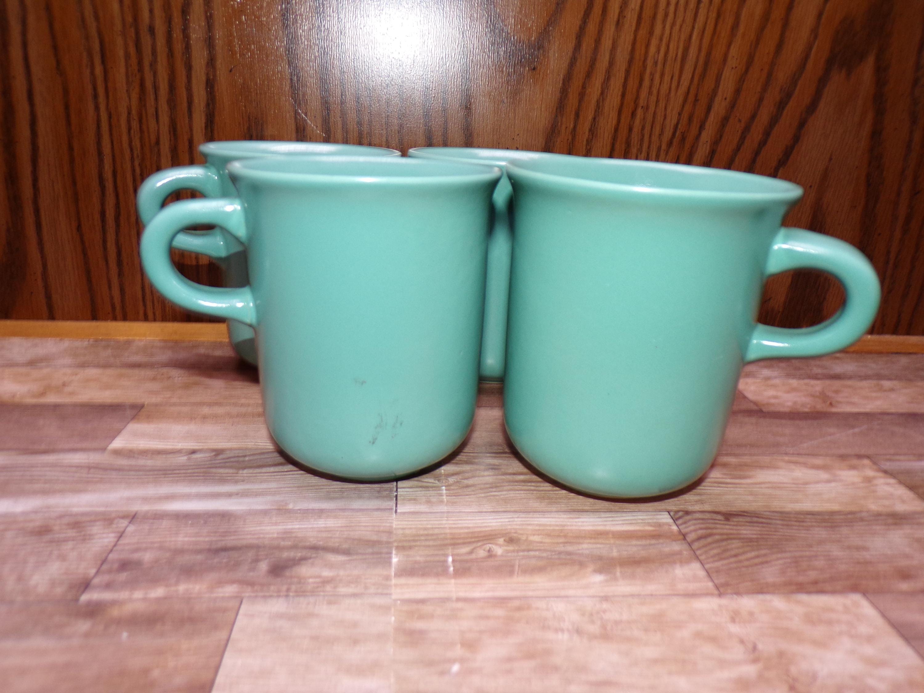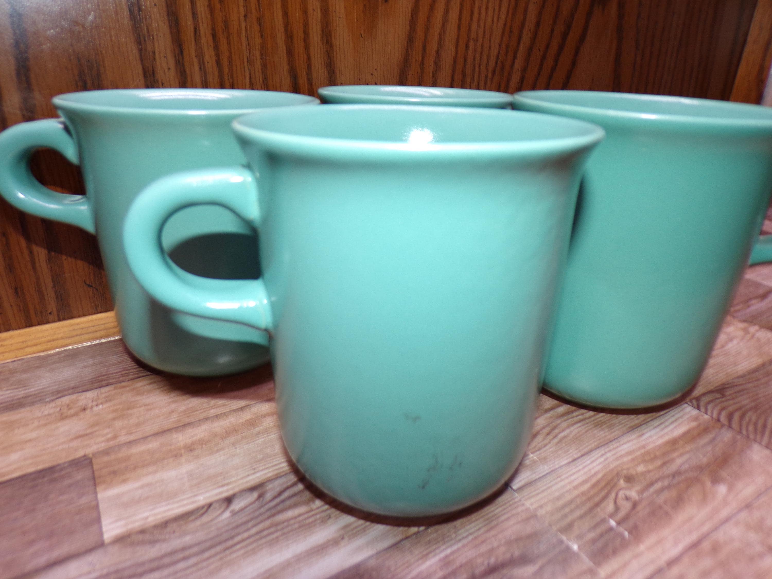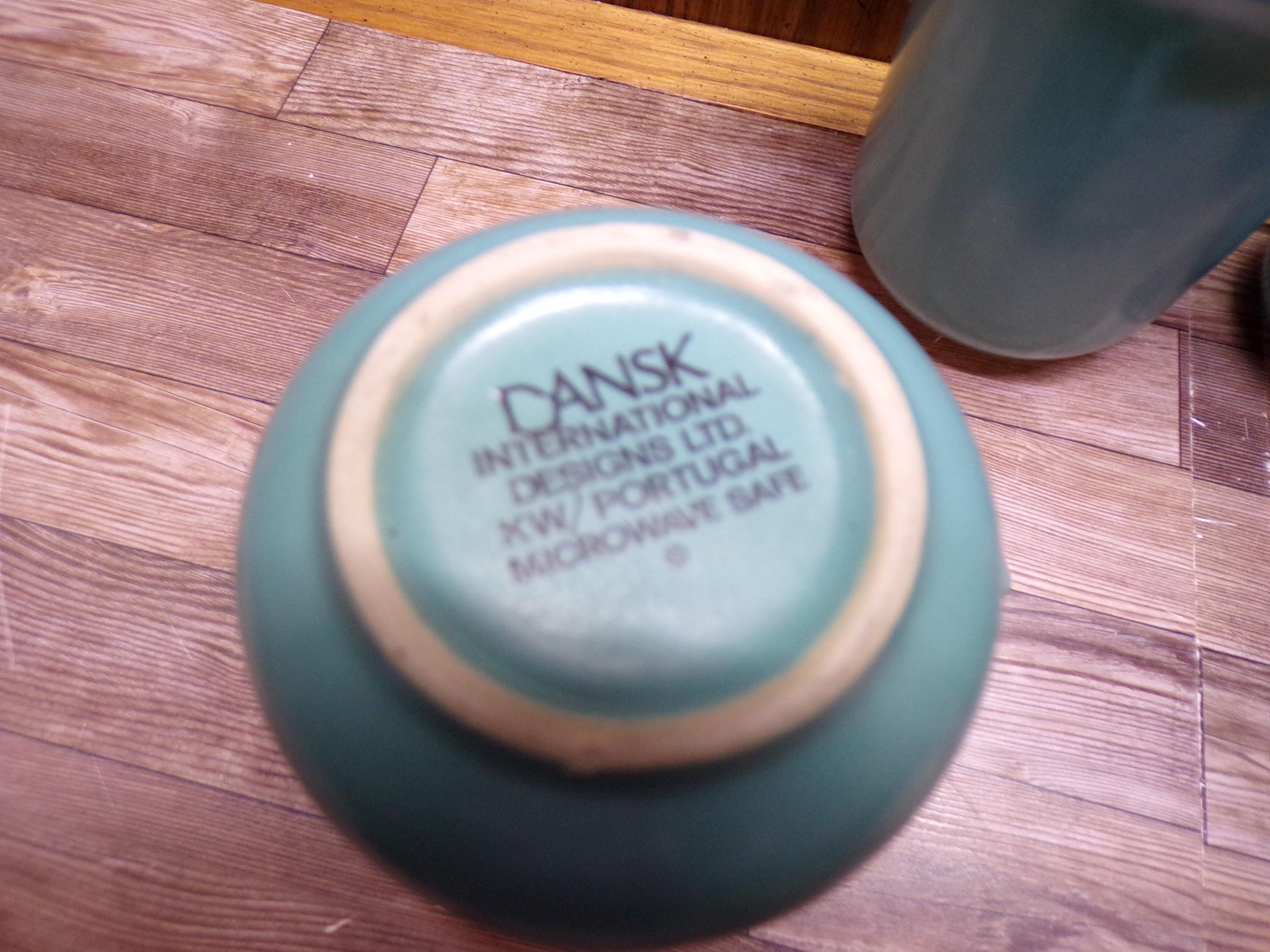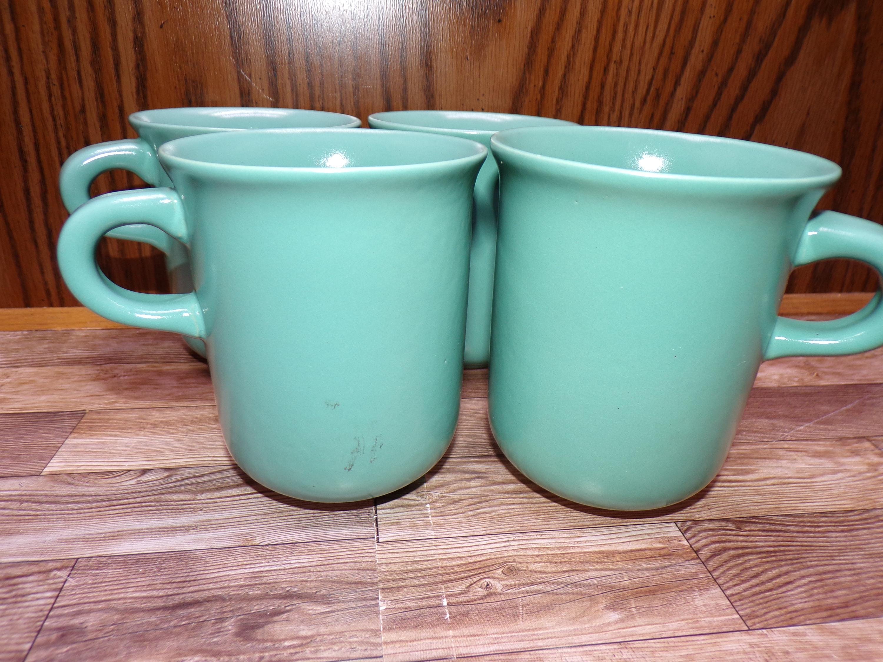 2511 Dansk Mesa Turquoise Small Handle 4" 10 oz Cups Mugs Set of 4 Portugal Stoneware Microwave & Dishwasher Safe - Great Condition