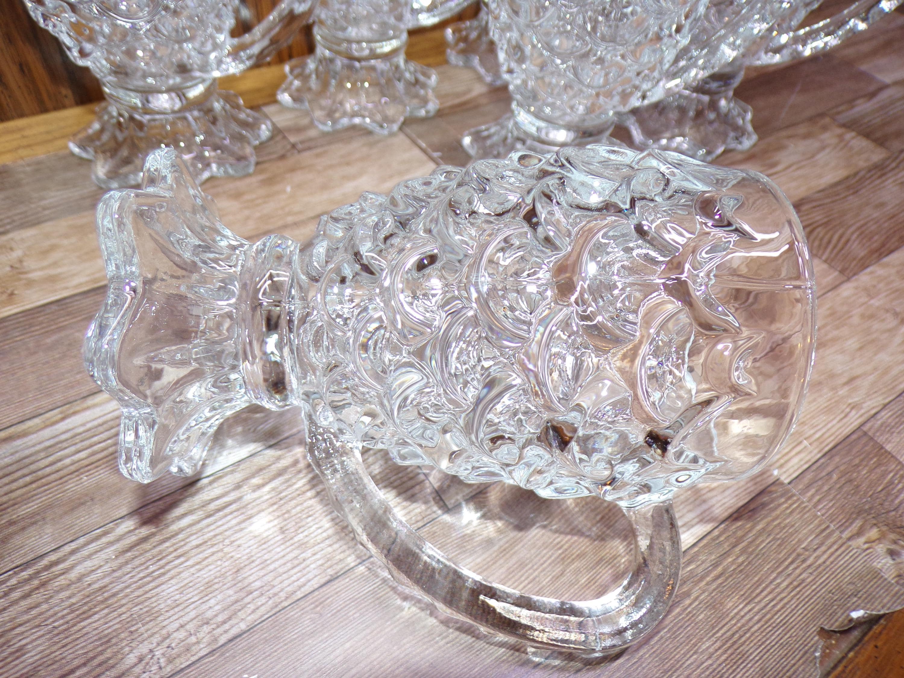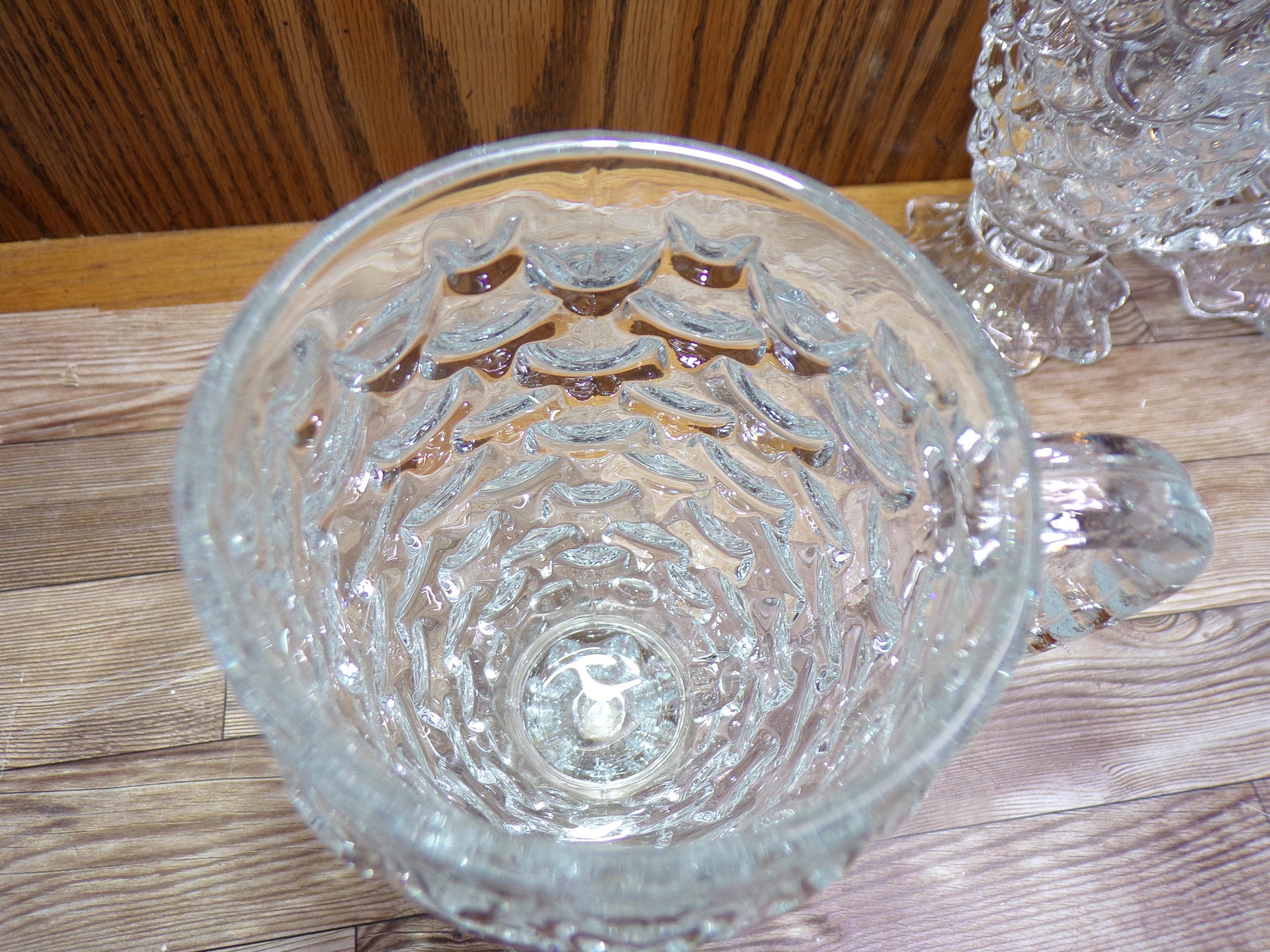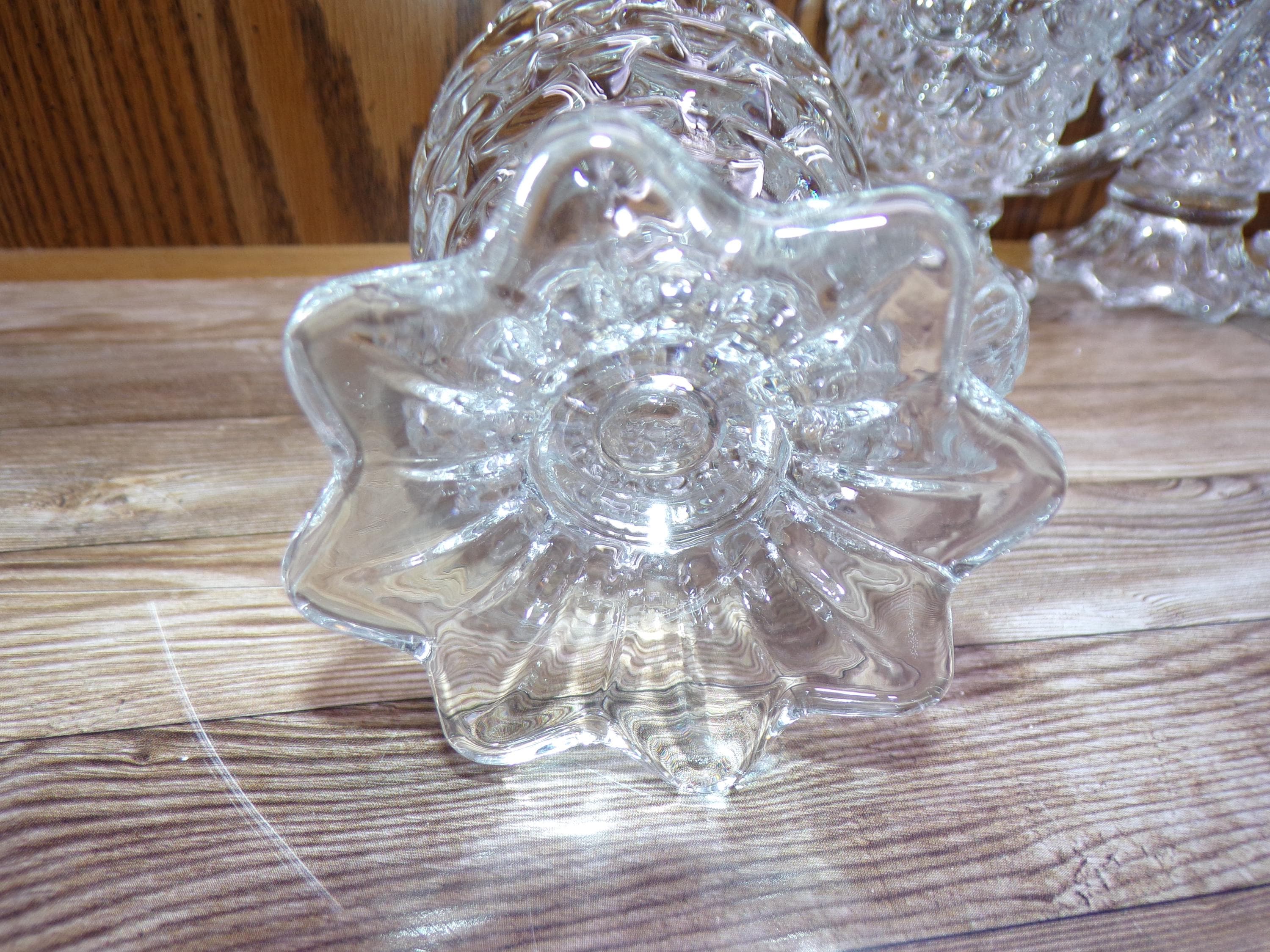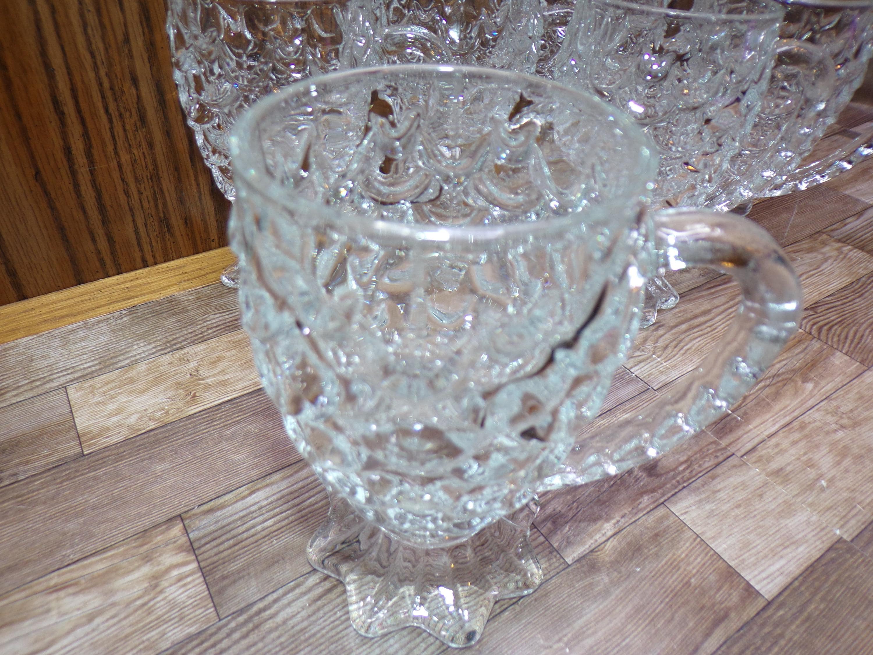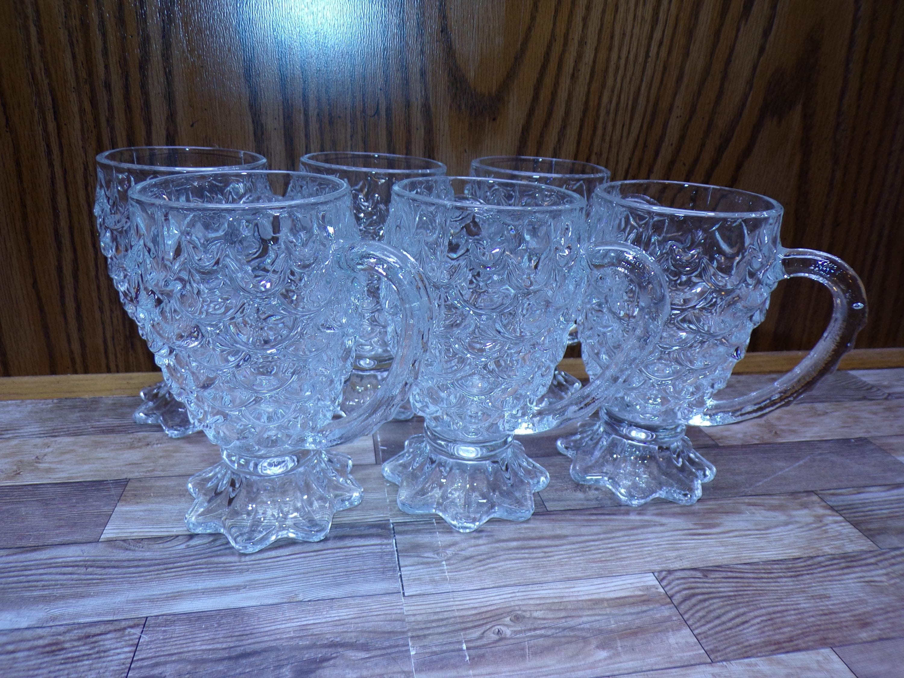 2511 Unique Fish Scale Pattern Clear Glass Footed Mugs 5" Set of 6 - No Chips, Cracks, Excessive Scratches, Films or Stains Excellent Condition