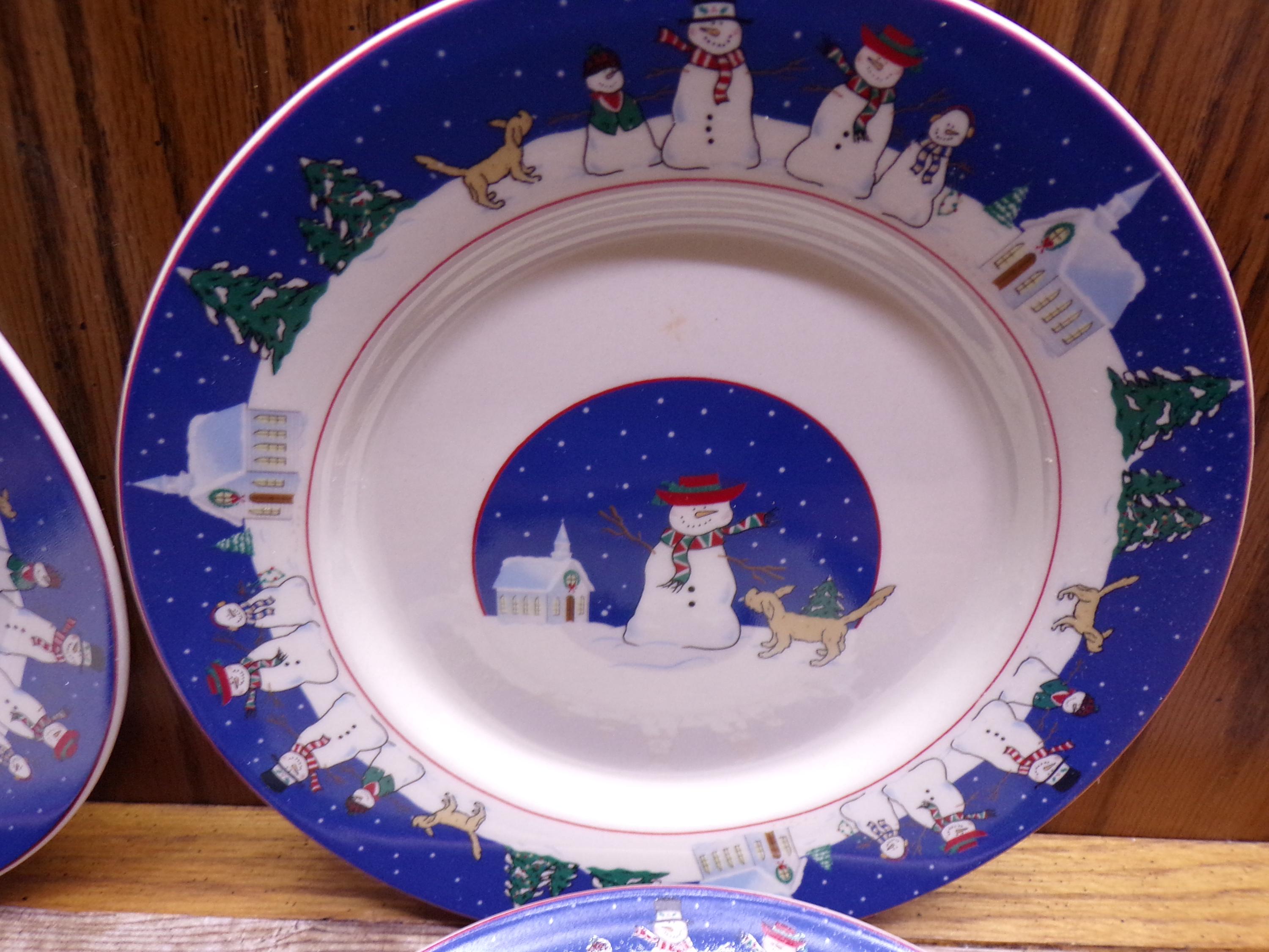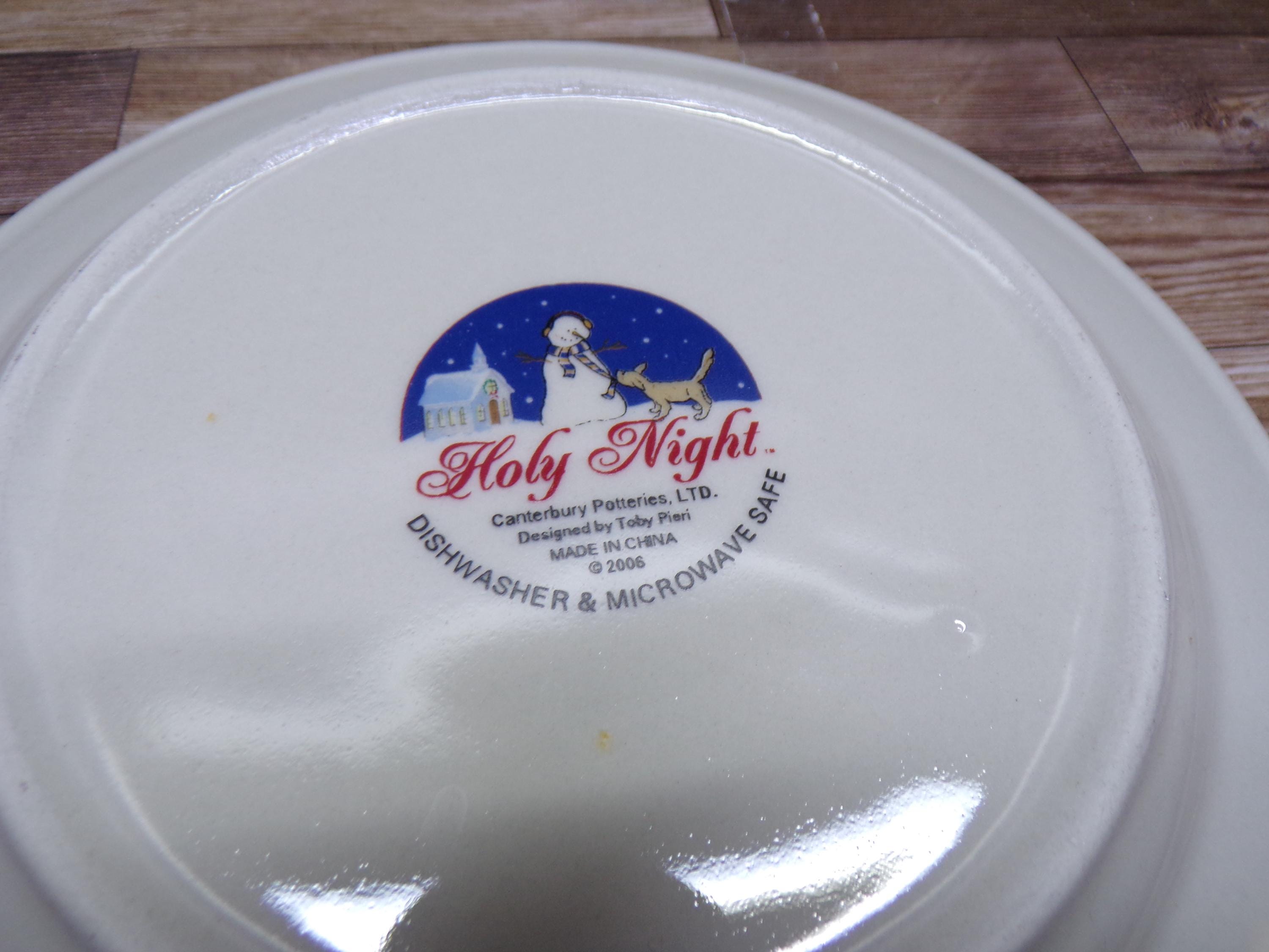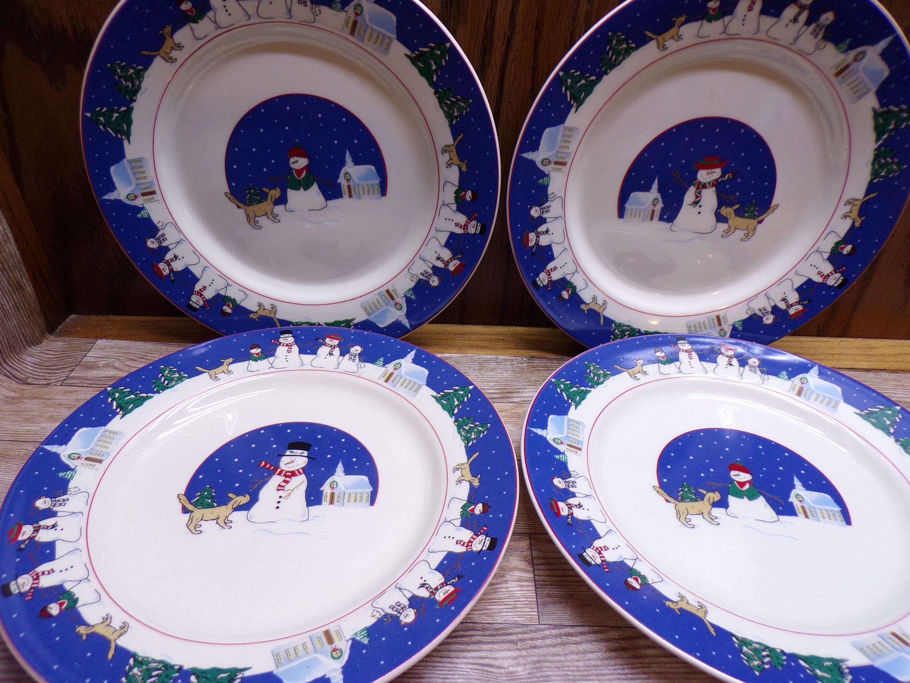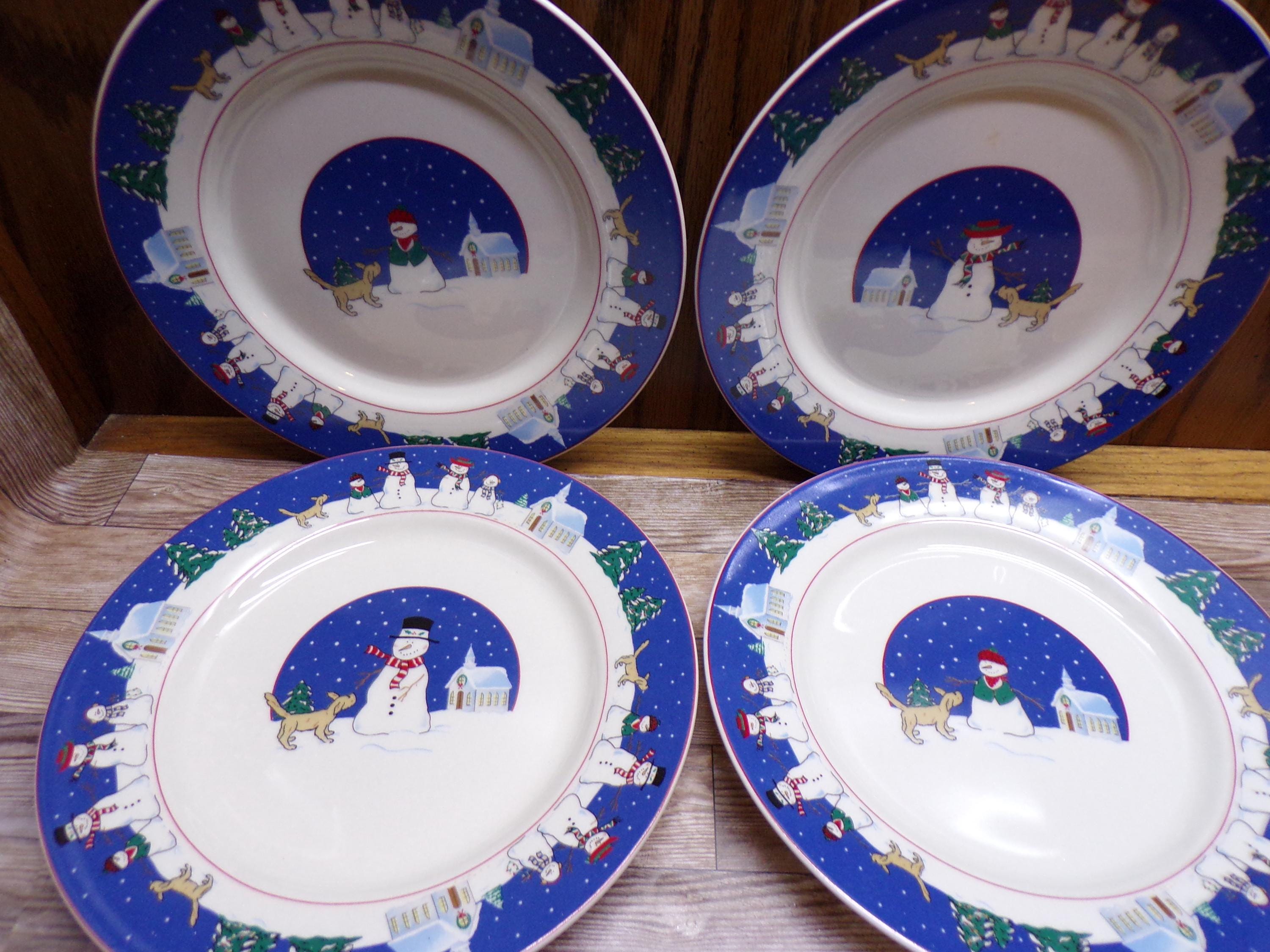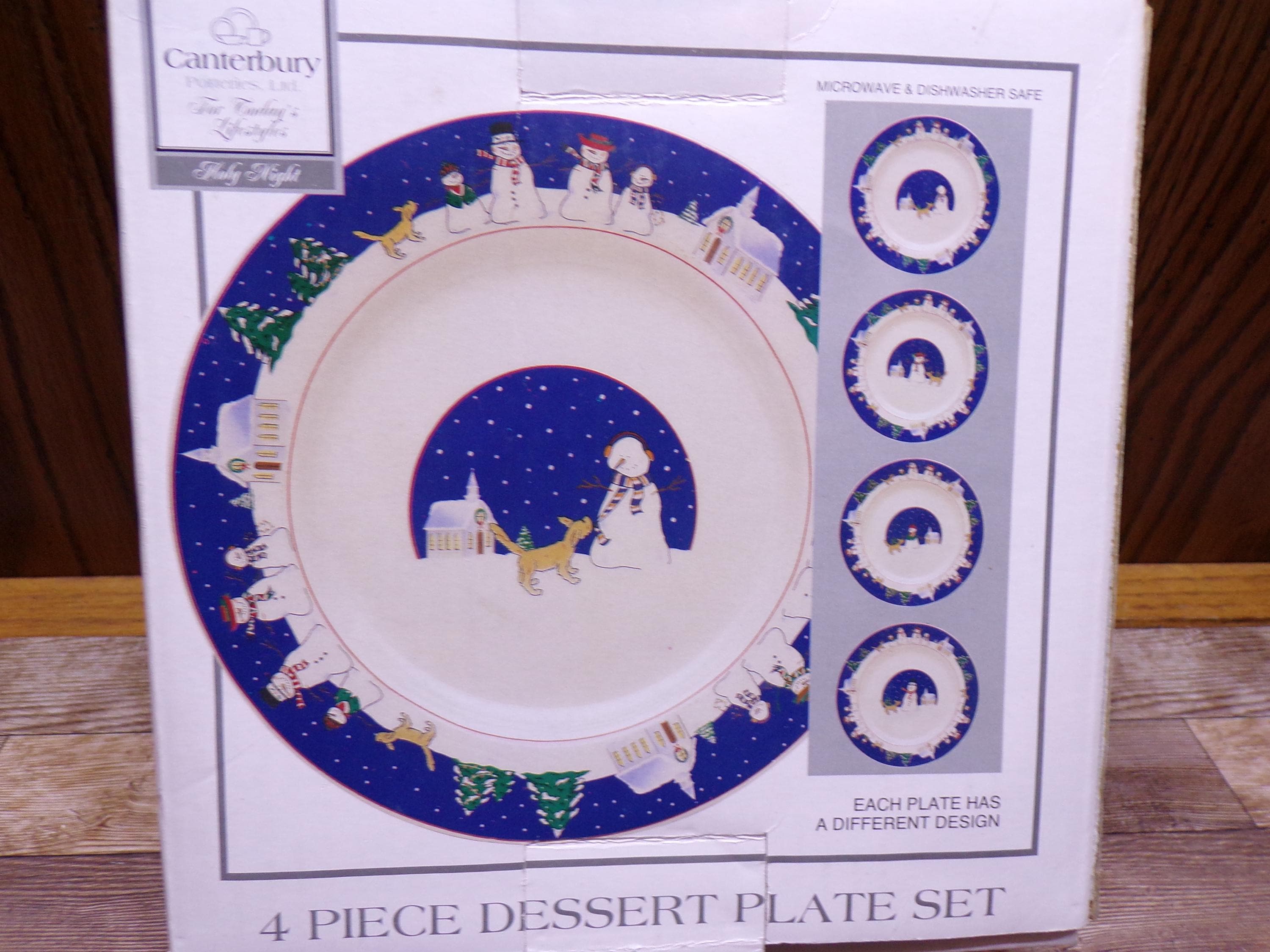 2511 Canterbury Potteries Holy Night 7.5" Dessert Snack Plates Set of 4 Christmas Holiday Snowman & Dog - New in Box