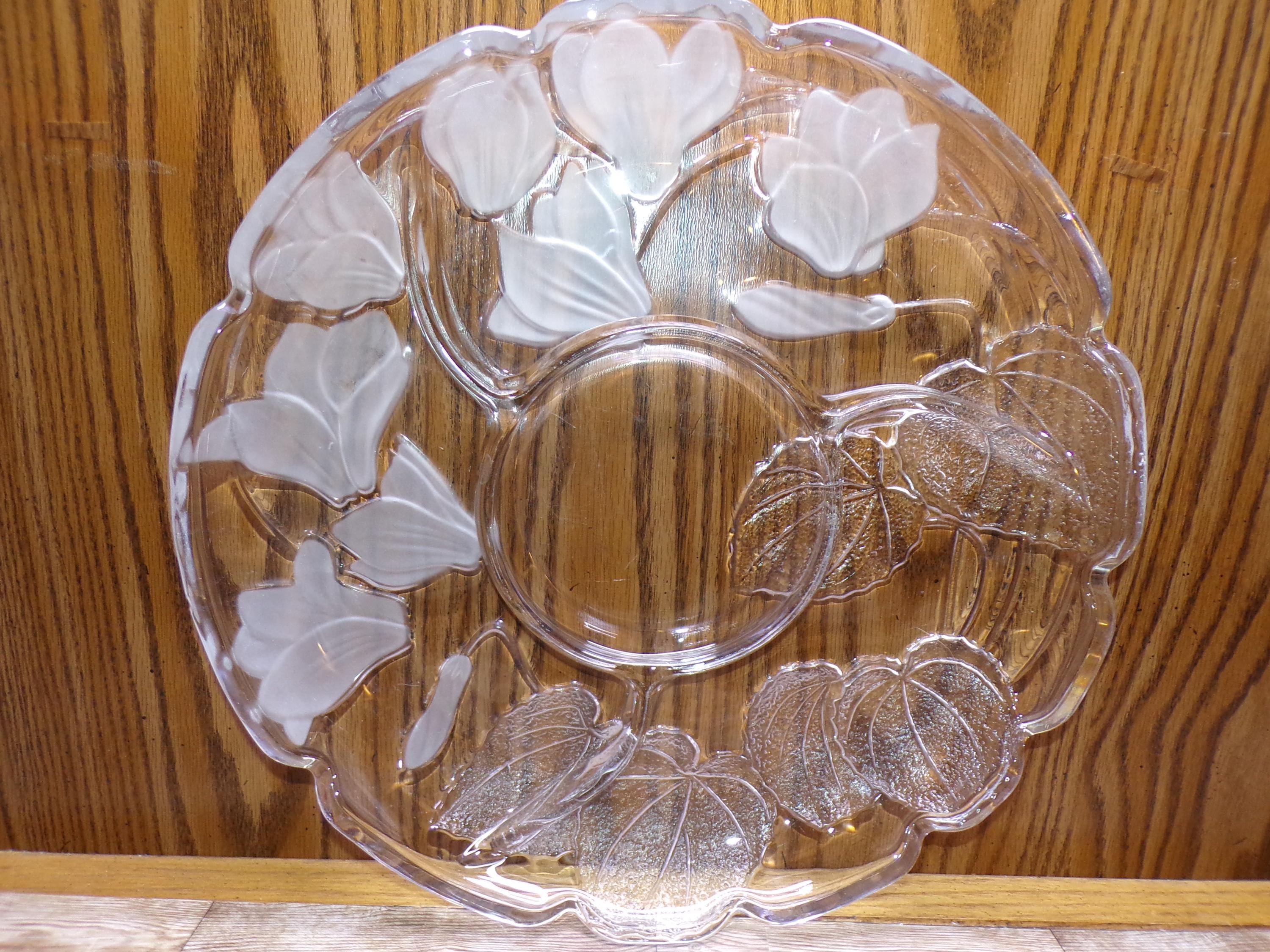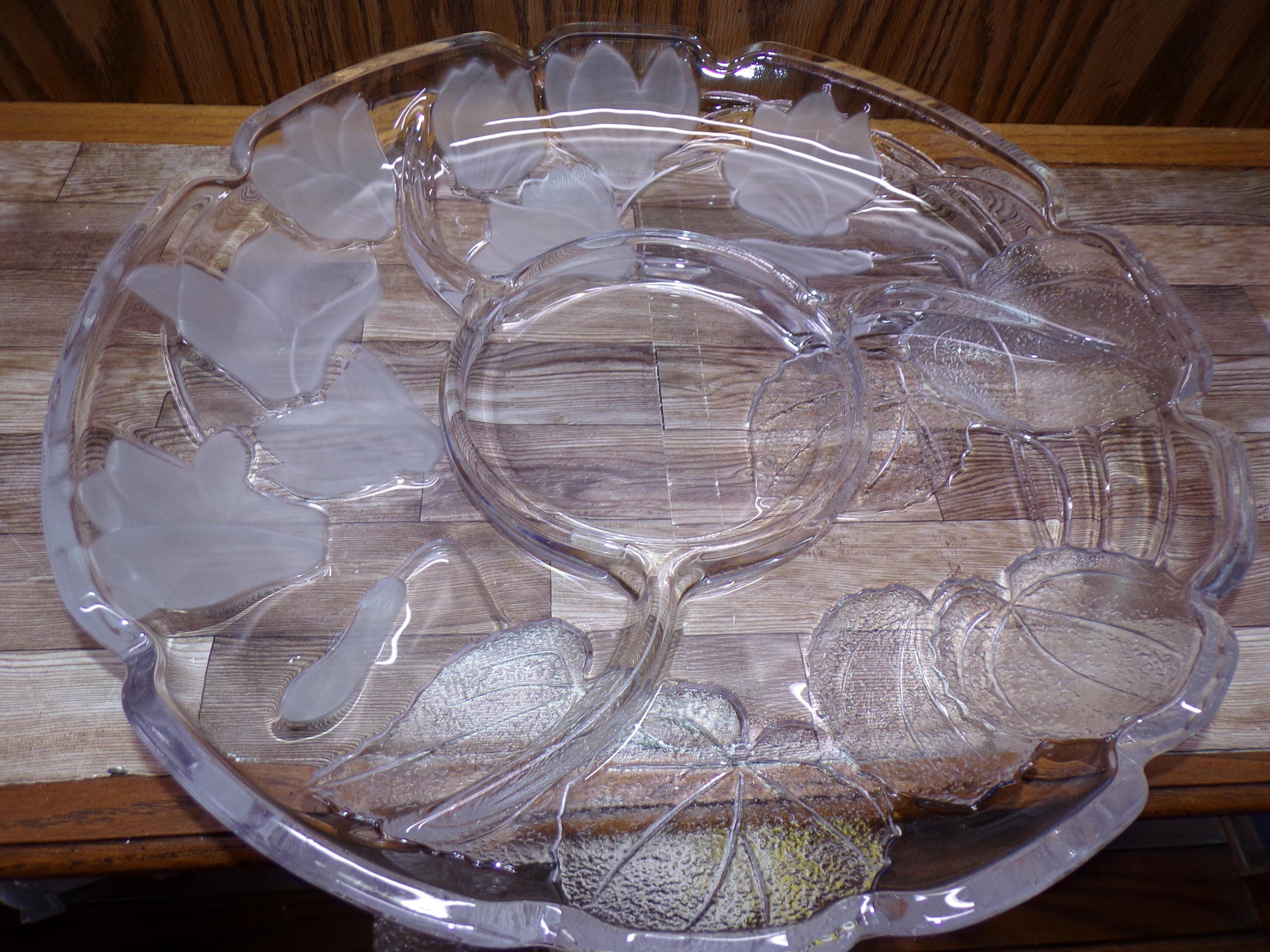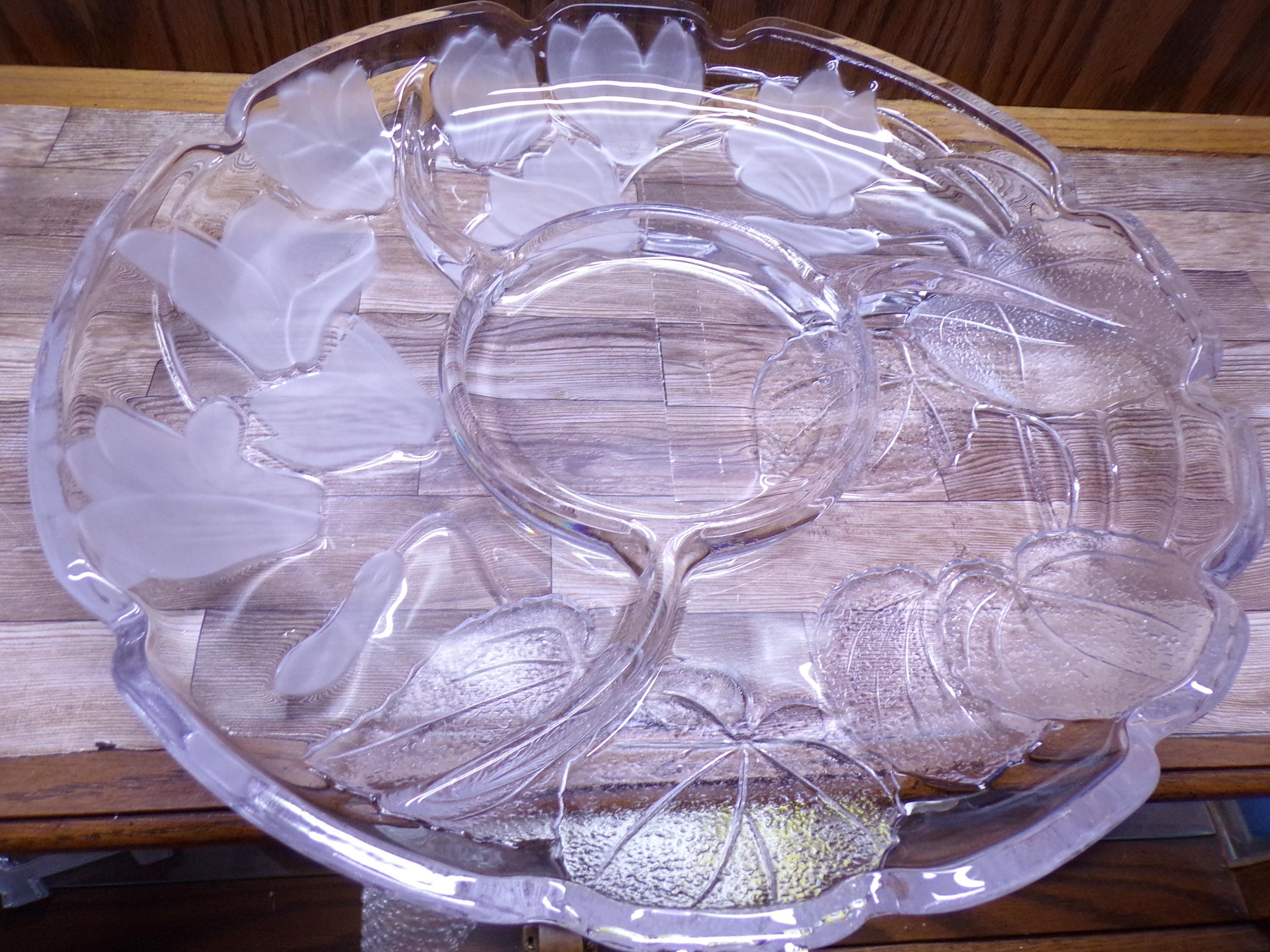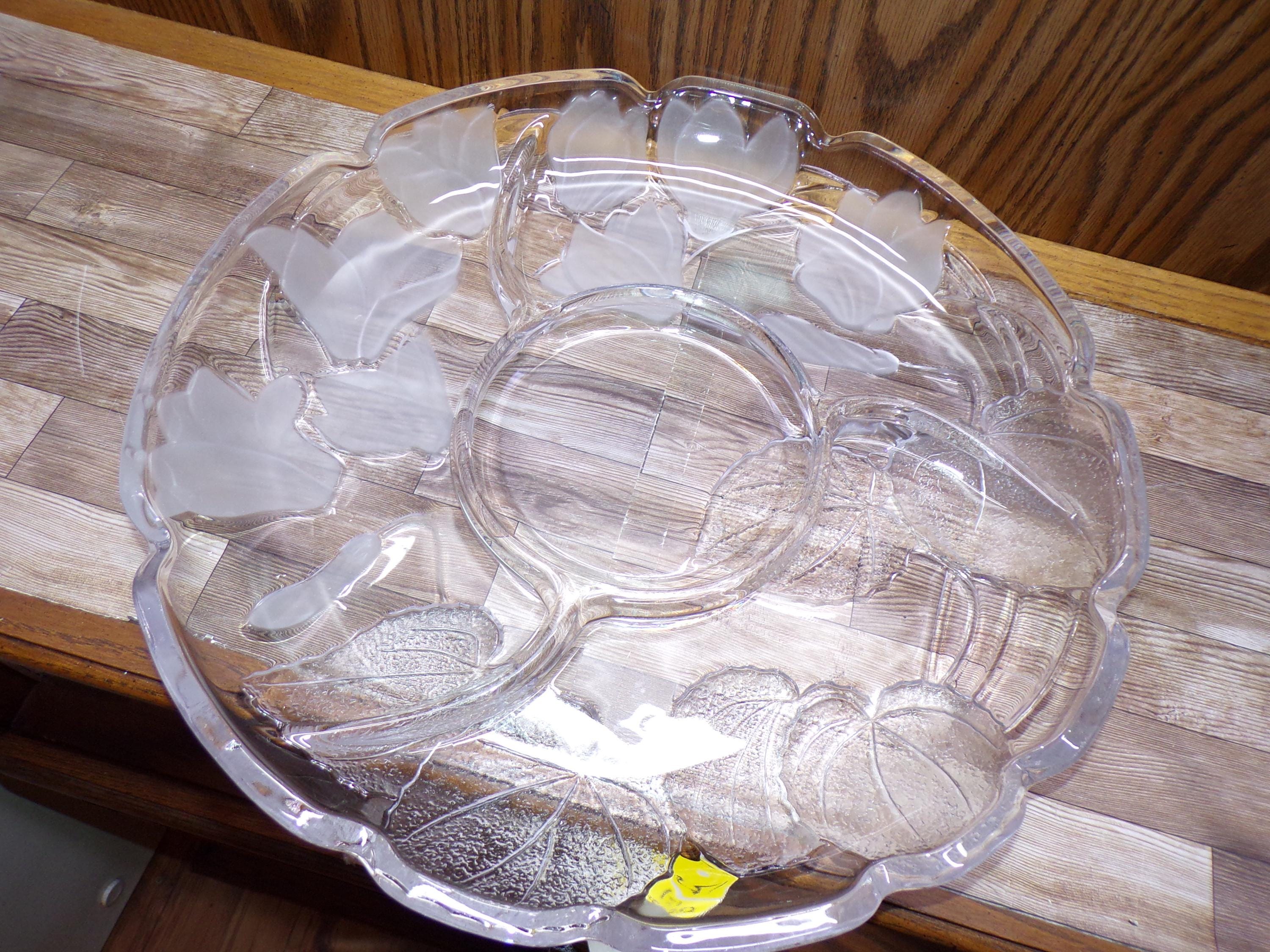 2508 Mikasa Crystal Clear Casandra 14" Clear / Frosted Vintage Divided Serving Tray Platter-Good Condition w/ Couple Light Scratches