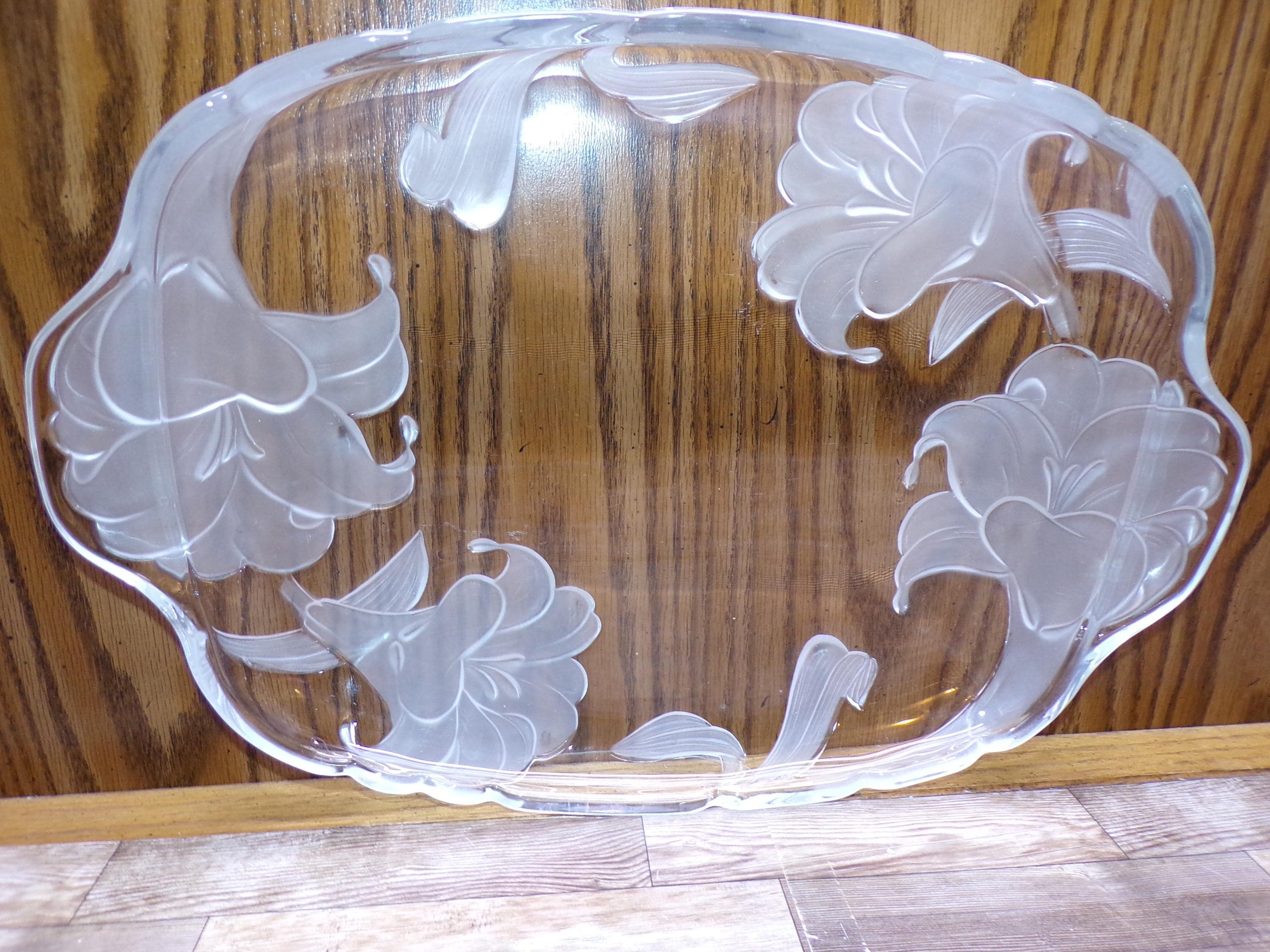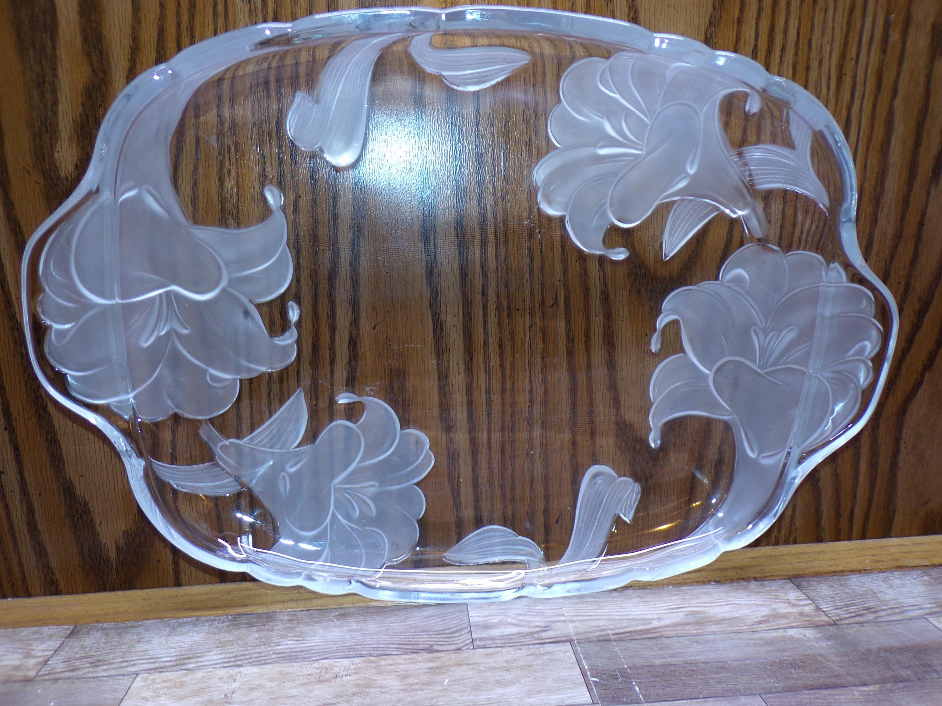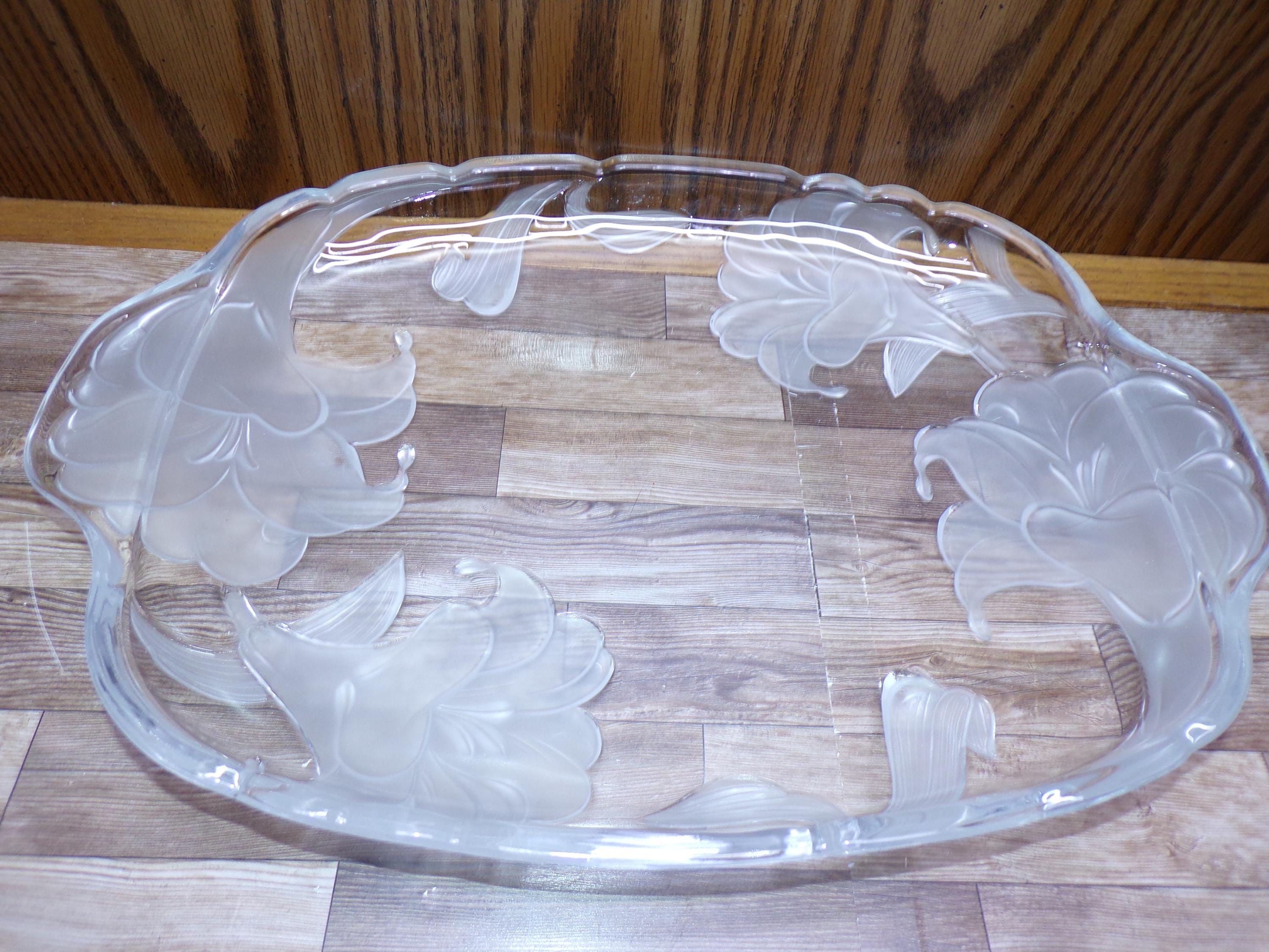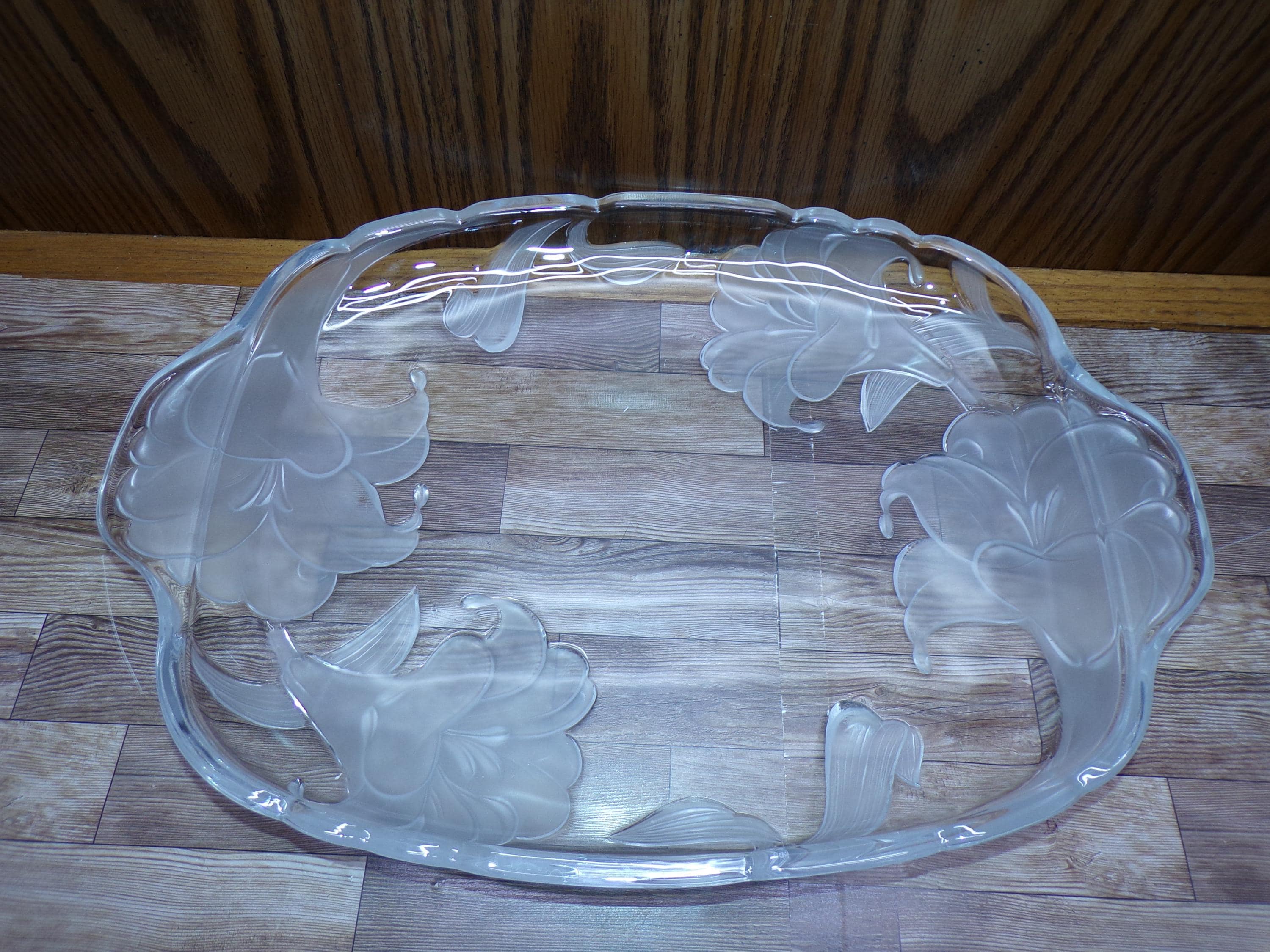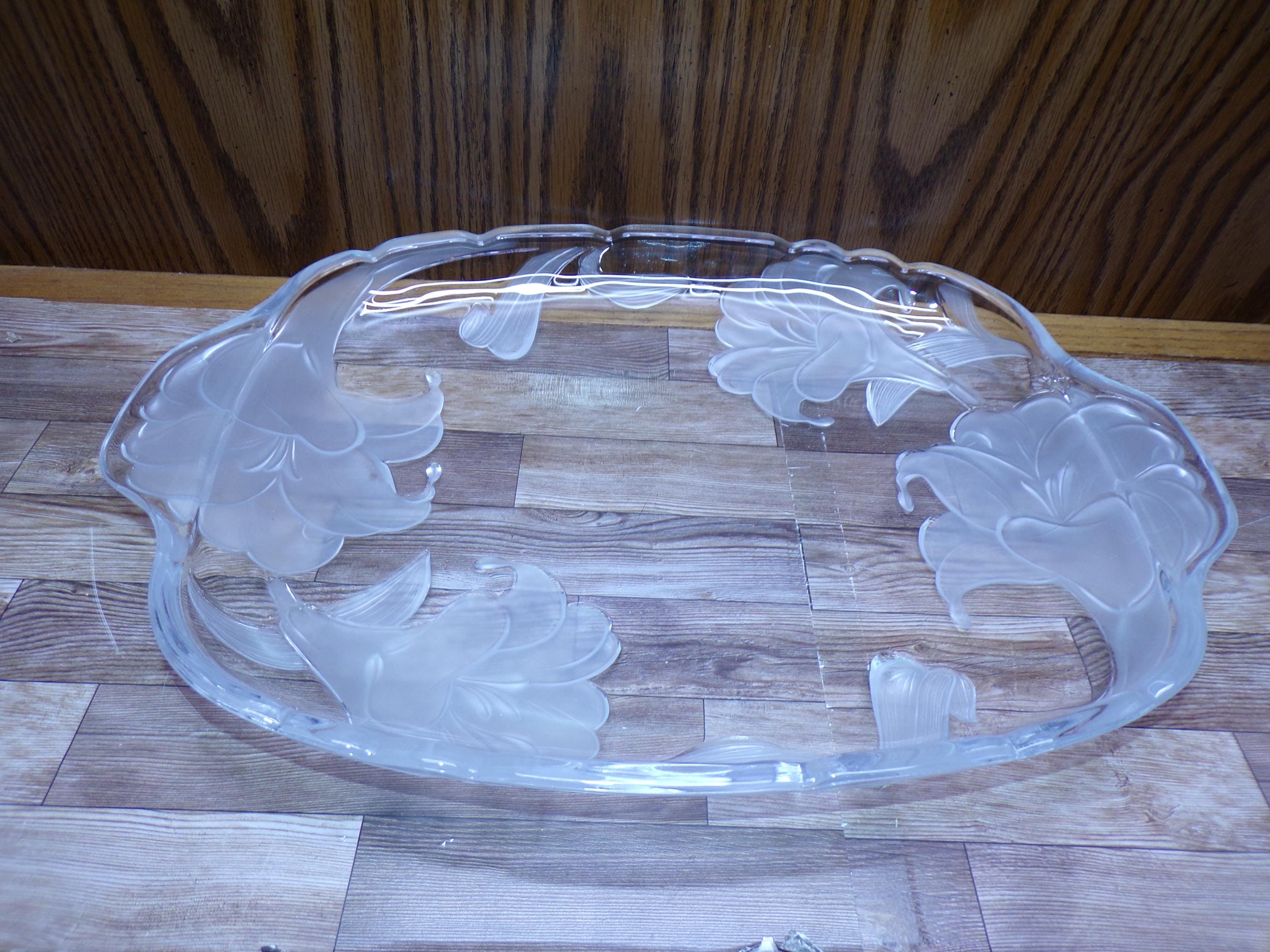 2508 Mikasa Wild Lily Clear / Frosted 15" x 10'5" Vintage Crystal Platter with Handles - Good Condition w/ Couple Light Scratches