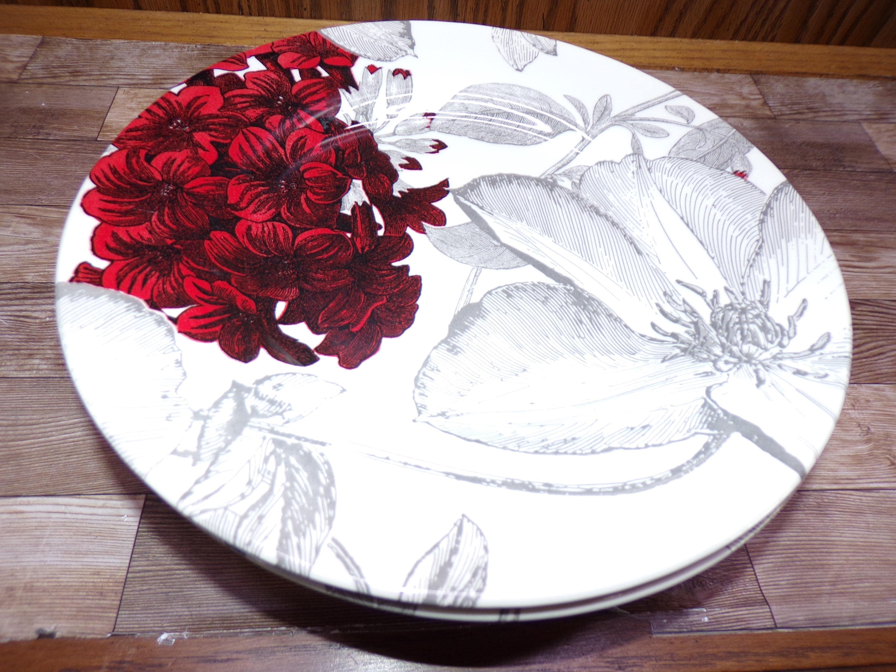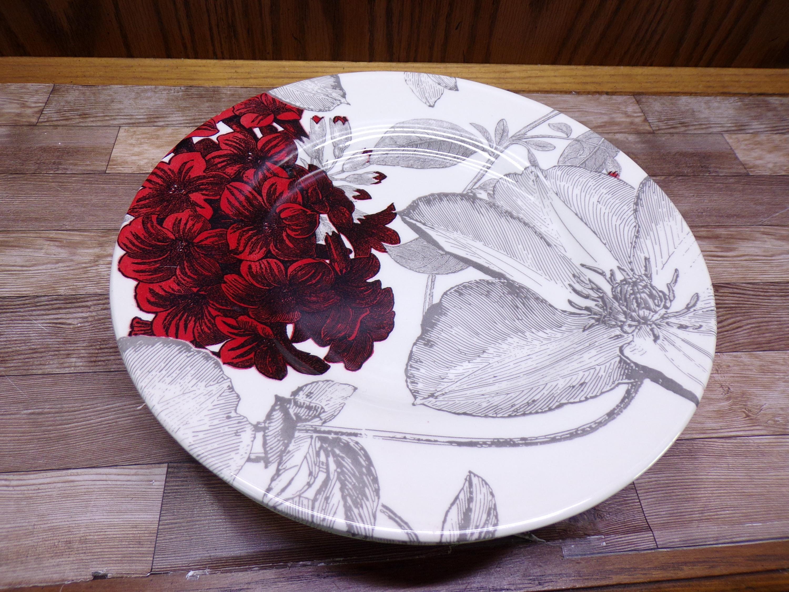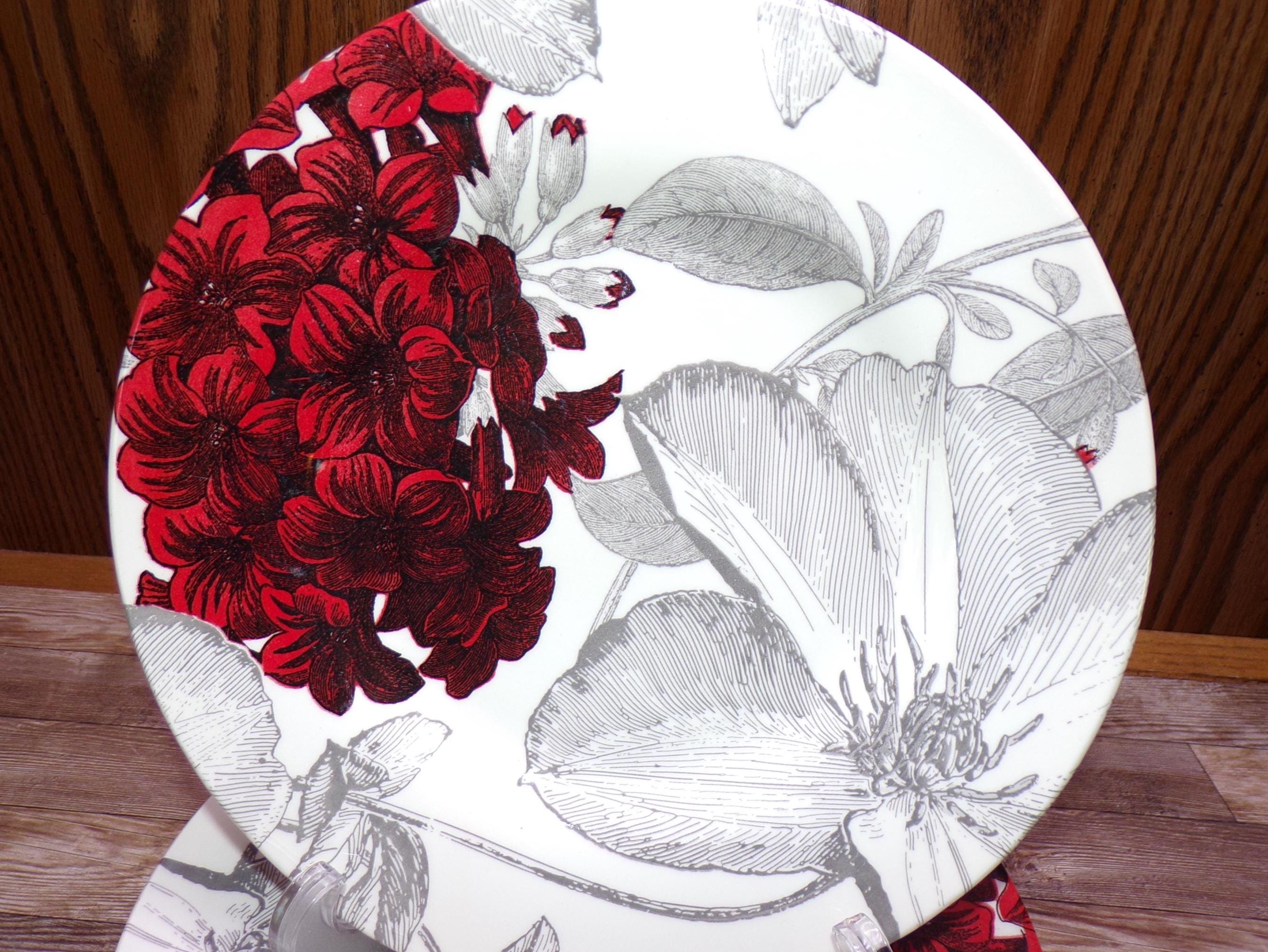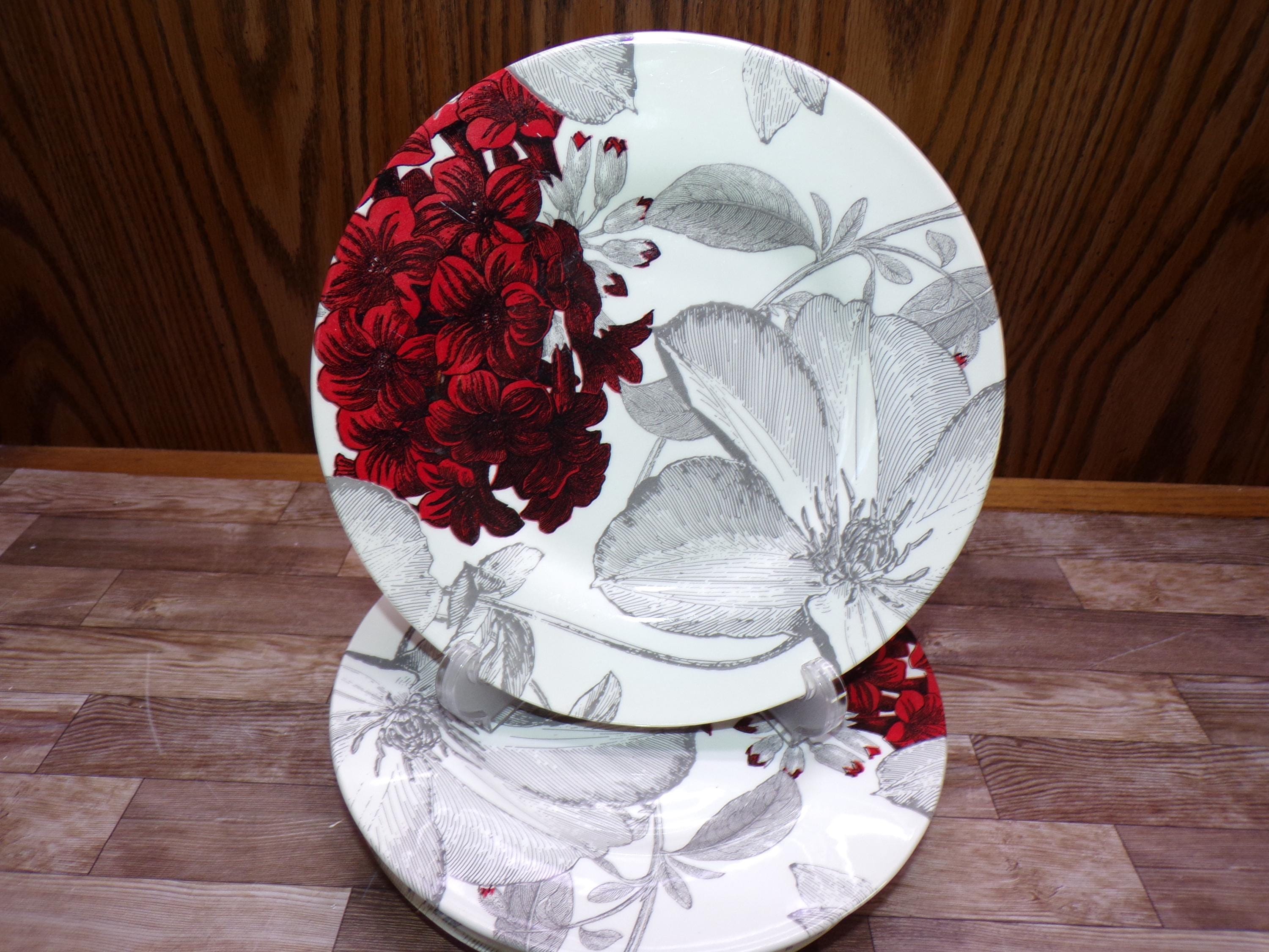 2511 Royal Stafford Andrew Tanner Clematis Red Vintage 8.5" Salad Plate Set of 6 Made in England - Great Cond. Few Light Scratches Very Little Wear