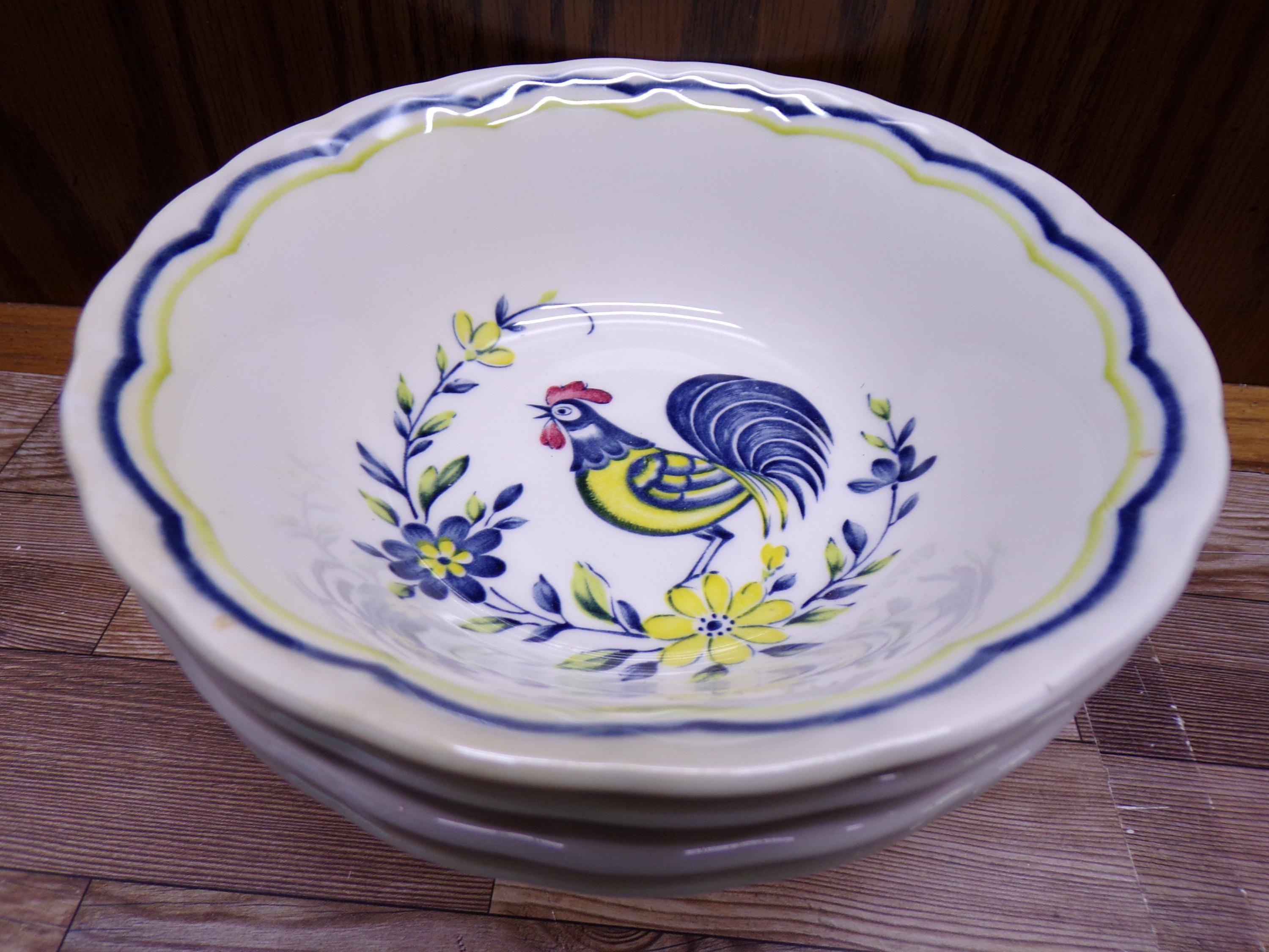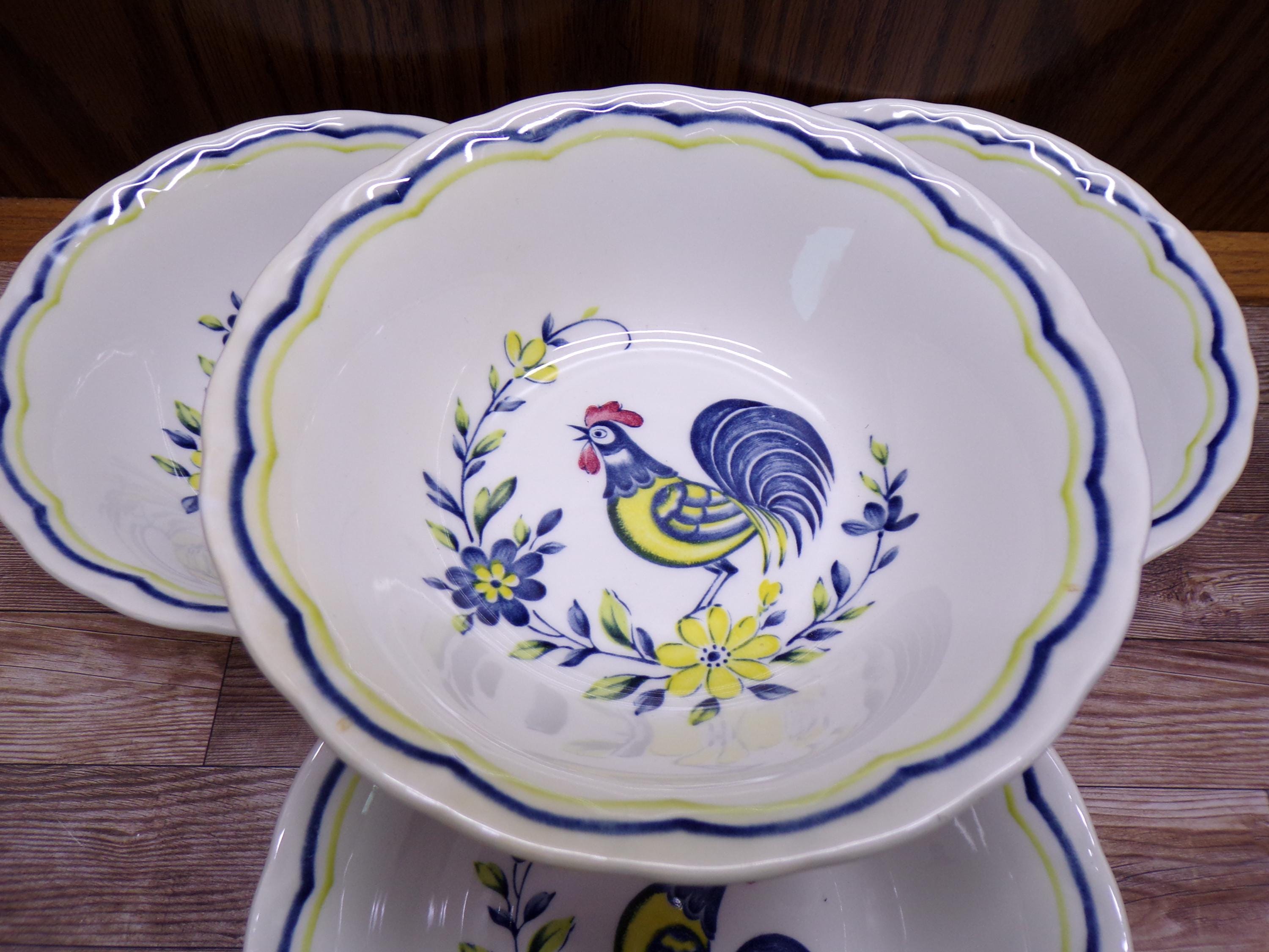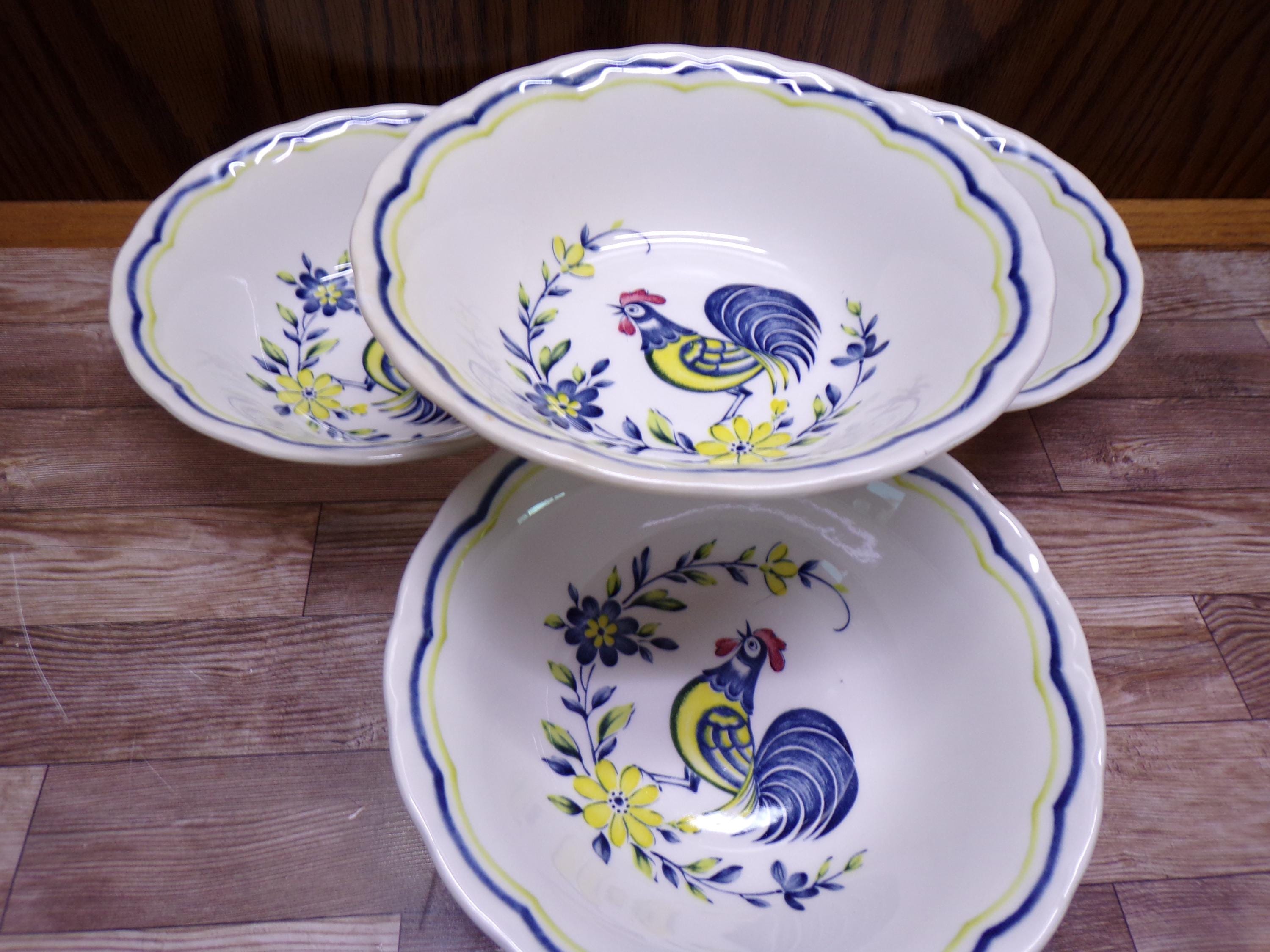 2511 Nikko Fine China Early Bird Rooster Vintage 6" Cereal / Soup Bowls Set of 4 - Made in Japan - Great Condition