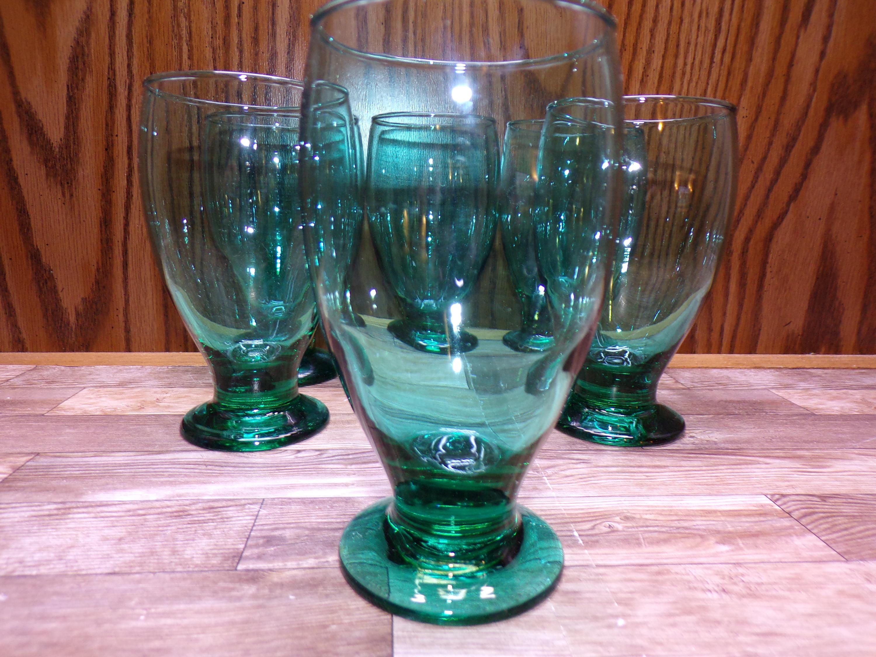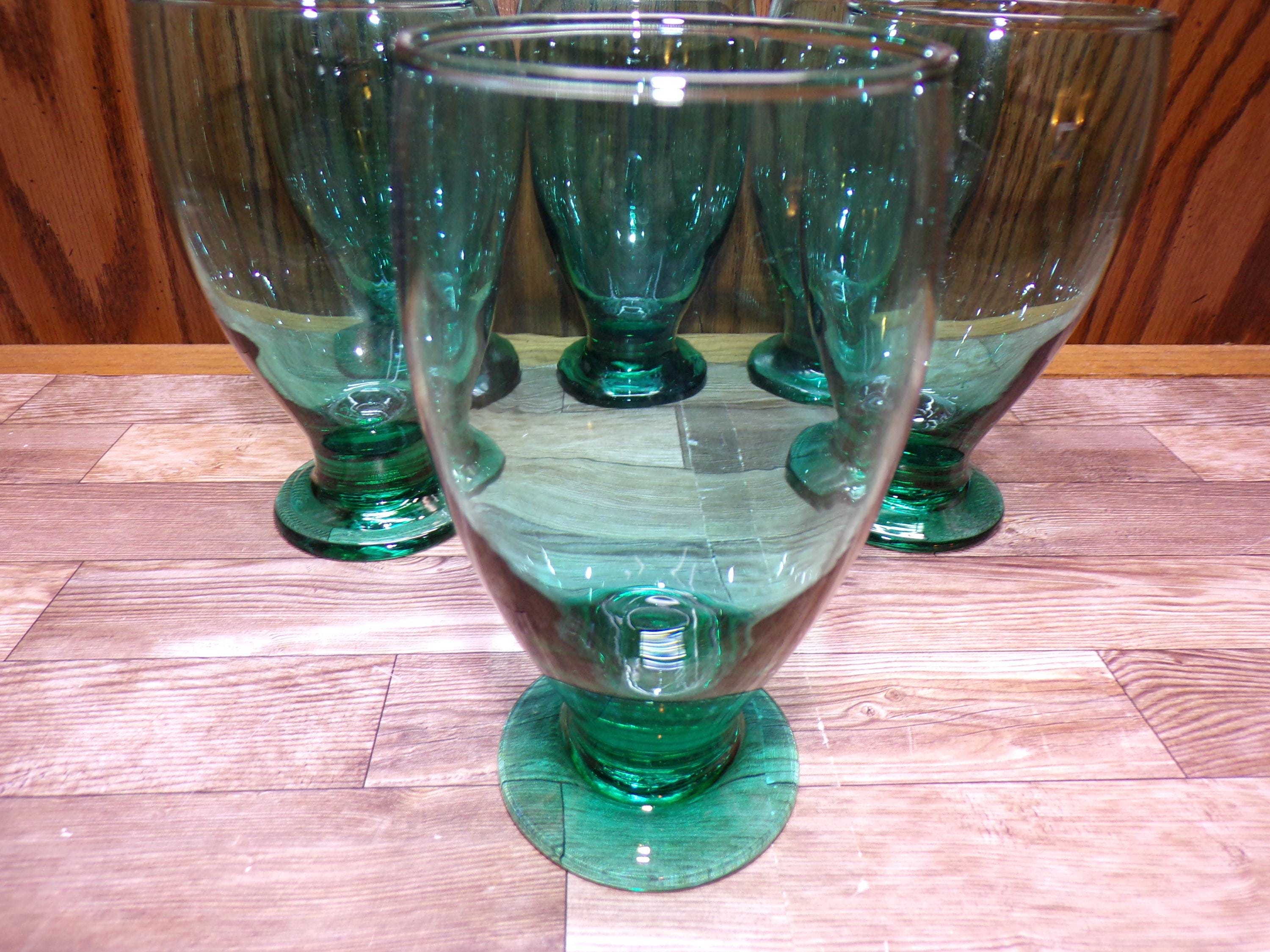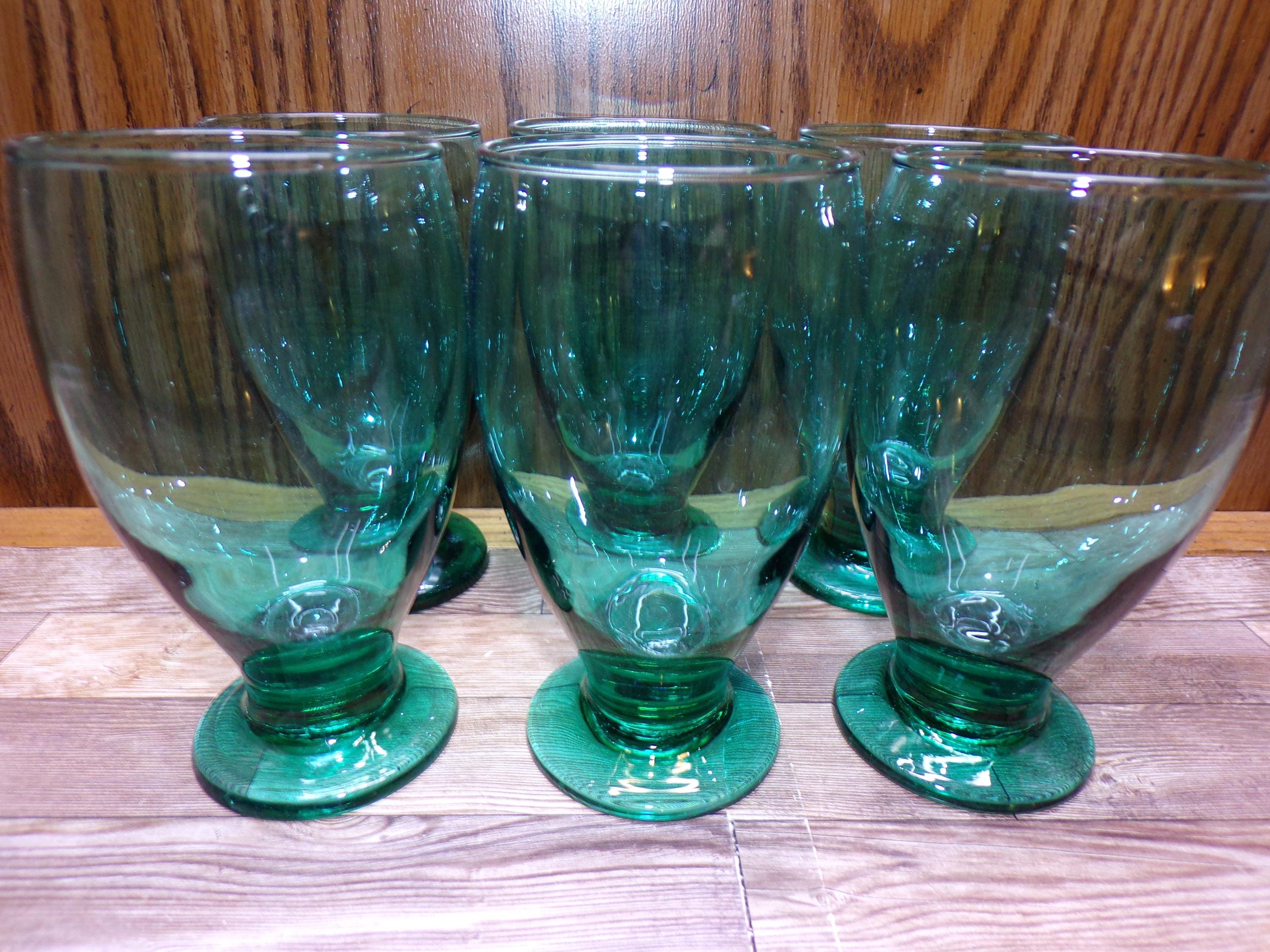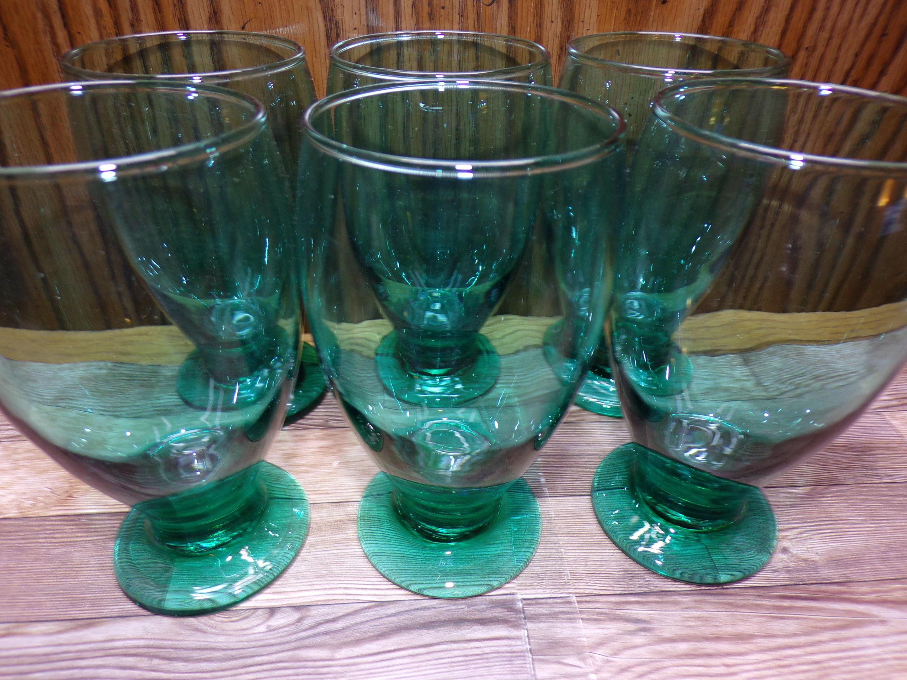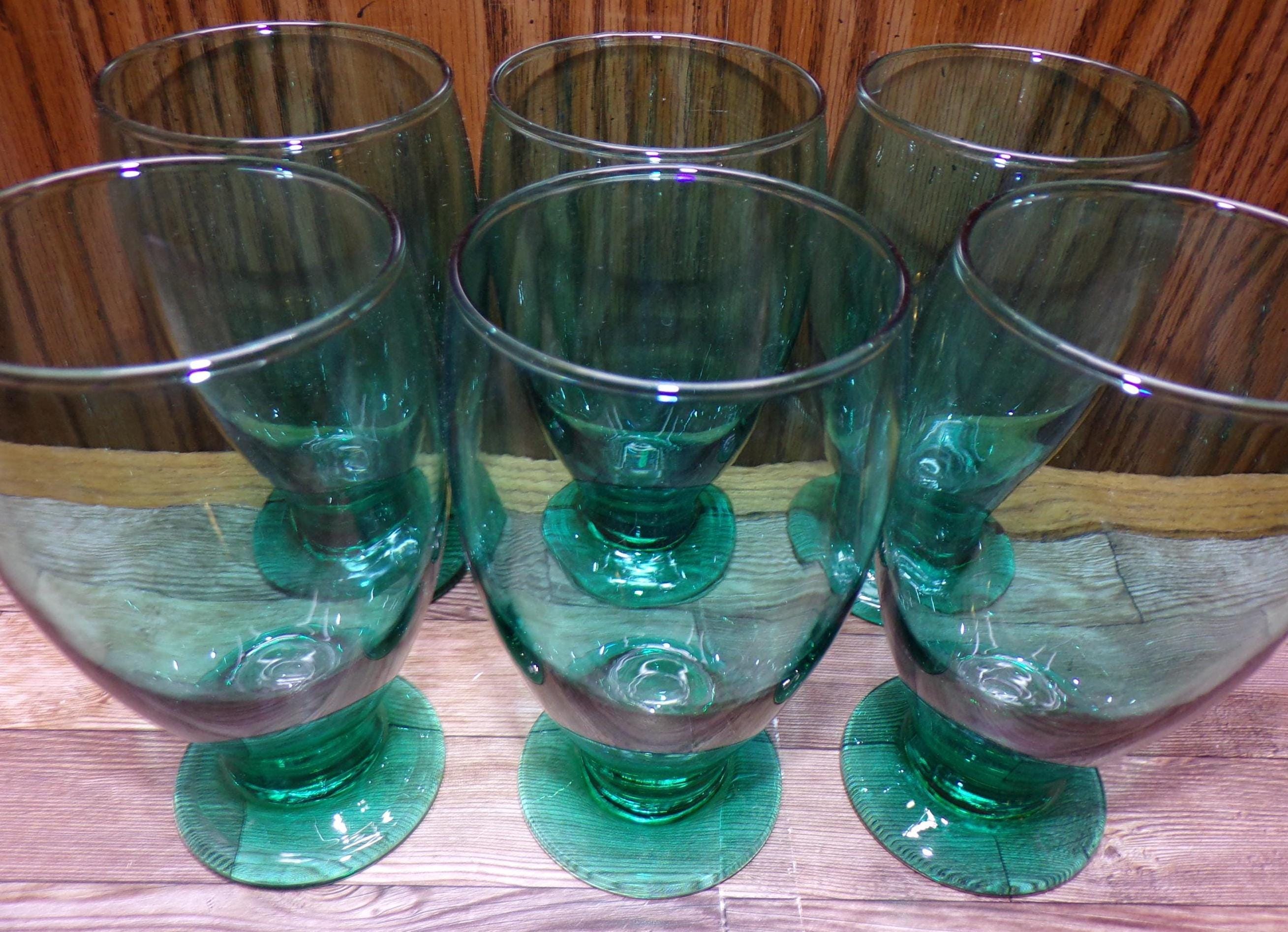 2511 Libbey Glass Juniper Green Vintage 5.5" 12 oz Footed Tumblers Set of 6 - Great Condition Very Little Signs of Wear