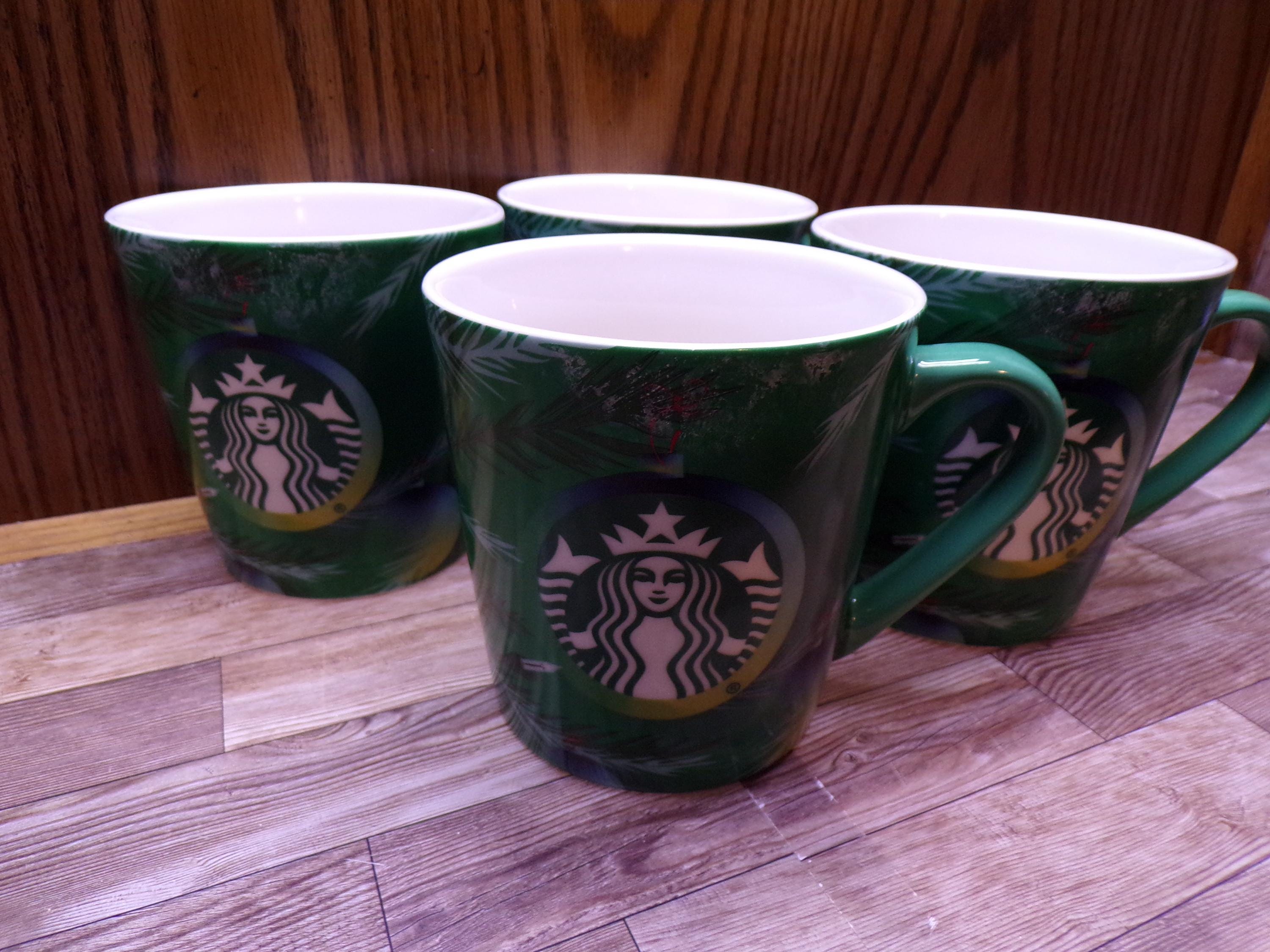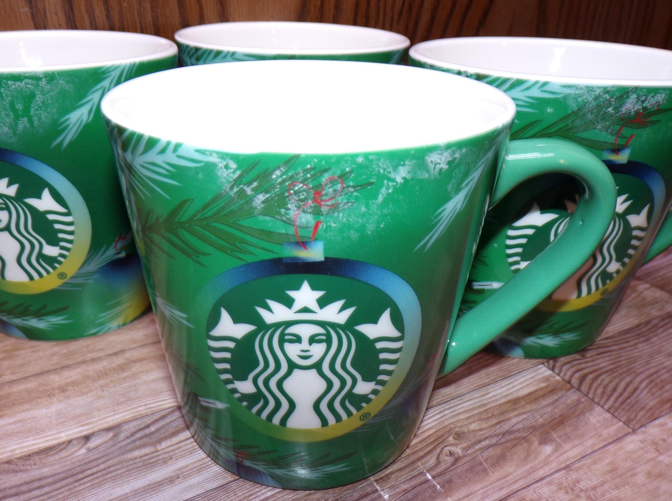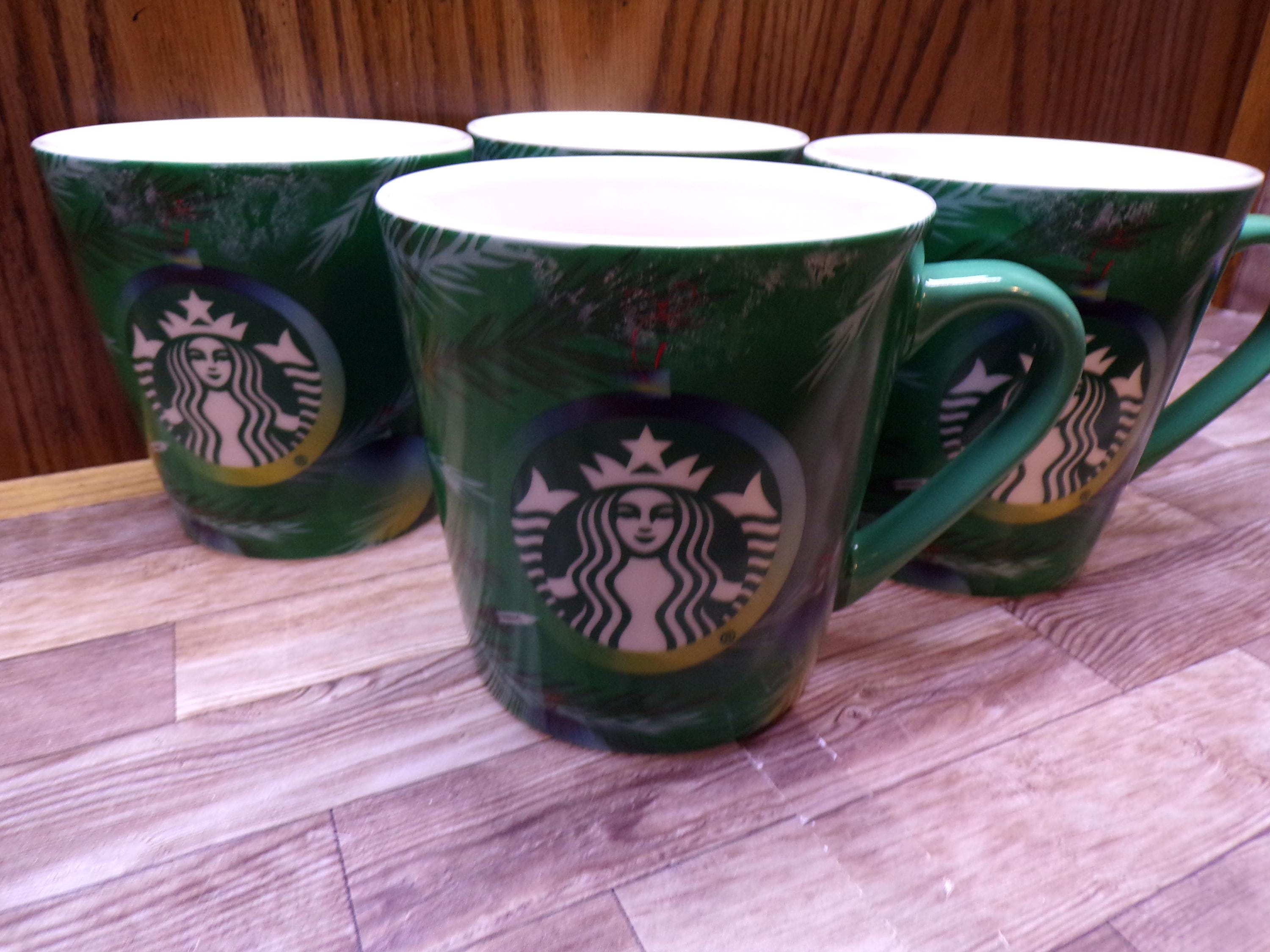 2511 Starbucks 2020 Christmas Winter Lights Holiday Ornaments Green 18 oz Mugs Set of 4- Great Condition 2 Have a Few Light Scratches Inside