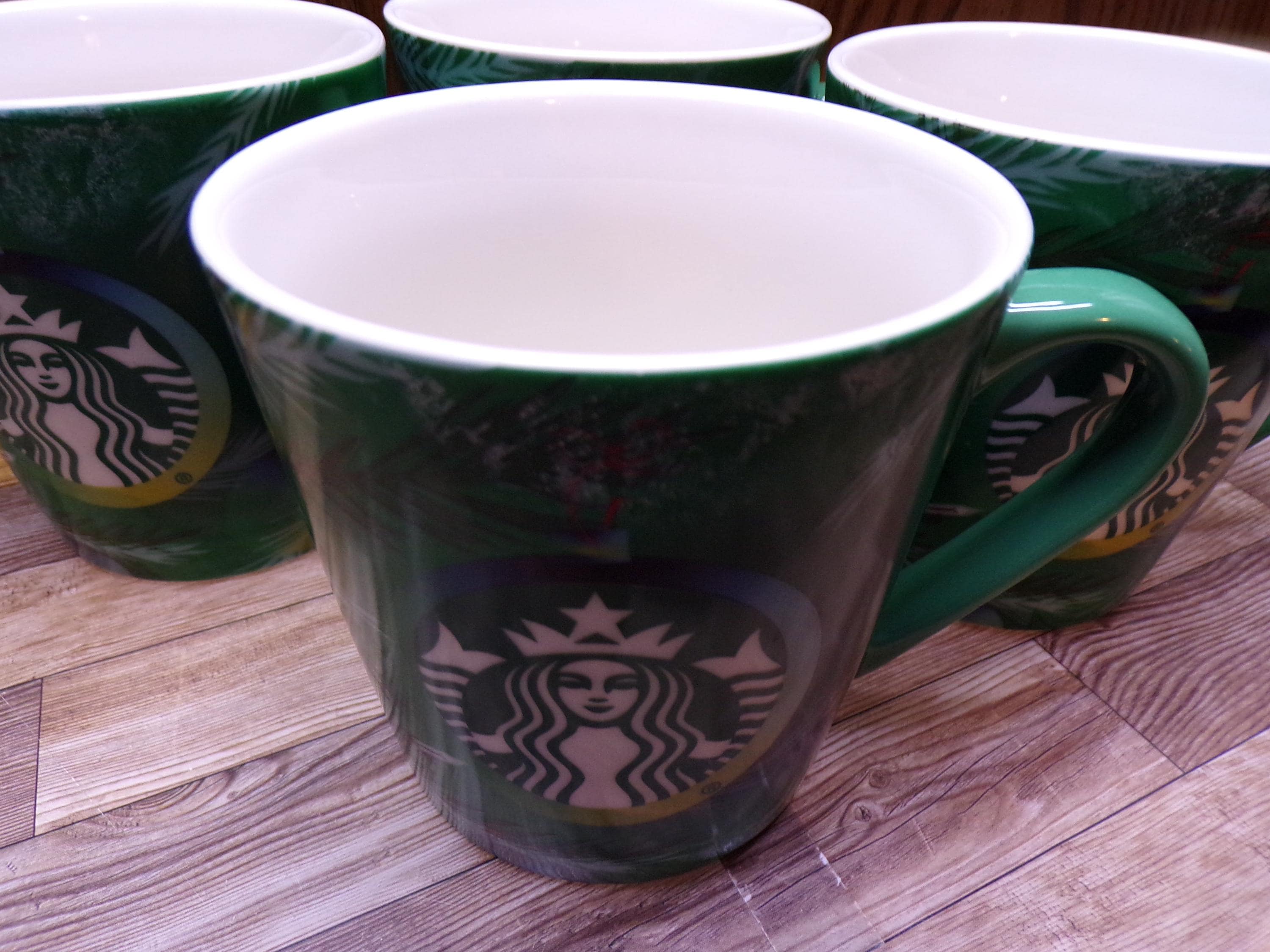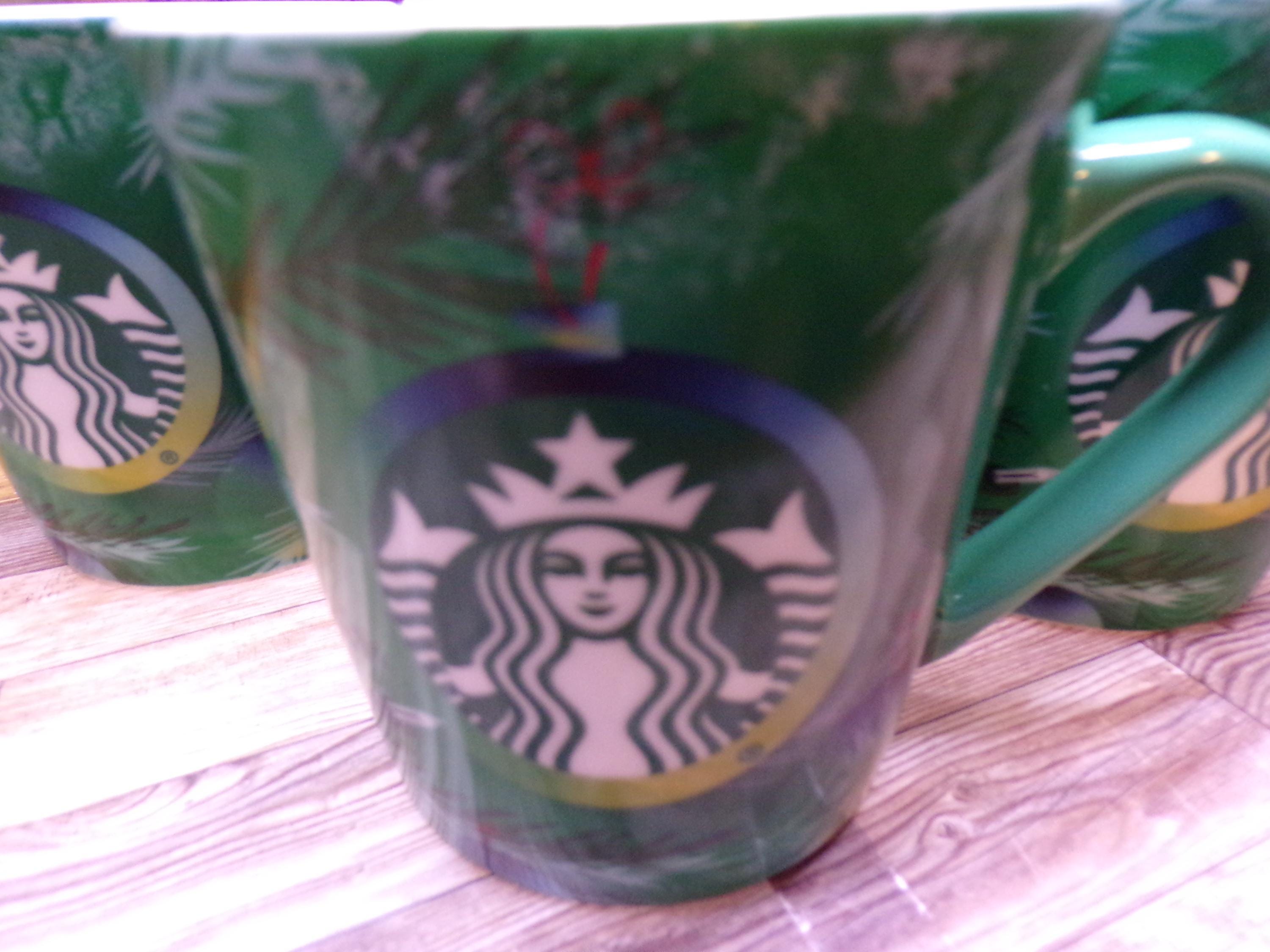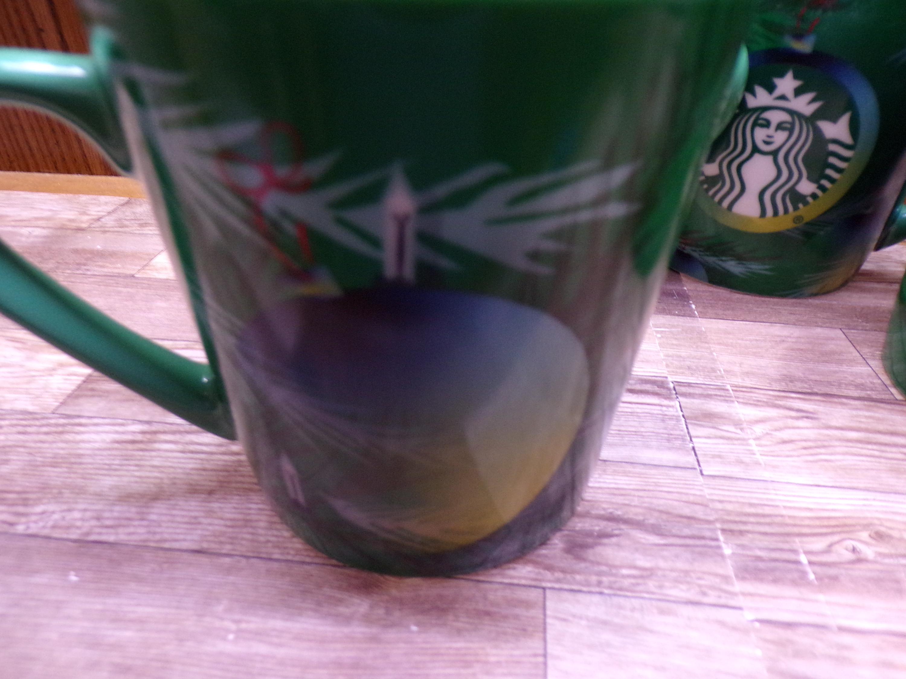 2511 Starbucks 2020 Christmas Winter Lights Holiday Ornaments Green 18 oz Mugs Set of 4- Great Condition 2 Have a Few Light Scratches Inside