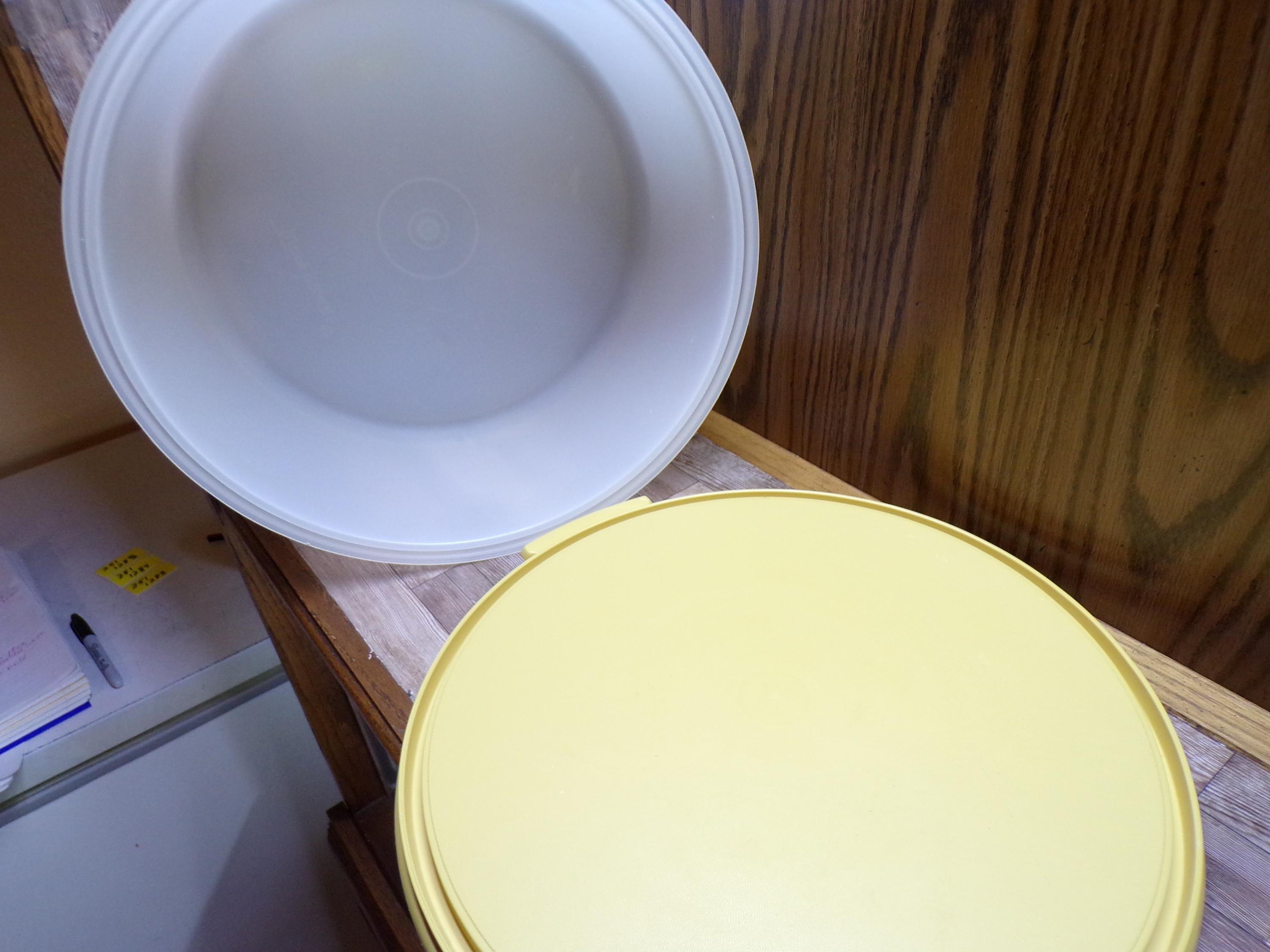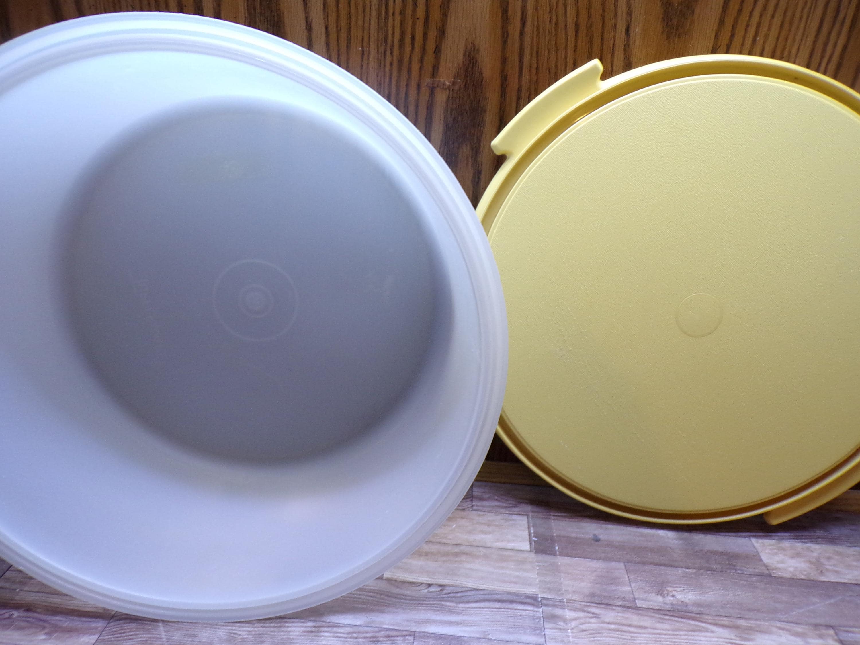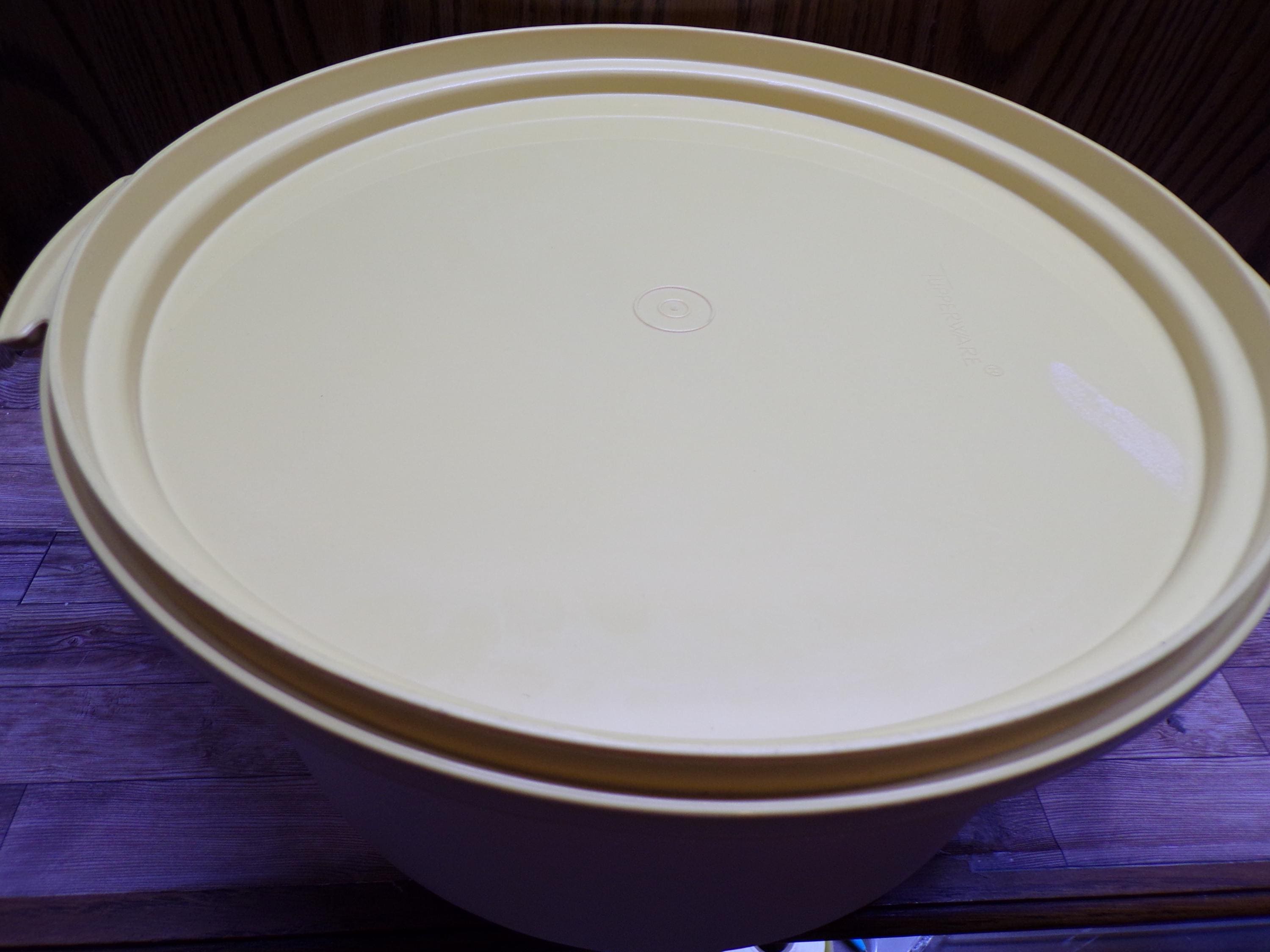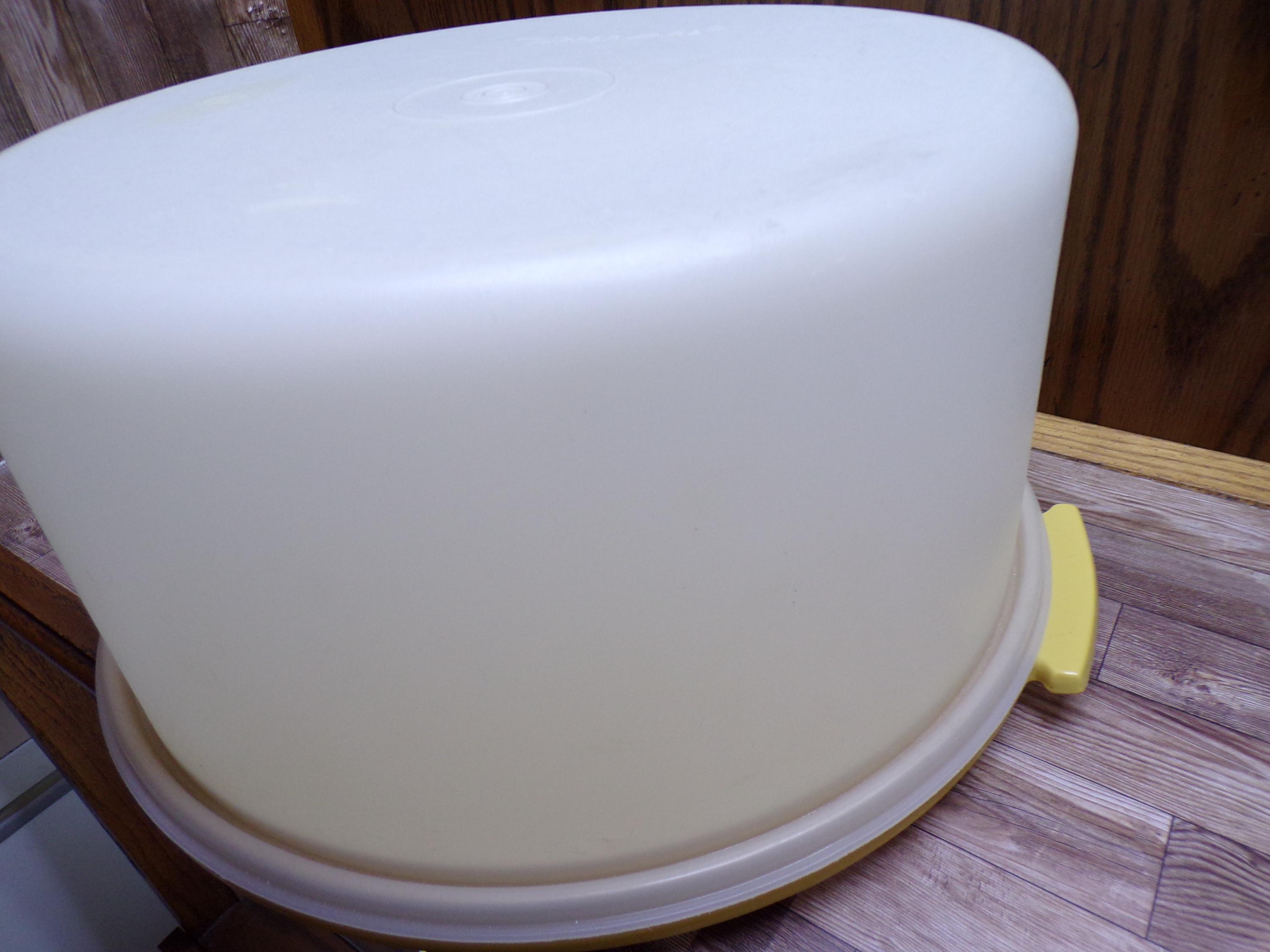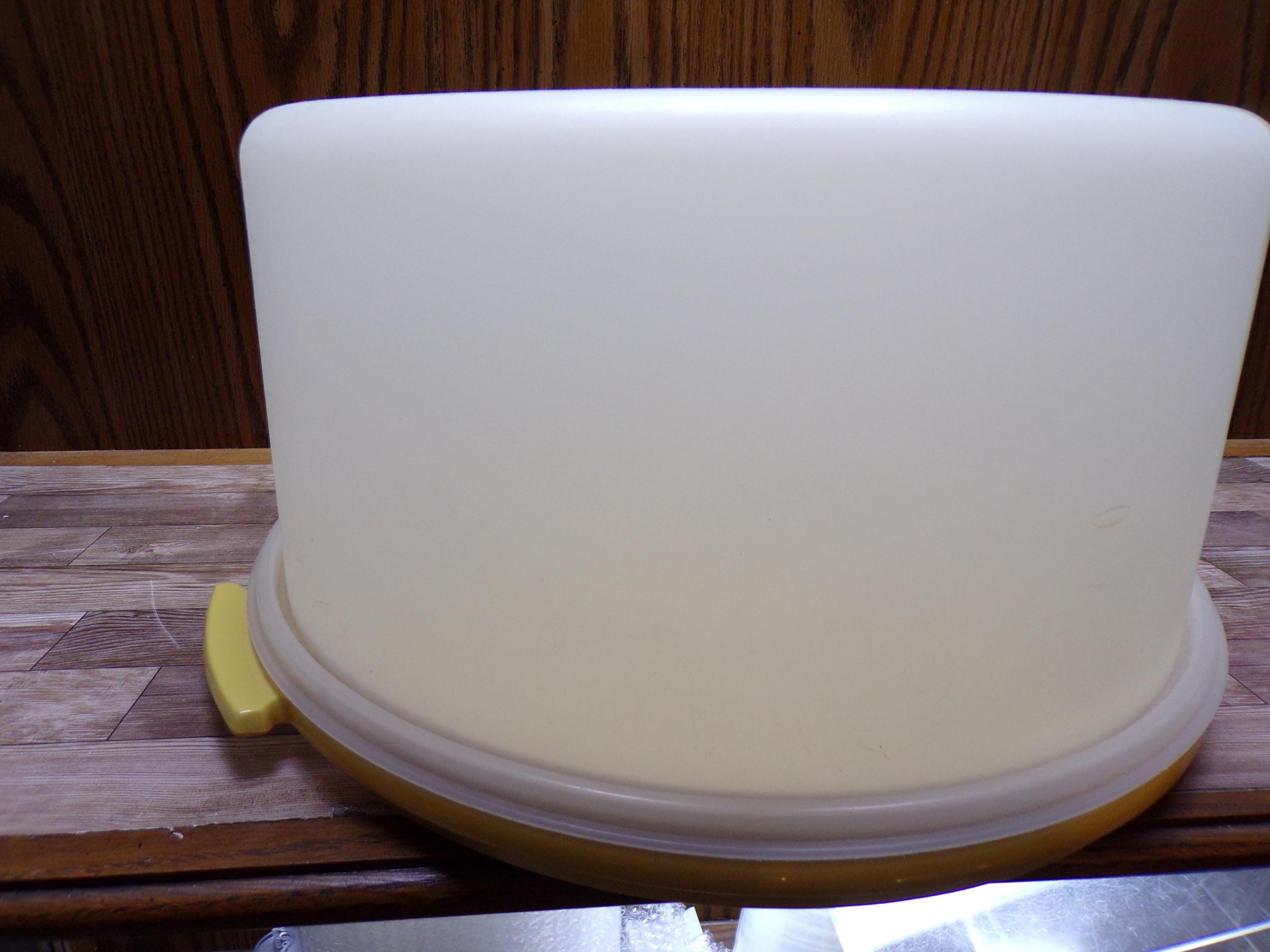 2511 Tupperware 13" Harvest Gold Vintage Cupcake, Cake, Pie Keeper Carrier with 6" Tall Frosted Cover- Good Condition No Handle