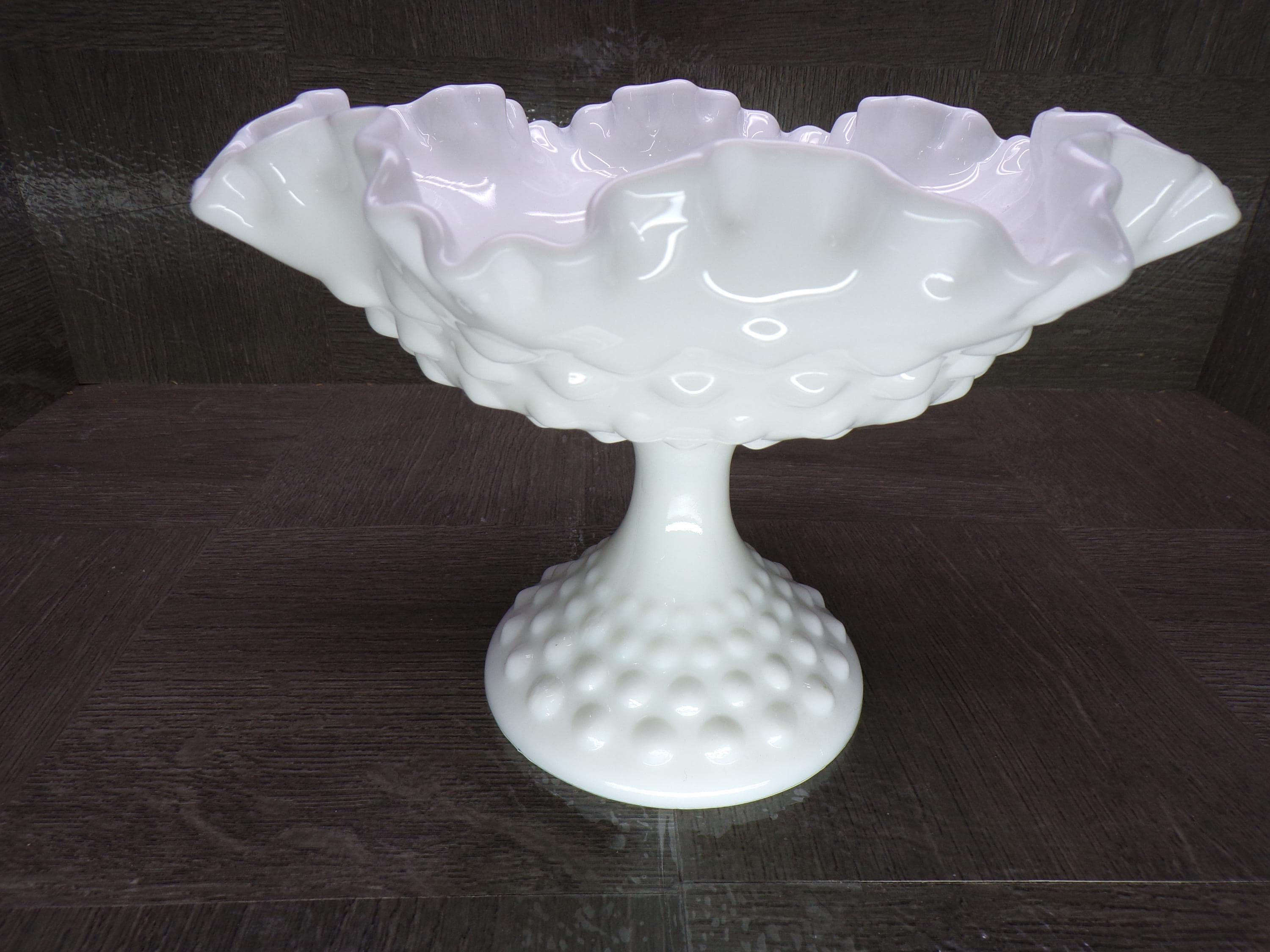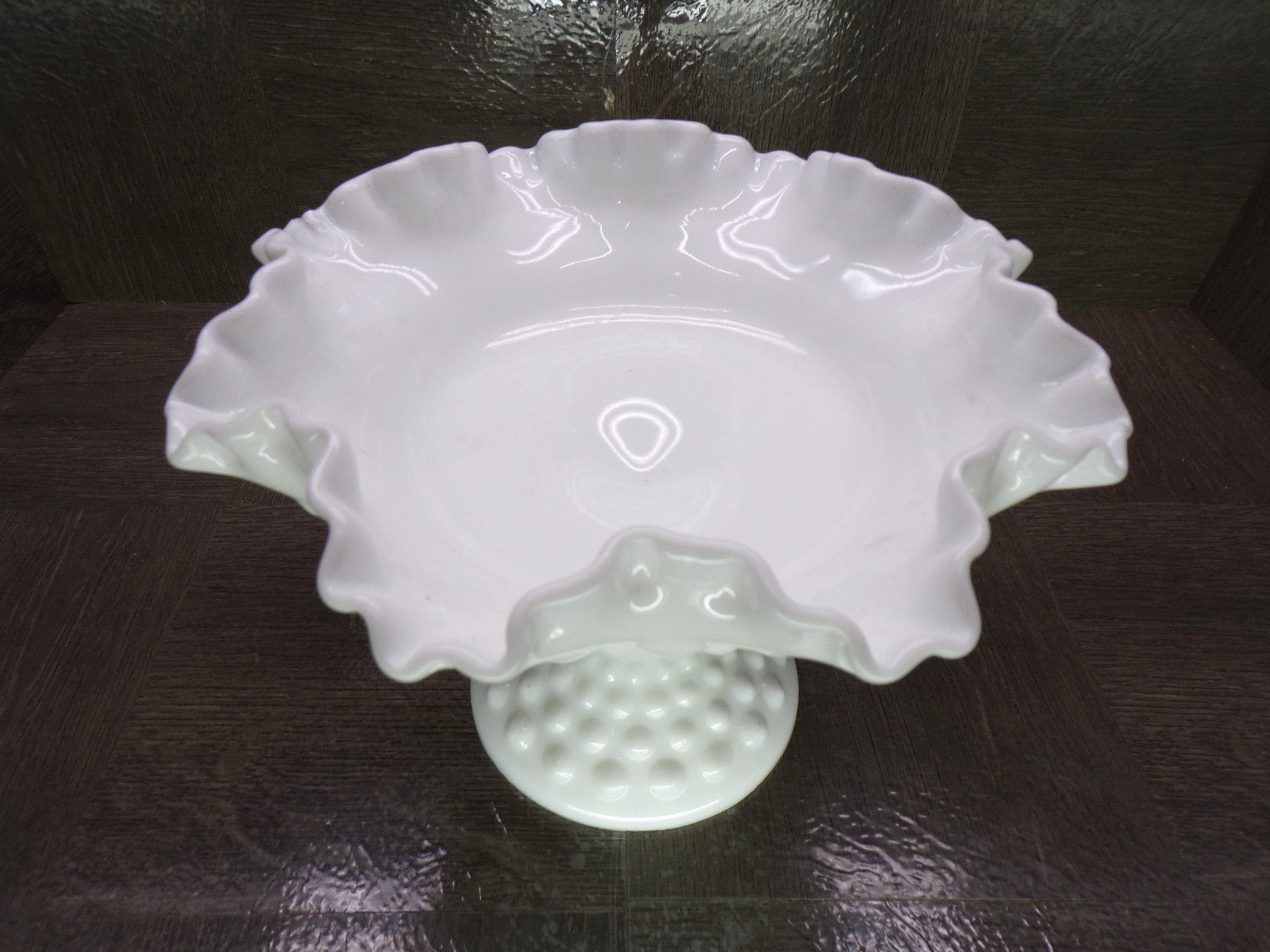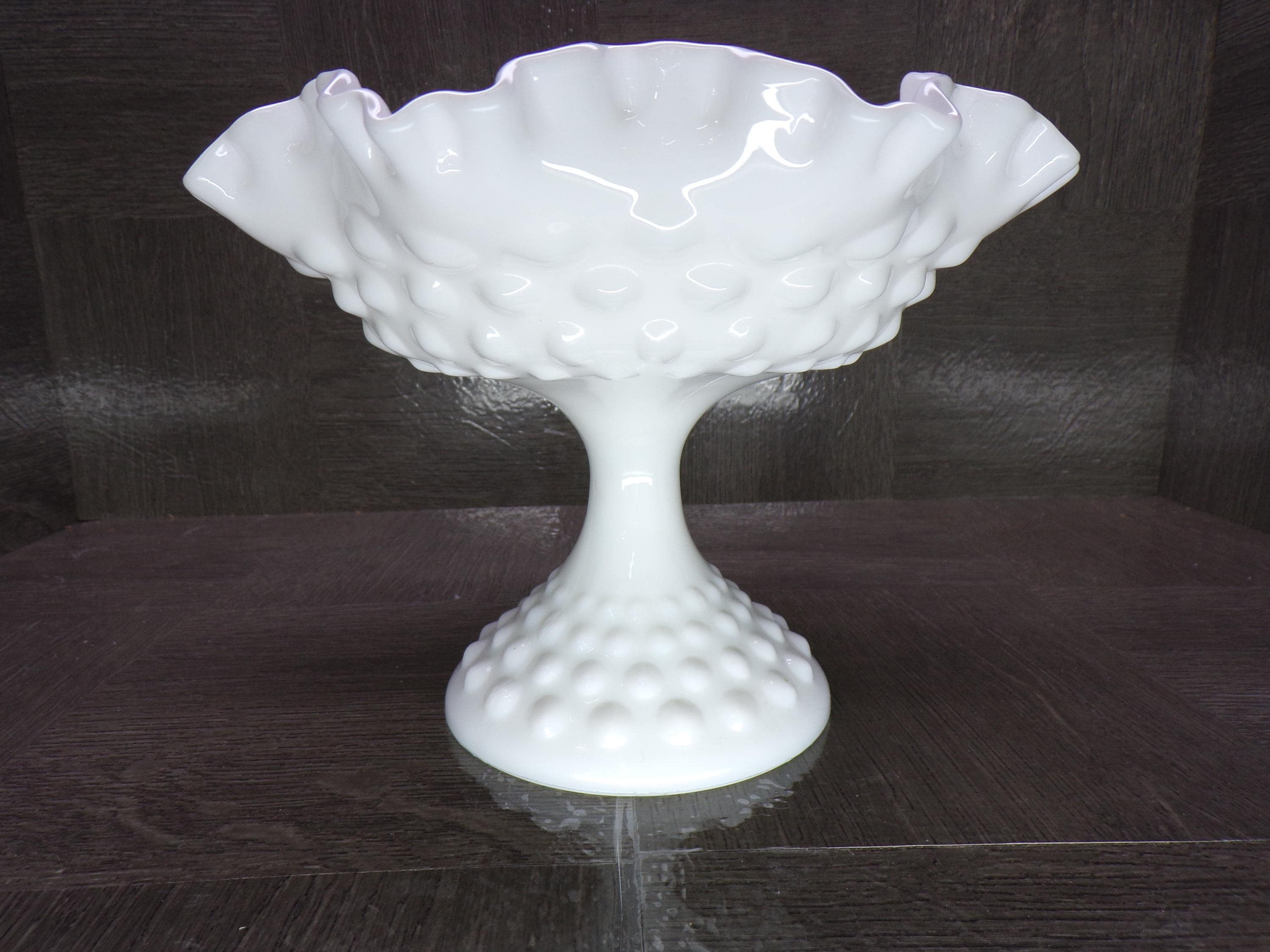 2602 Vintage Fenton Milk Glass Hobnail 6" Tall x 8" Wide Ruffled Footed Compote Candy Dish - Great Condition No Chips