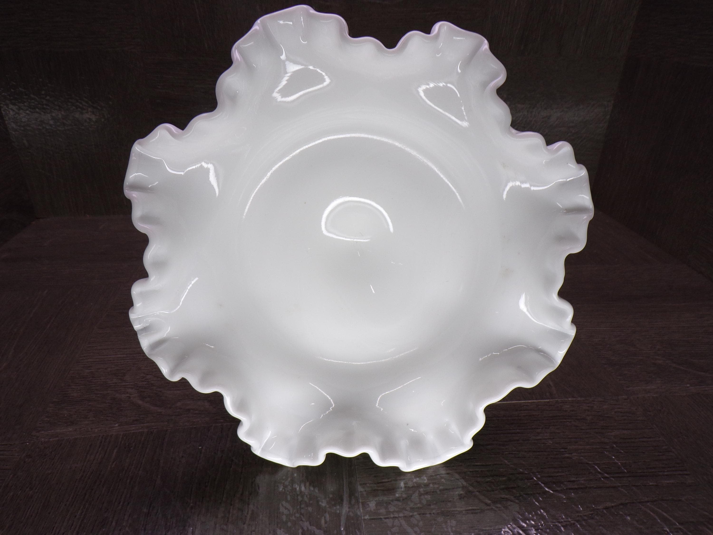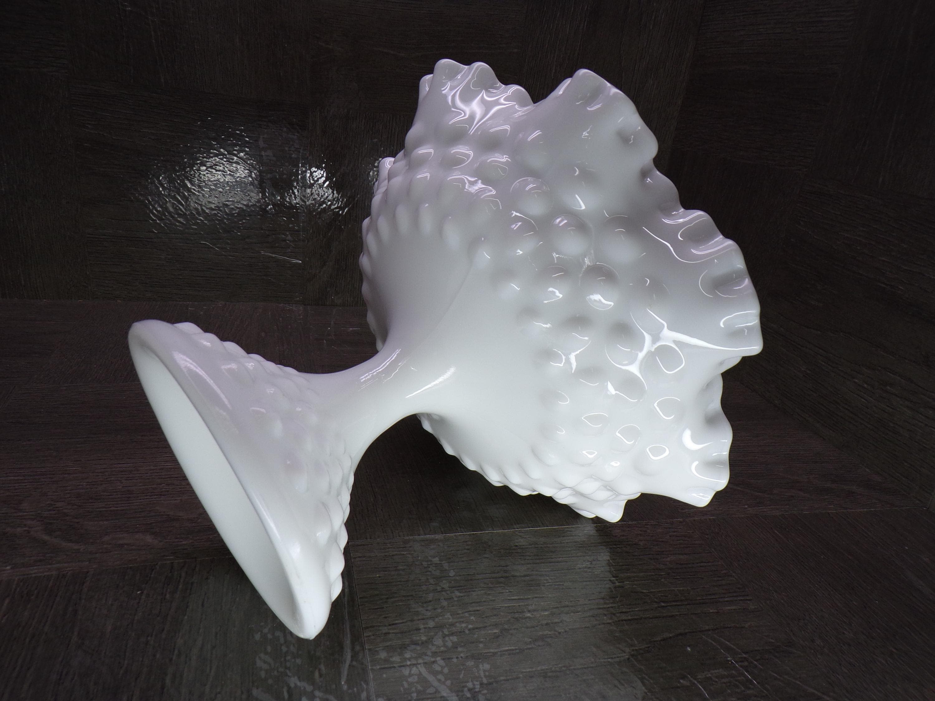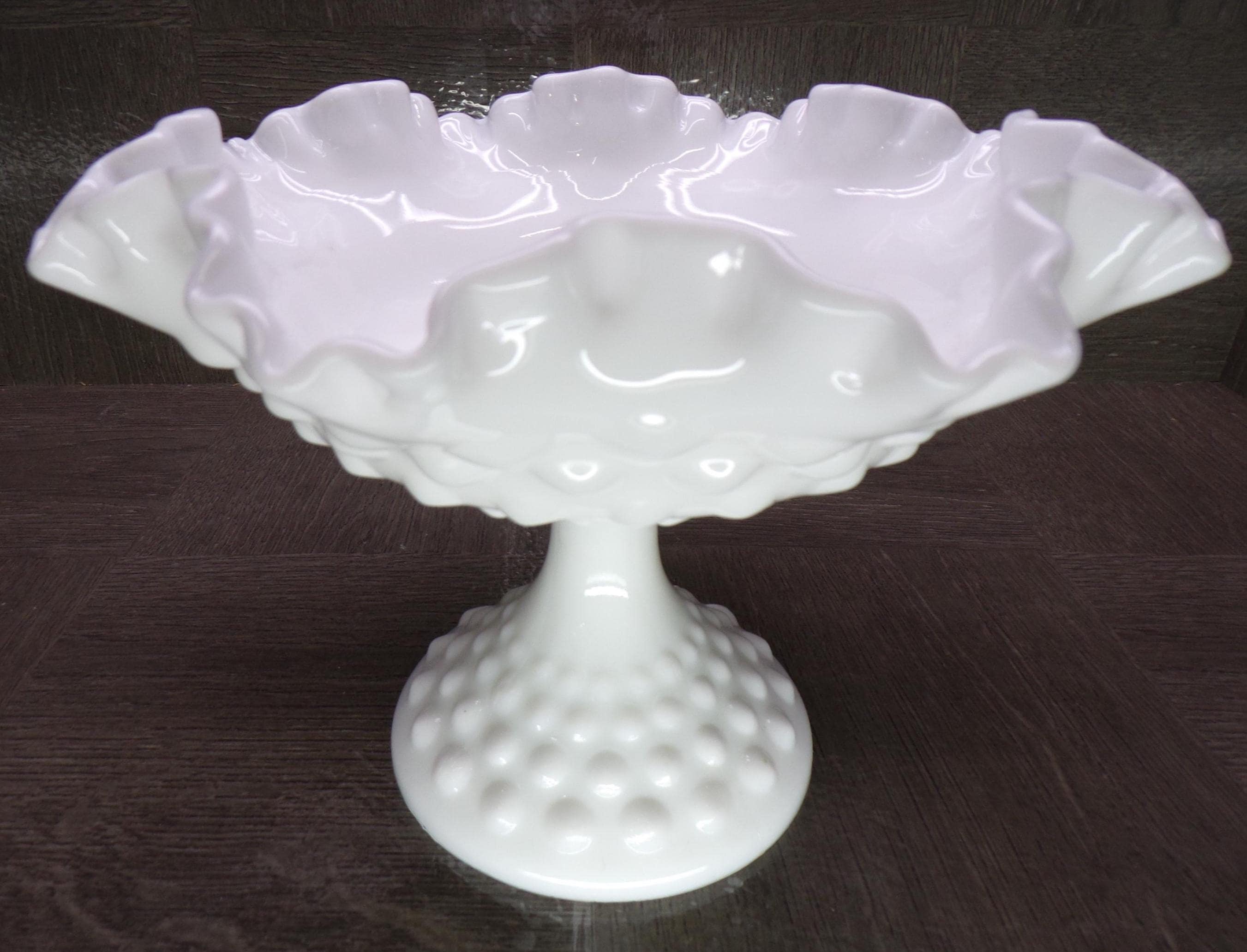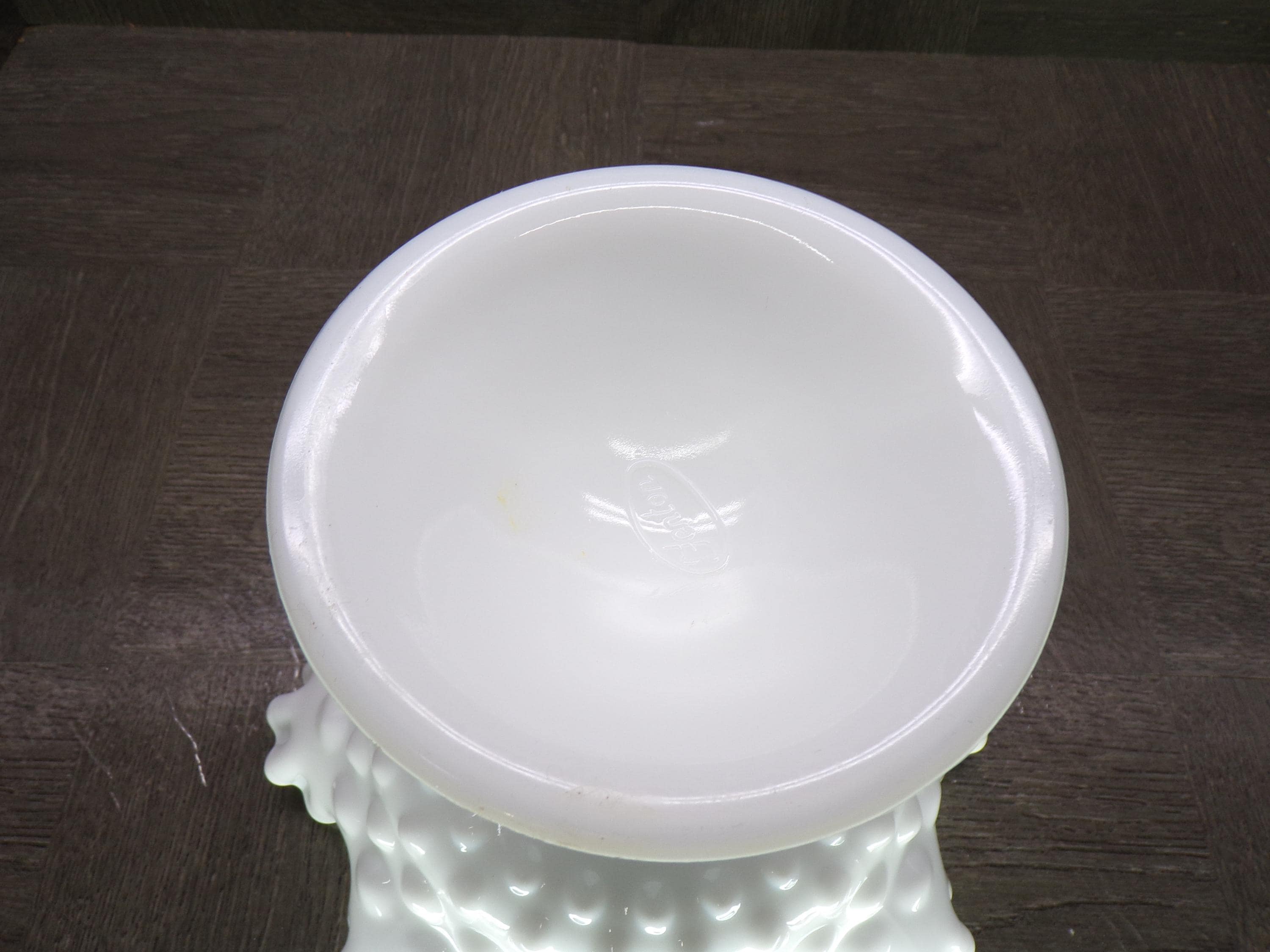 2602 Vintage Fenton Milk Glass Hobnail 6" Tall x 8" Wide Ruffled Footed Compote Candy Dish - Great Condition No Chips