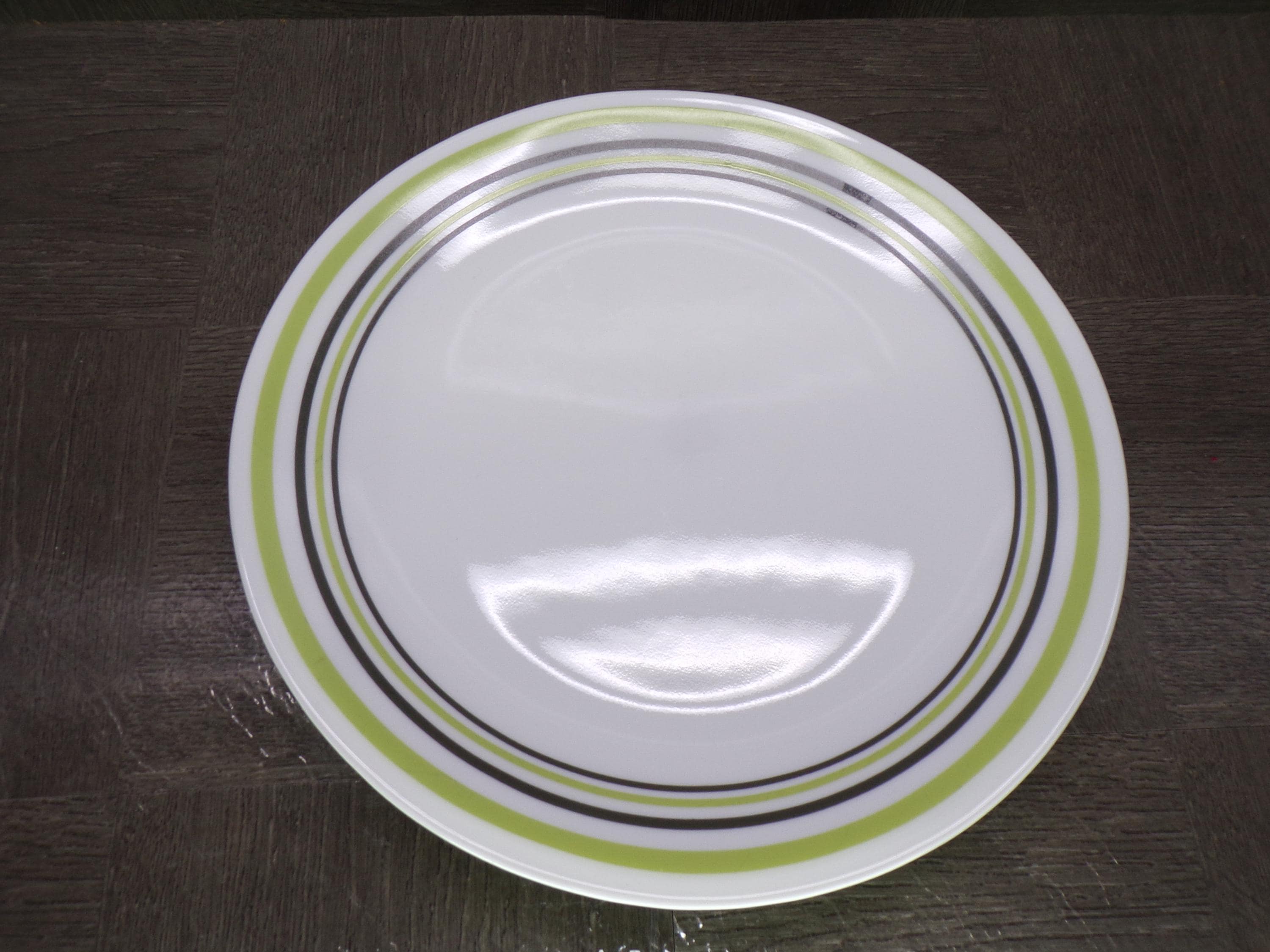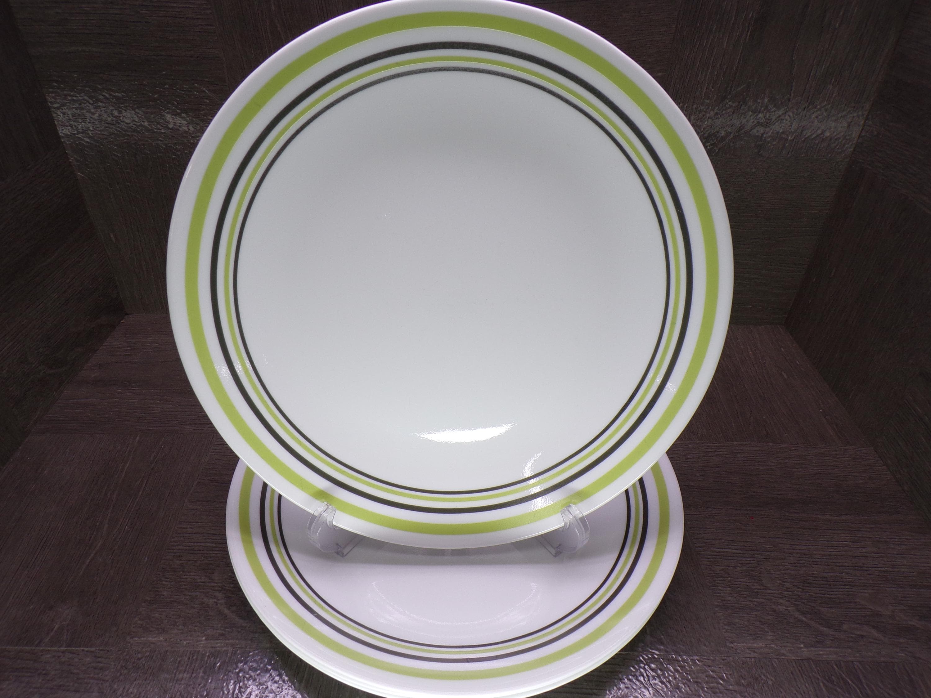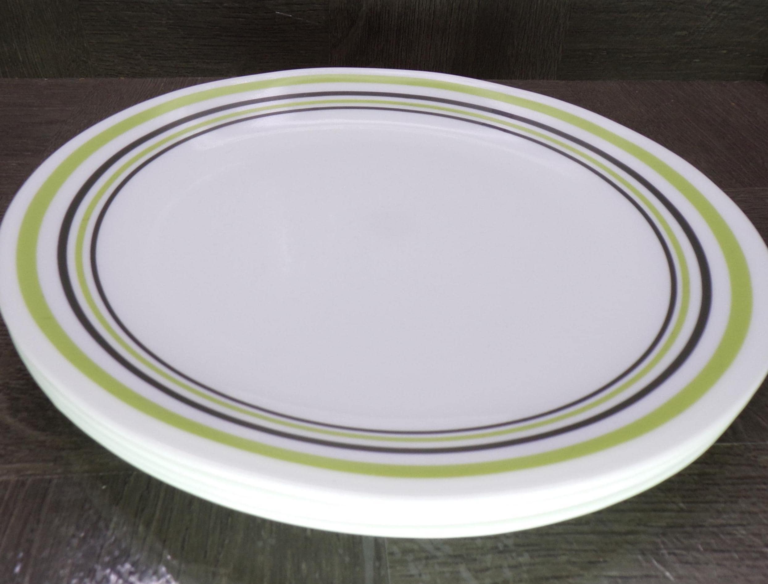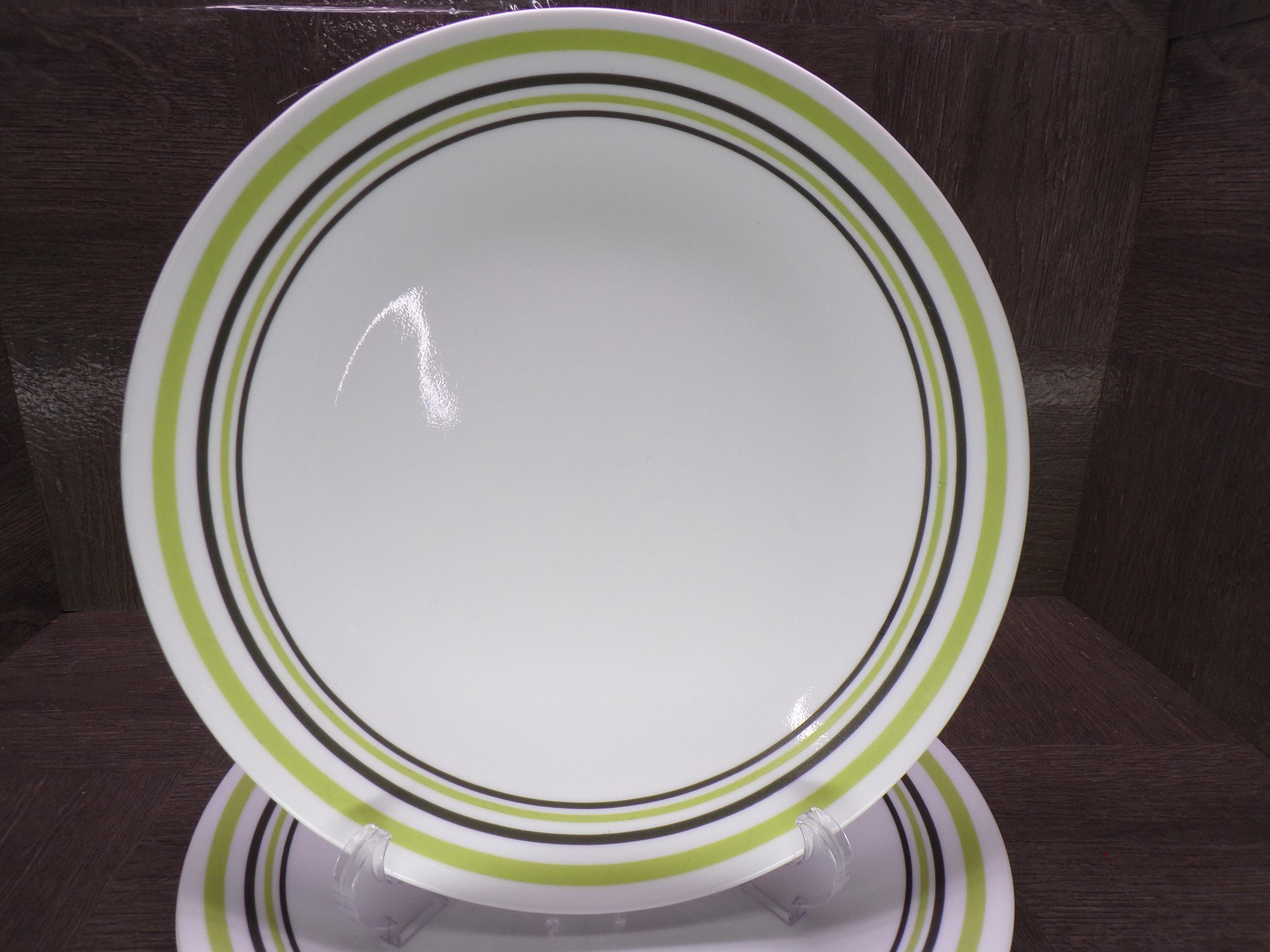 2602 Corelle Garden Sketch 10.25" Dinner Plates Green & Black Bands Set of 5 - Great Condition Light Scratches