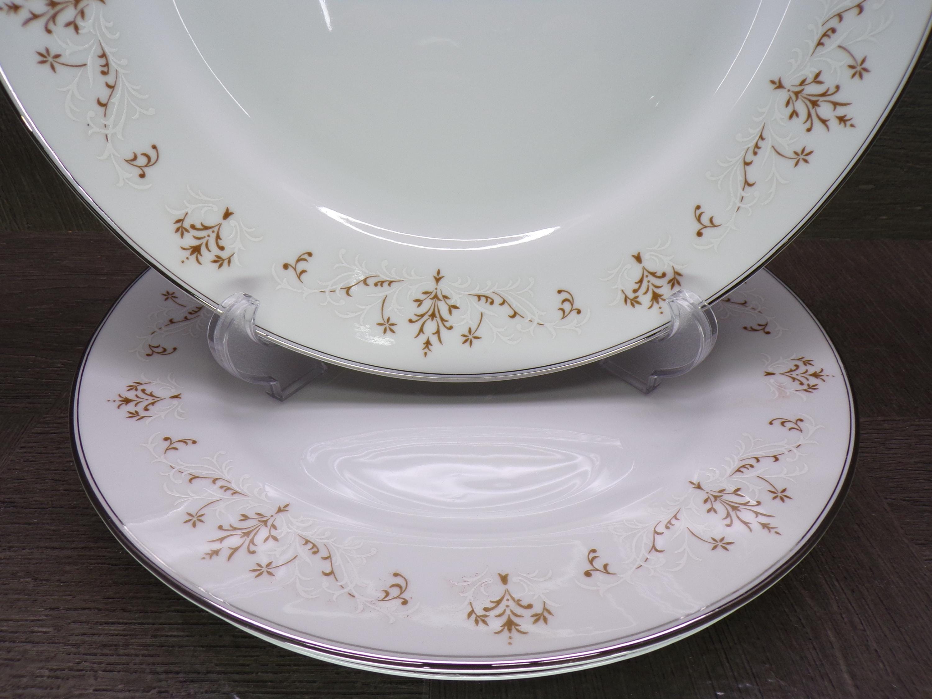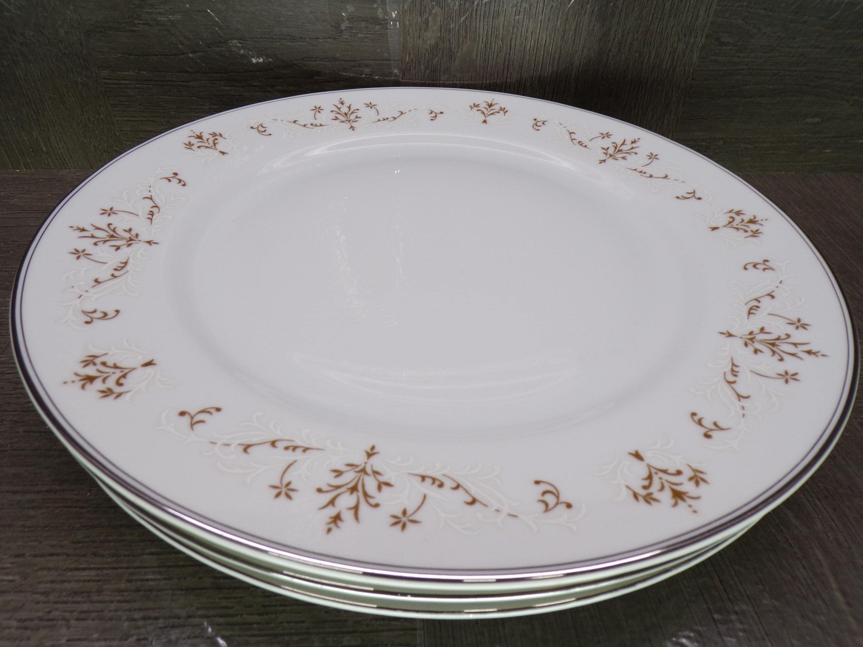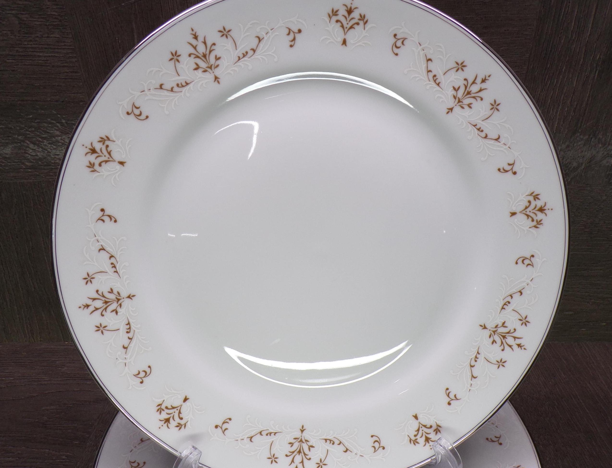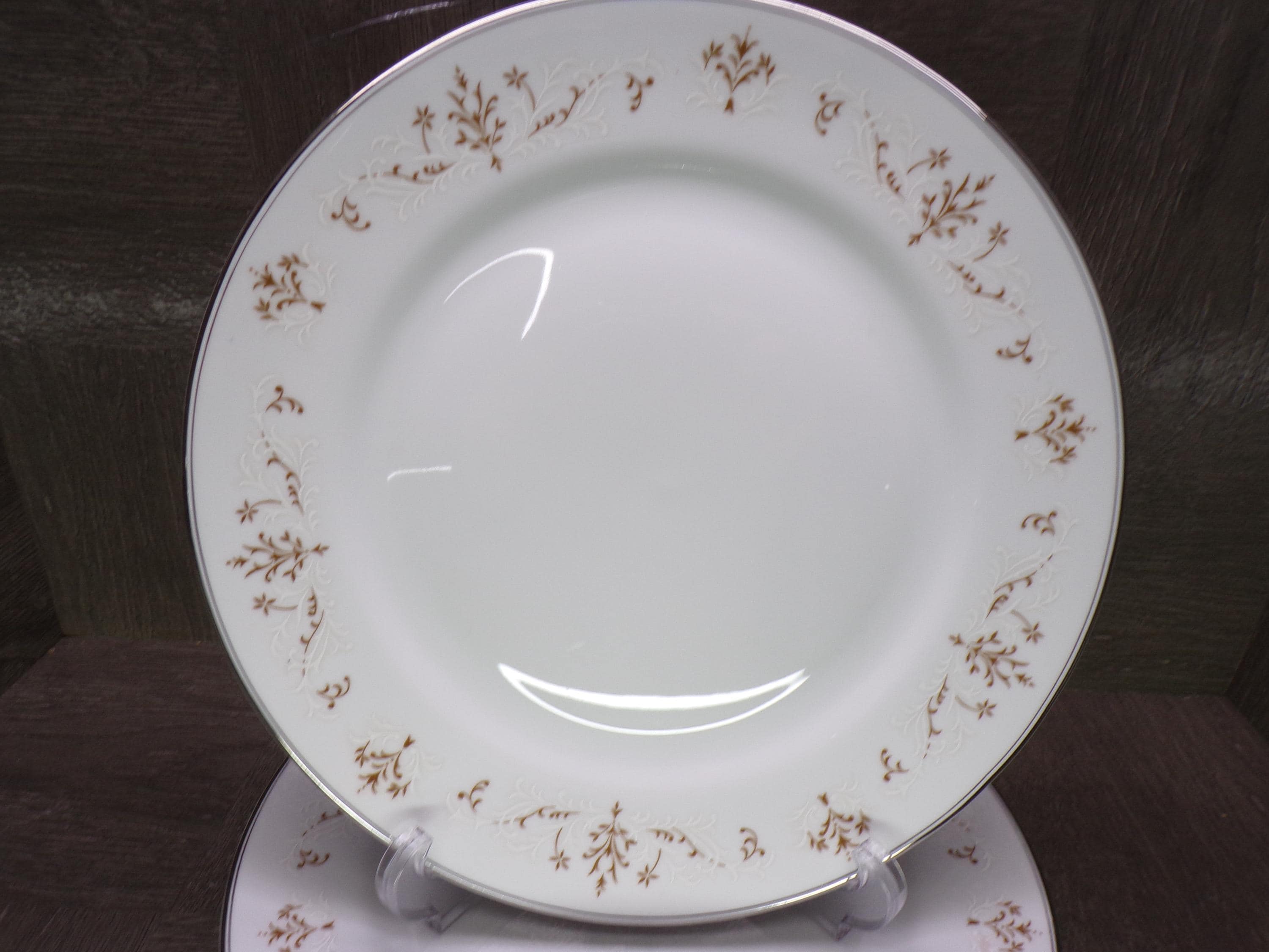 2602 J.H. Cope London England Wellington English Elegance 1940's Vintage Fine China Brown & White Lace 10.25" Dinner Plates Set of 4 - Great Condition