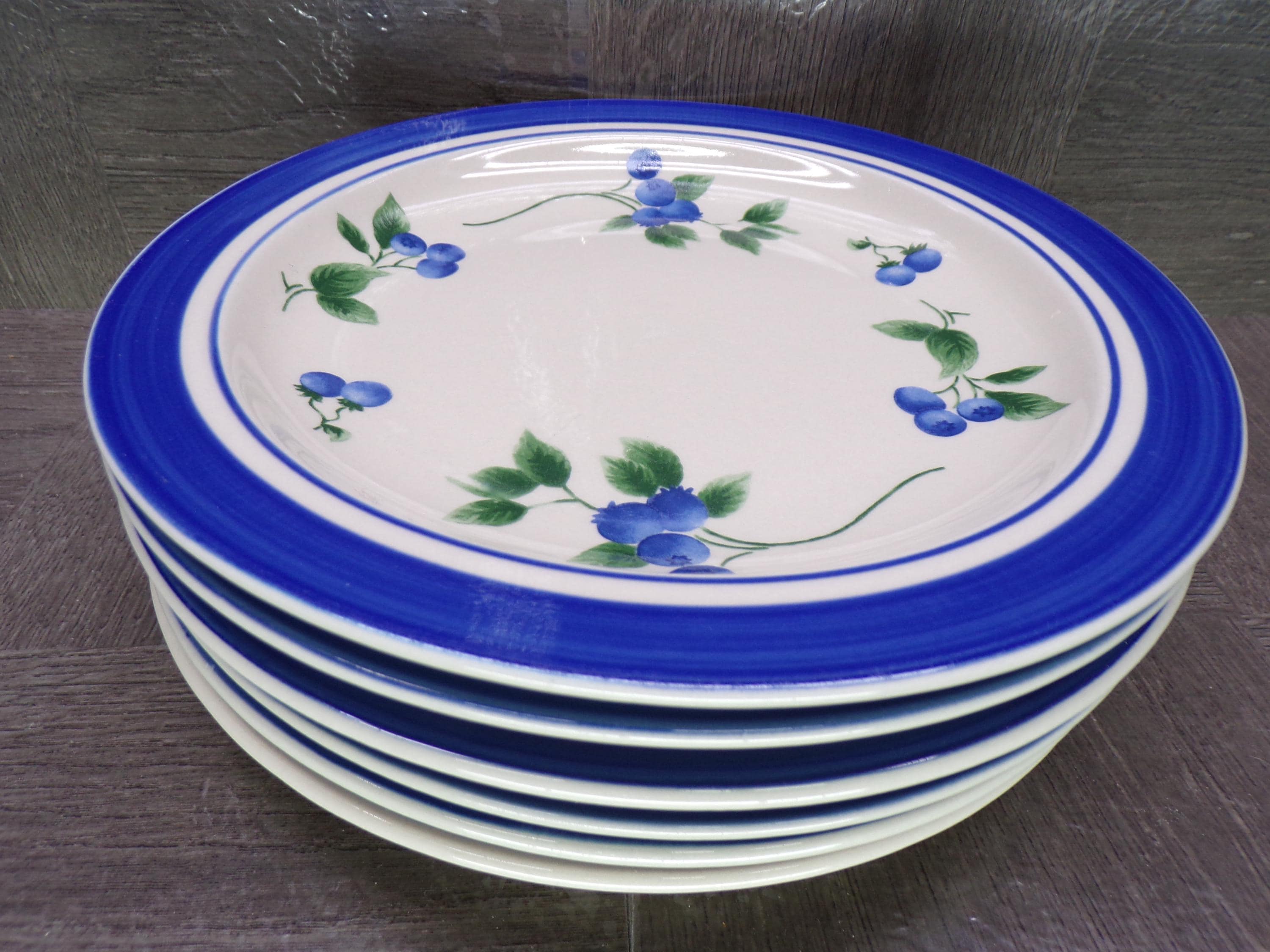 2602 LL Bean Blueberry Stoneware 8.5" Plates Set of 6 - Wear & Scratches in Center but still Look Pretty Good