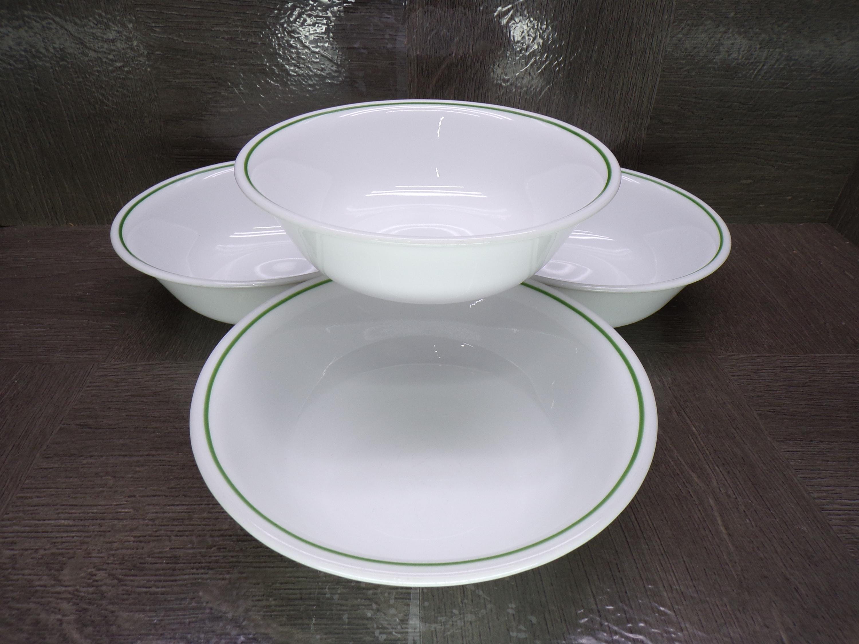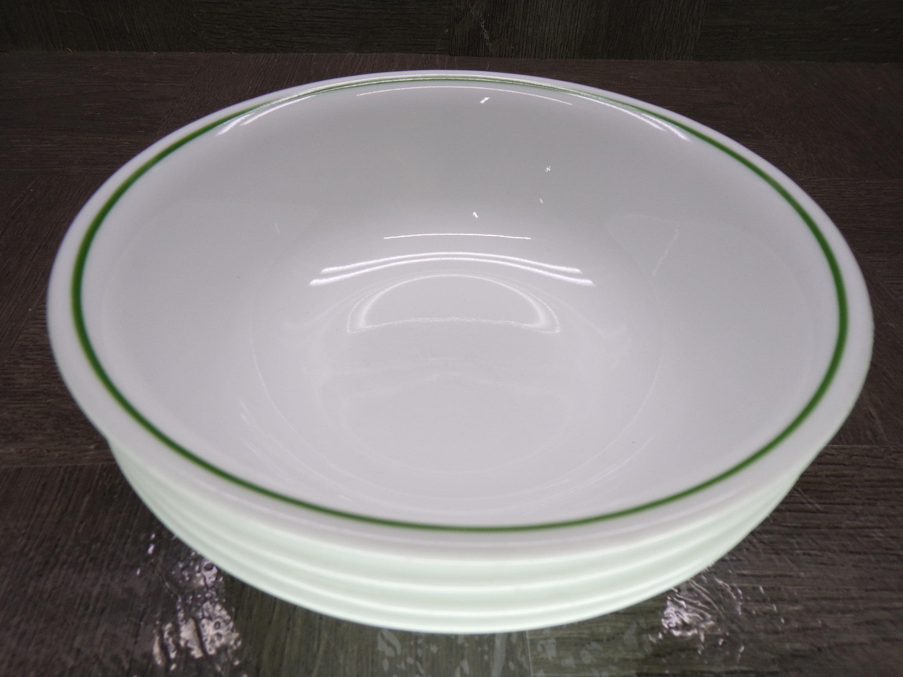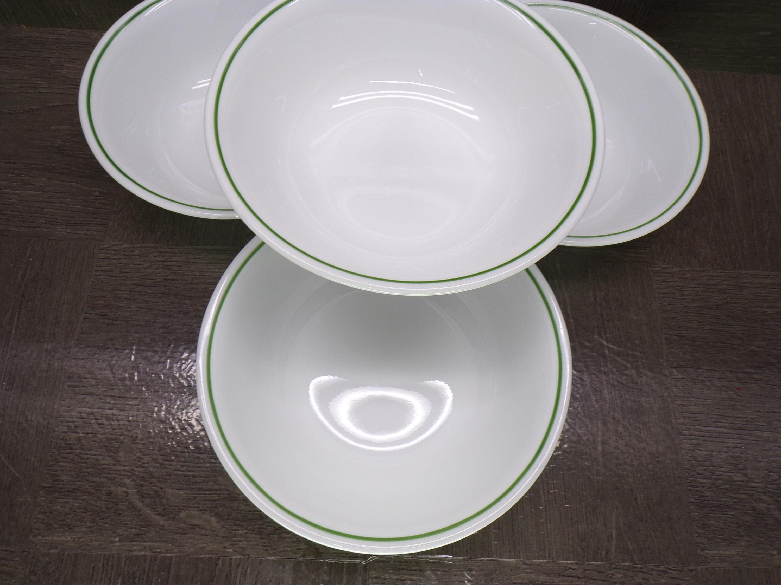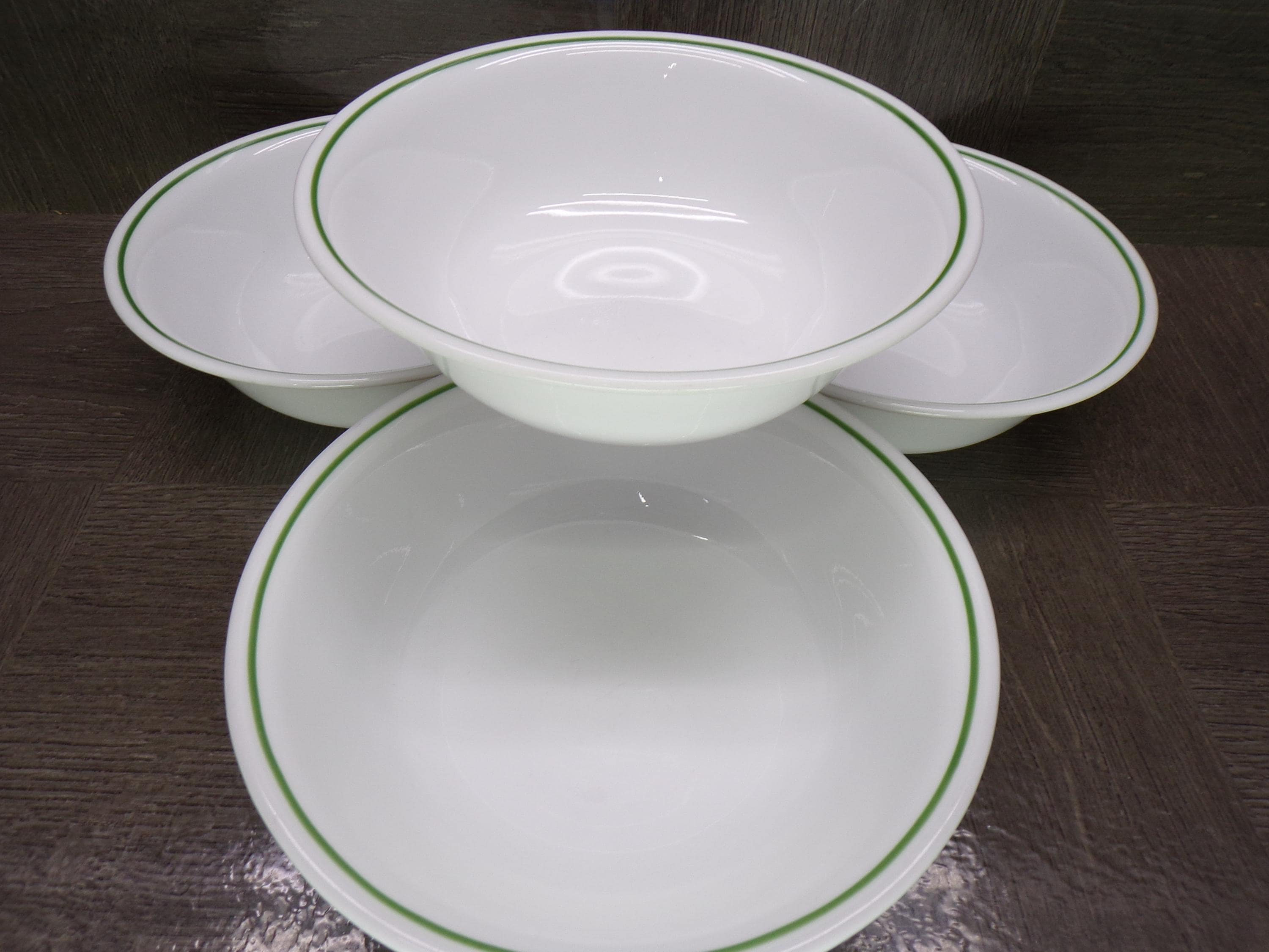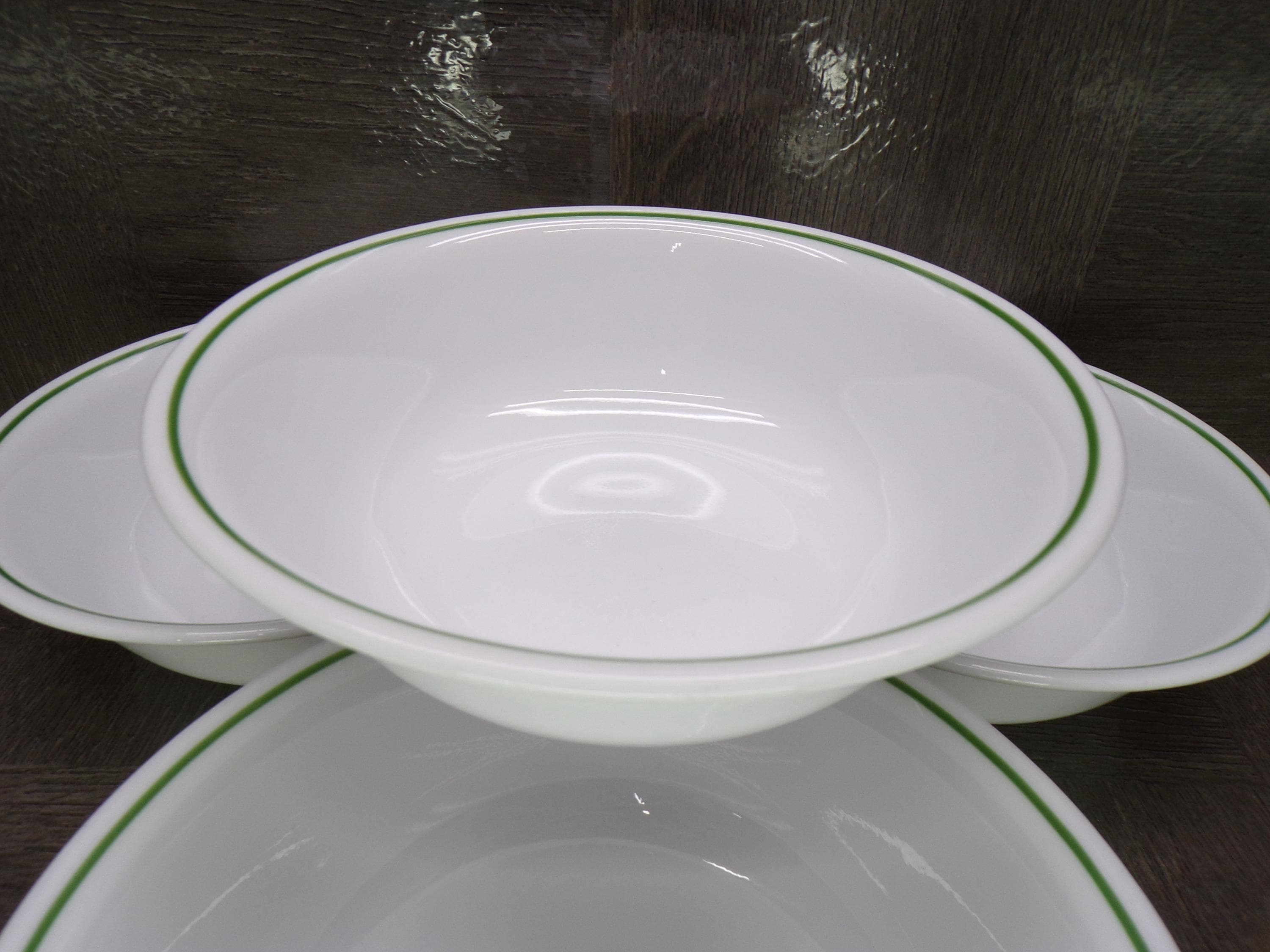 2602 Corelle White with Green Stripe 6.25" Bowls Set of 4 - Great Condition