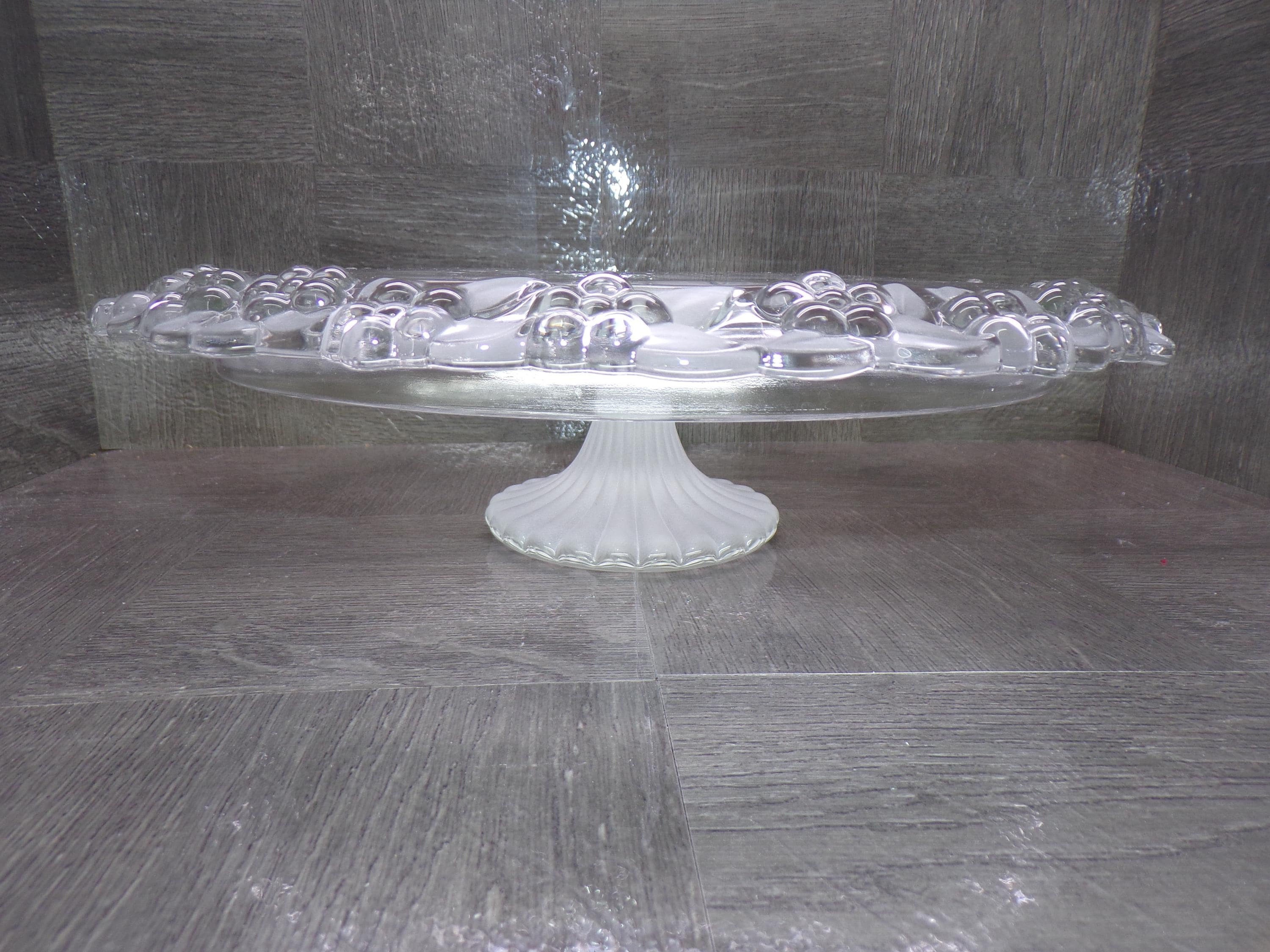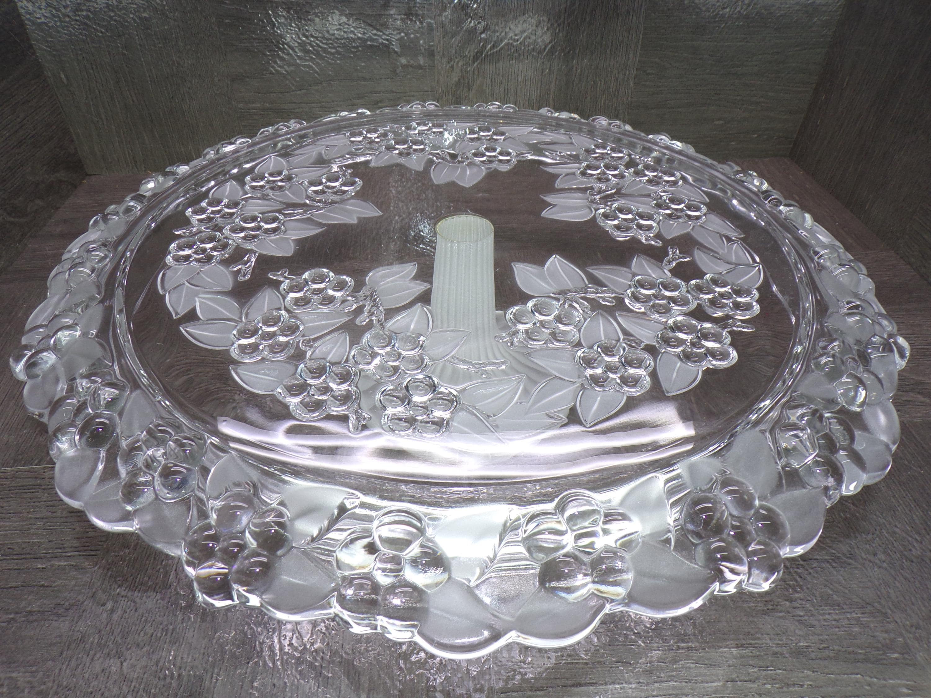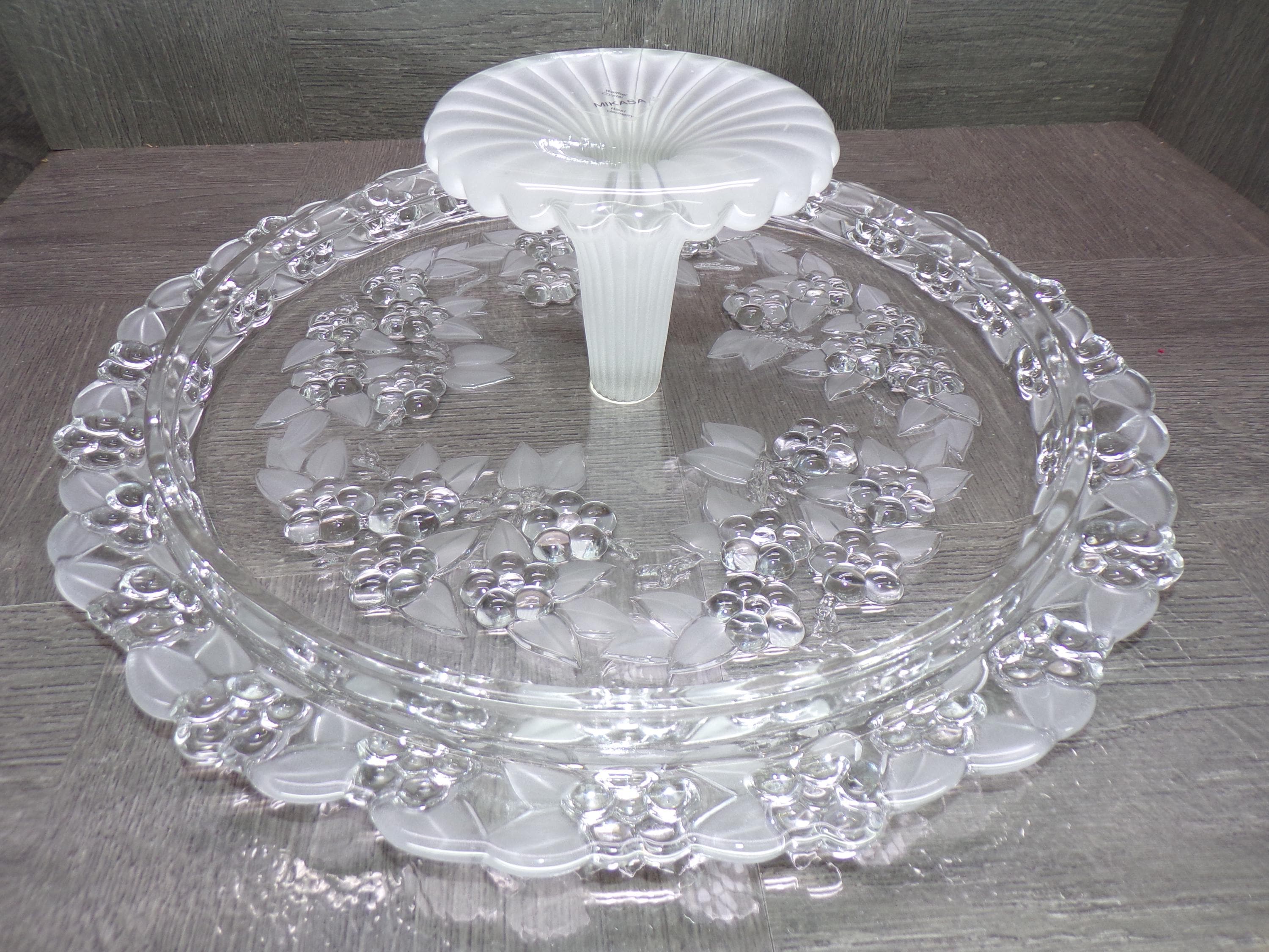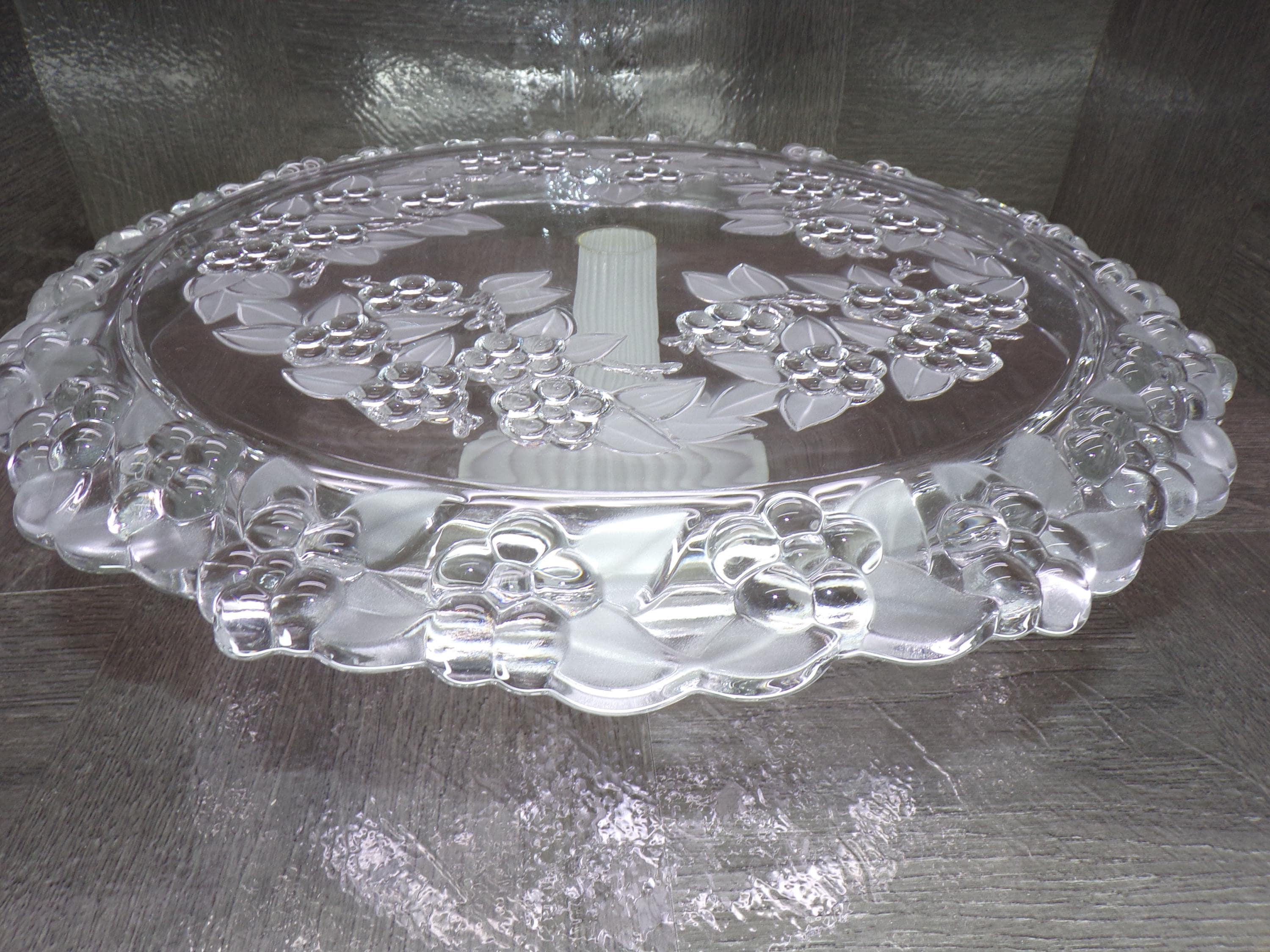 2602 Mikasa Carmen WaltherGlas 13" Holly n Berry Footed Vintage Cake Platter Berries & Frosted Leaves 3.5" Tall- Good Cond. Couple scratches