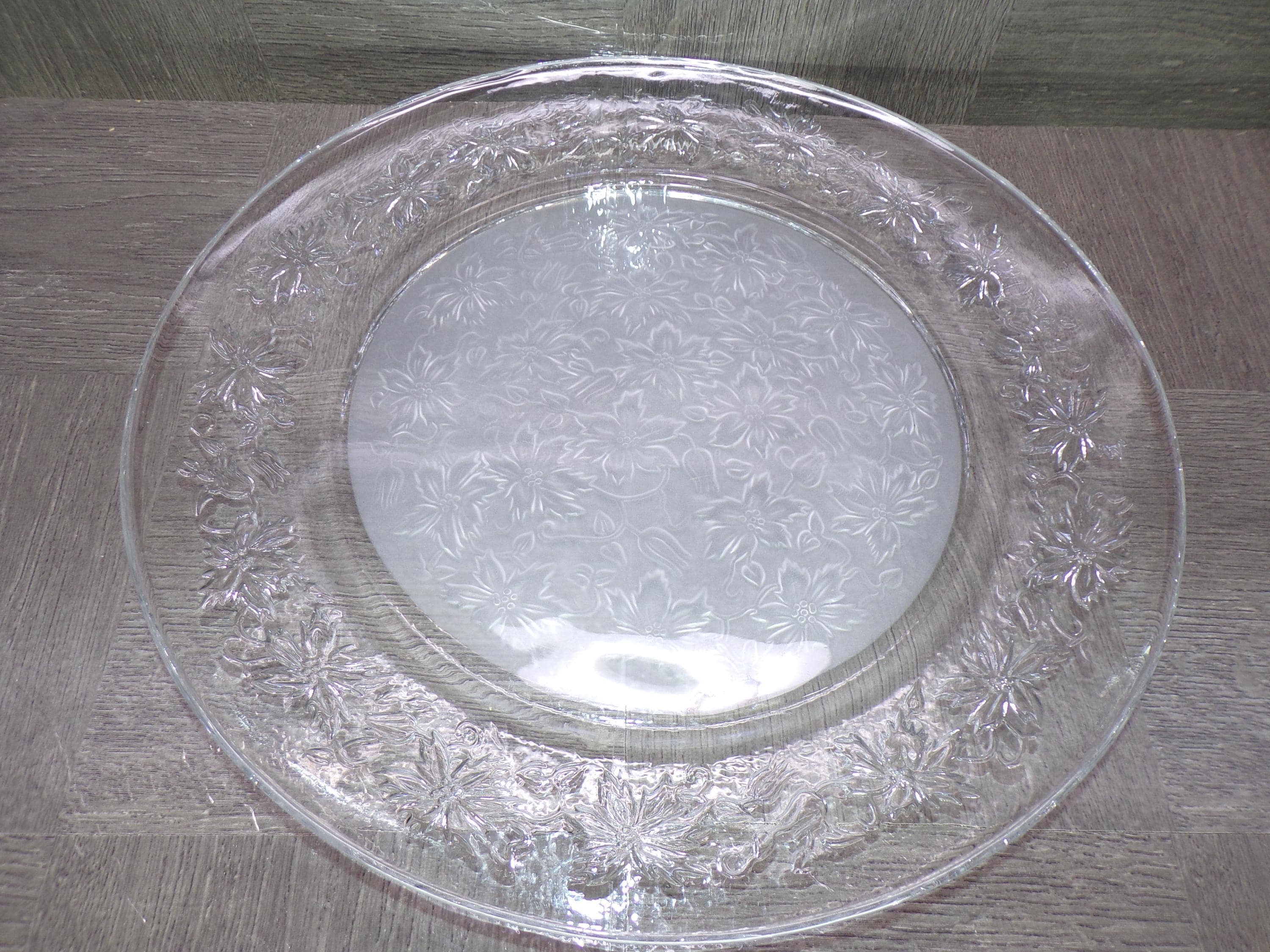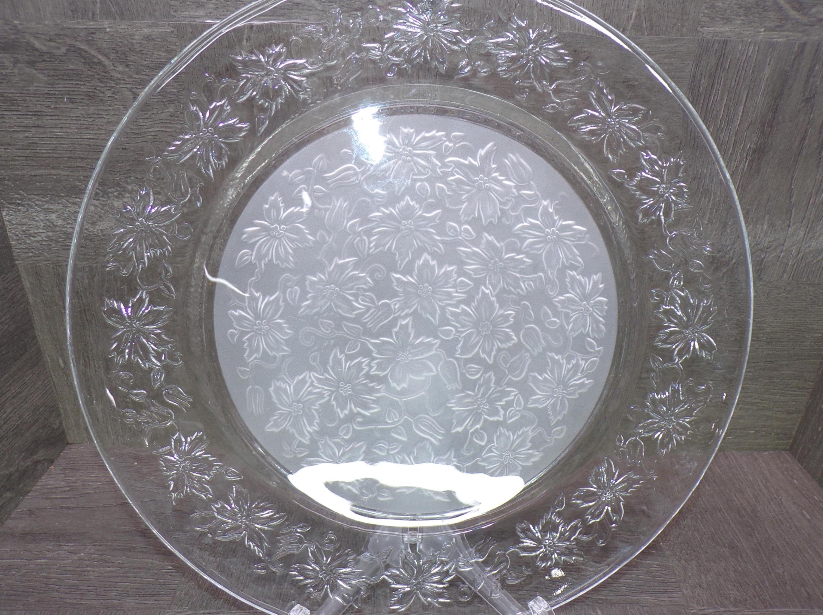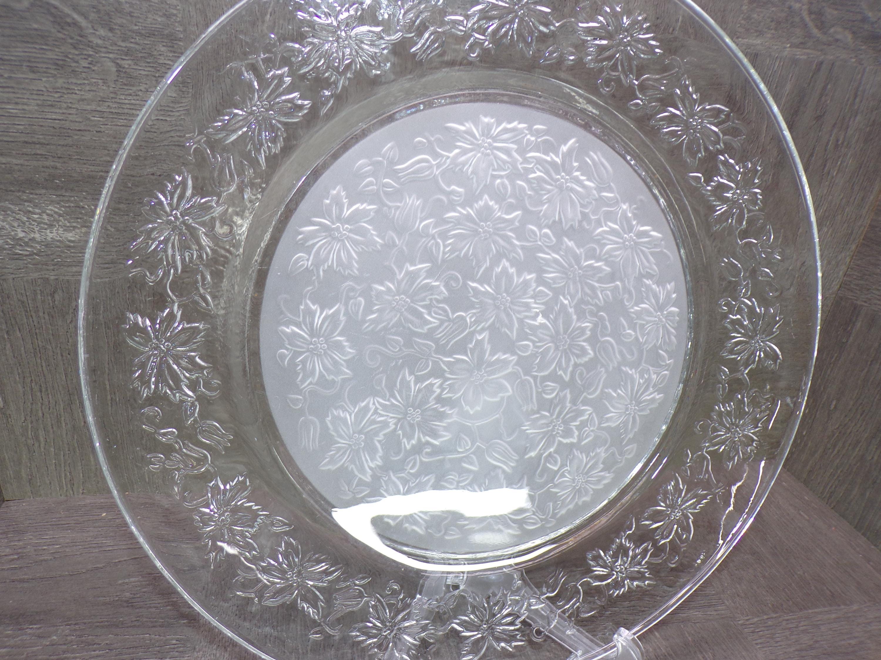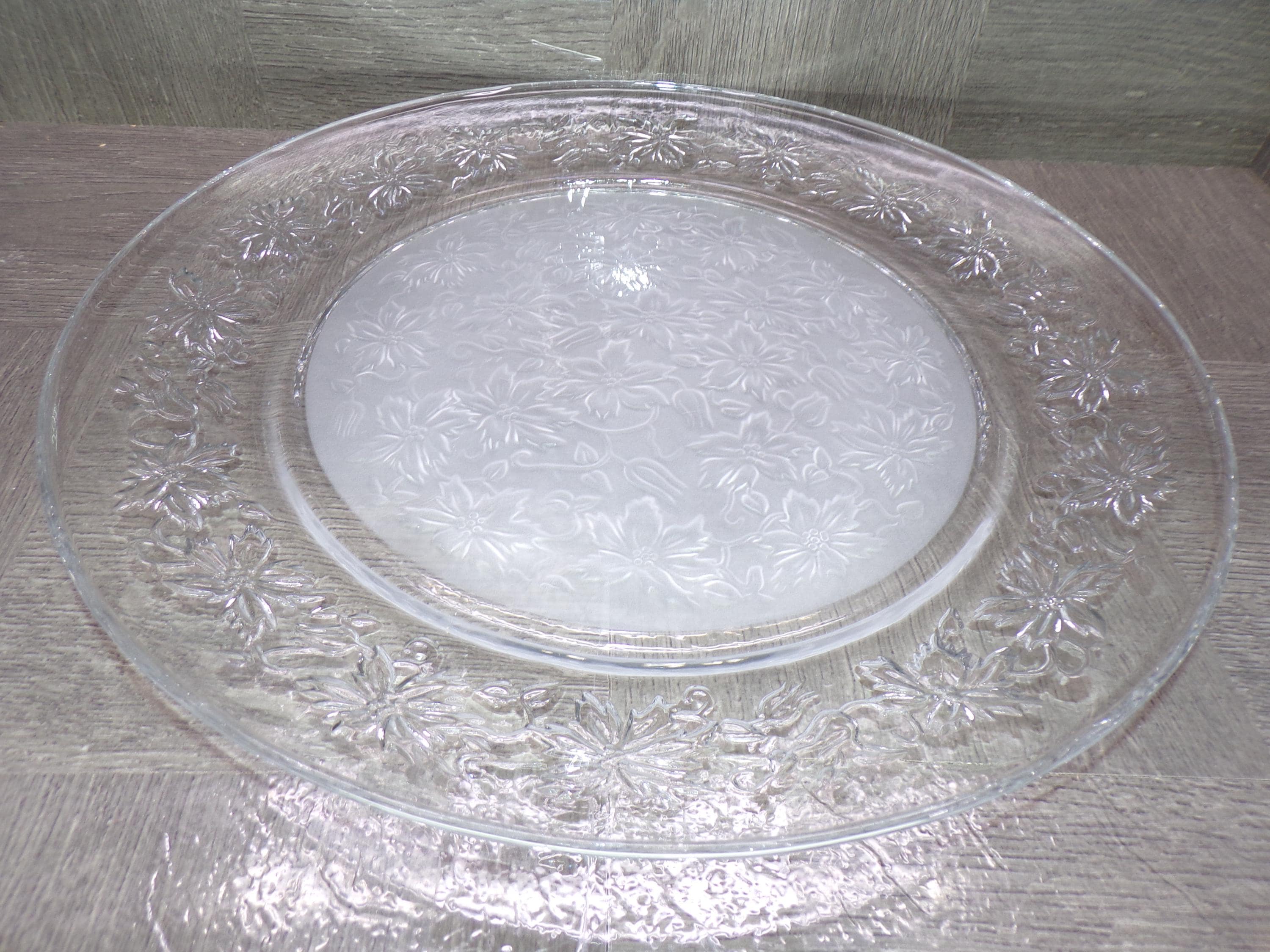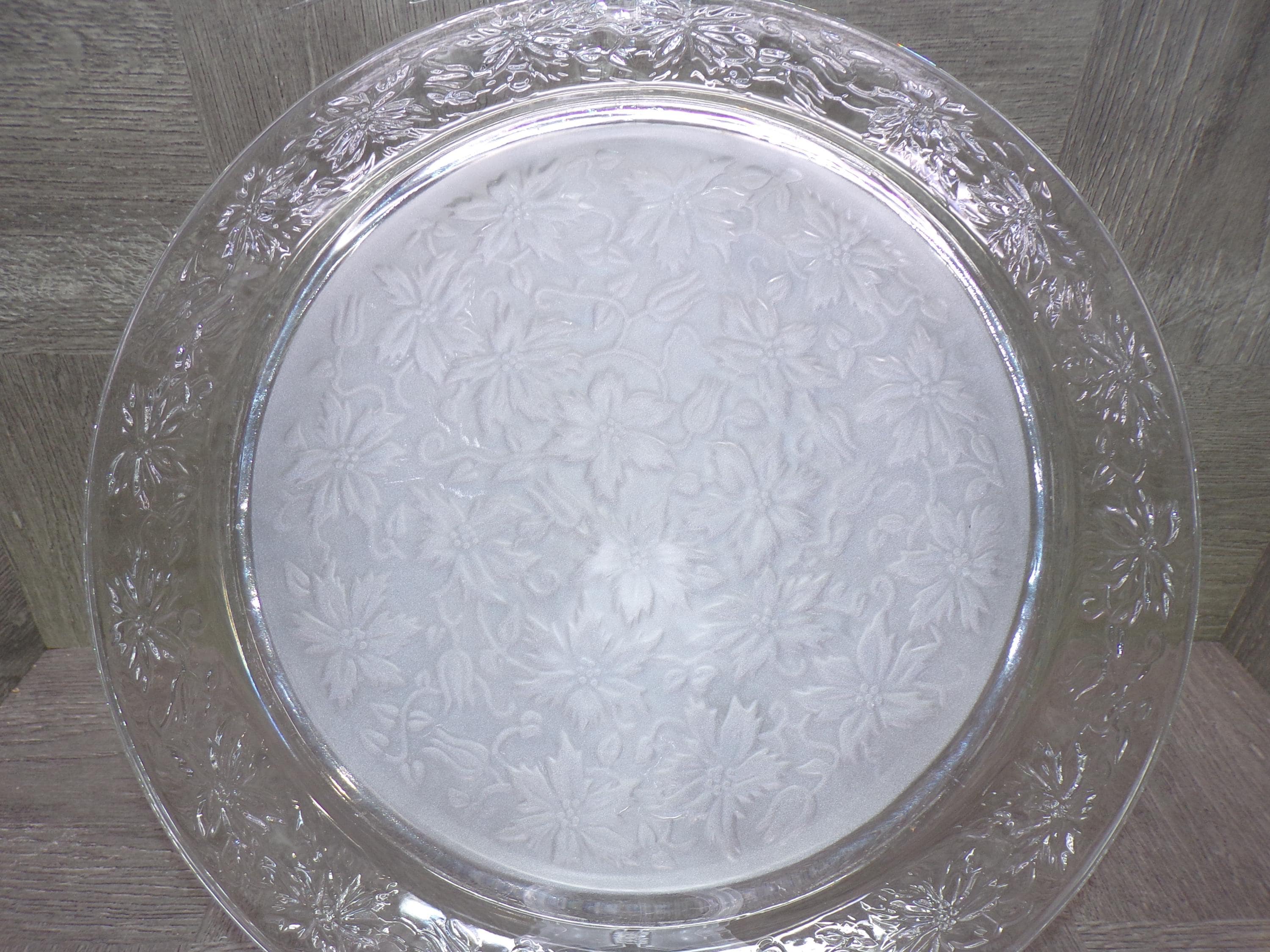 2602 Princess House Fantasia Vintage 13" Crystal Clear to Frosted Ivy/ Poinsettia Leaf Serving Platter - Good Condition Few Scratches