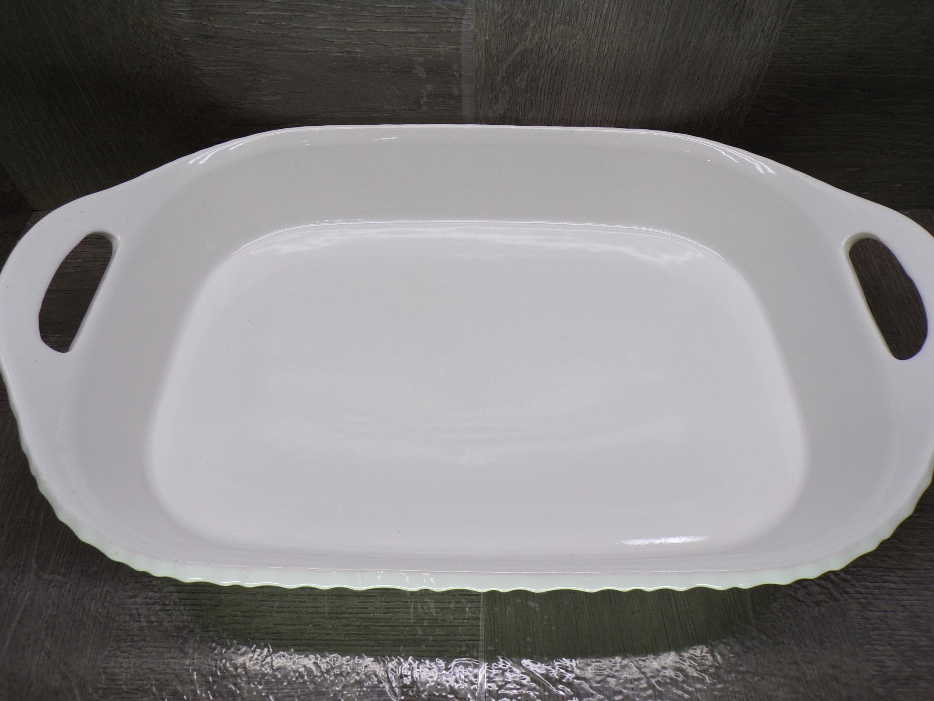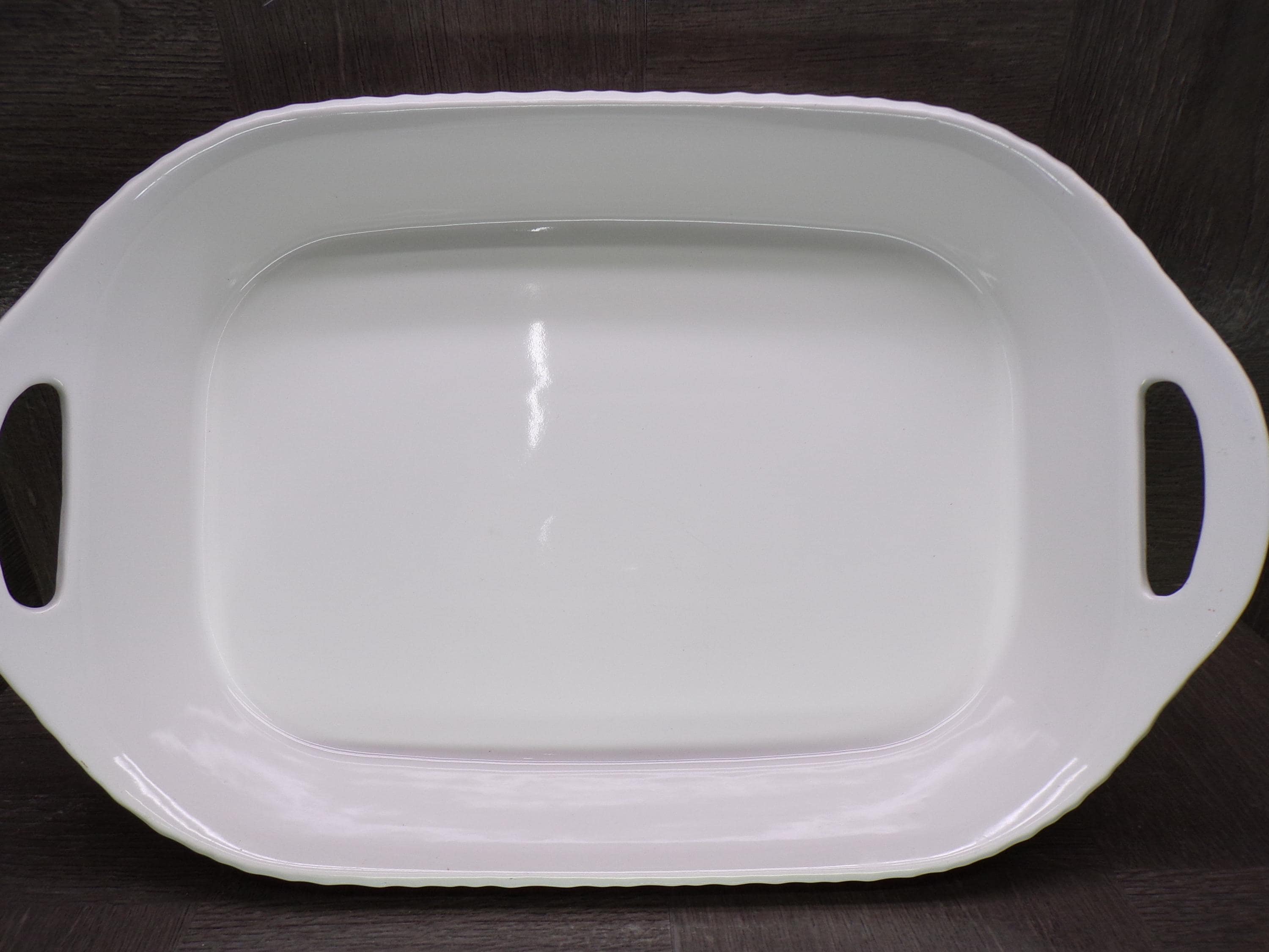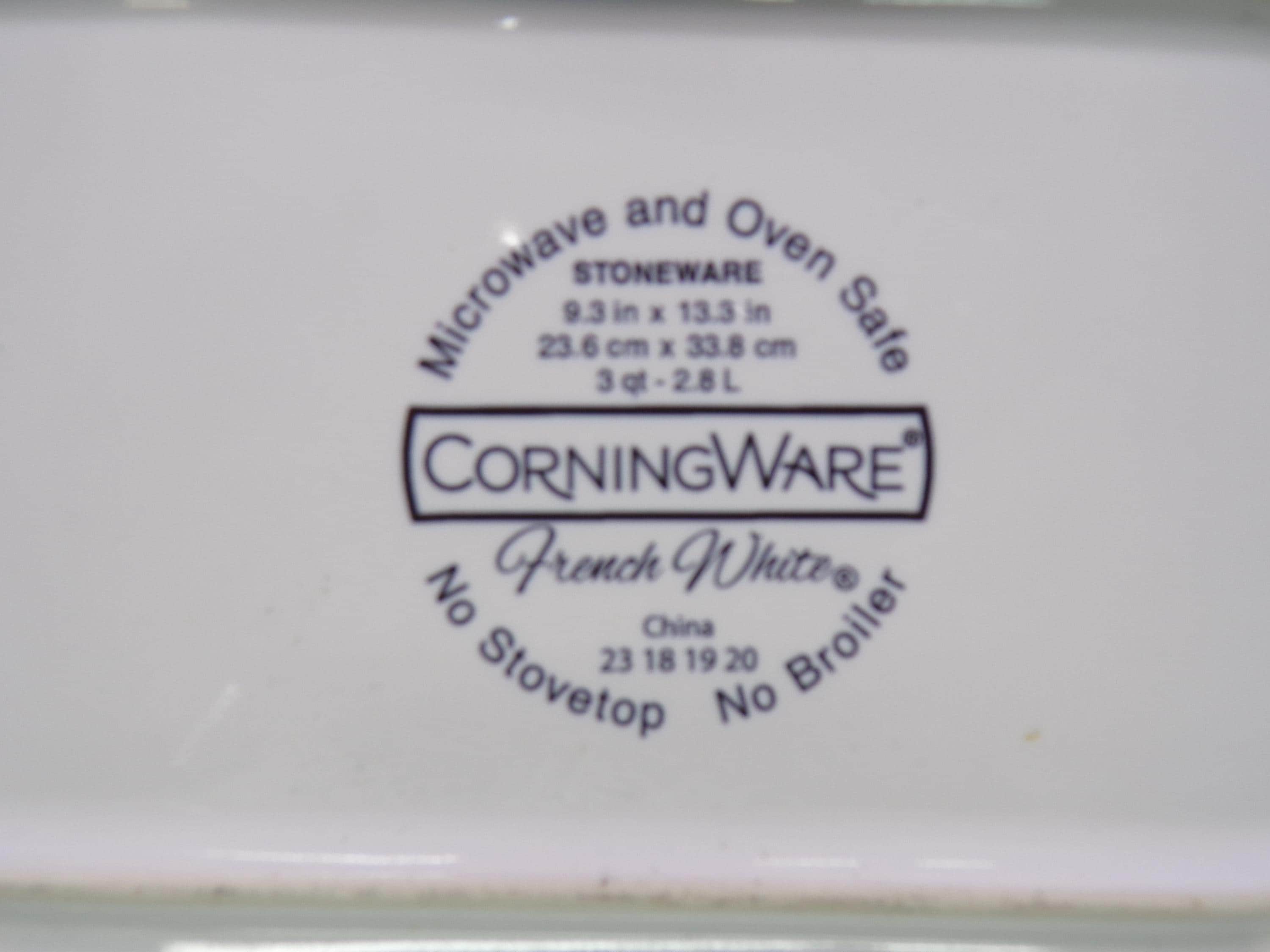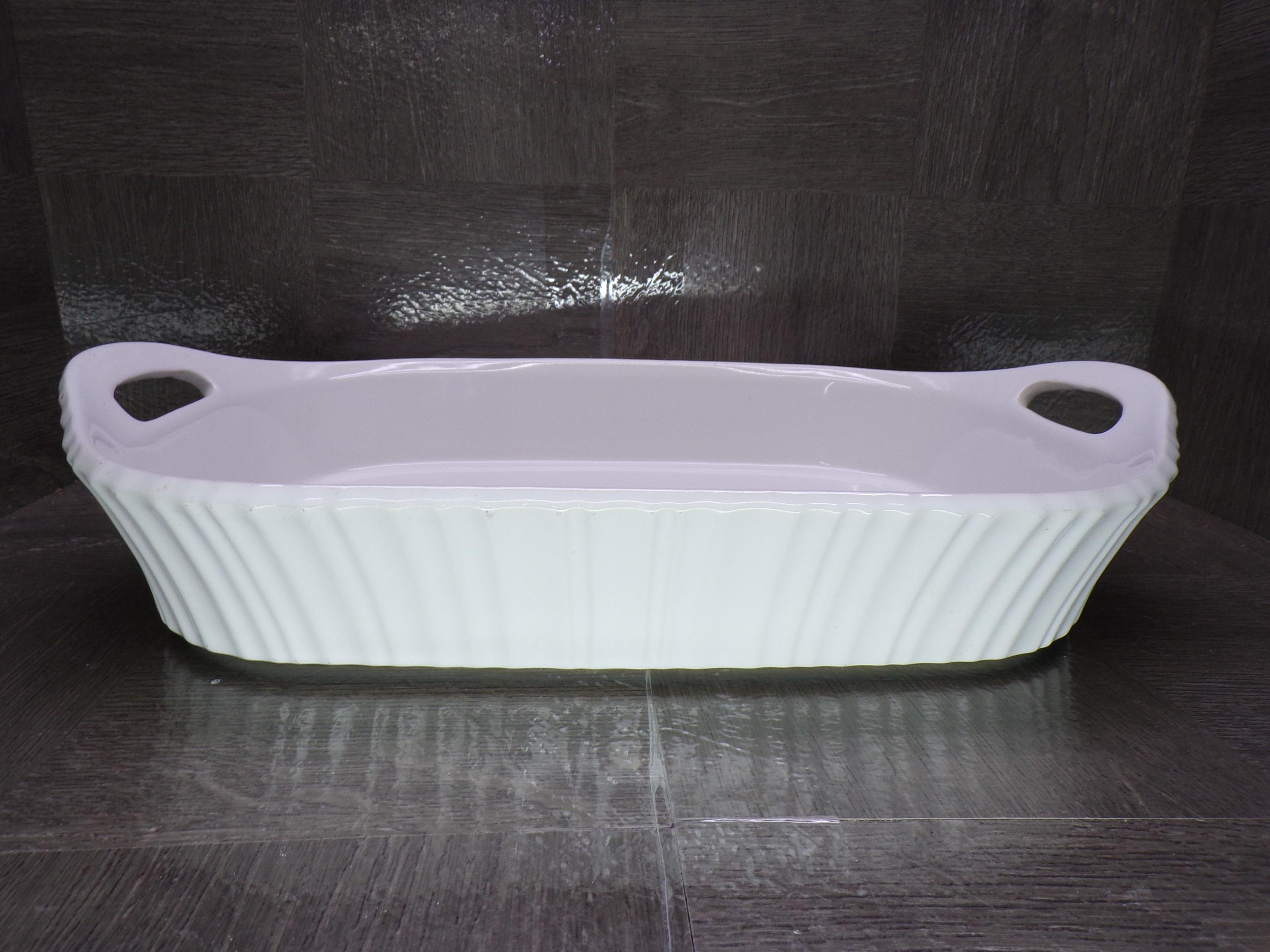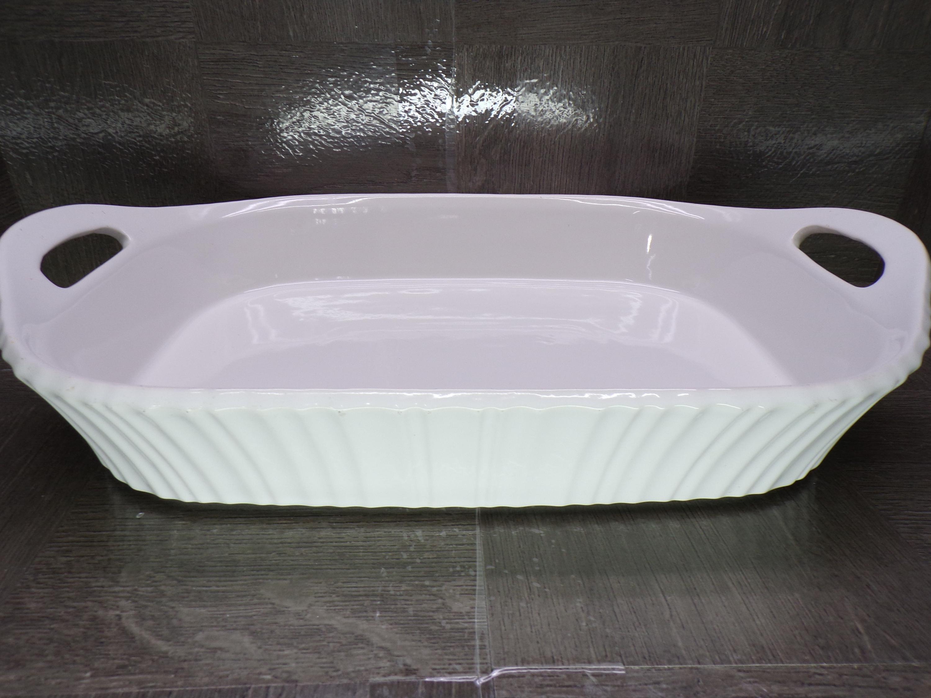 2602 Corning Ware French White 3qt. 9" X 13" Lasagna Casserole Baking Pan Ribbed White w/ Handles - Good Condition Little Wear