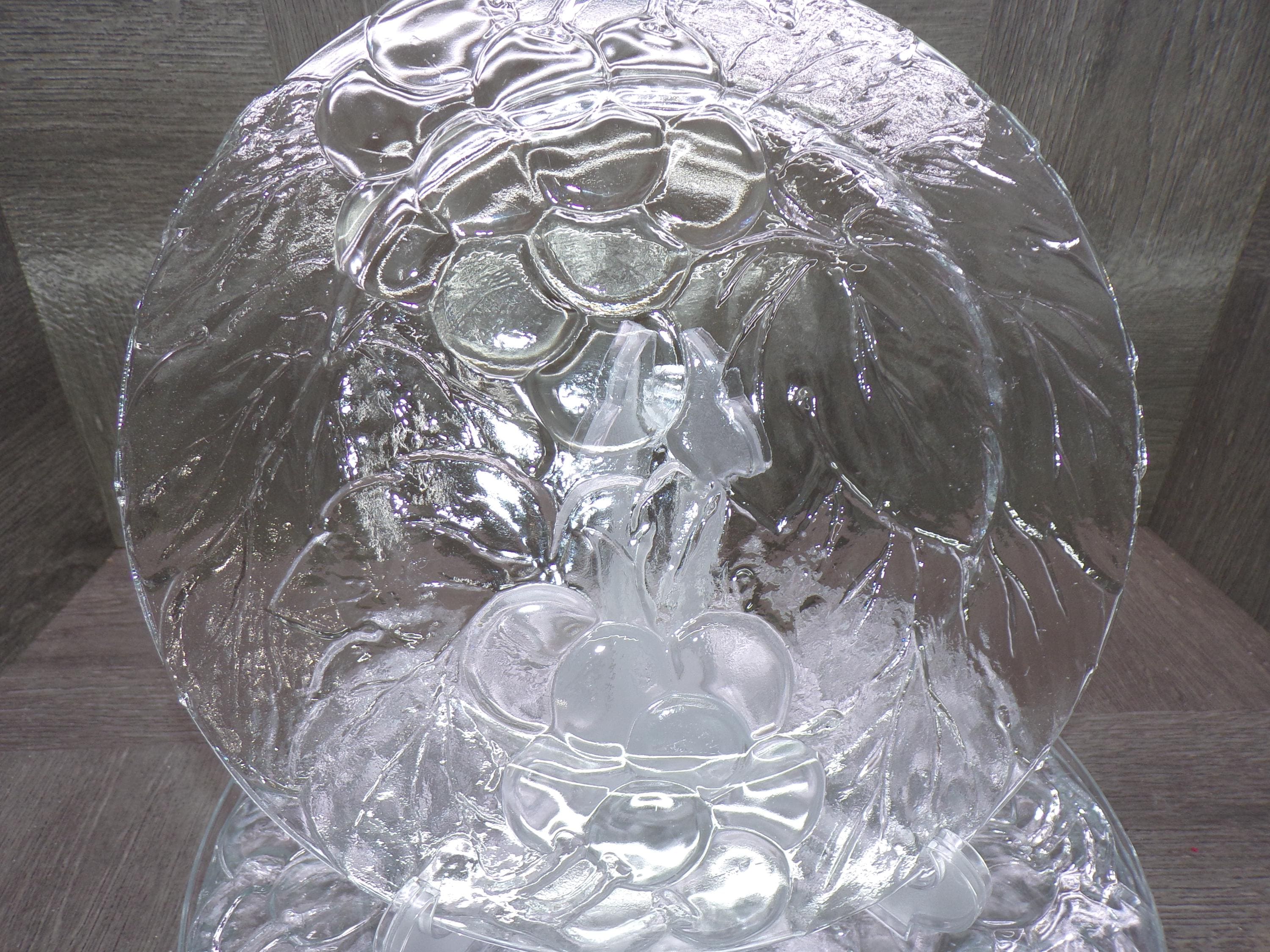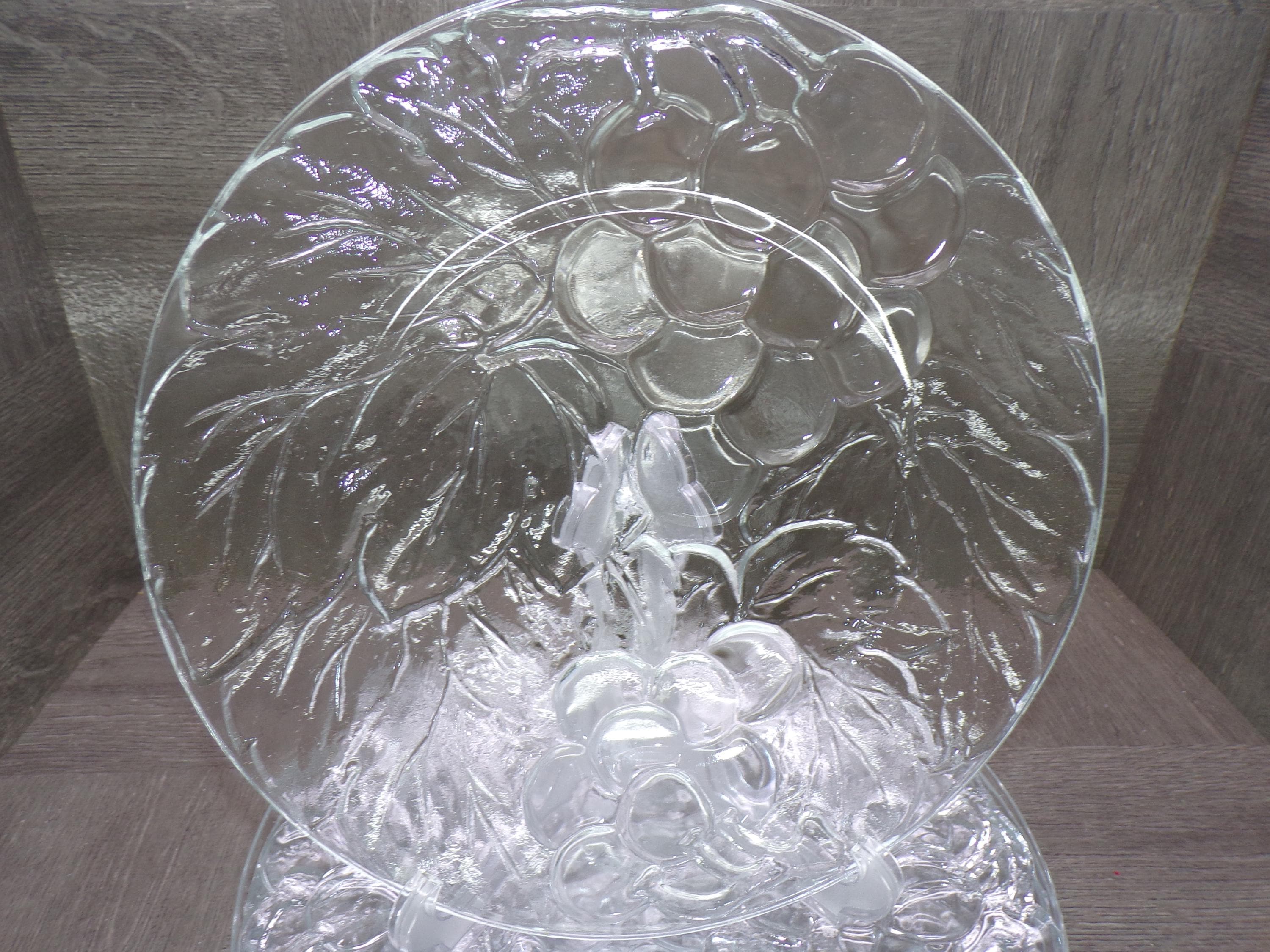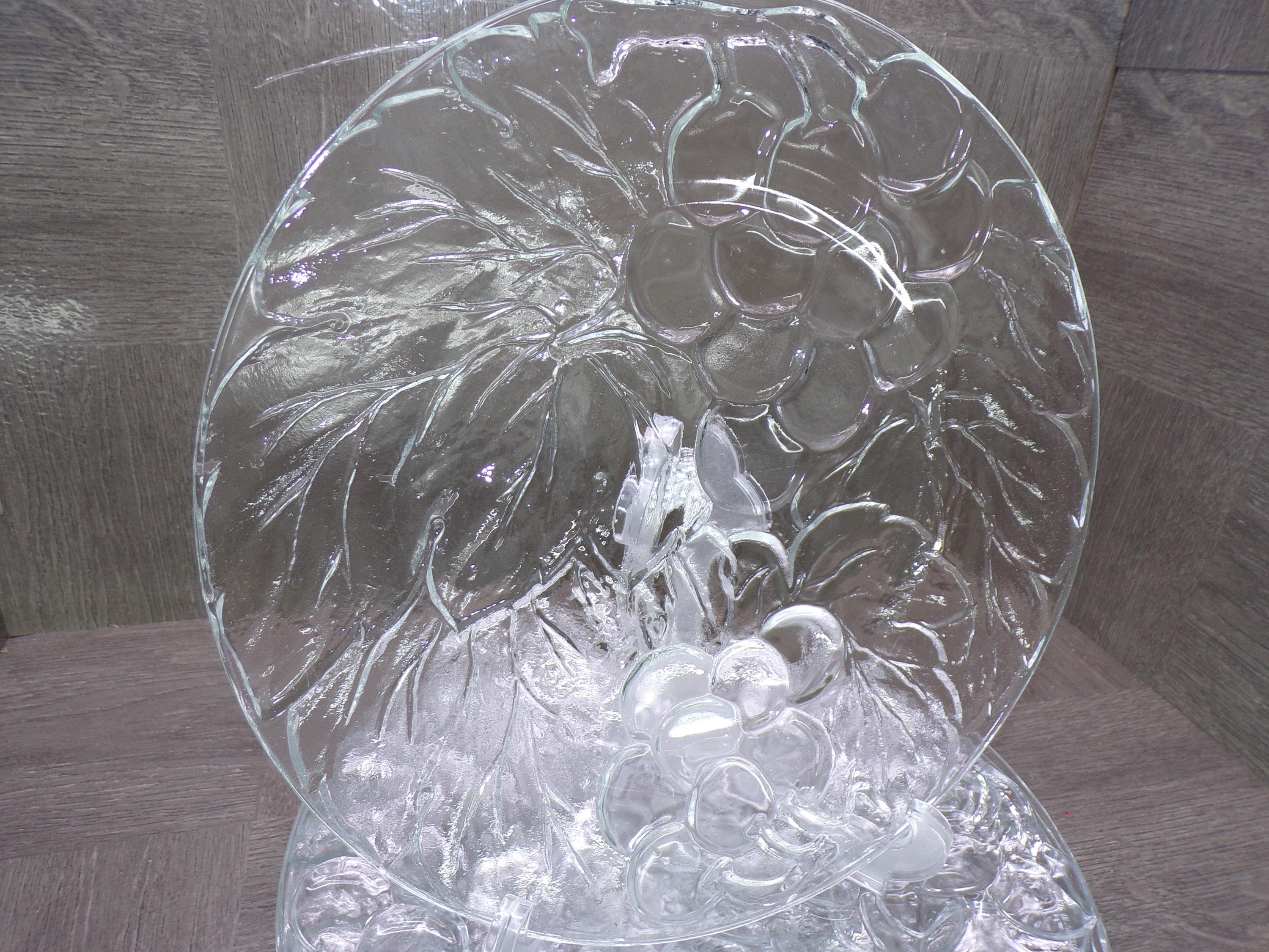 2602 KIG Glass Embossed Grapes & Leaves Thick Clear Glass 10.25" Dinner Plates Set of 6 Made in Indonesia - Great Condition