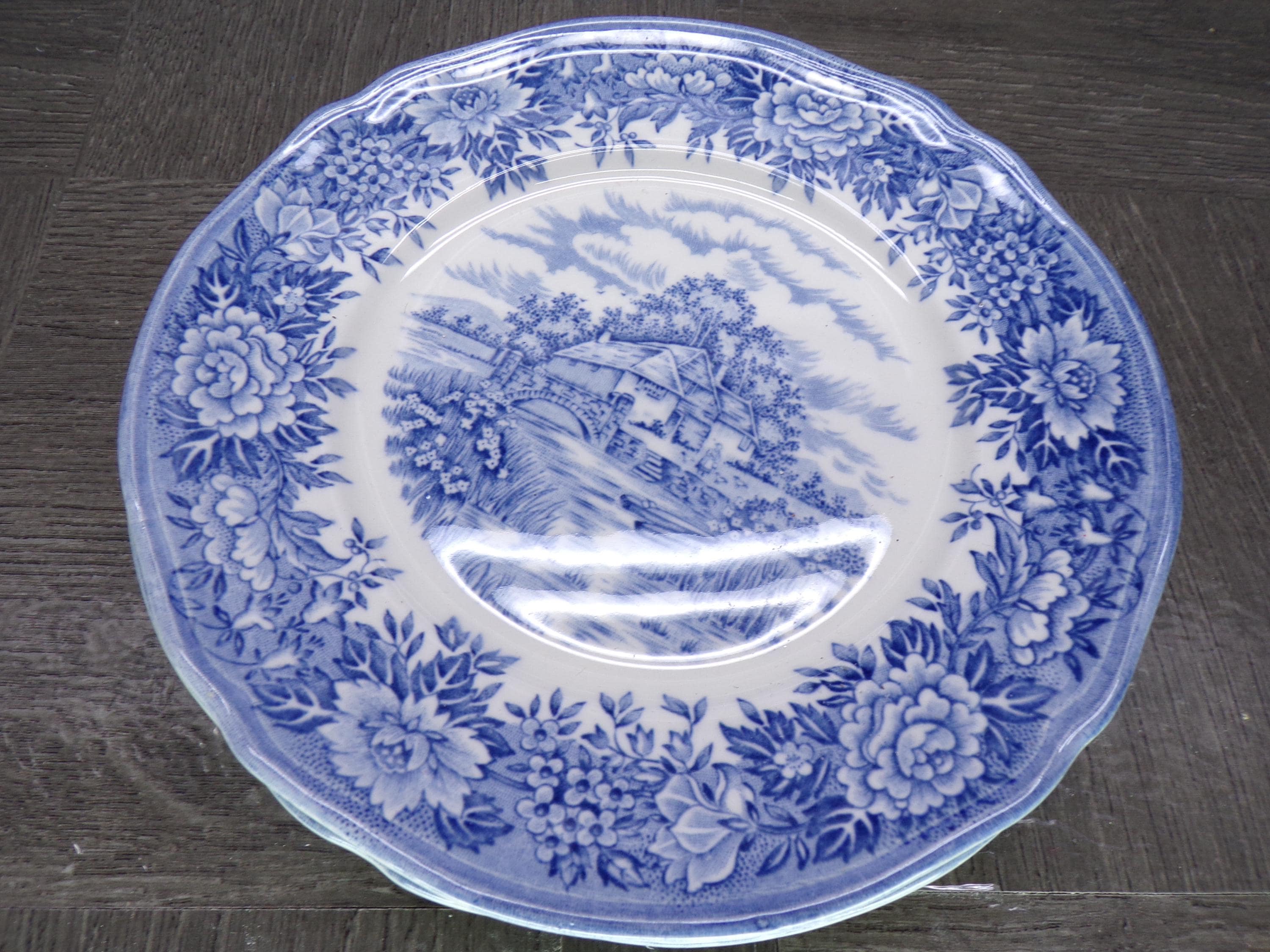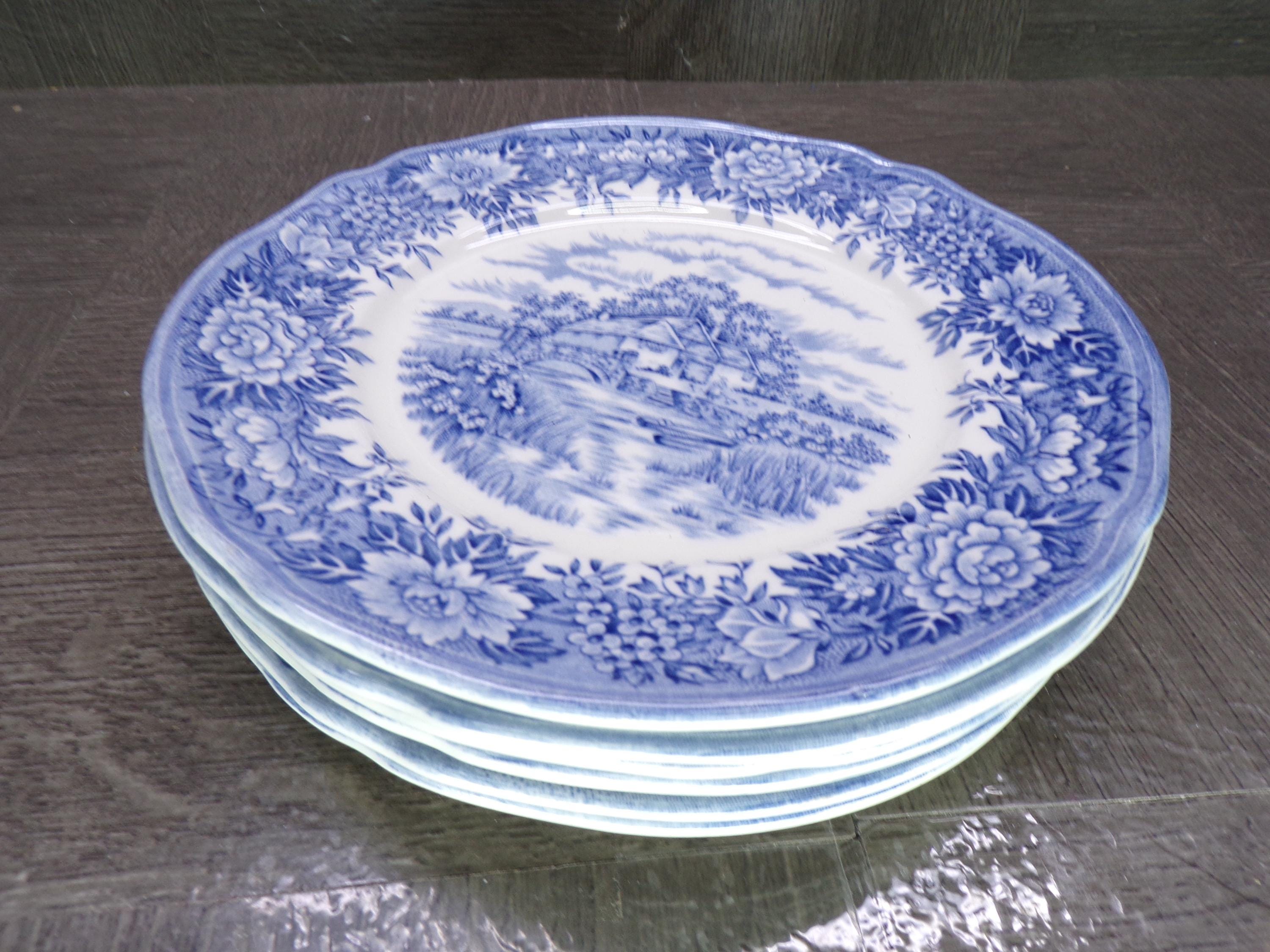 2602 English Village Hand Engraved Ironstone 6.5" Salad Snack Plates Set of 6 by Salem China Co. Olde Staffordshire England Great Condition