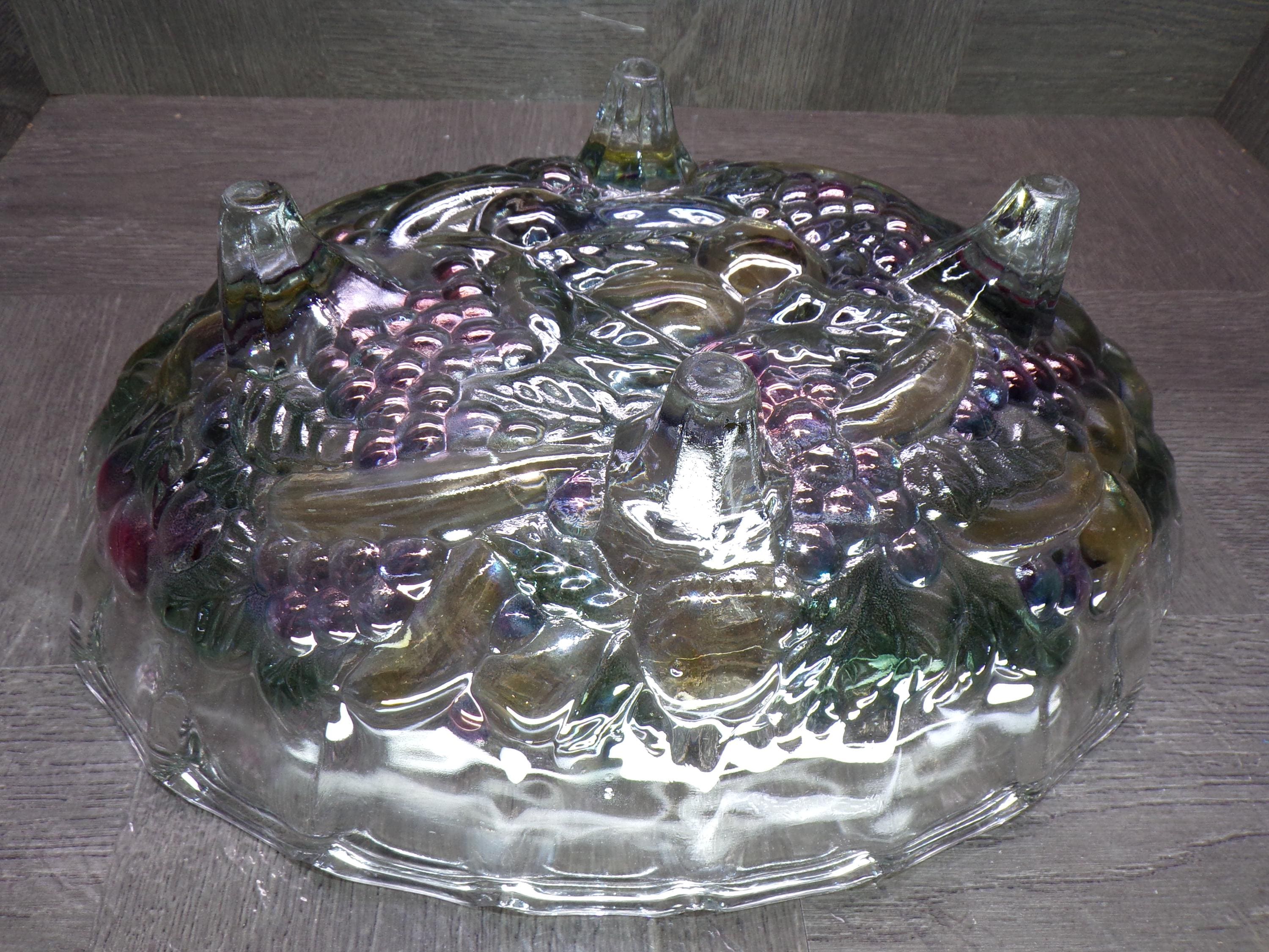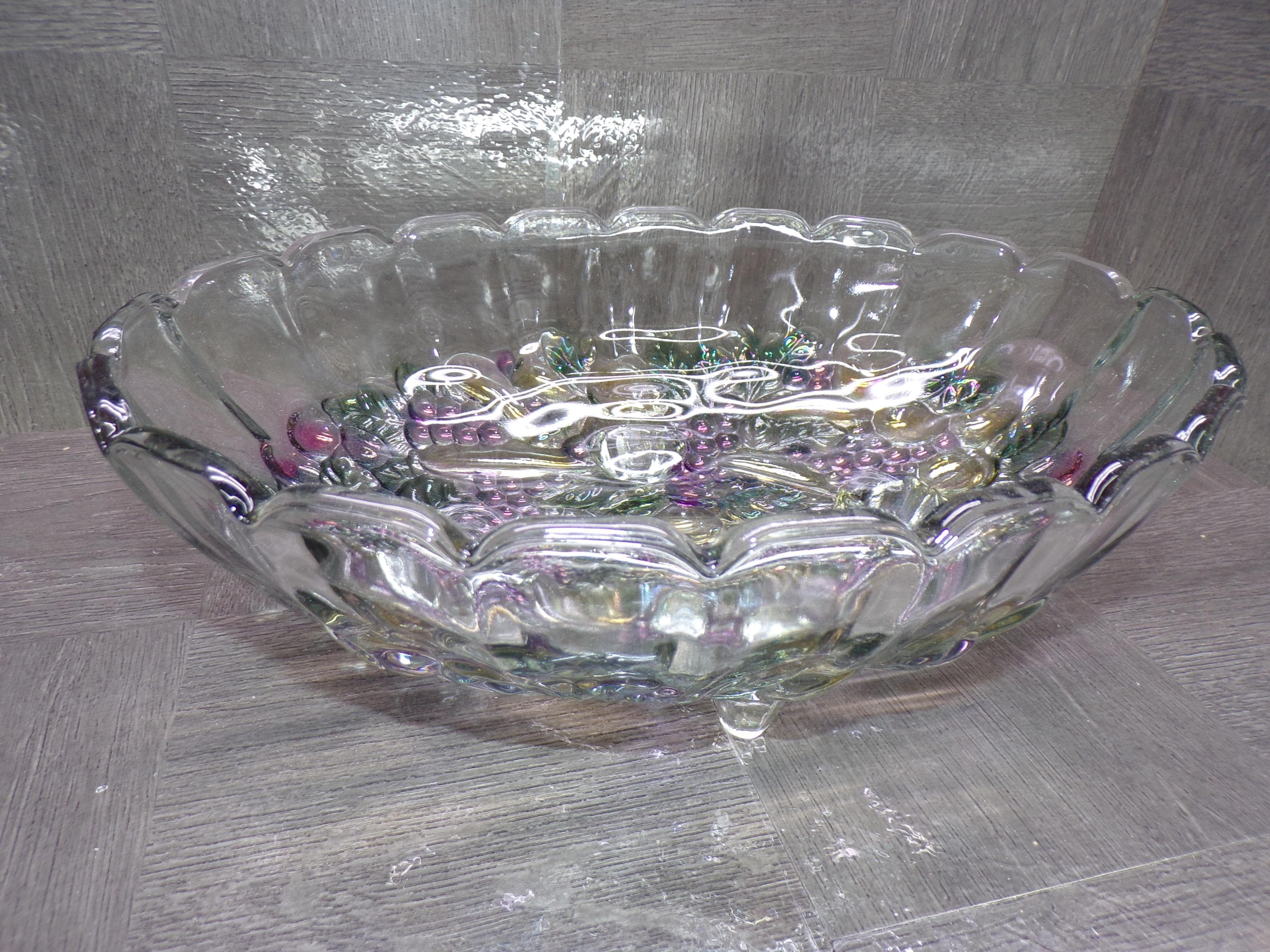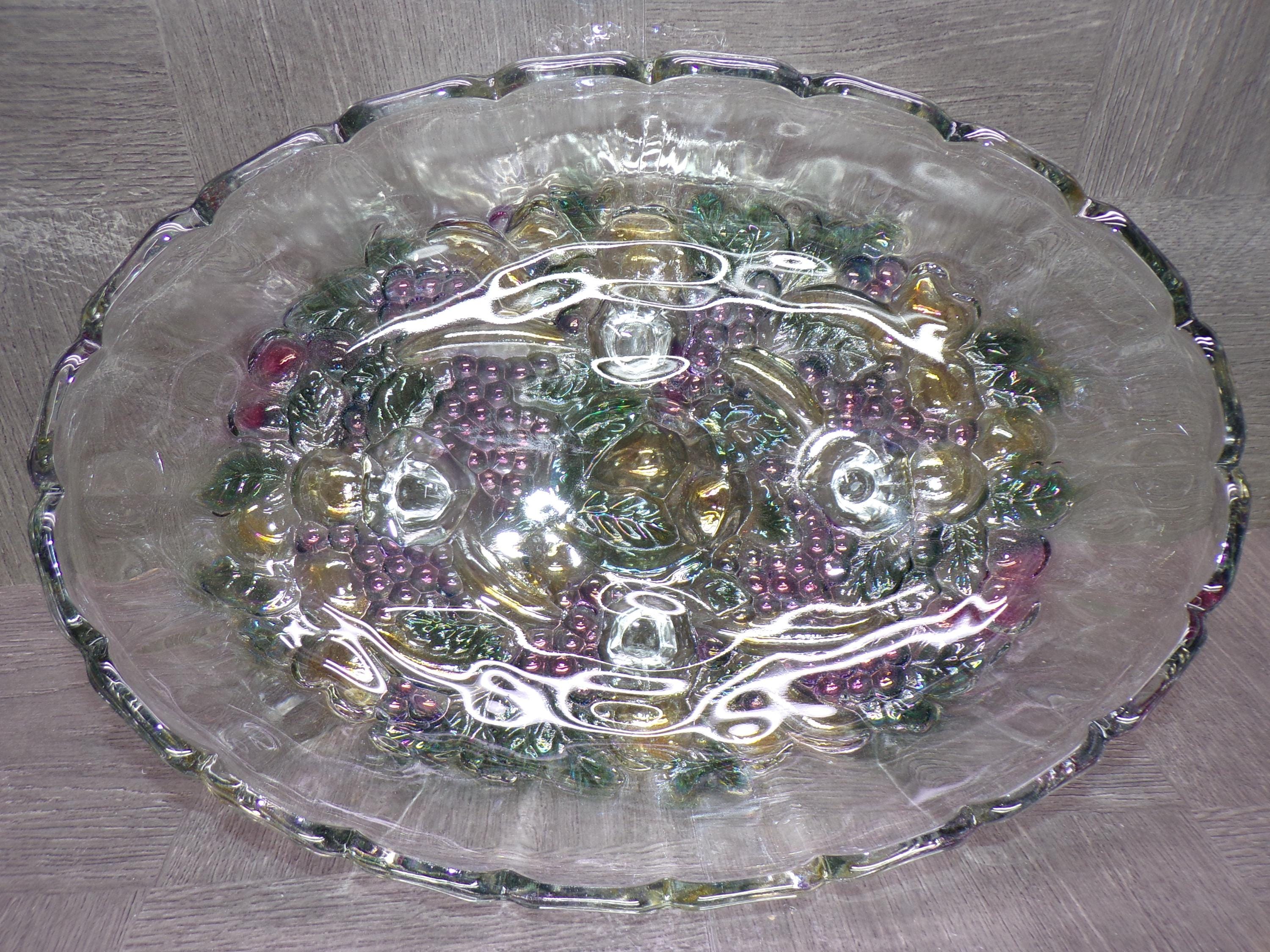 2602 Beautiful Vintage Indiana Glass Footed 8" x 12" Clear / Colored Embossed Oval Panel Glass Fruit Bowl - Great Condition