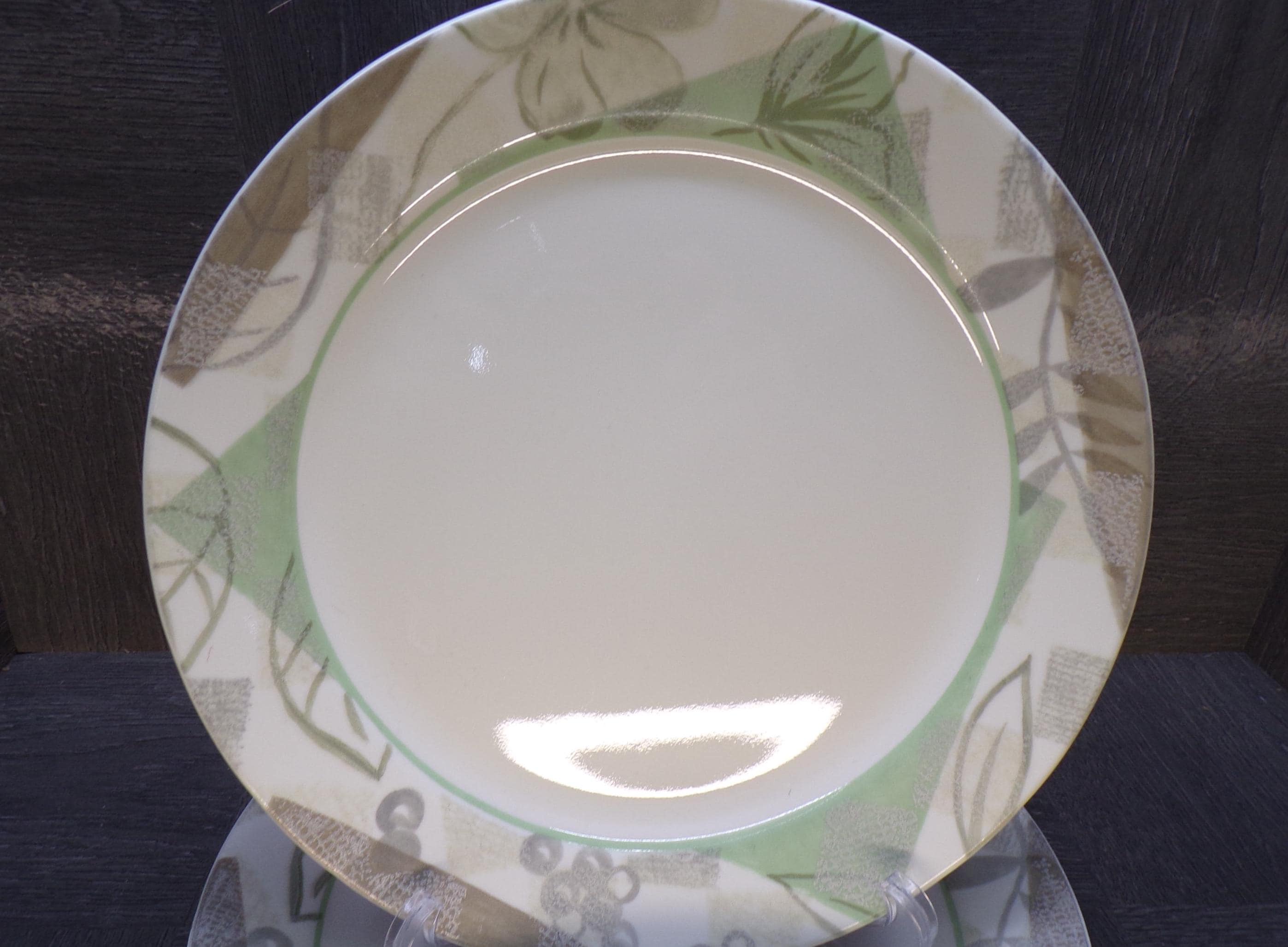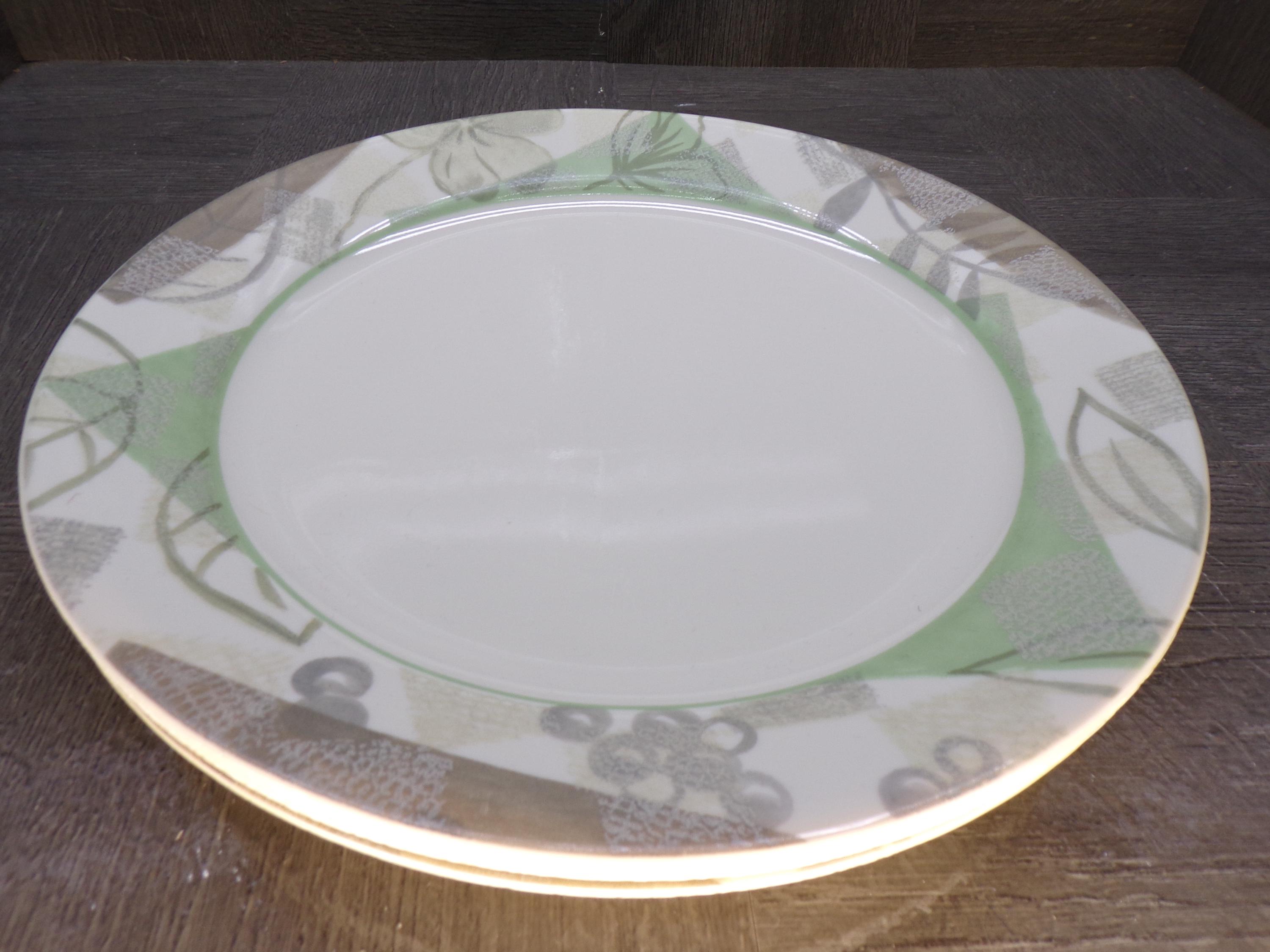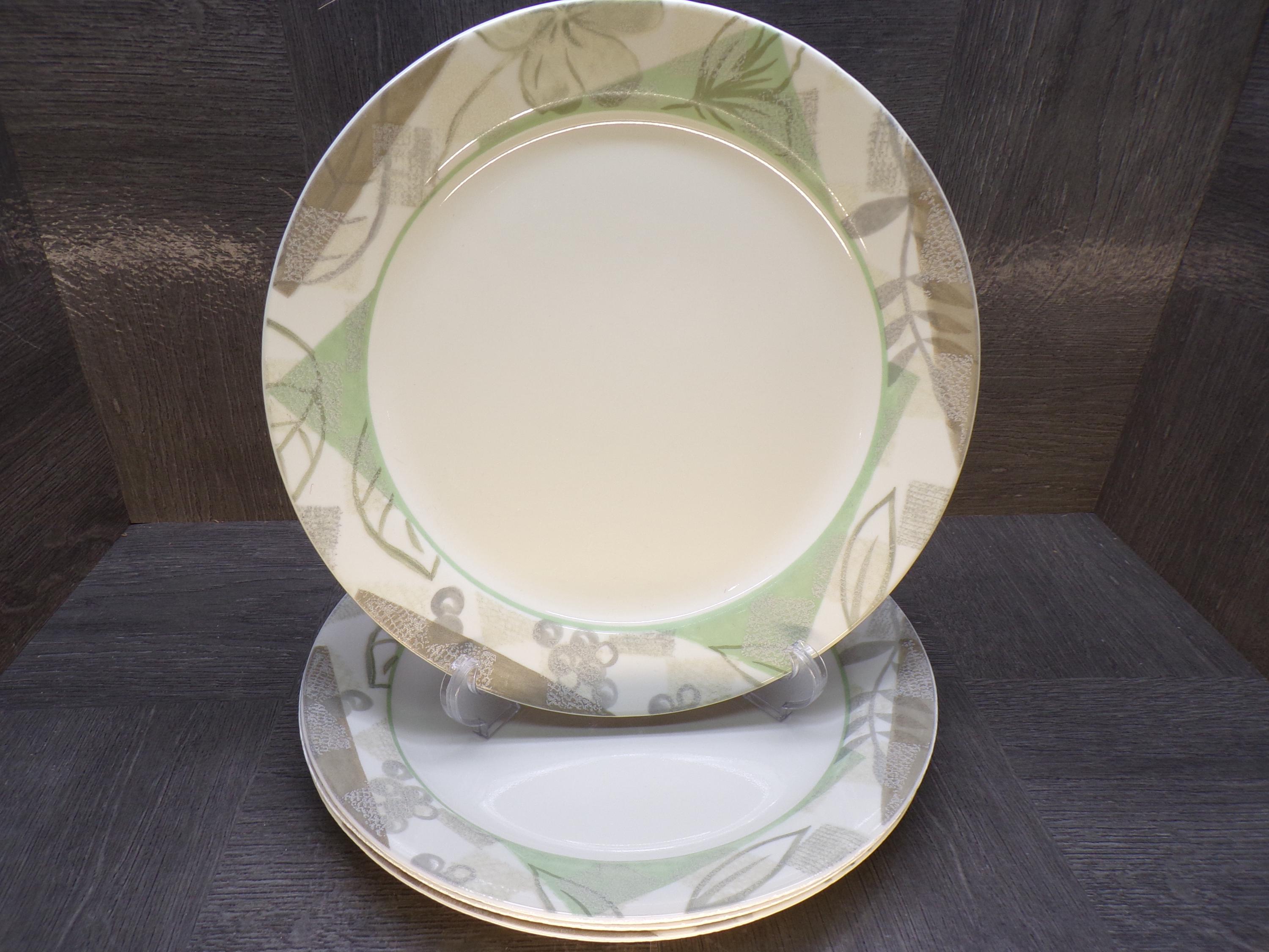 2602 Corelle Vitrelle Textured leaves Dinnerware Beige Green Leaf 10.25" Dinner Plates Set of 4 - Great Surface Condition Rough Edges