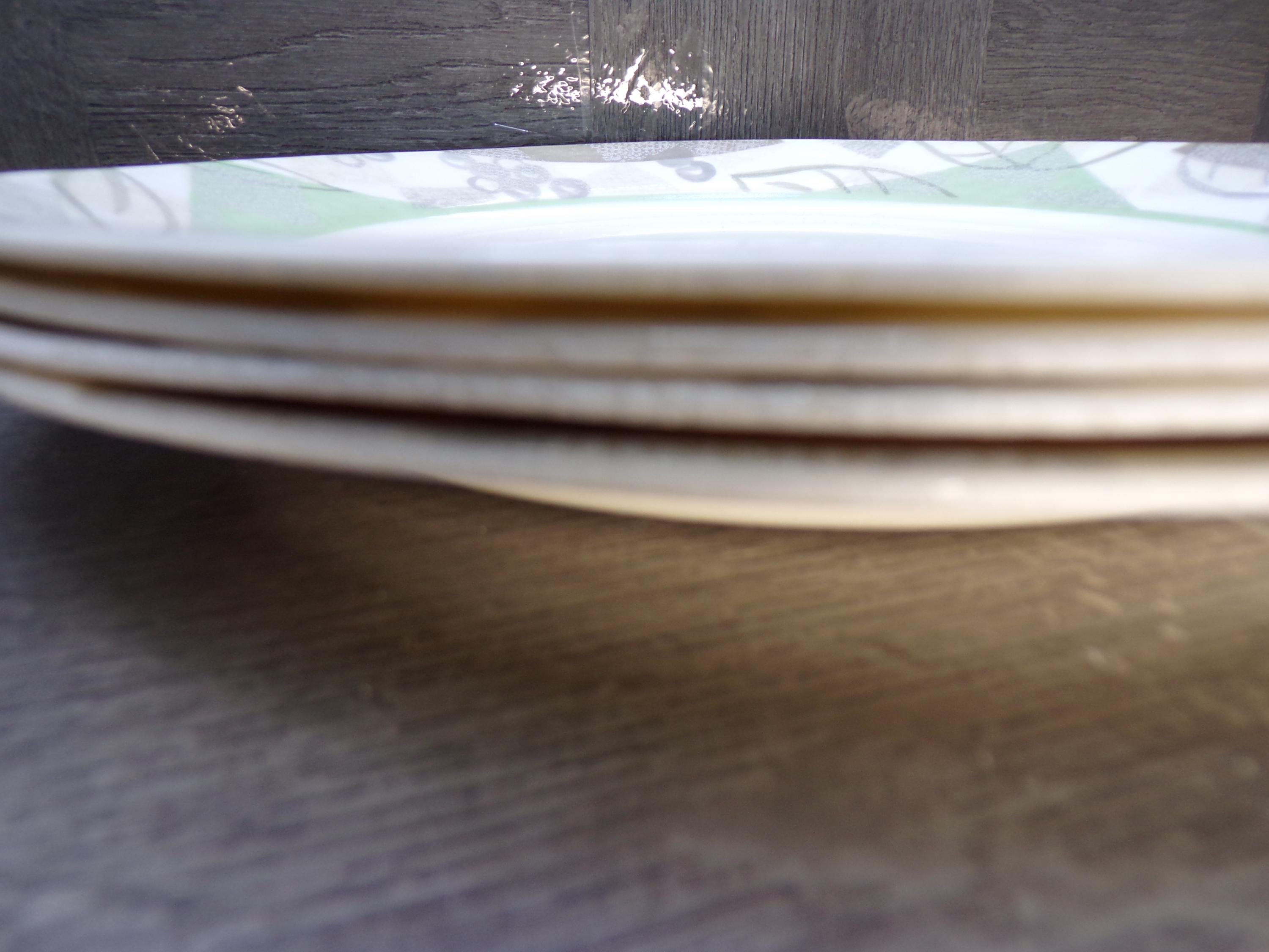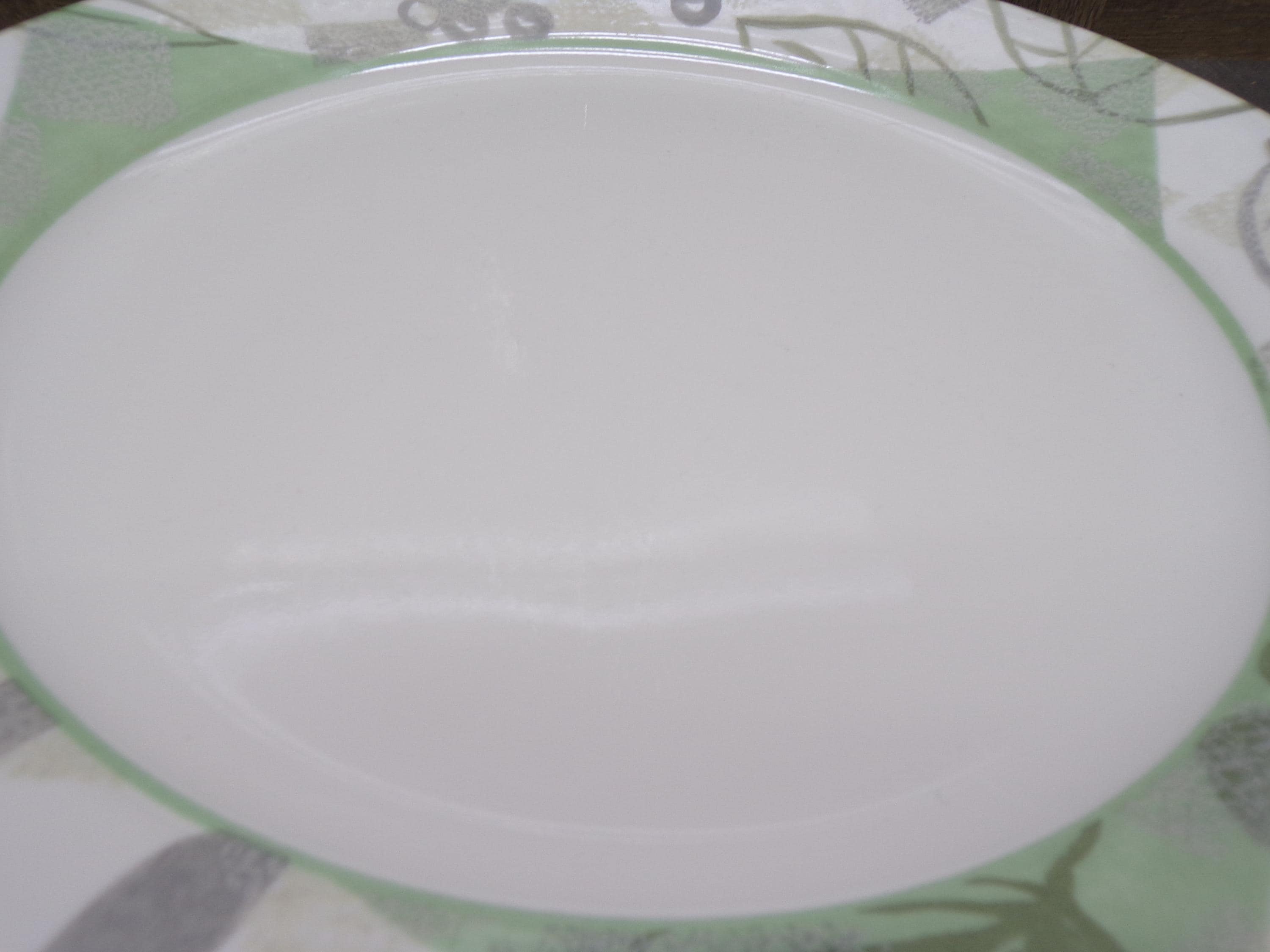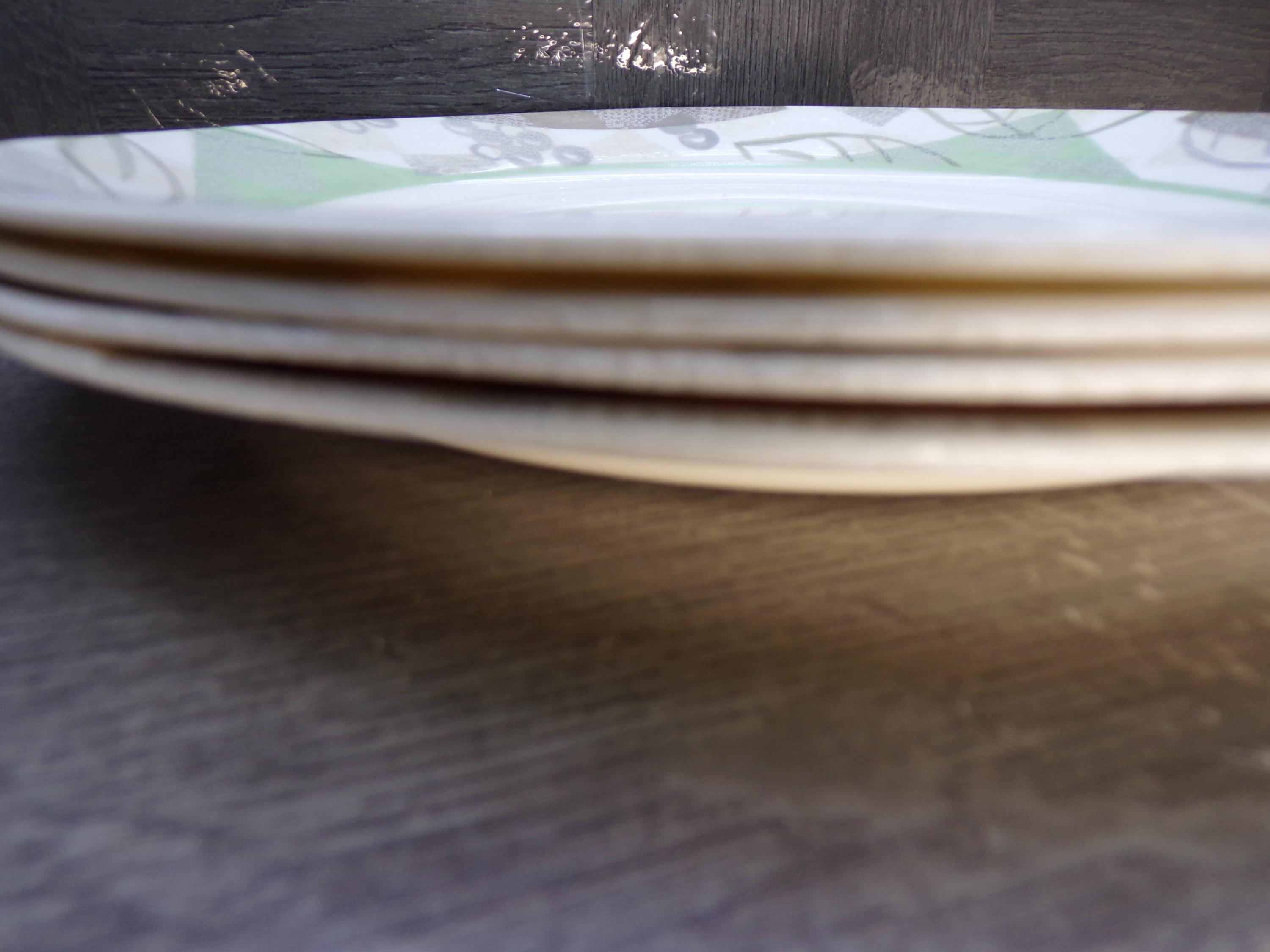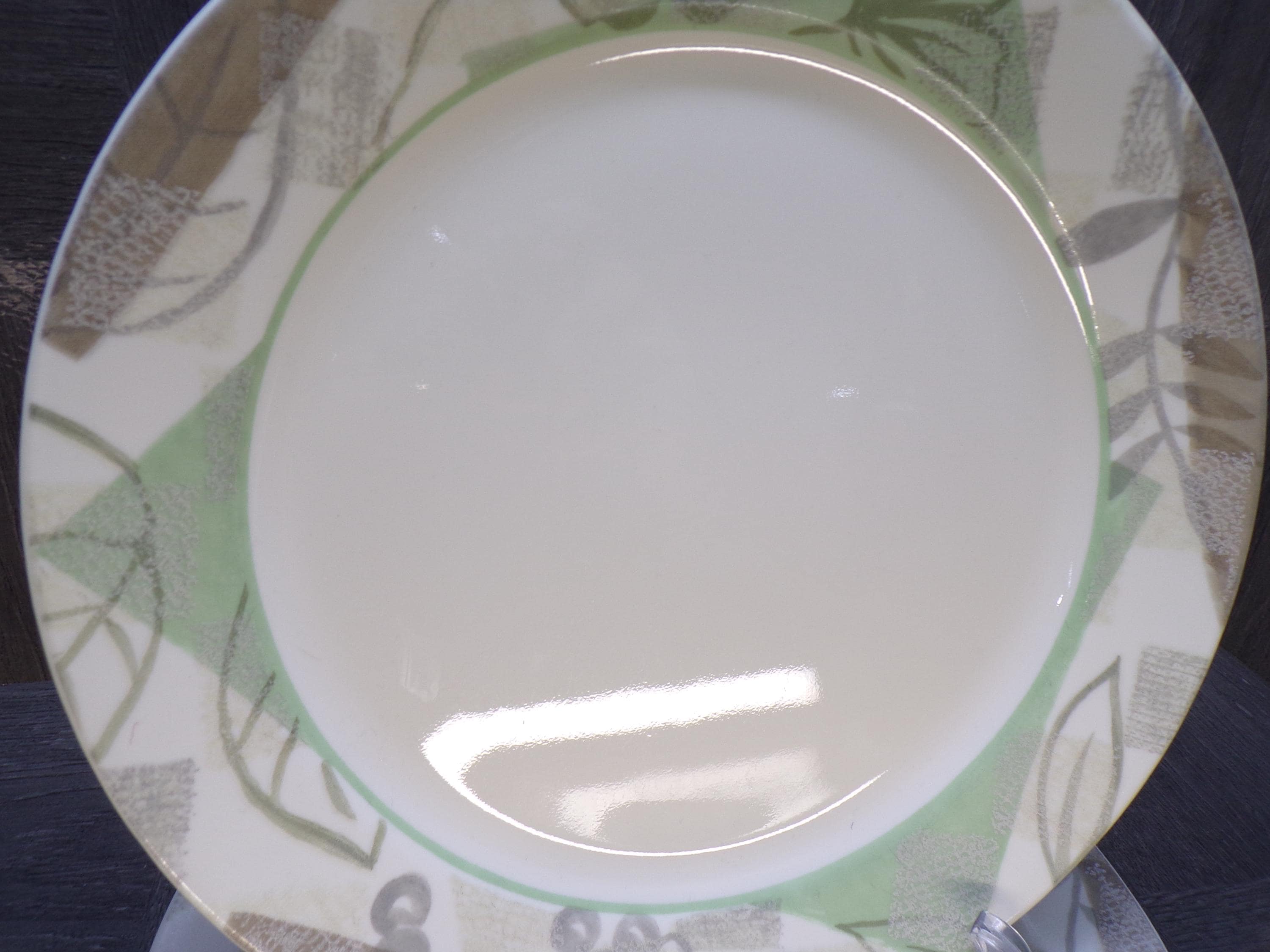 2602 Corelle Vitrelle Textured leaves Dinnerware Beige Green Leaf 10.25" Dinner Plates Set of 4 - Great Surface Condition Rough Edges