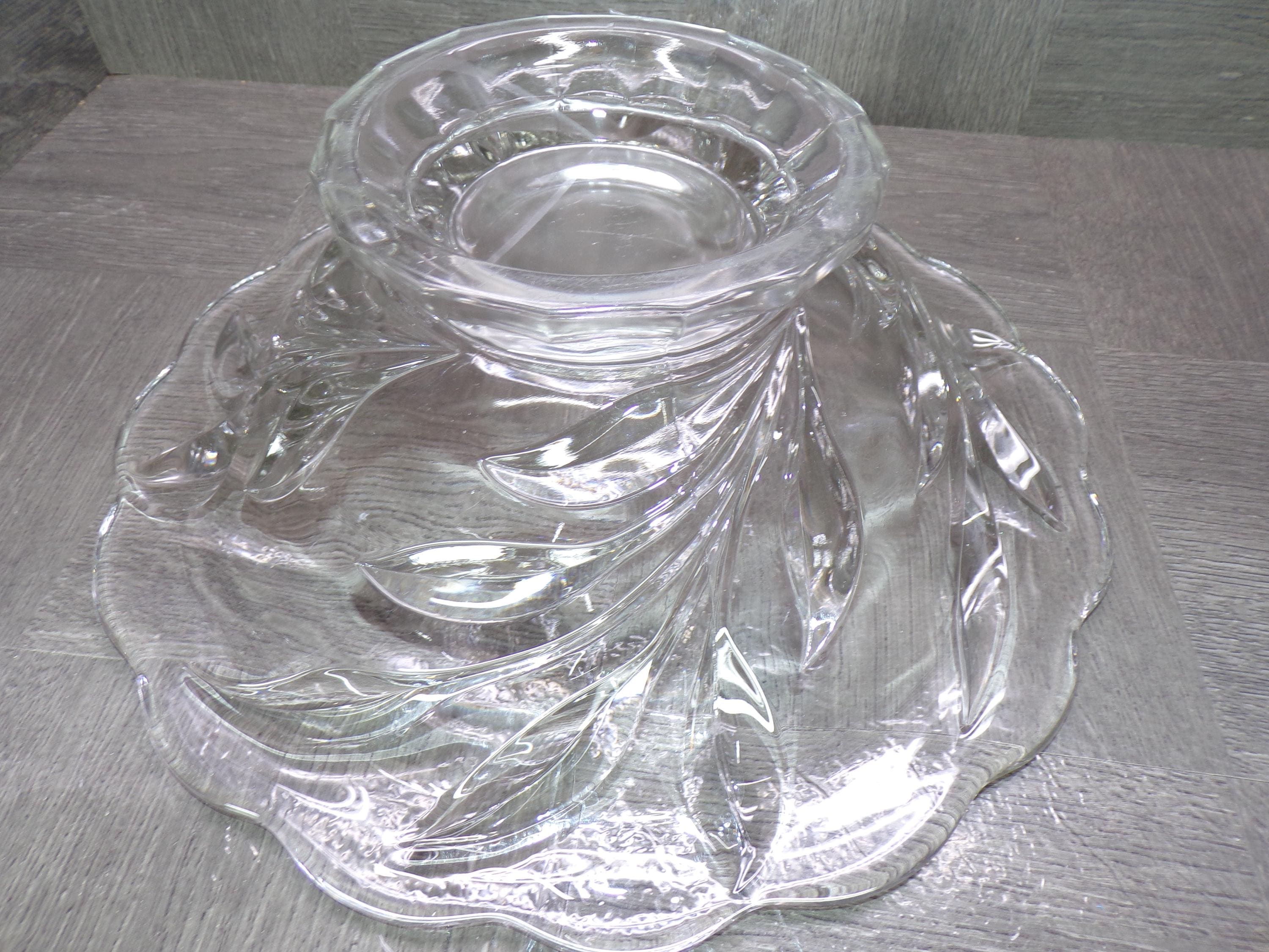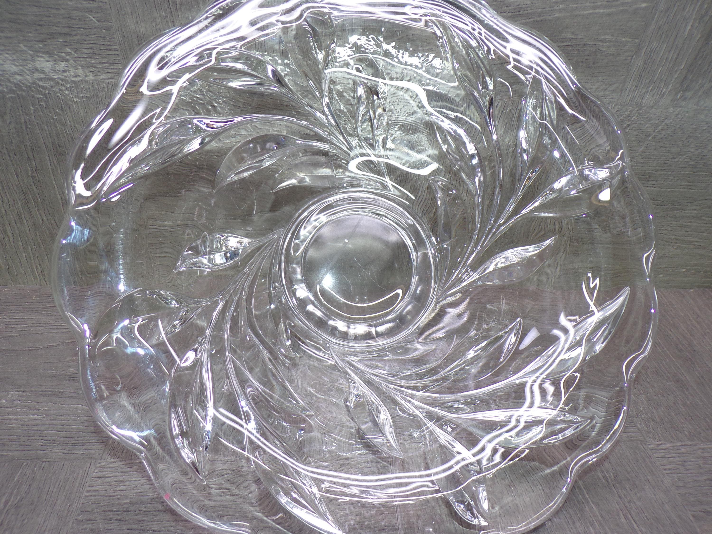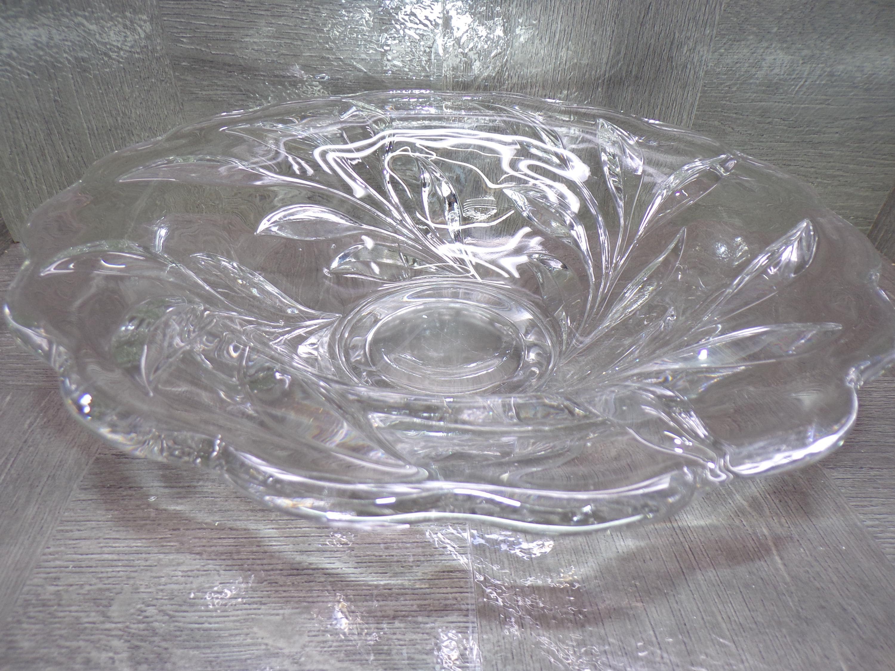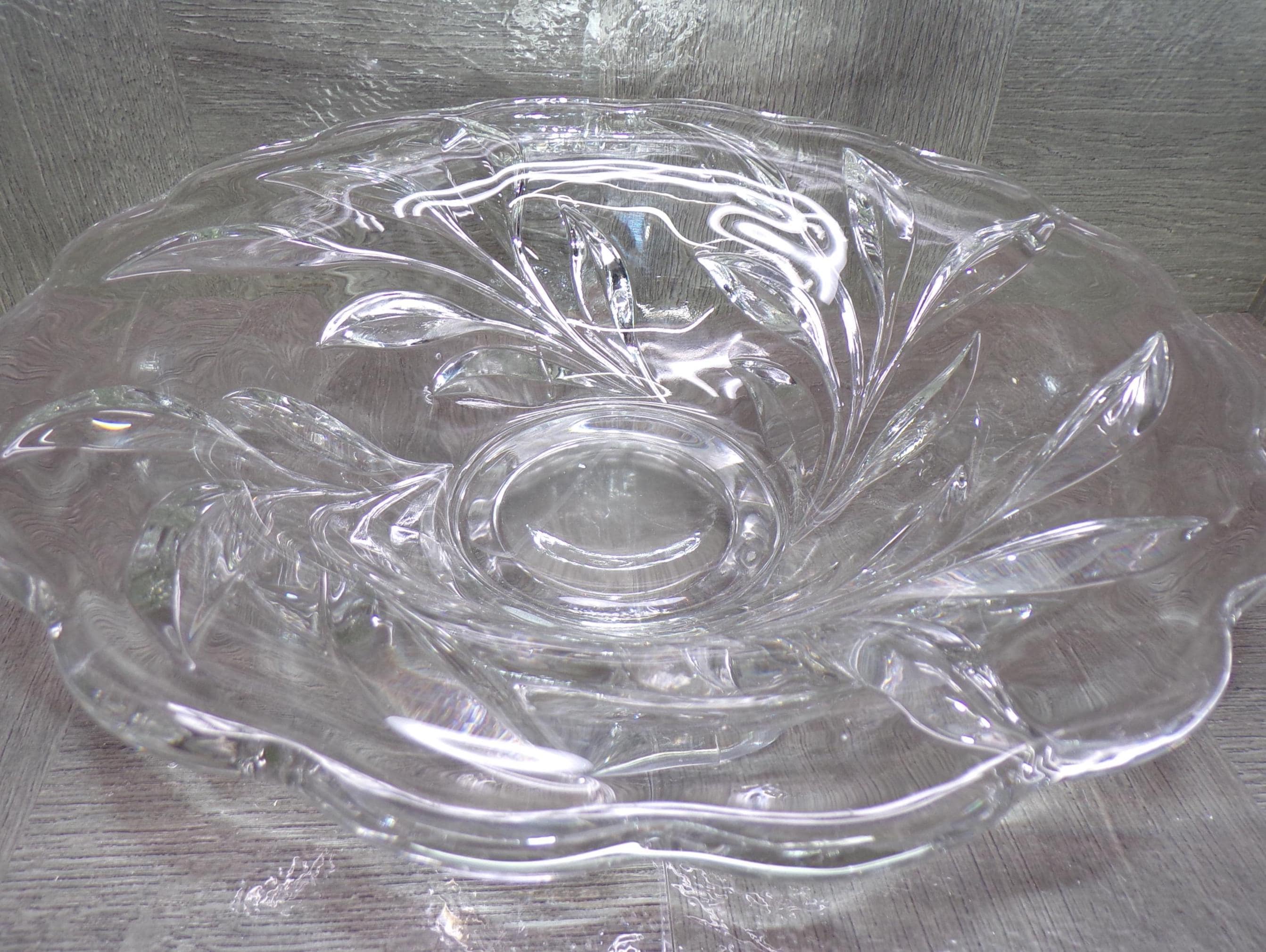 2602 Beautiful Vintage Indiana Glass Willow Oleander 12" Footed Clear Glass Bowl 4" Tall - Great Condition