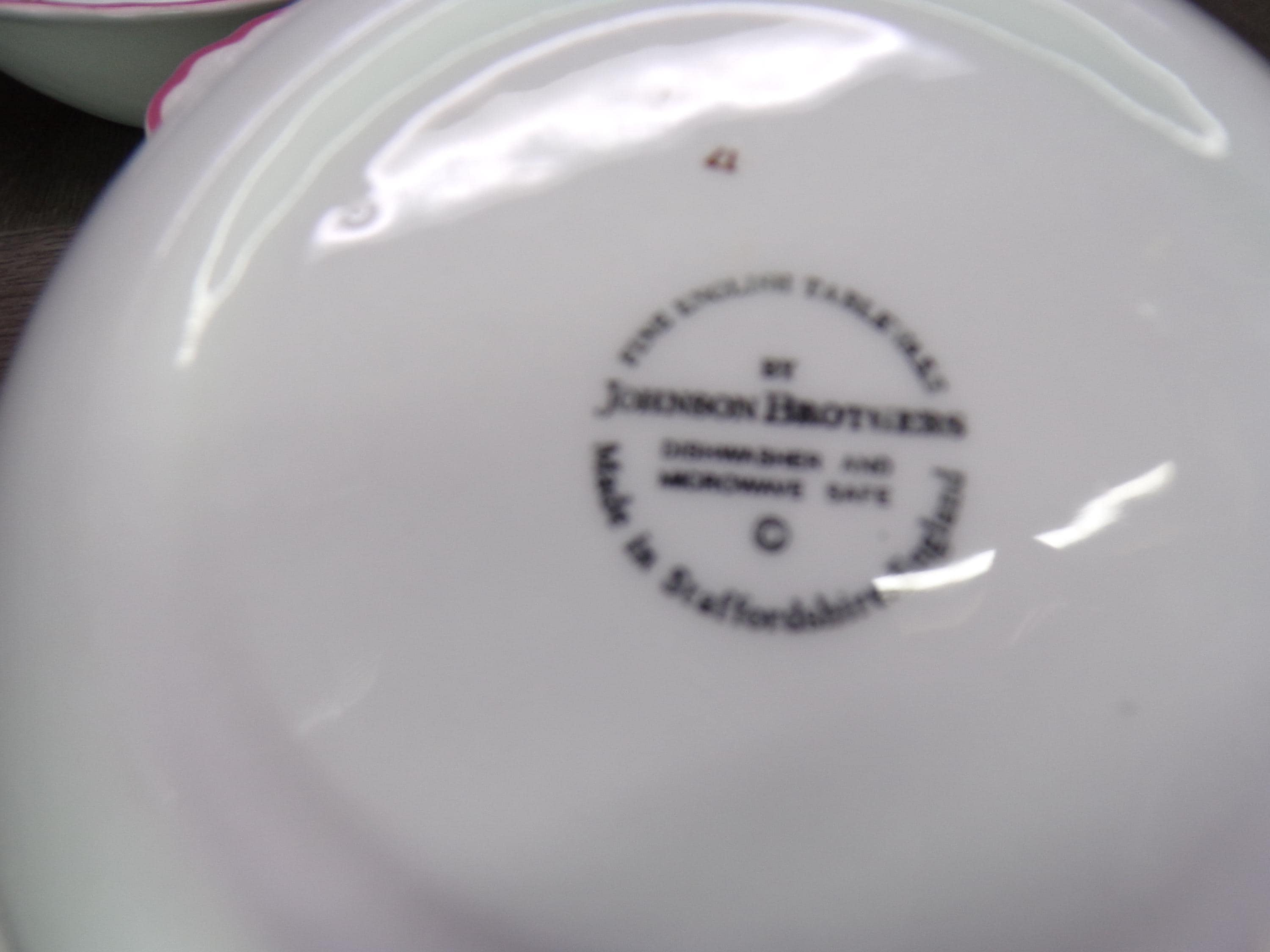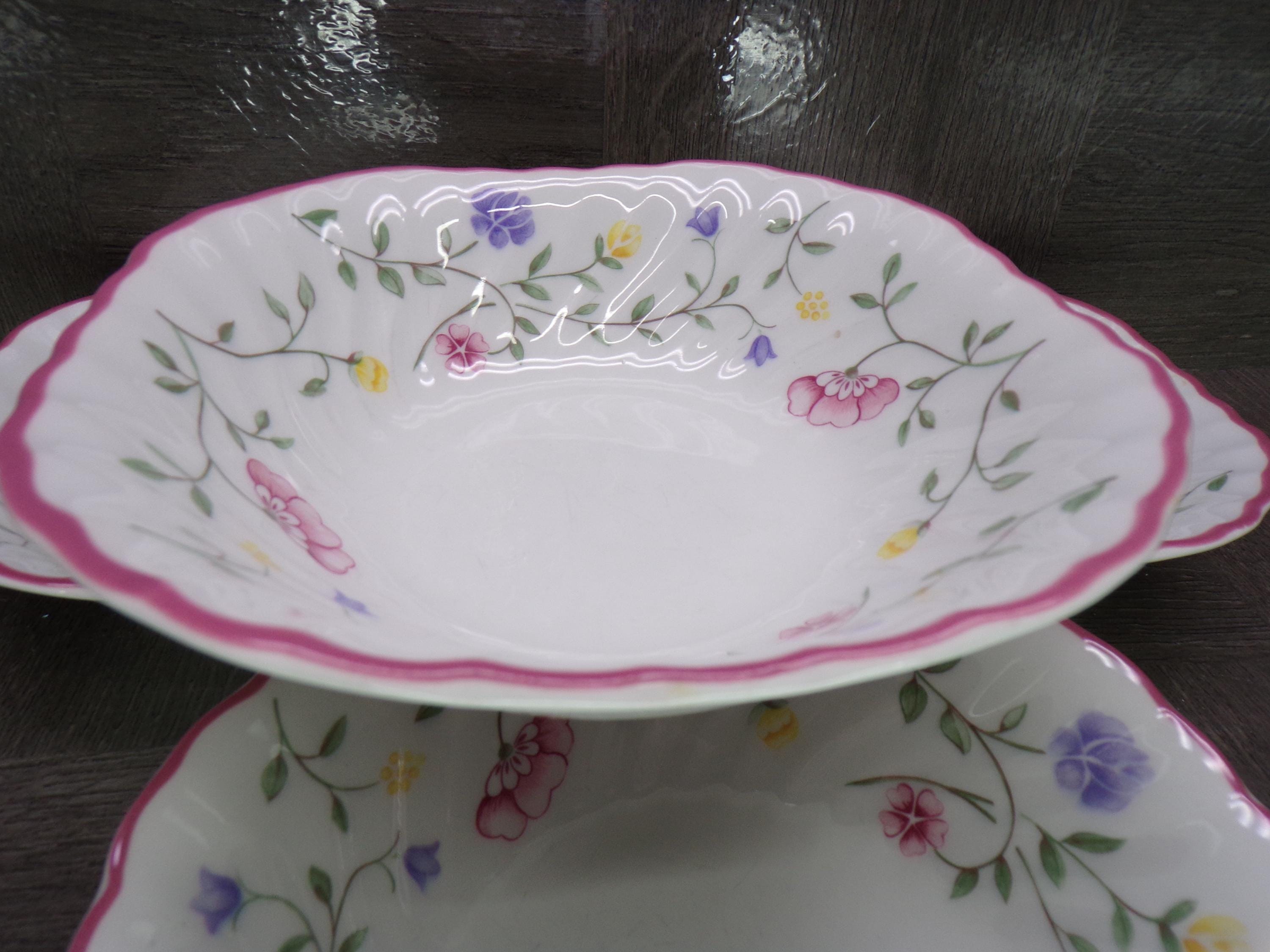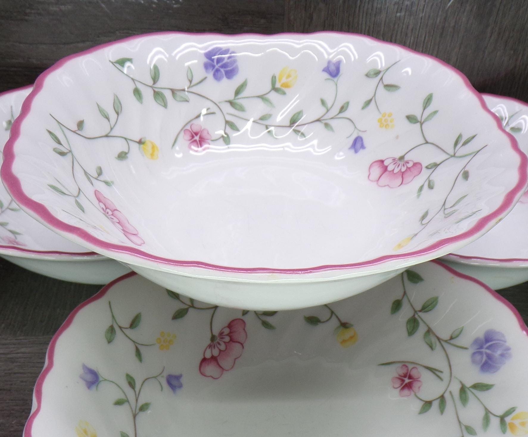 2602 Vintage 1985 Summer Chintz Floral Swirl 6" Cereal Bowls Set of 4 with Pink Rim by Johnson Bros. England - Good Cond Scratches in Bottom