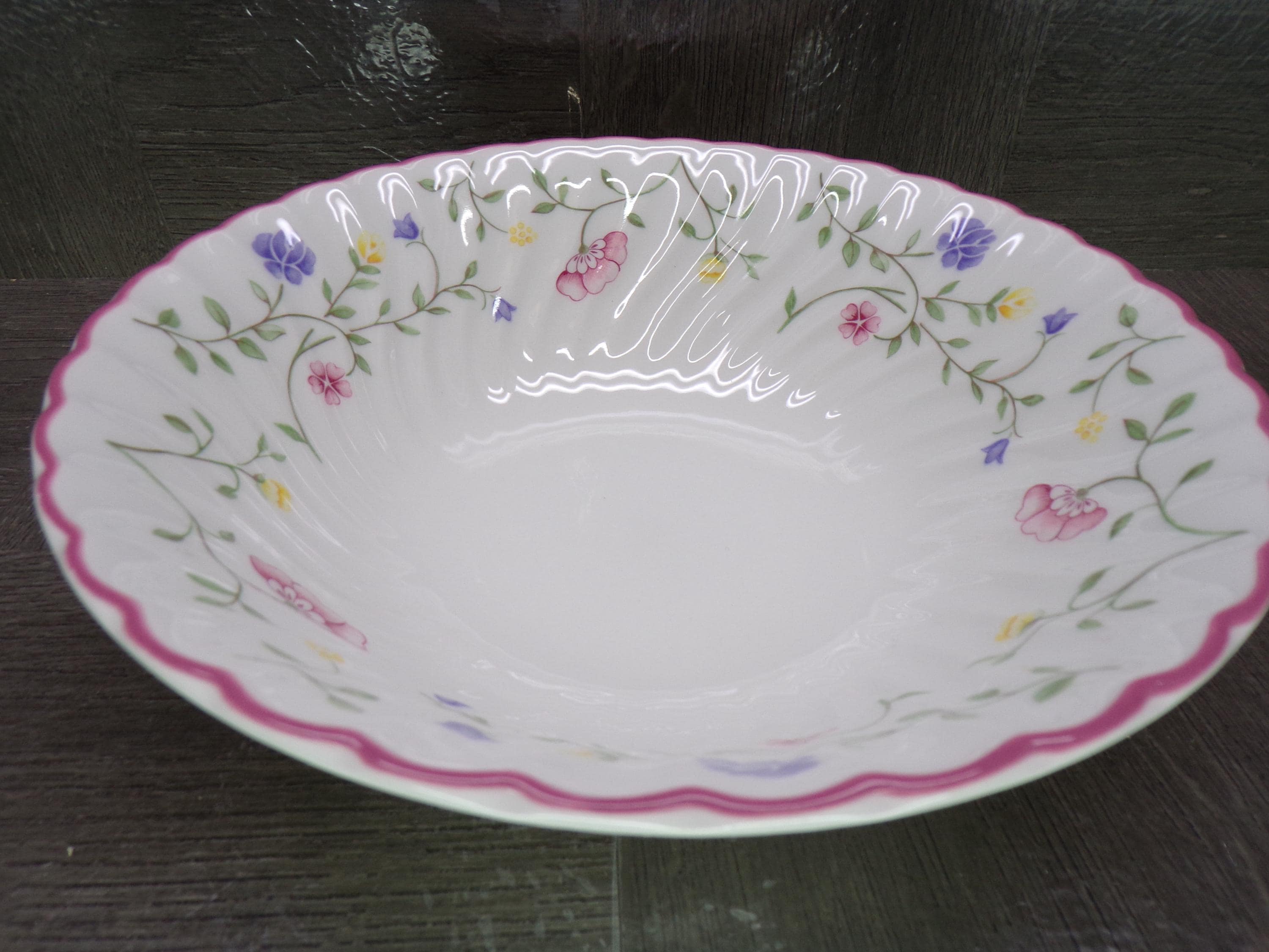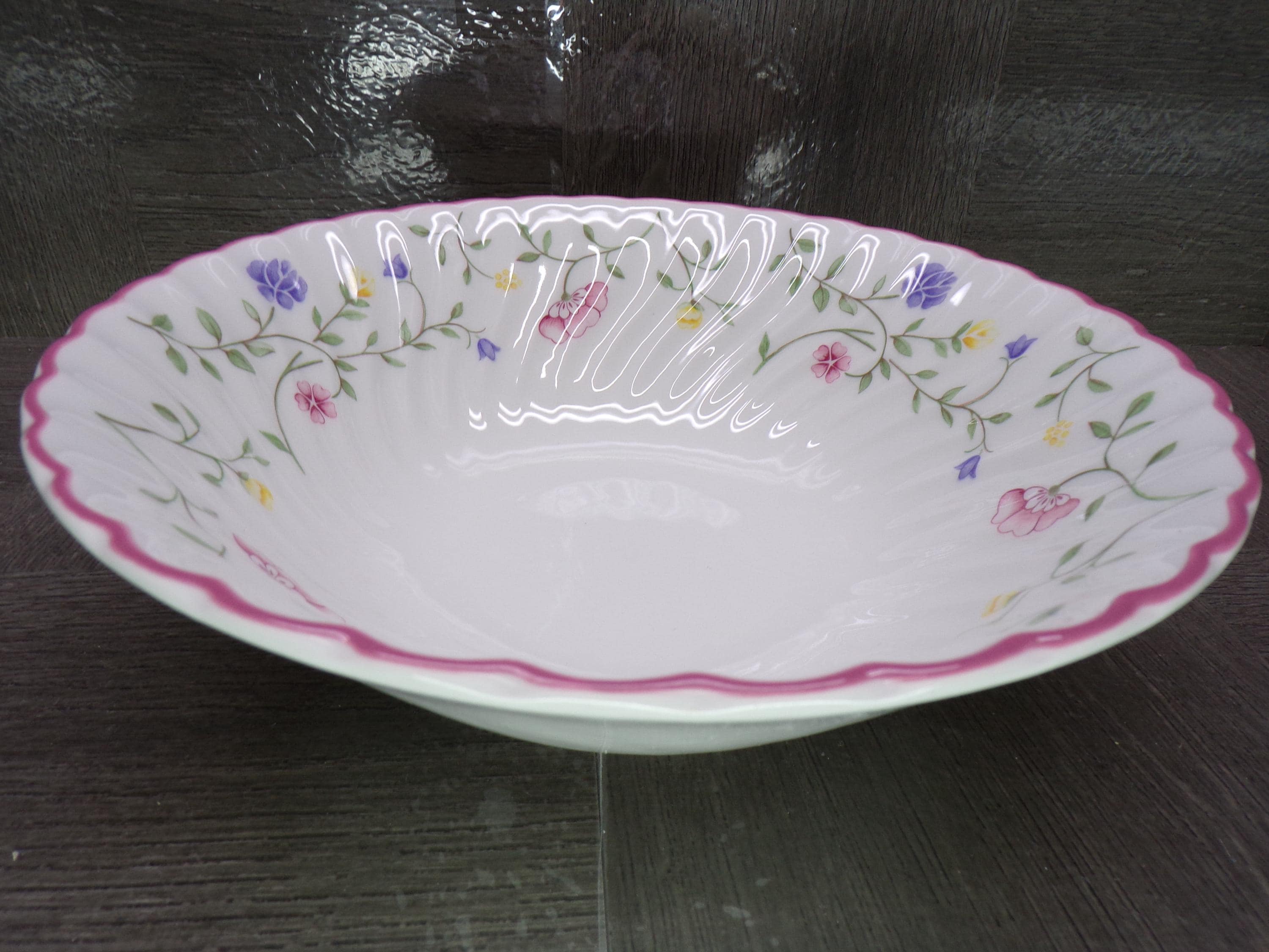 2602 Vintage 1985 Summer Chintz Floral Swirl 8.25" Vegetable Serving Bowl with Pink Rim by Johnson Bros. England - Great Condition