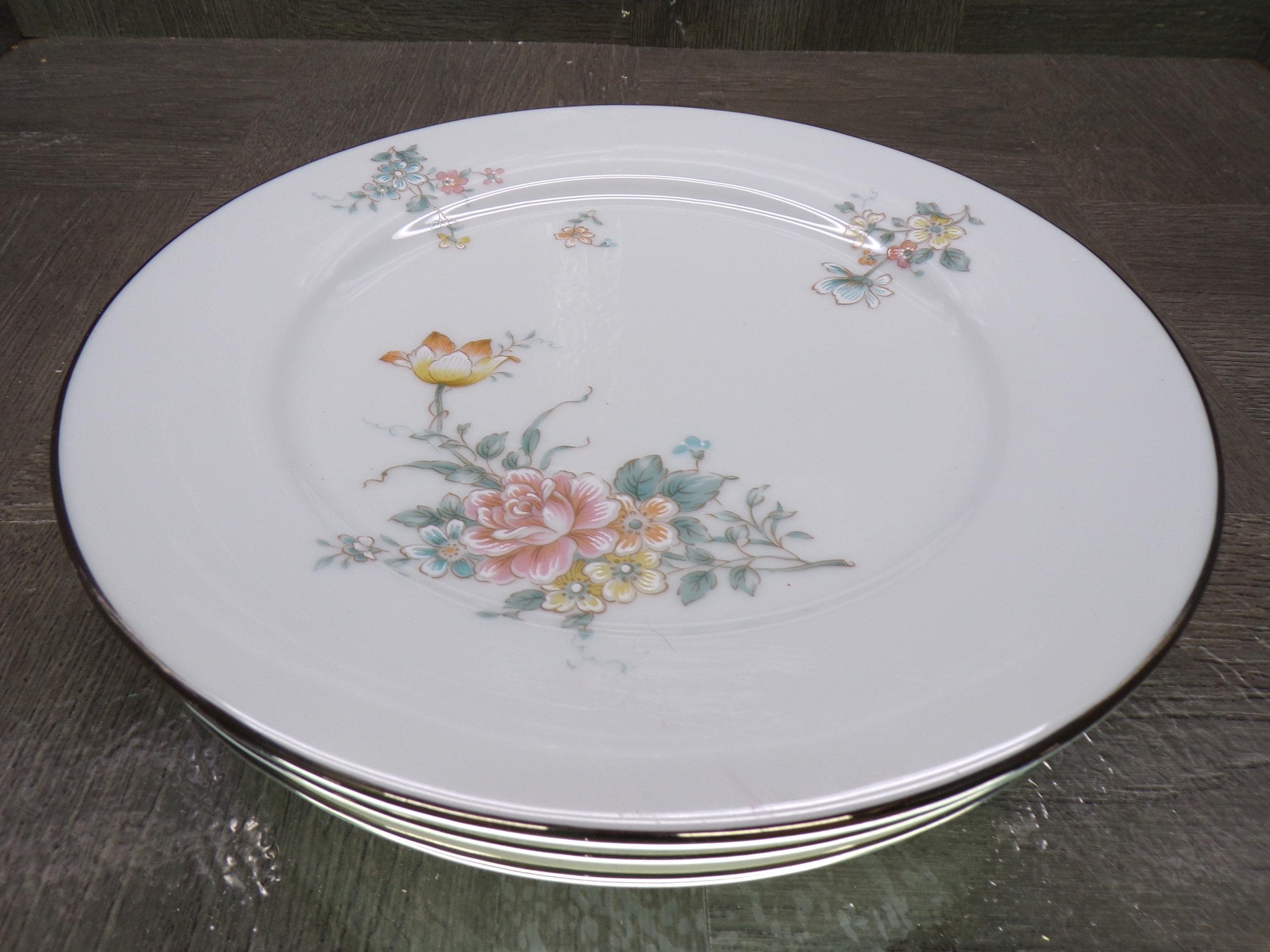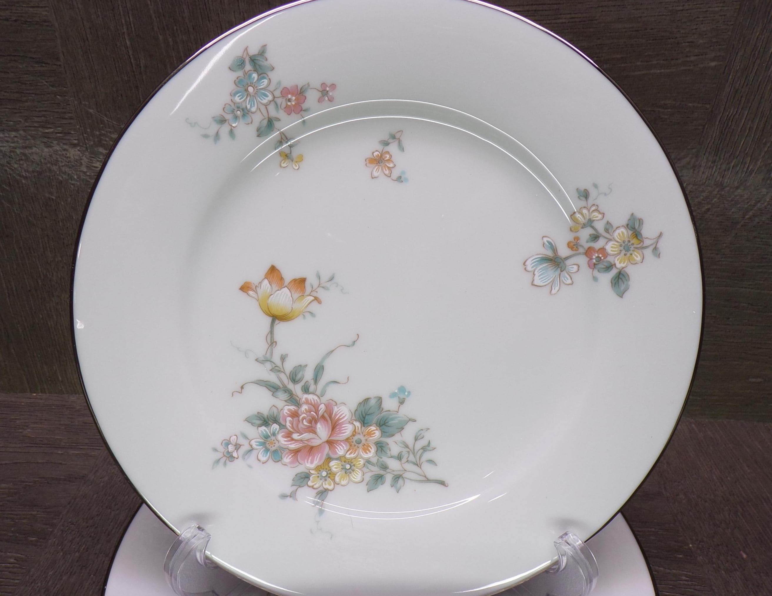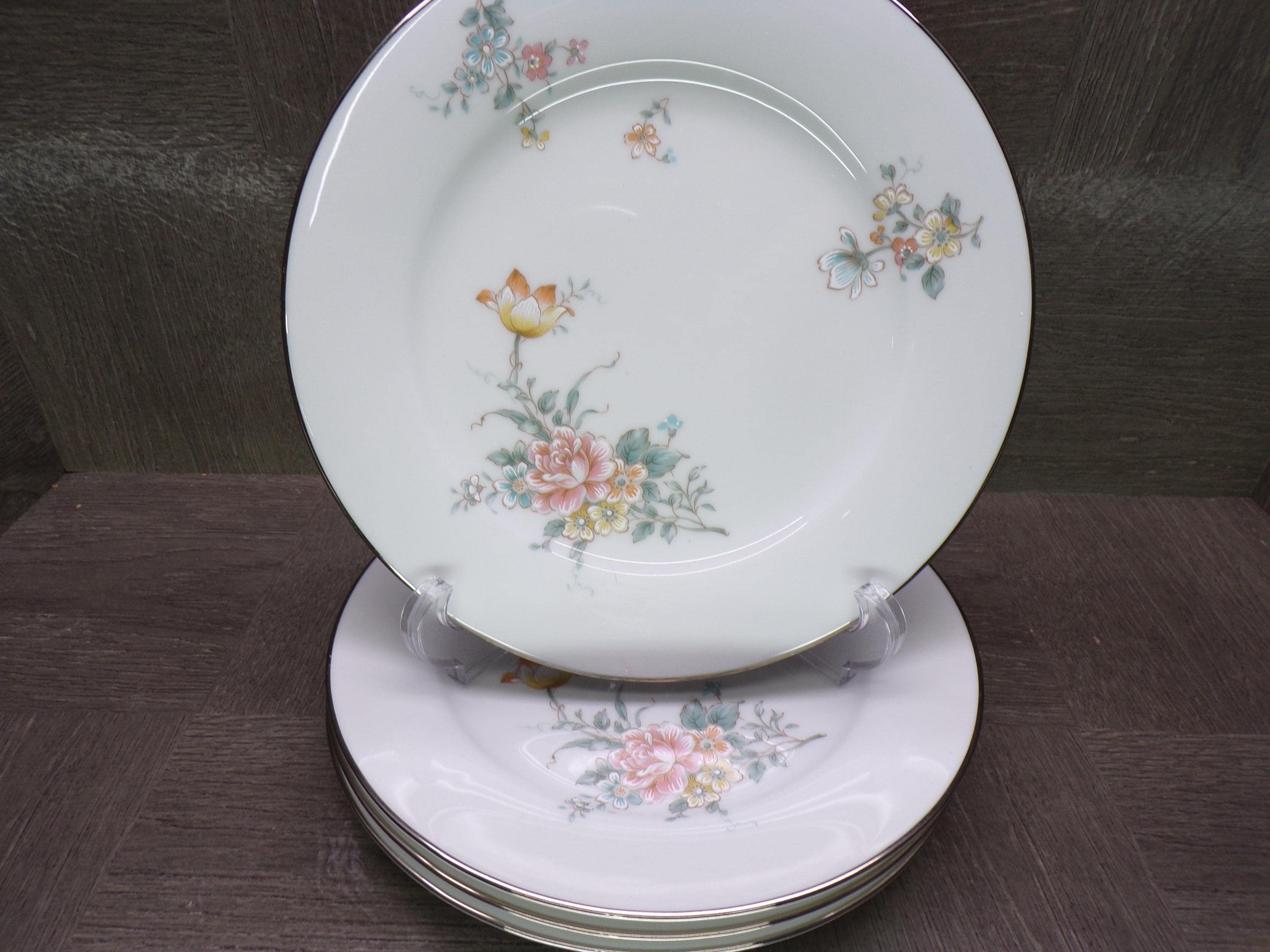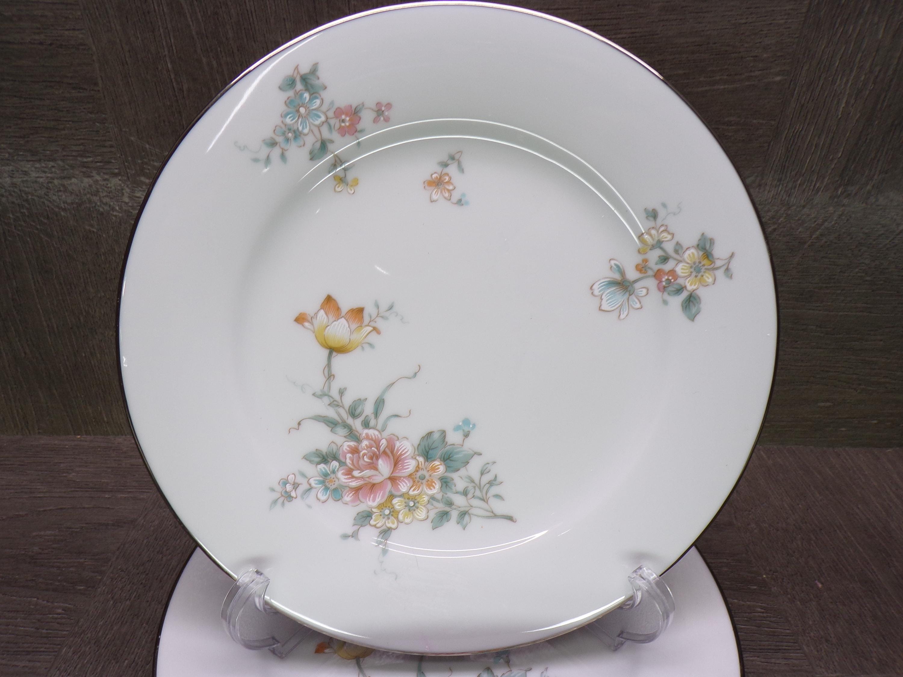 2602 Noritake Coquet #2981 Contemporary Vintage Fine China 8.25" Salad Plates Set of 4 Beautiful Floral w/ Platinum Rim - Great Condition