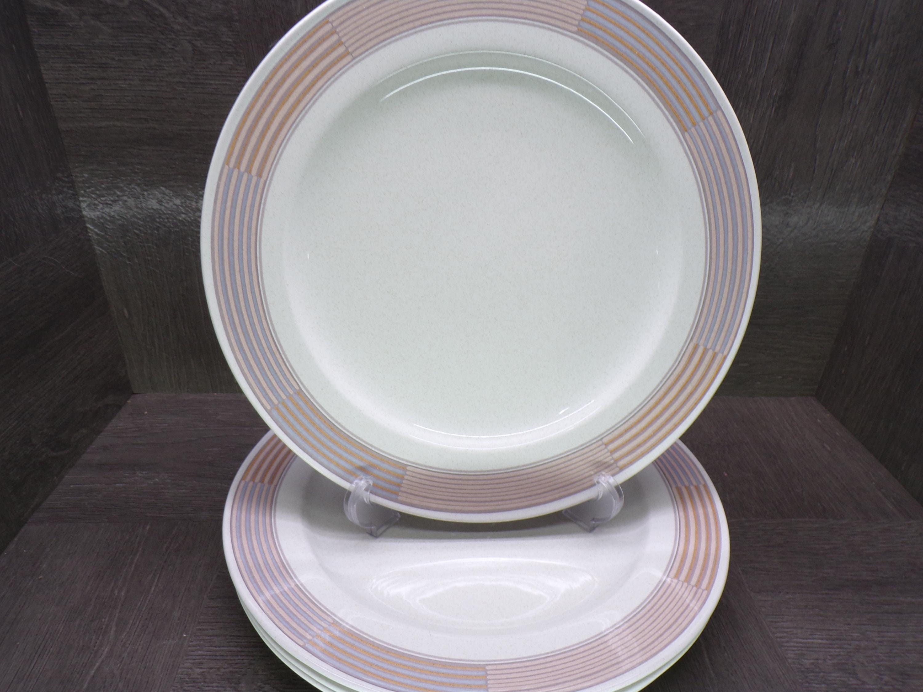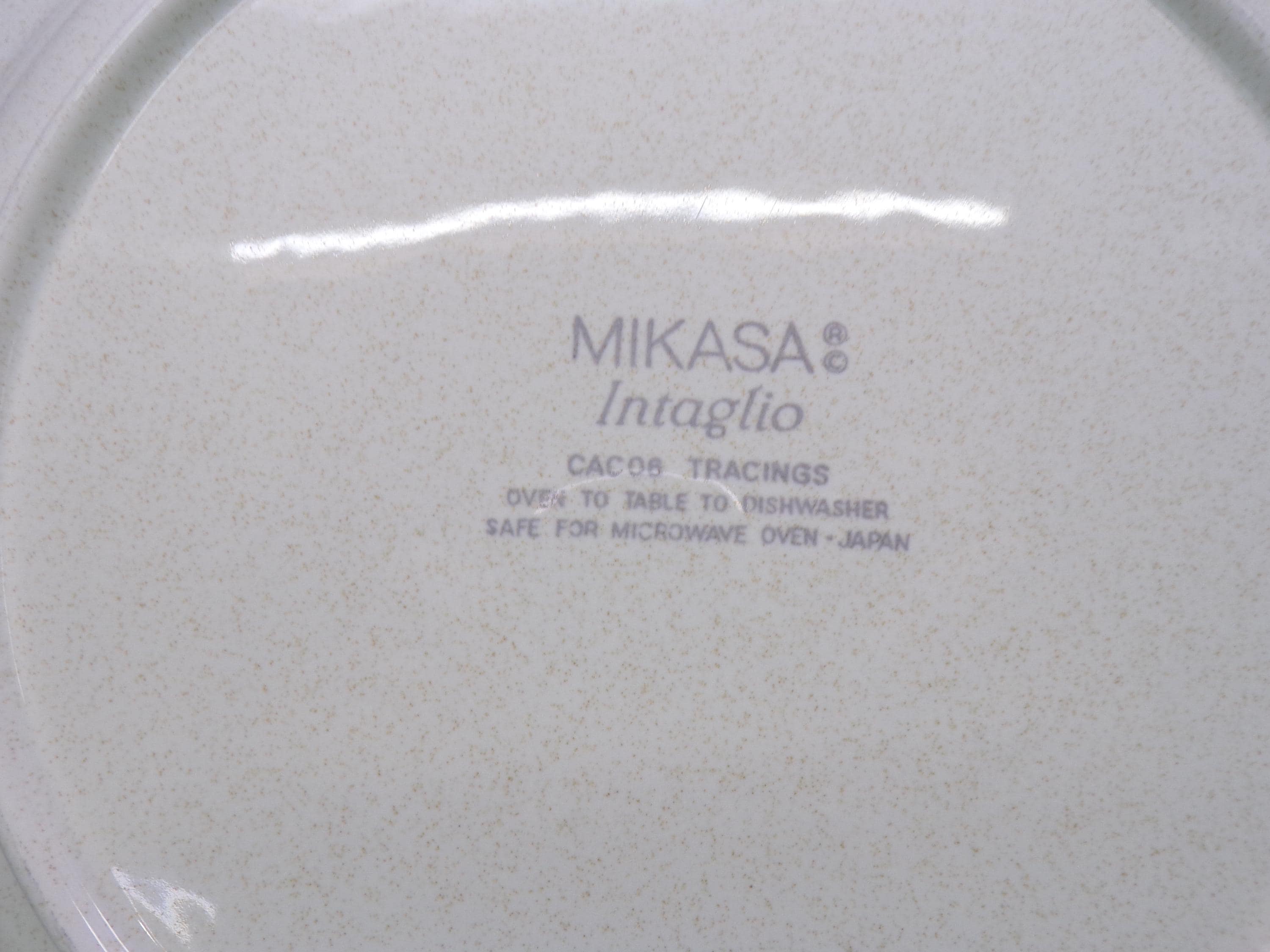 2602 Mikasa Intaglio CAC06 Tracings 11" Dinner Plates Set of 4 Oven to Table Stoneware - CHIP on One (Last Pic) Others in Great Condition