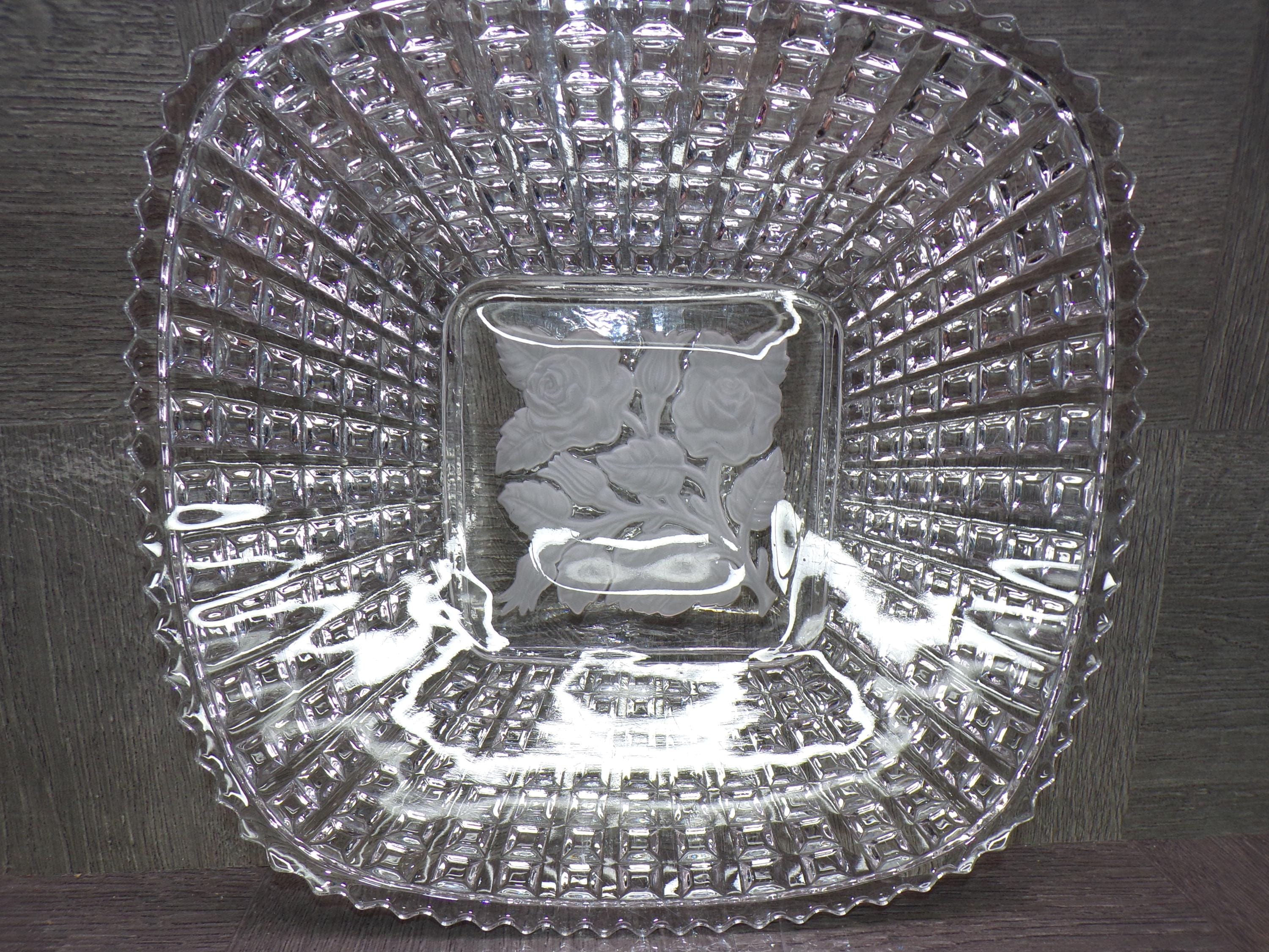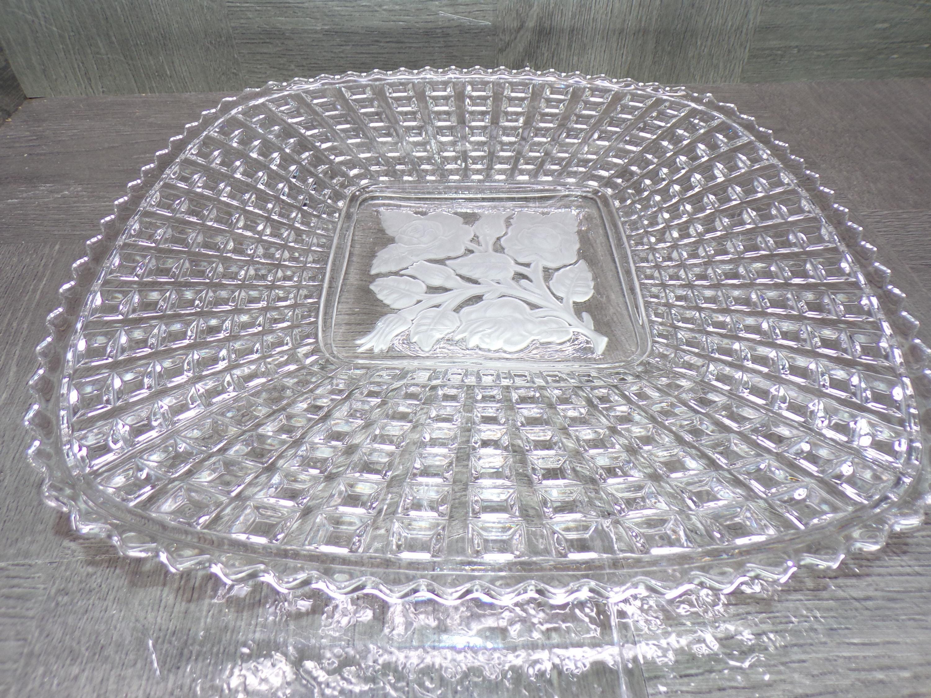 2602 Imperial Glass Radiant Waffle Block Vintage 11" Square Plate Platter - Frosted Floral - Great Condition Couple light Scratches