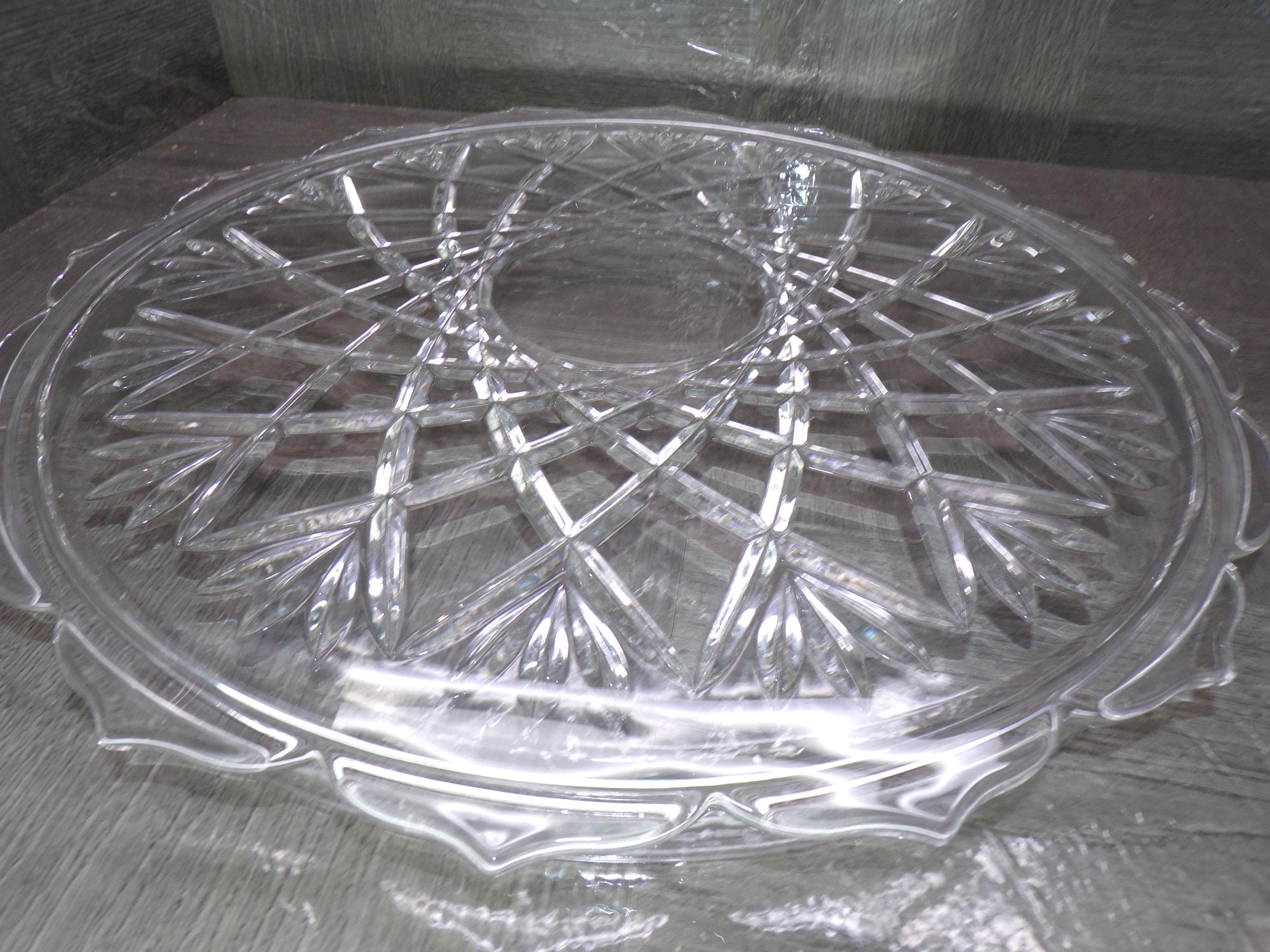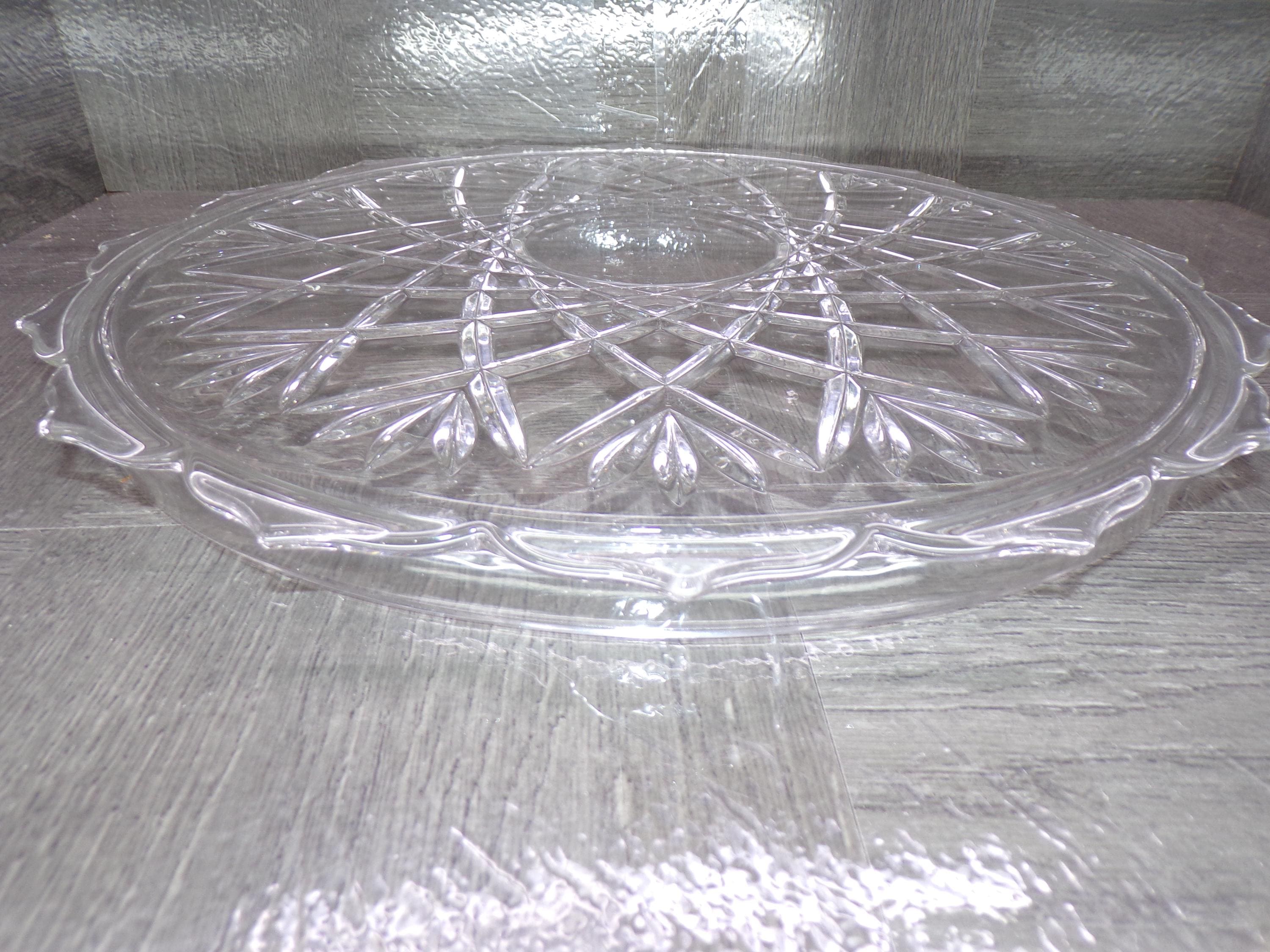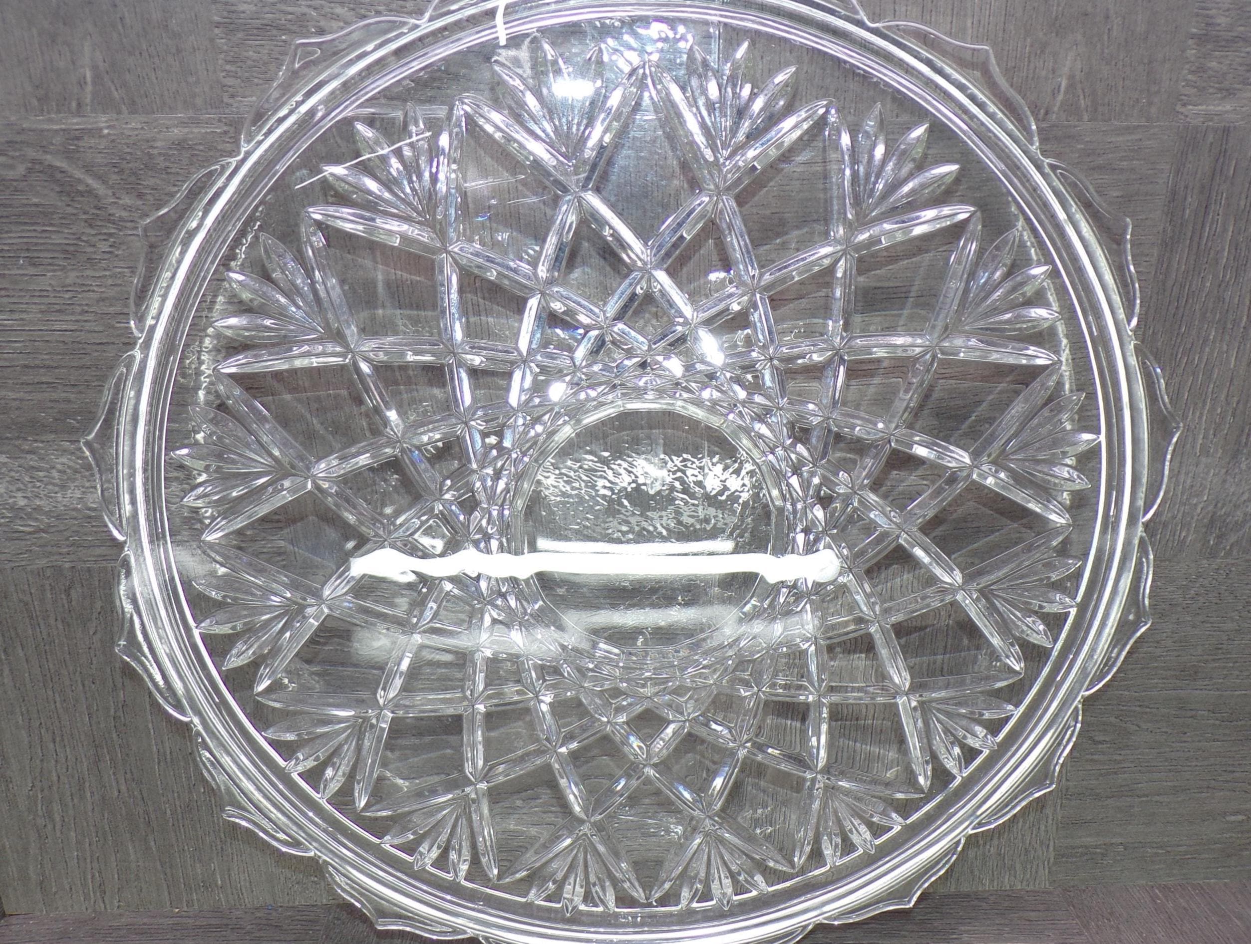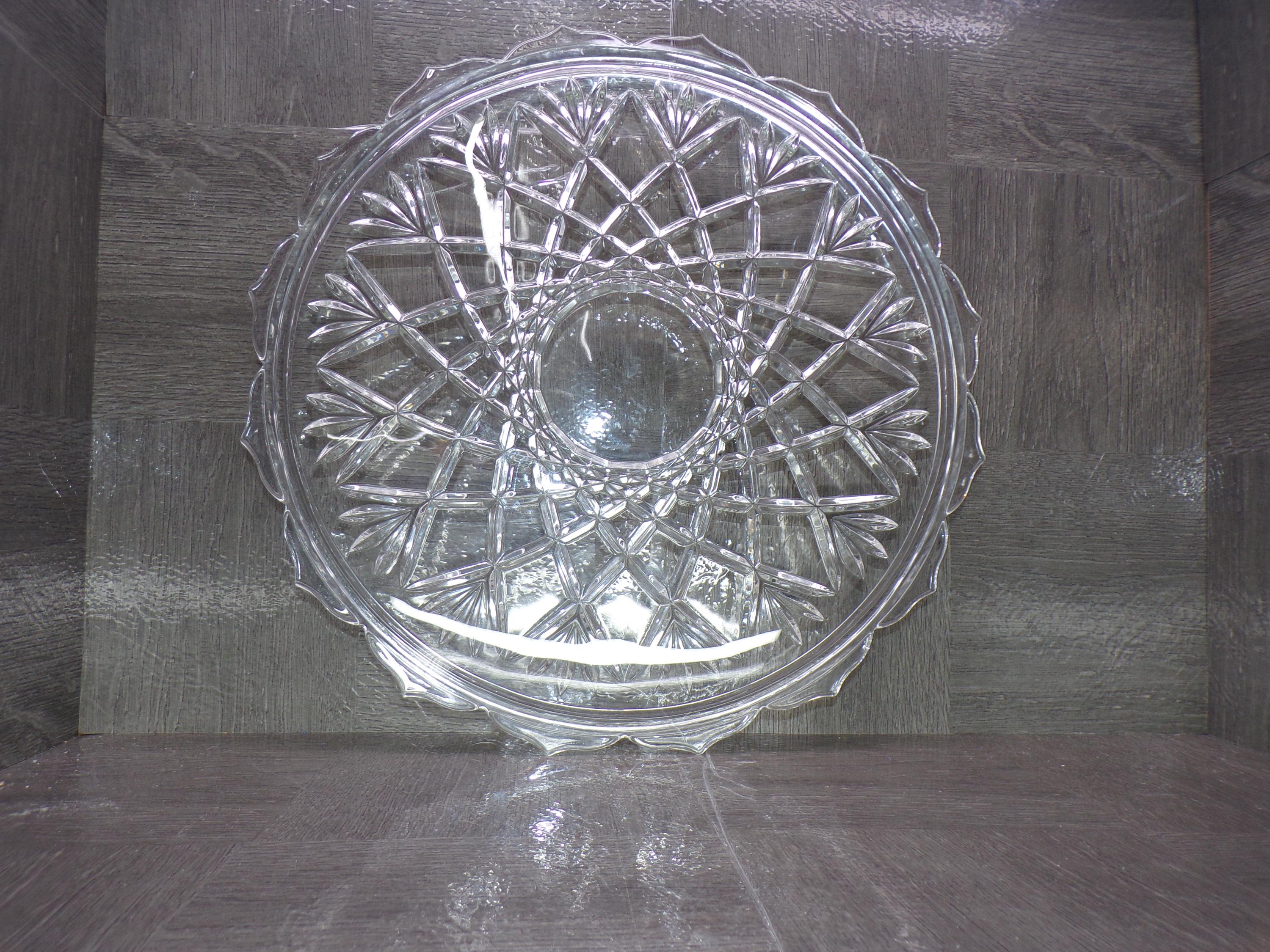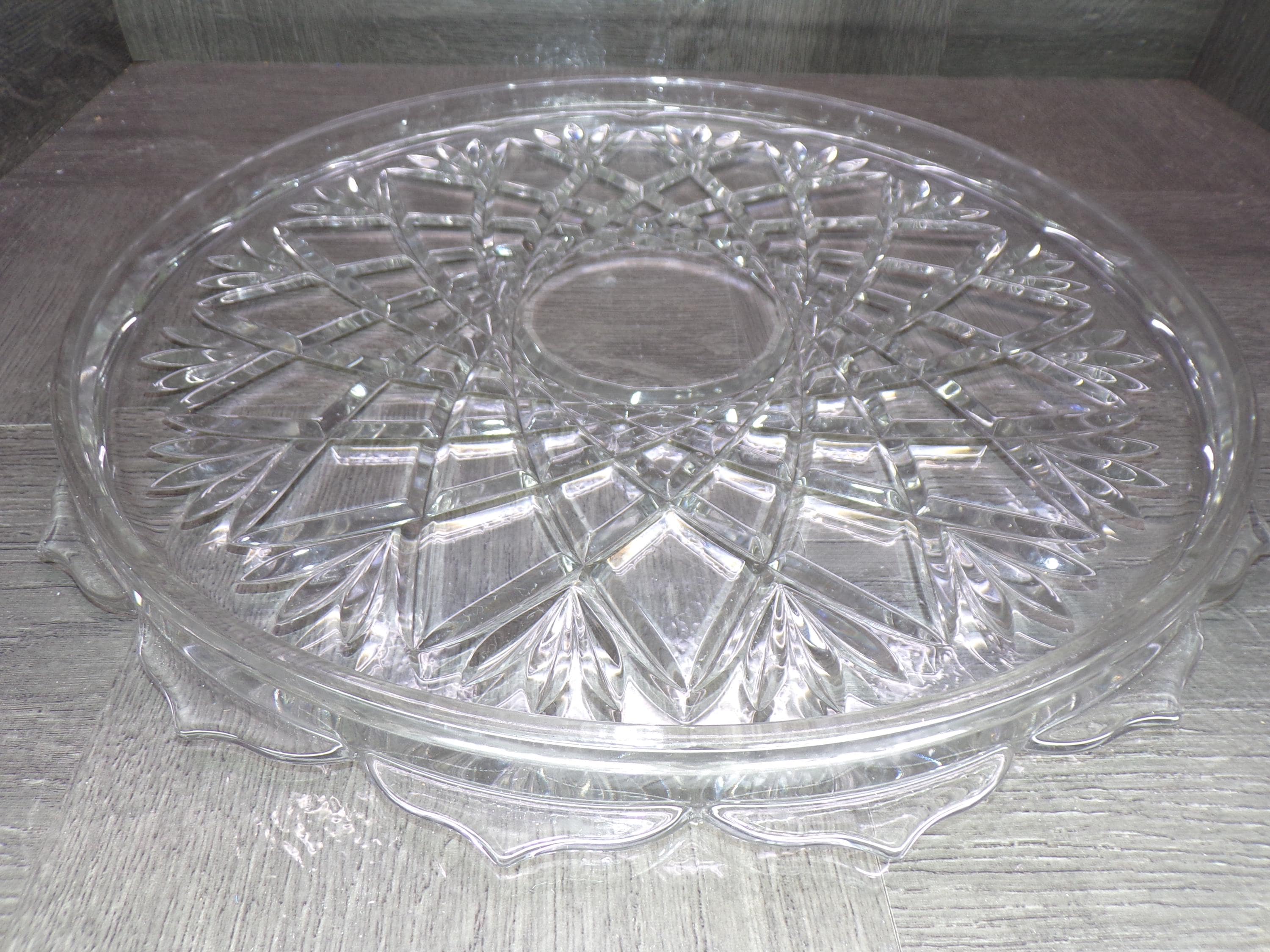 2602 Vintage 14" Footed Lead Crystal Serving Tray Platter - Pineapple Cut Pattern - Good Condition Few Light Scratches