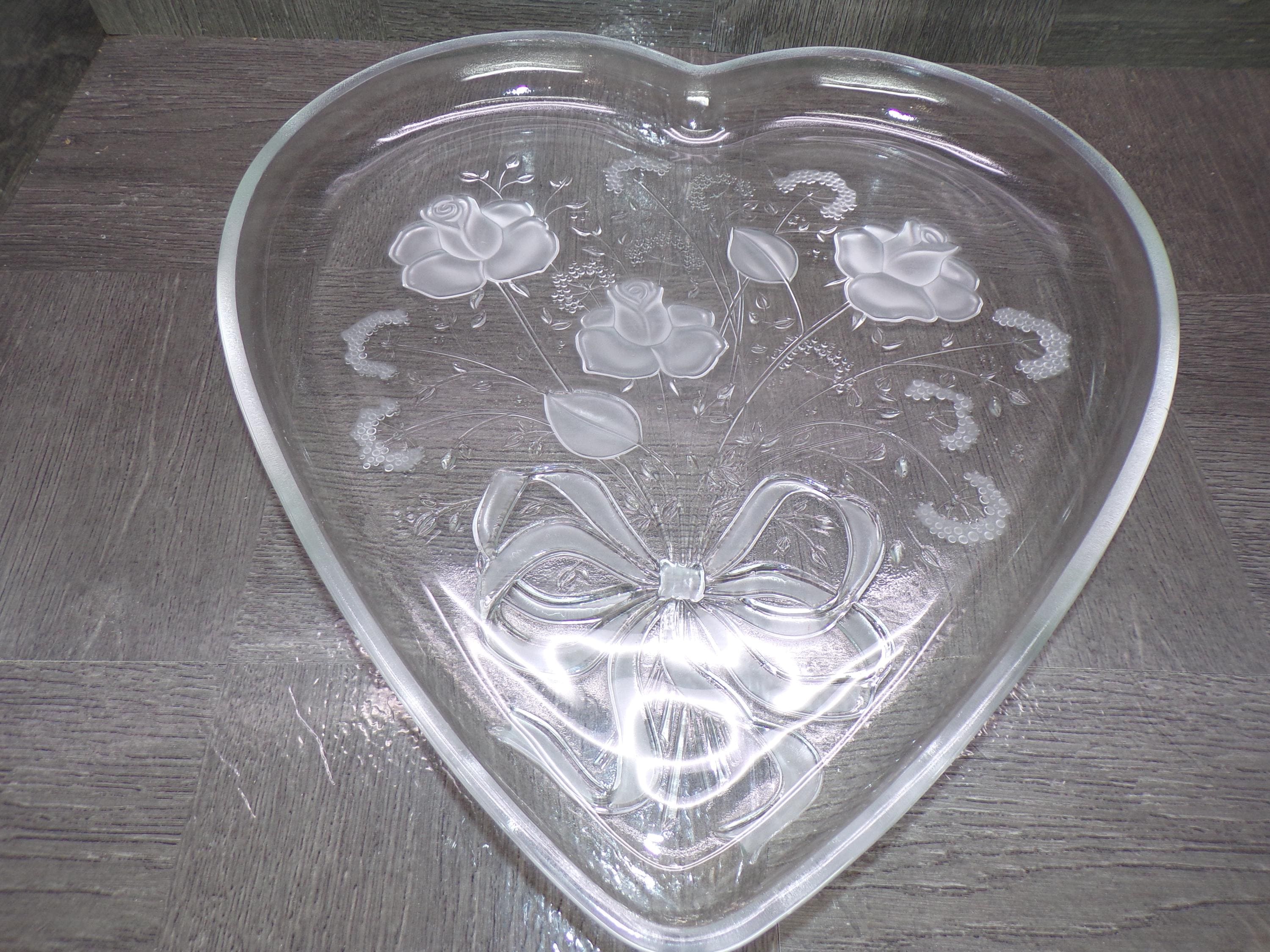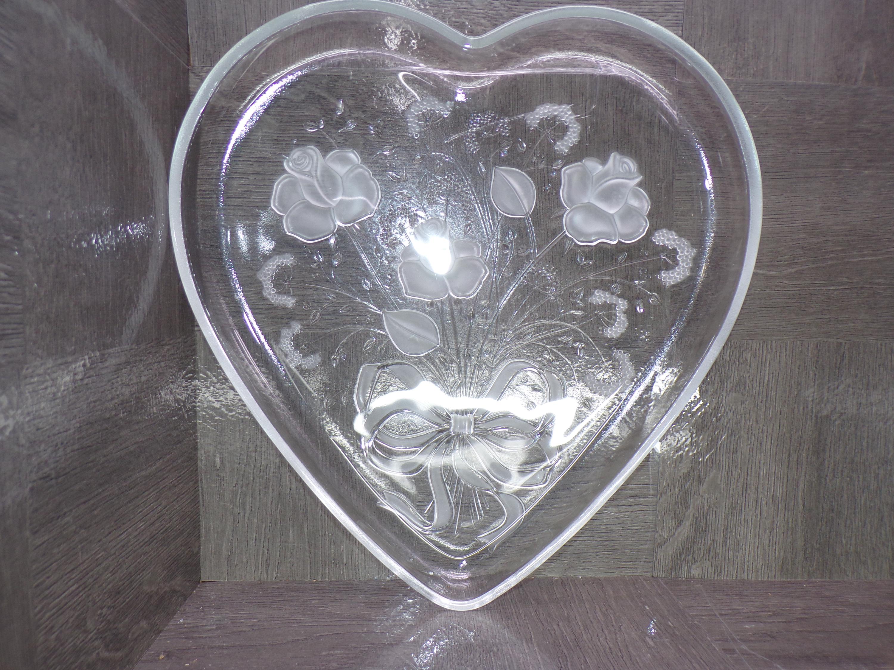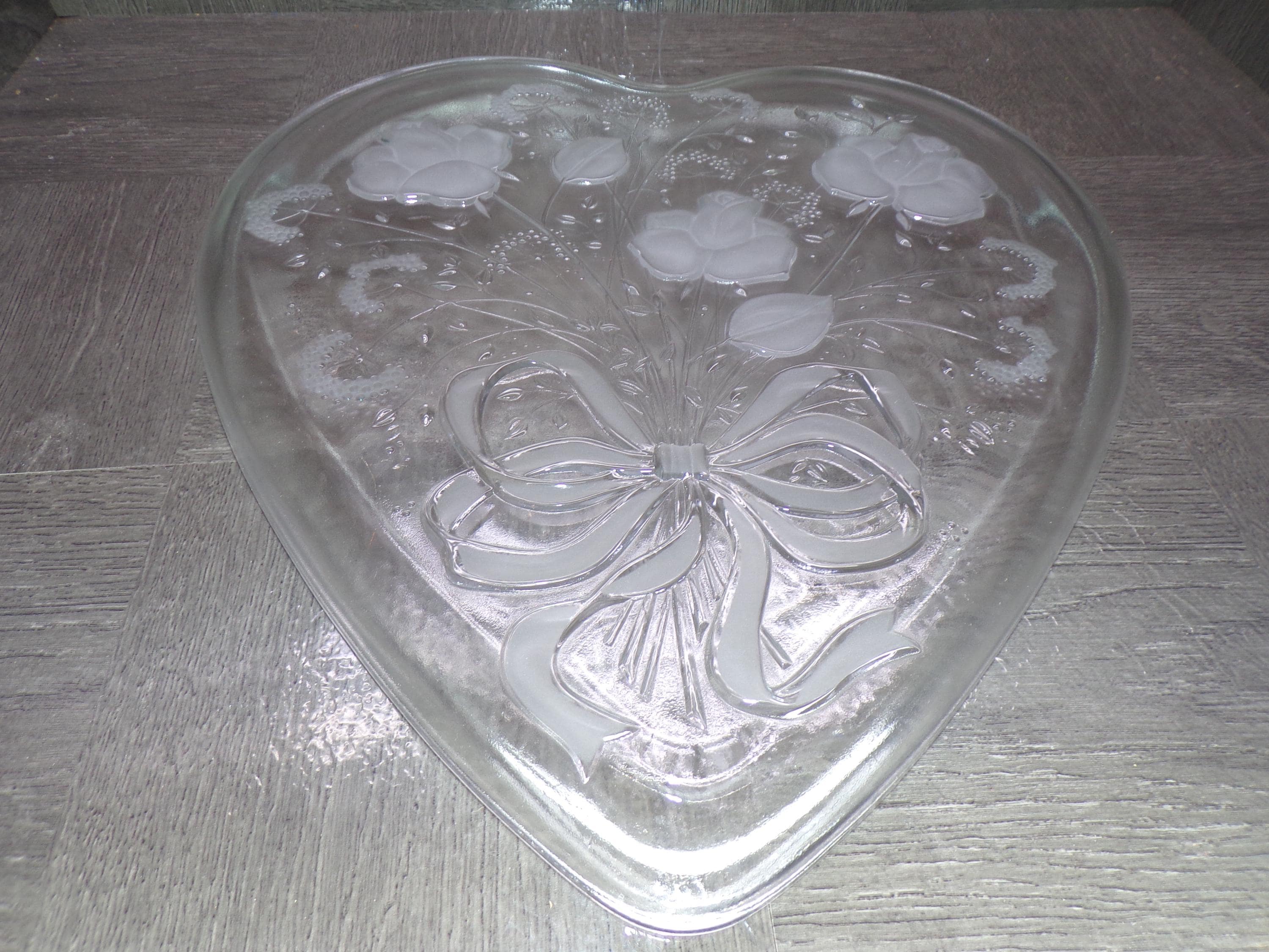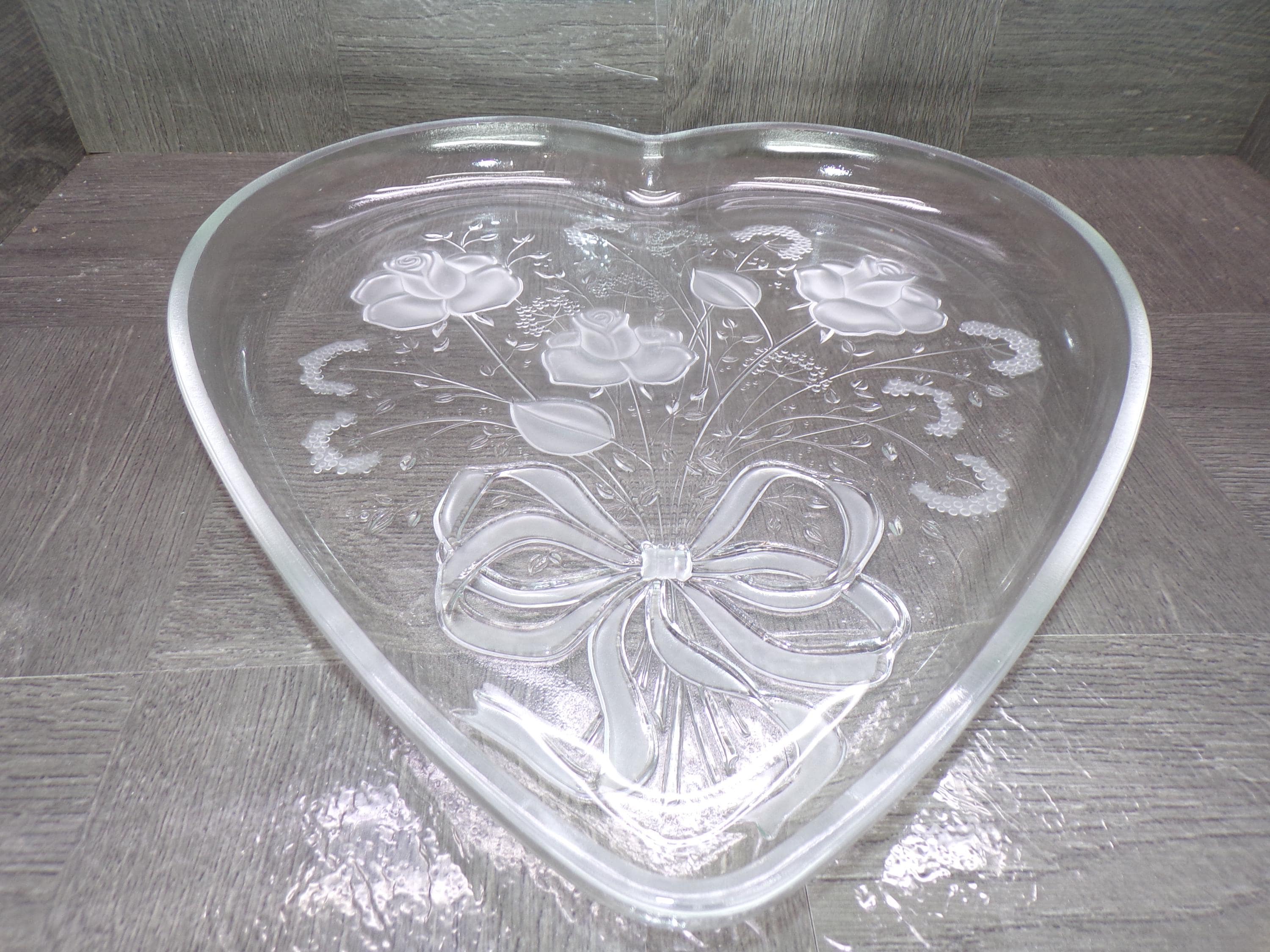 2602 Mikasa Heart Rose Bouquet 12.5" Raised Rim Textured Serving Platter - Frosted Roses & Bow - Great Condition