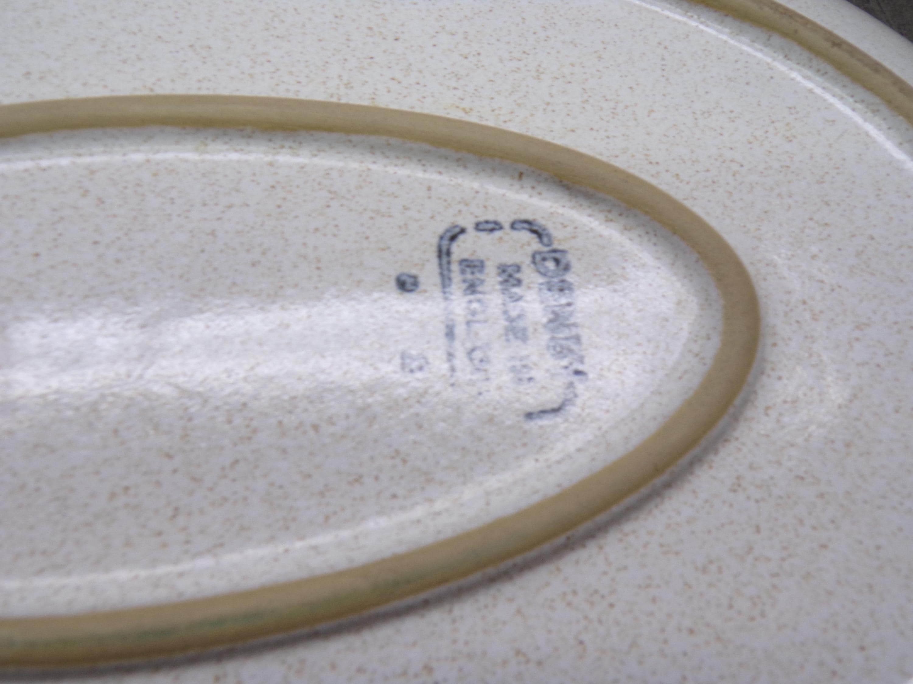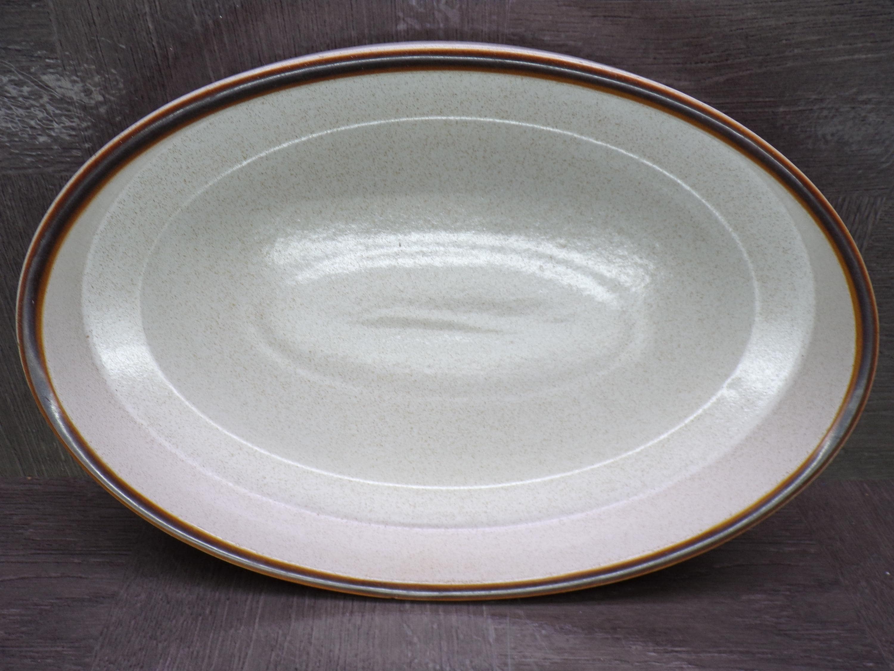 2510 Denby Potter's Wheel 12" Oval Bowl with an Oatmeal Background & Chocolate Rim - Good Condition CHIP on Rim
