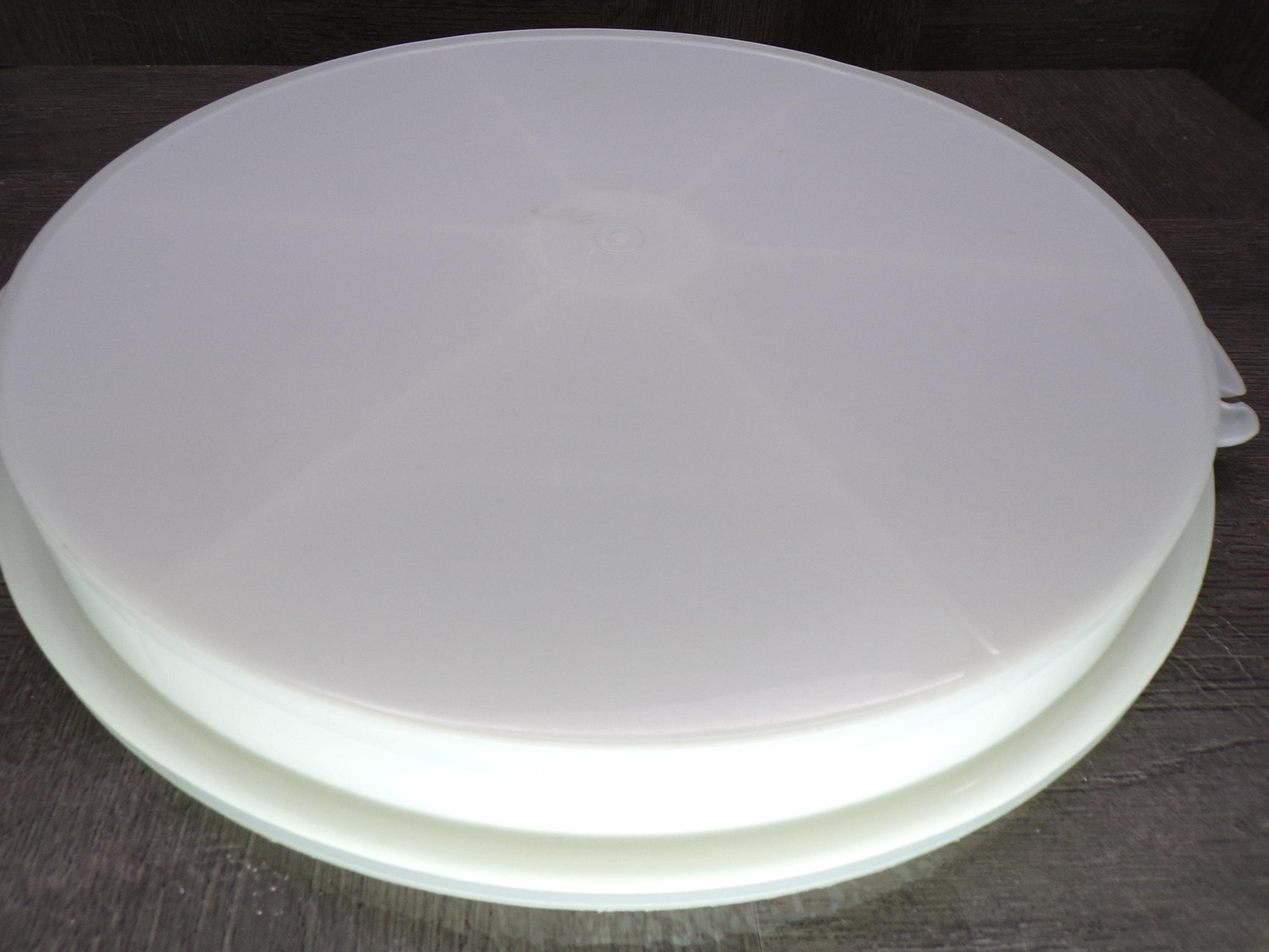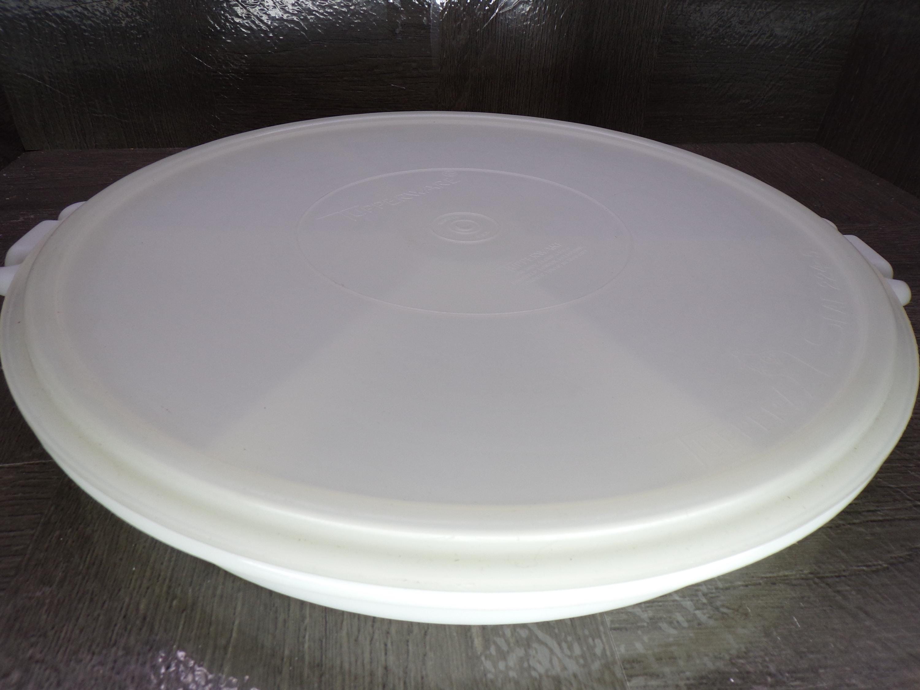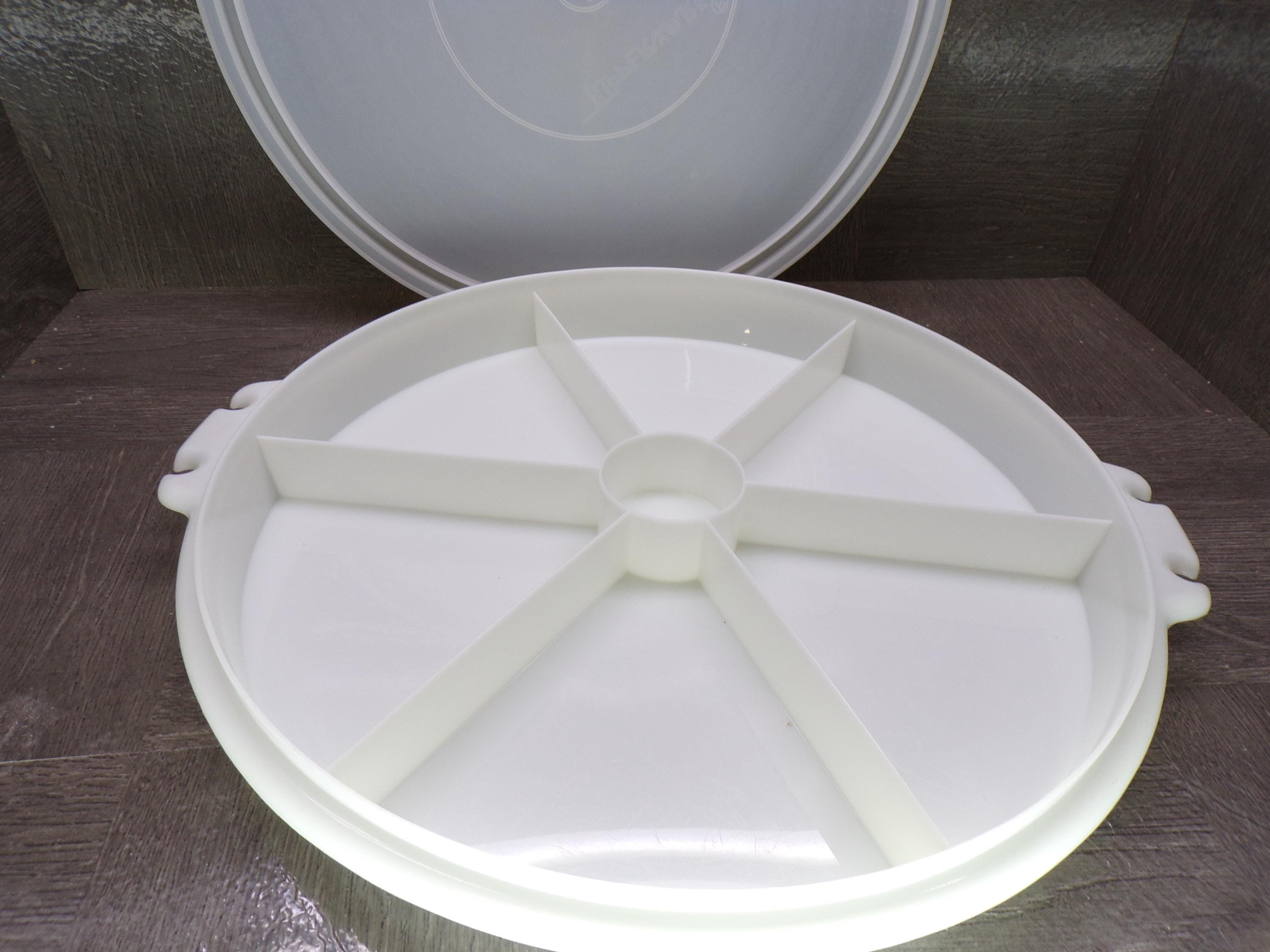 2602 Vintage Tupperware 12" Round Divided Platter Tray with Lid - Veggie, Pizza, Pie - Good Shape No Handles