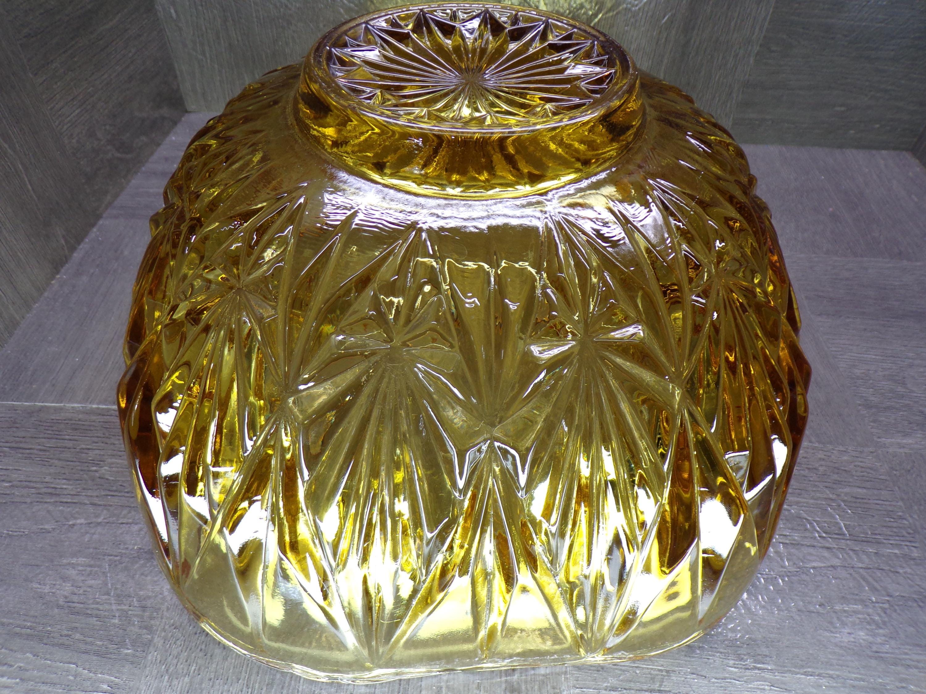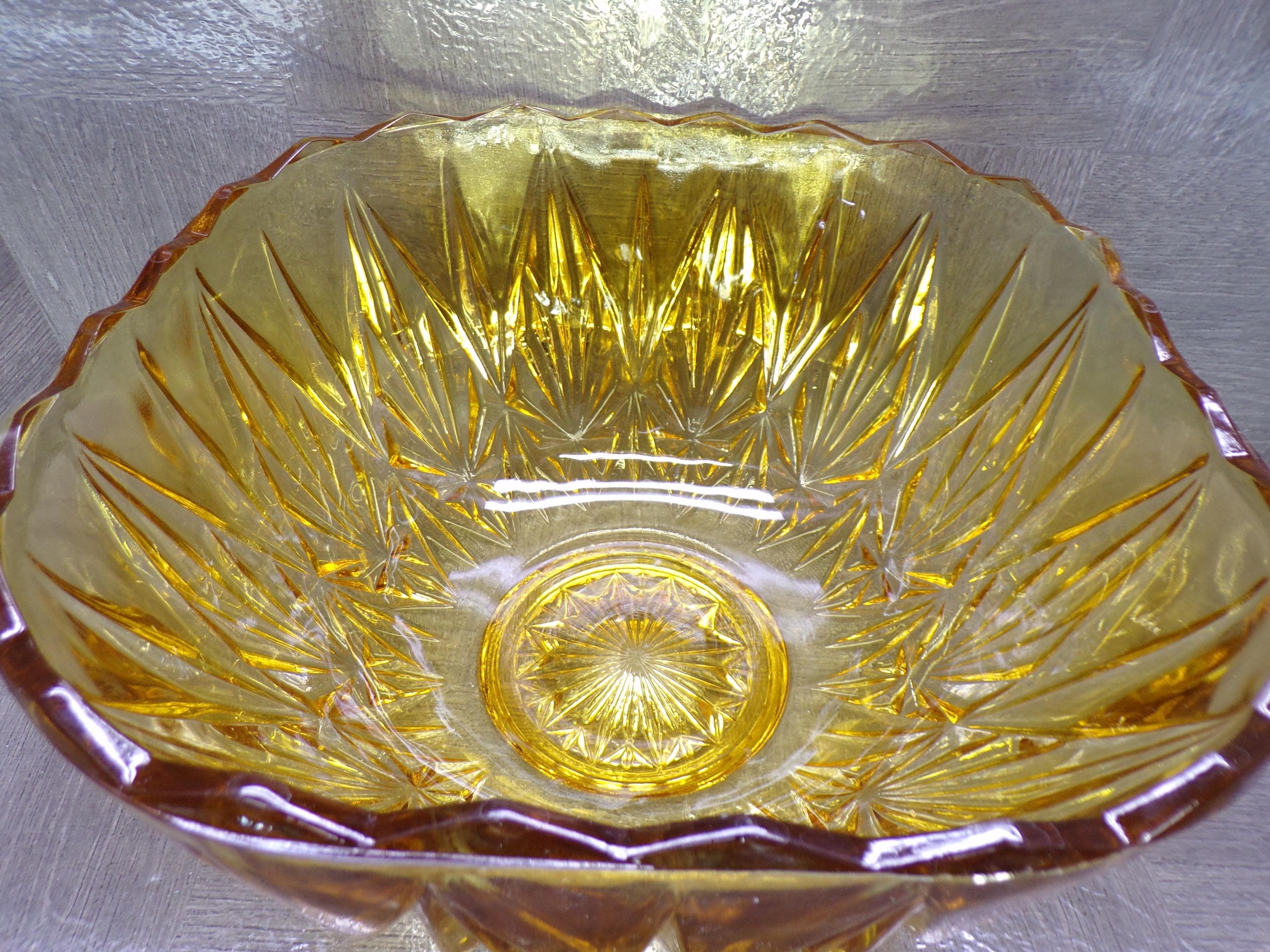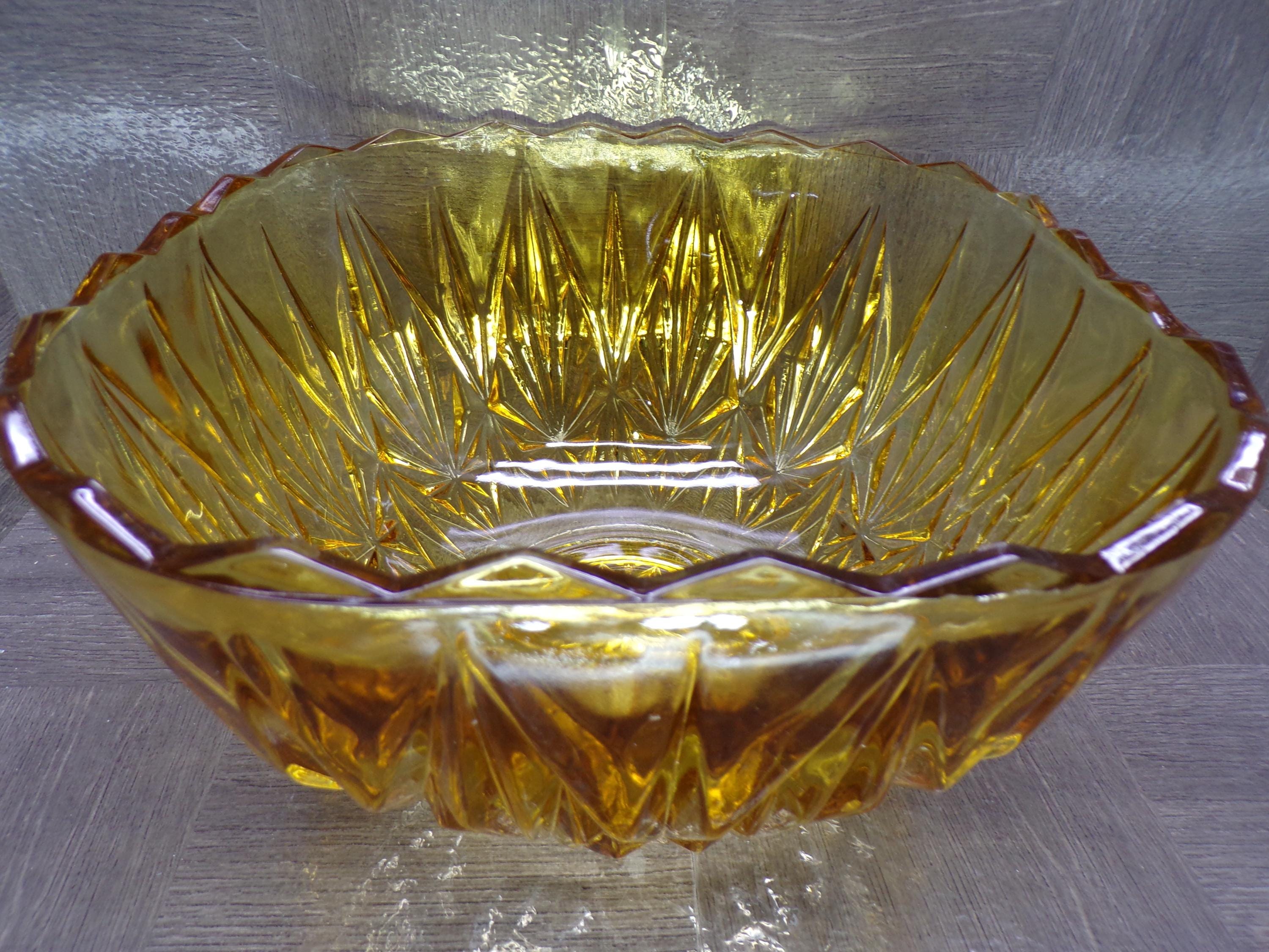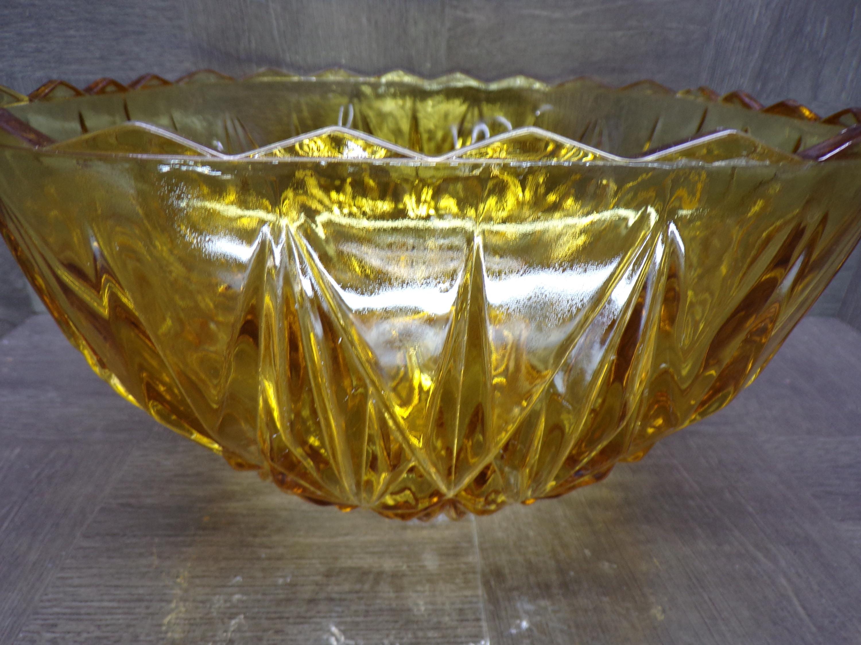 2602 Hazel Atlas Williamsport Square Prism Vintage Burnt Honey Amber 10.75" Wide x 6.5" Tall Punch Bowl - Small CHIP on Rim No Cups